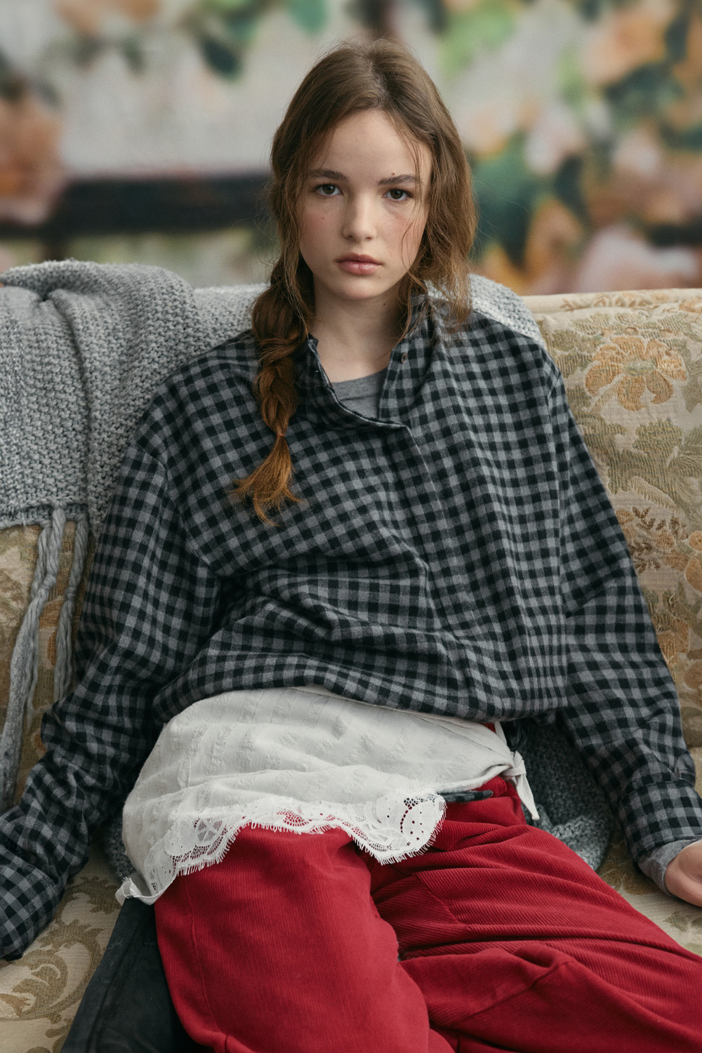 high neck hidden shirt (pearl check)_japan fabric