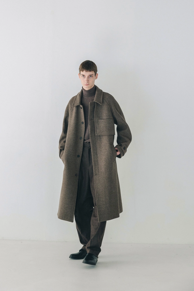 Flap pocket balmacaan coat ( twill brown )