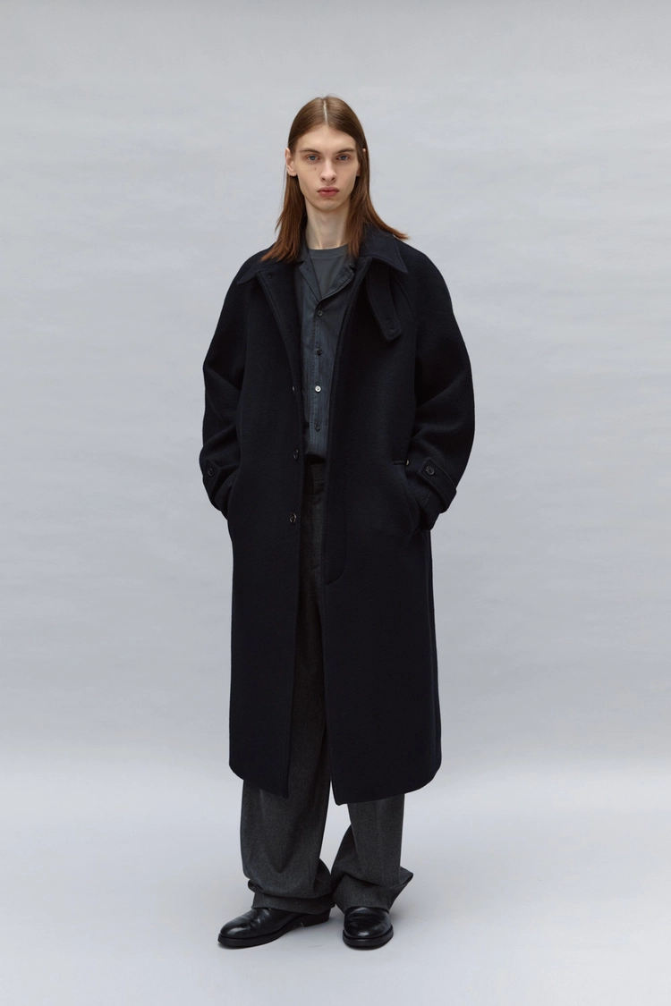 boucle balmacaan coat (navy)