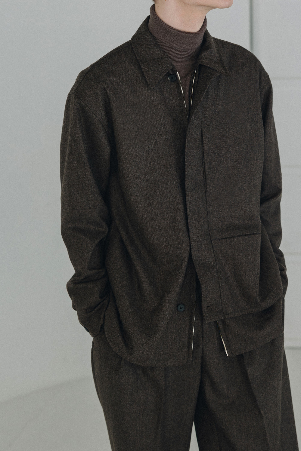 2nd open / Flap two way wool shirts jacket ( wood brown )