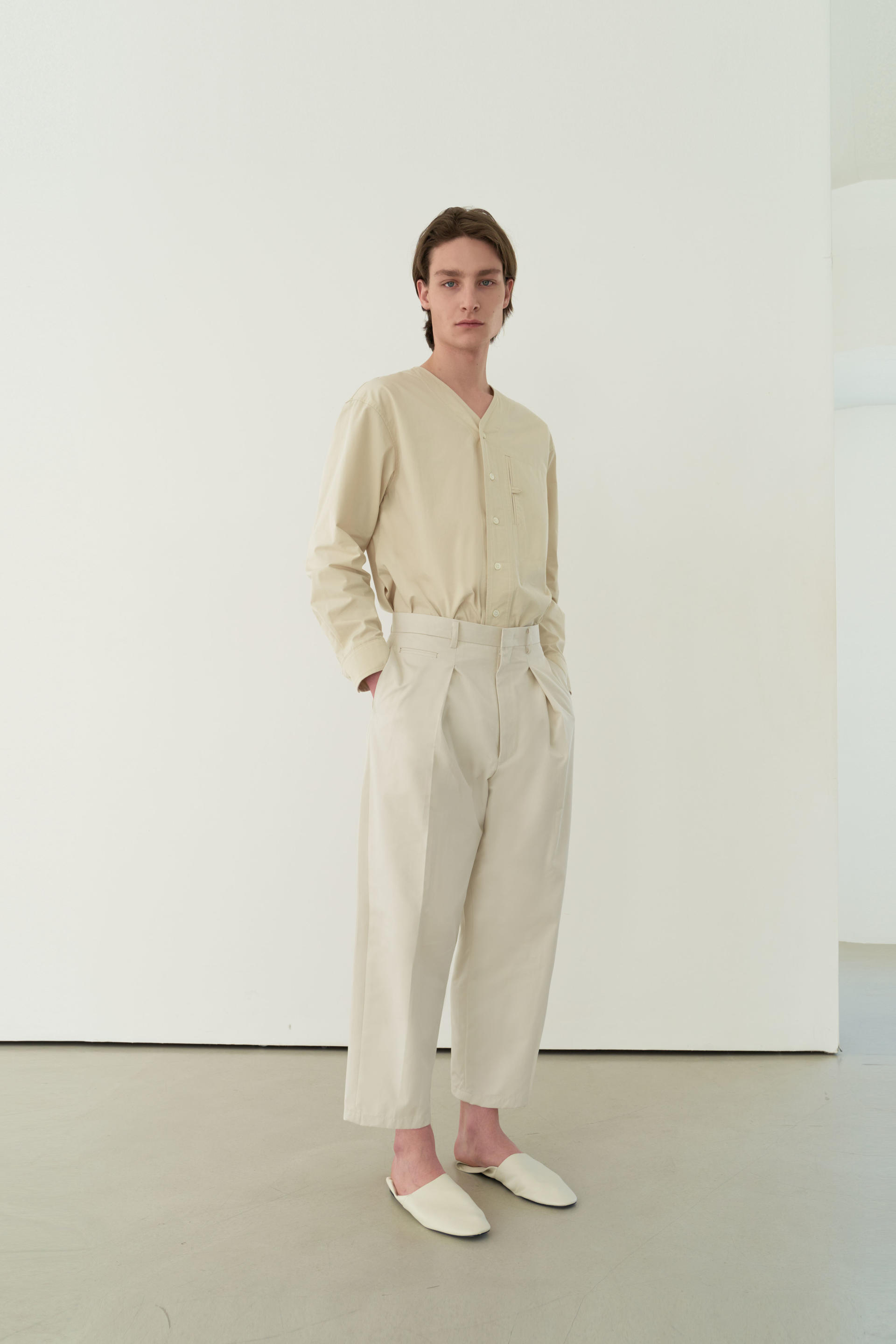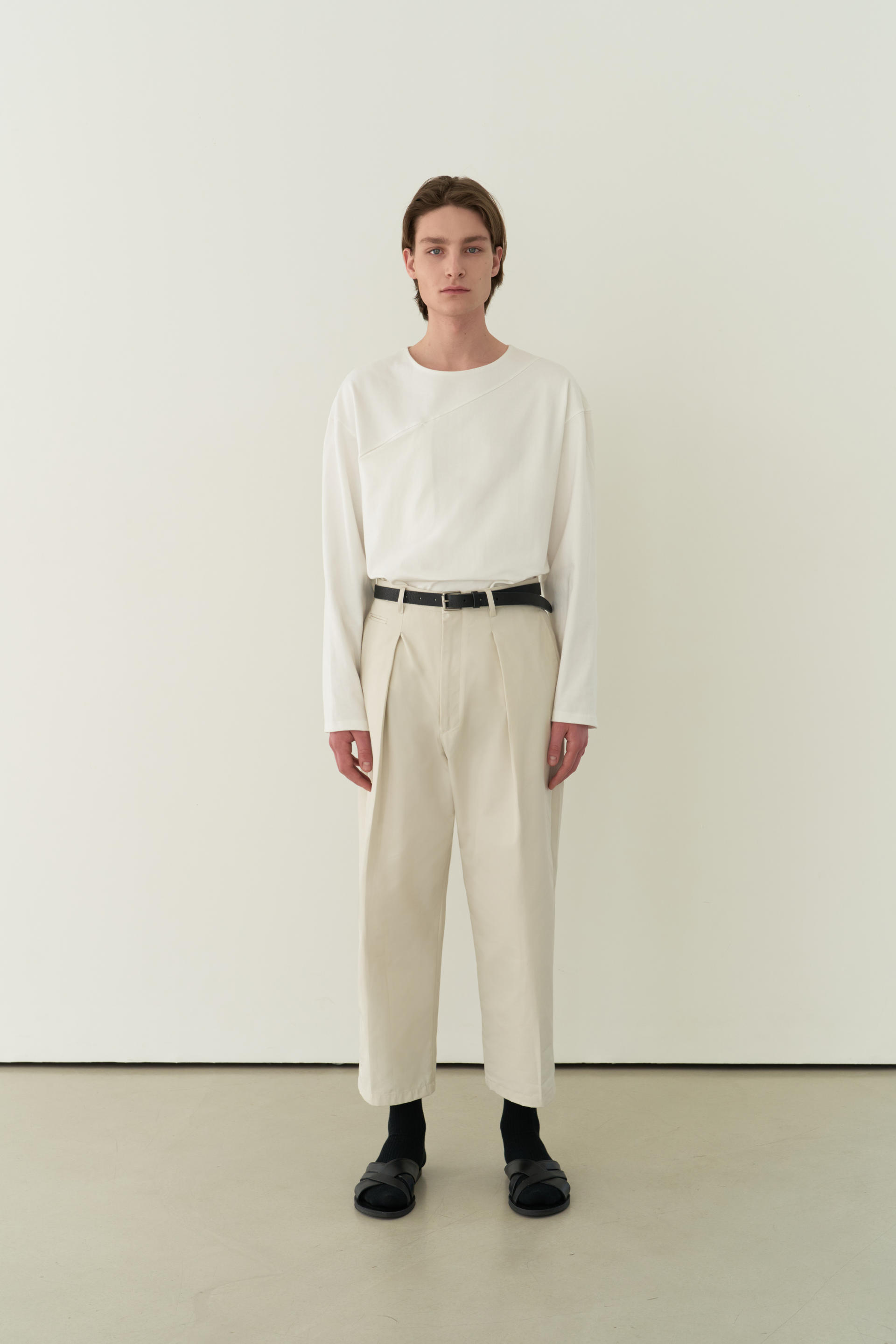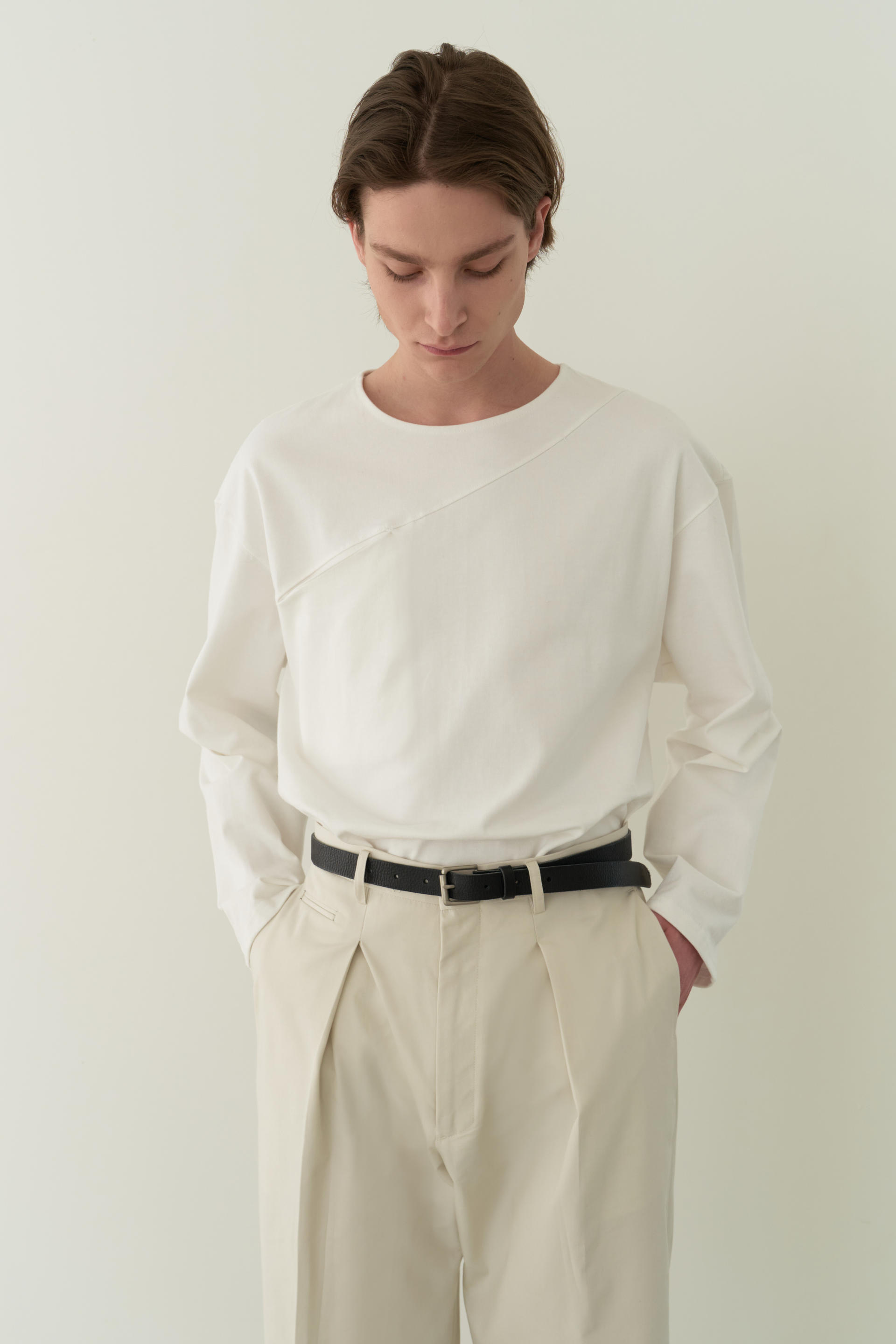 tuck curved chino pants (ivory)TIME SALE