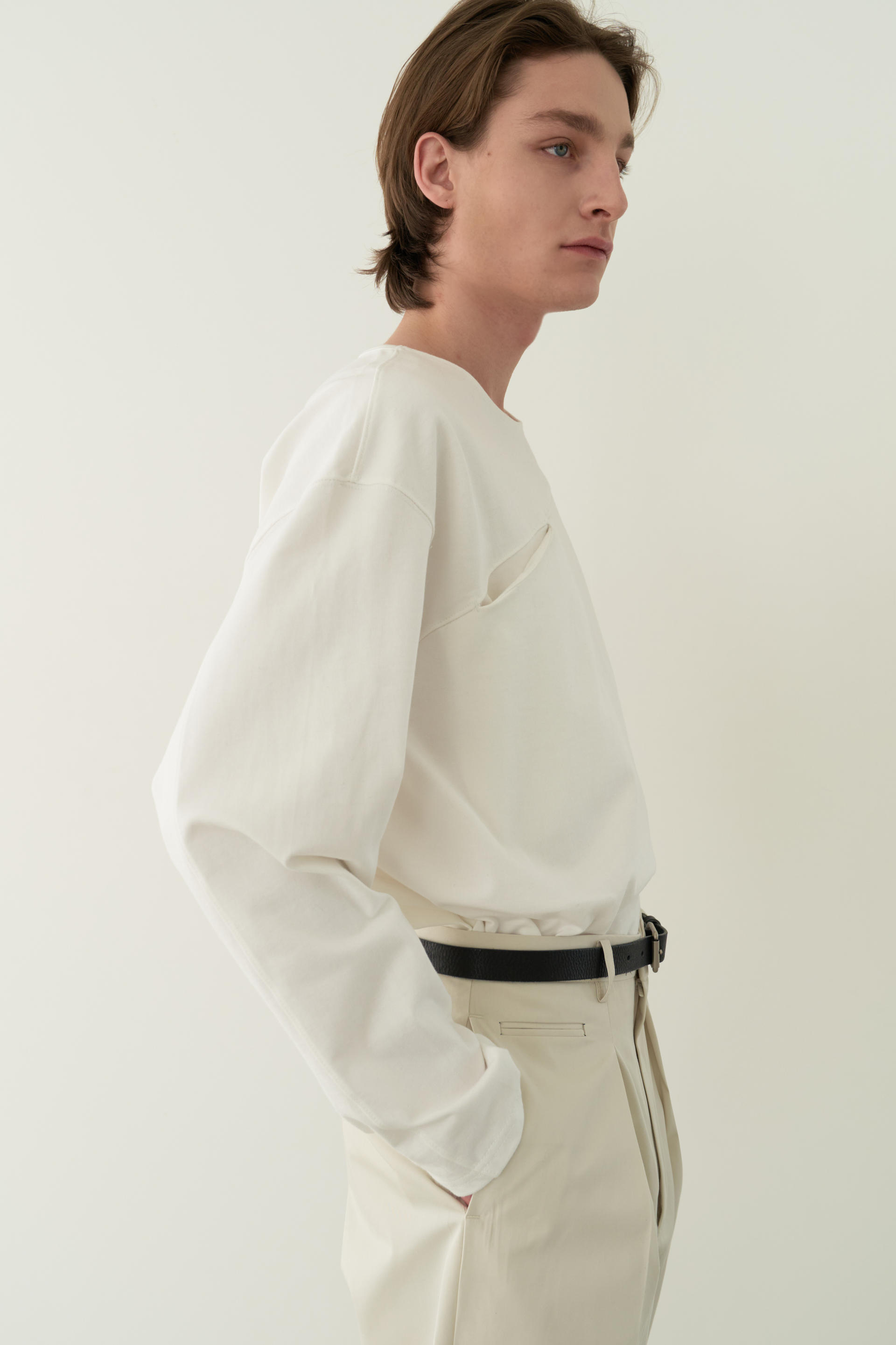 - 넓게 시작해 좁아지듯 떨어지는 실루엣이 인상적입니다.