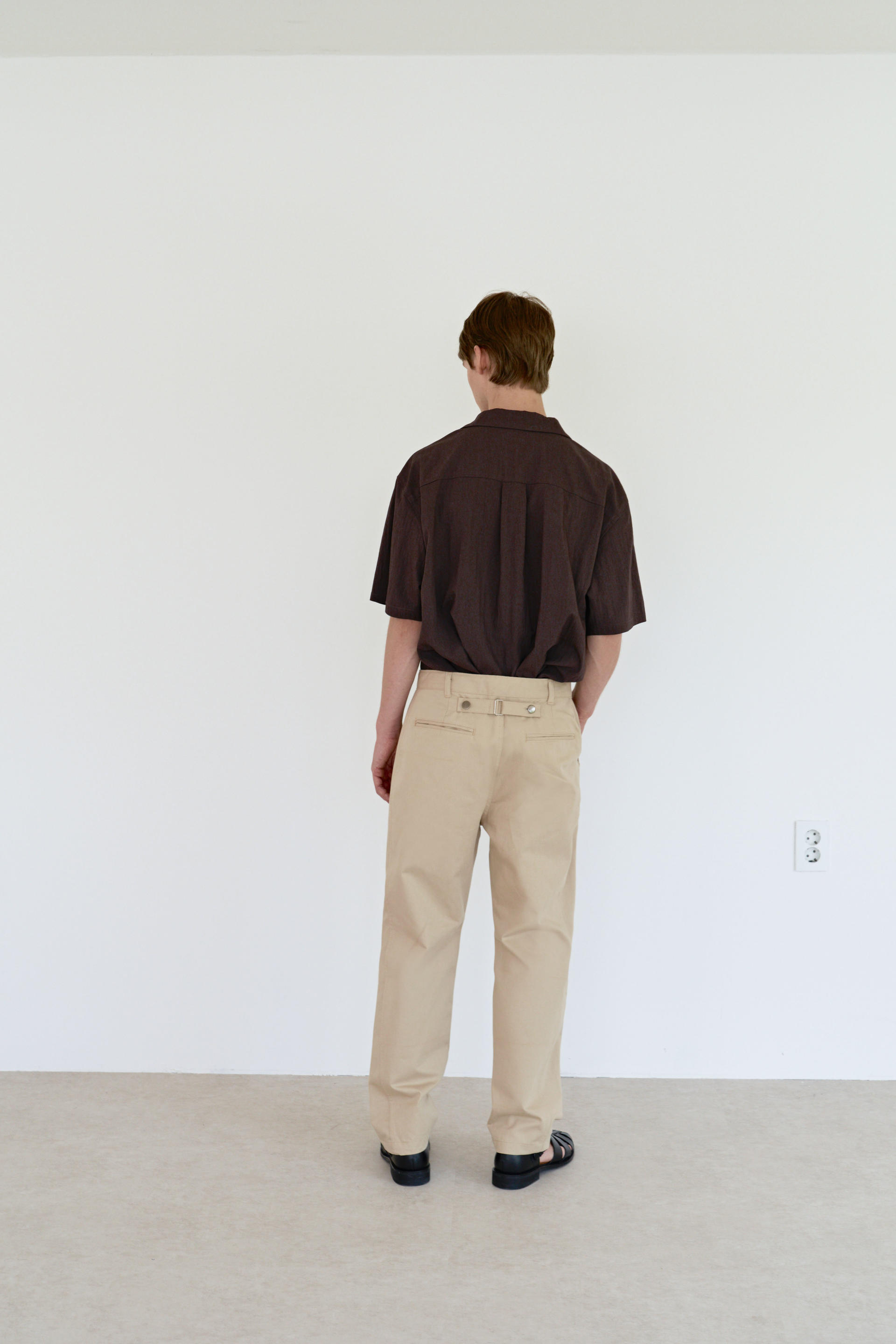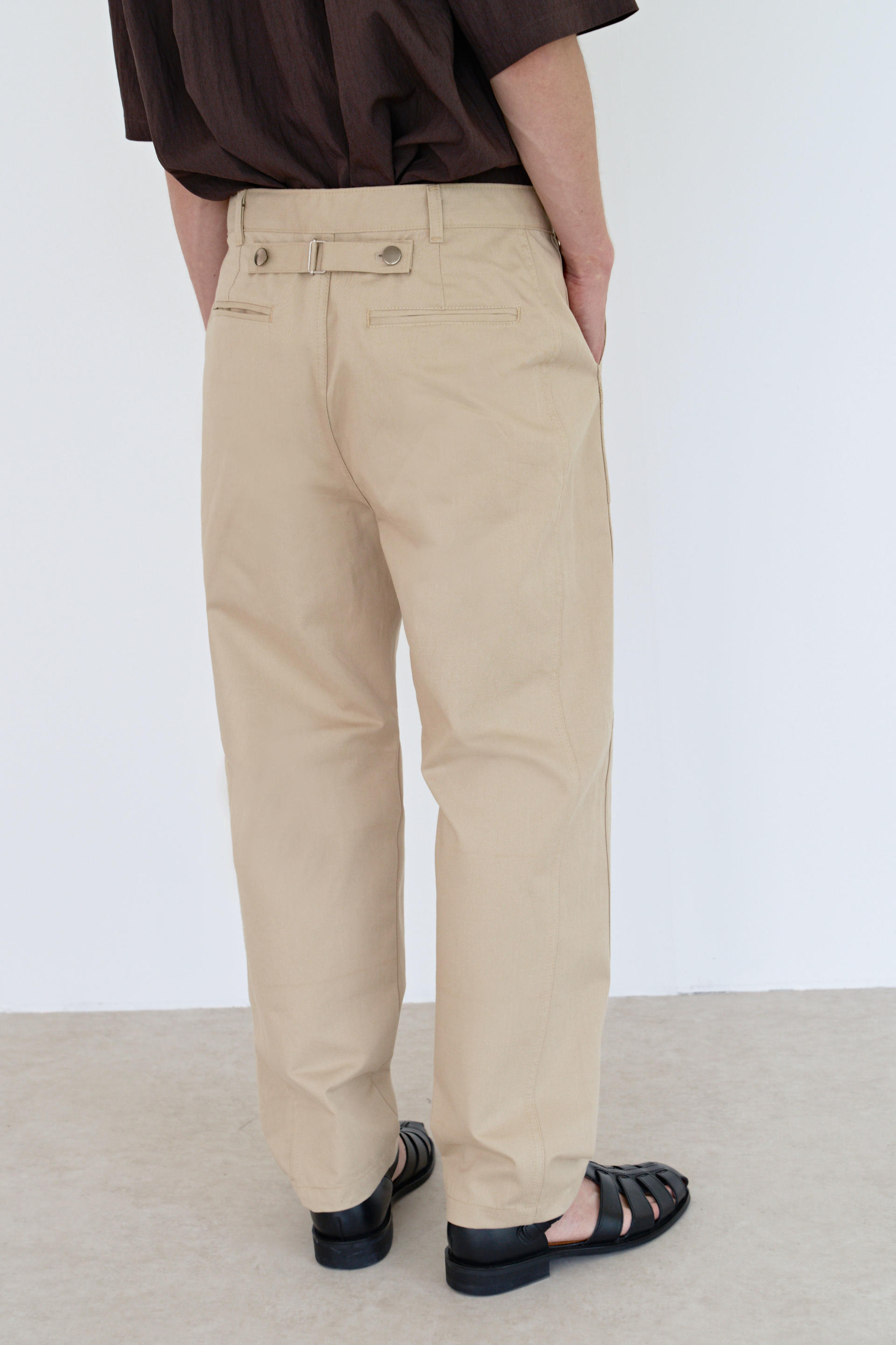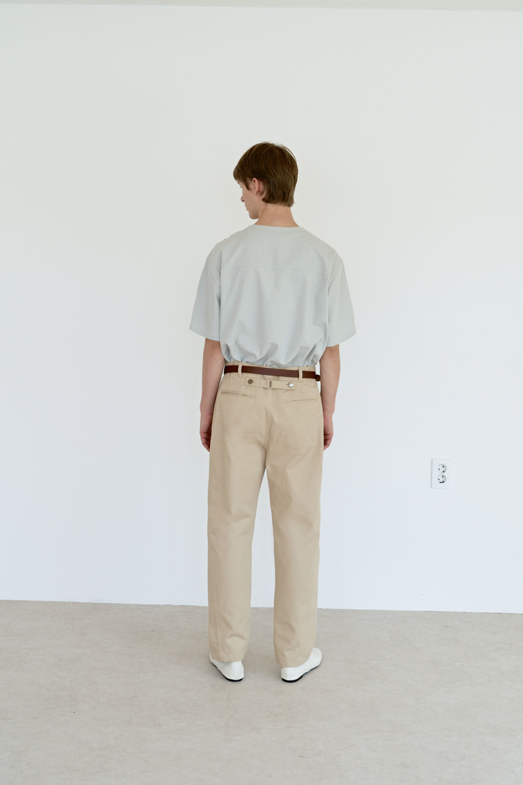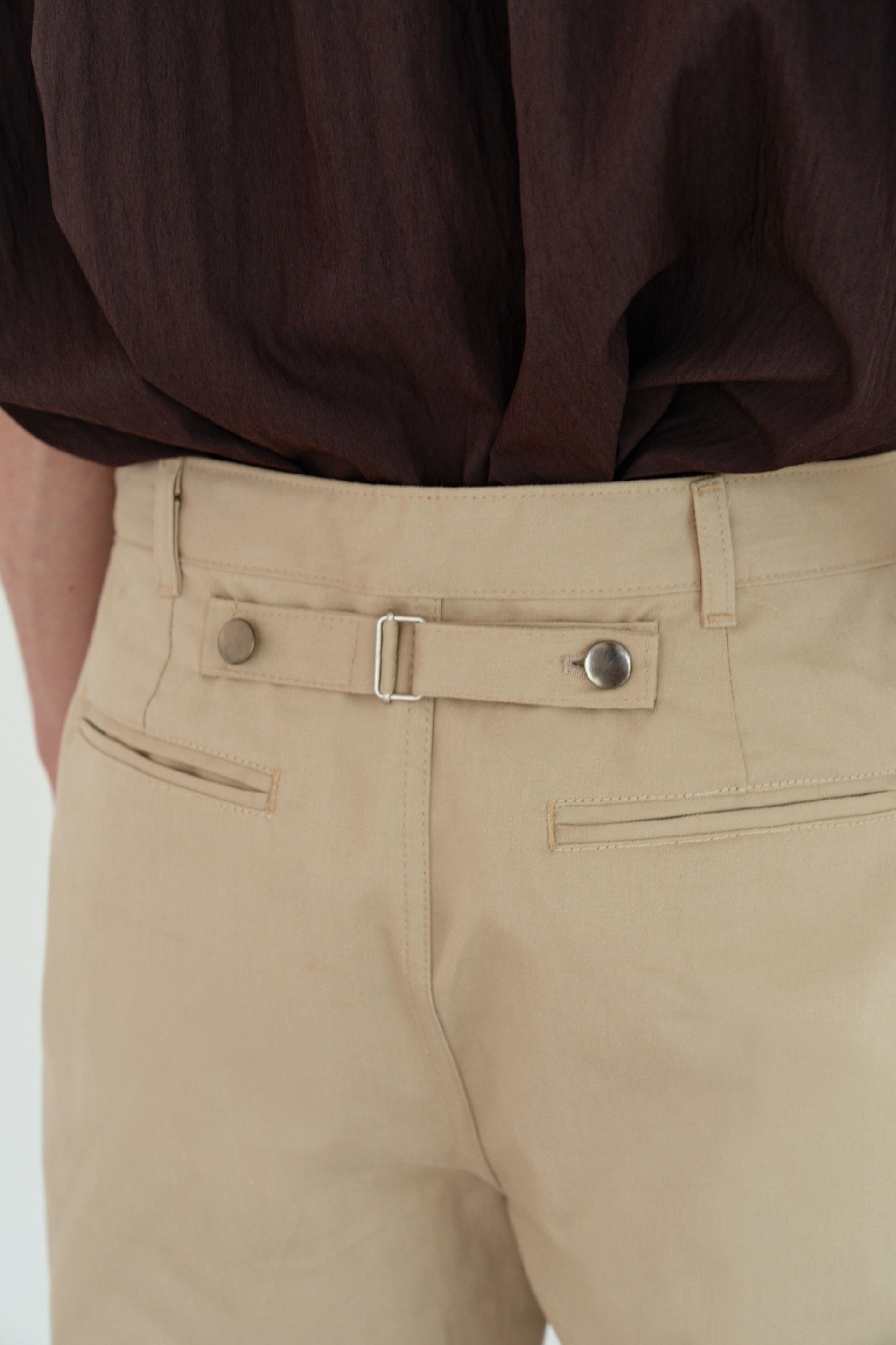 -허리 뒤 중심에는 일반적인 친치백 디테일과 달리 양쪽 비조에 켄톤을 사용해 벨트를 고정해 주는 동시에 디자인의 심미적인 측면을 강조했습니다.
