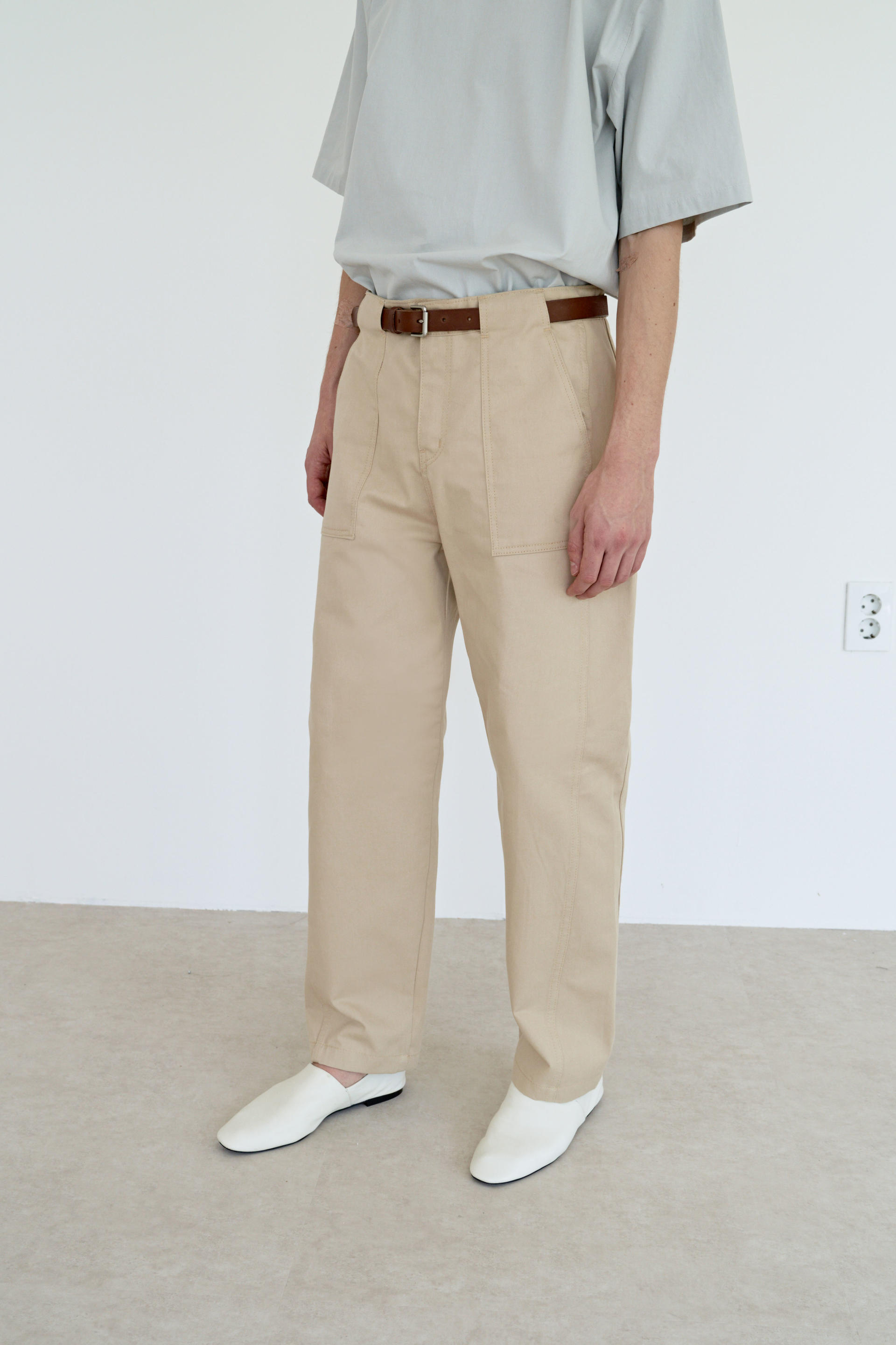 curved cutting pants (beige)TIME SALE