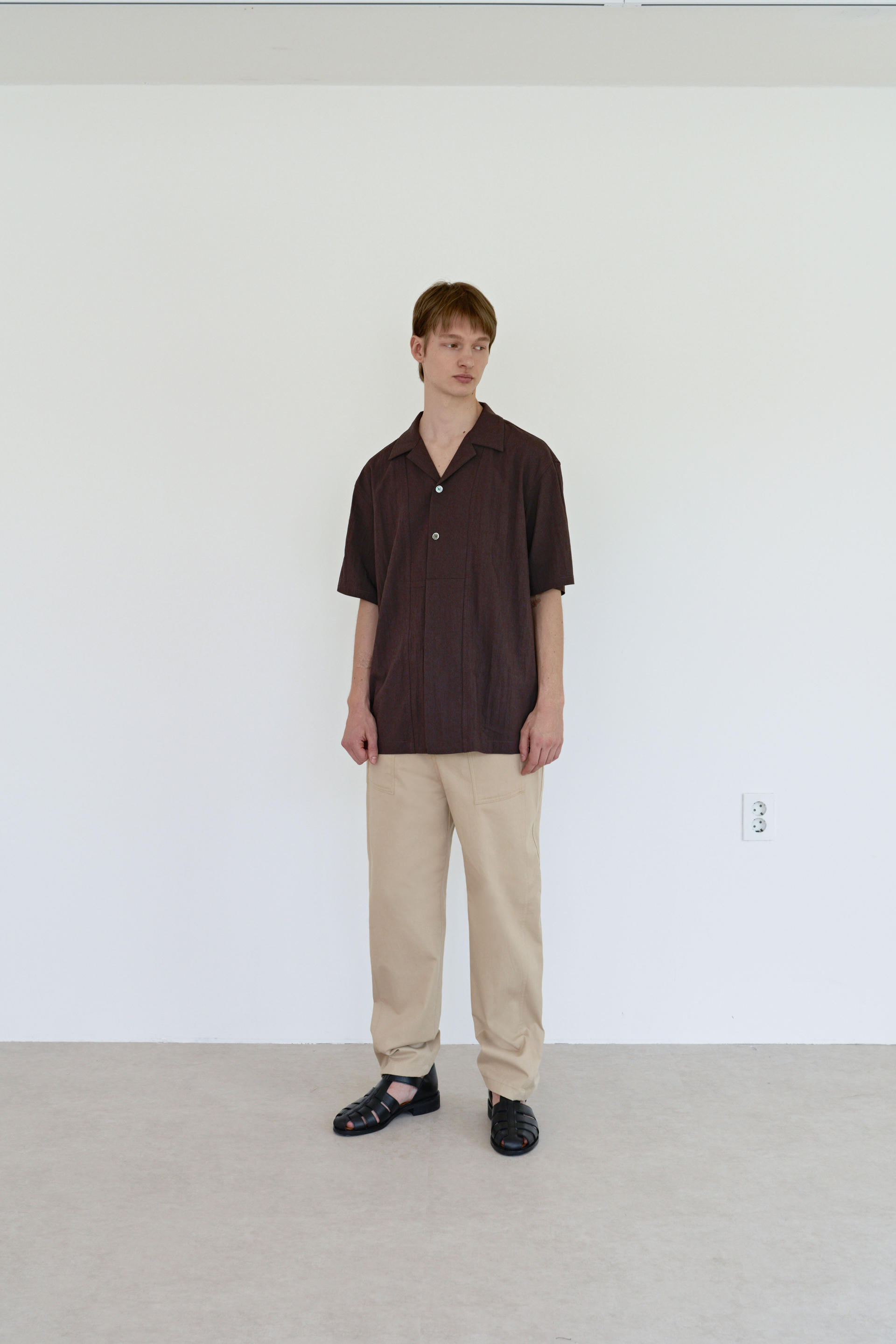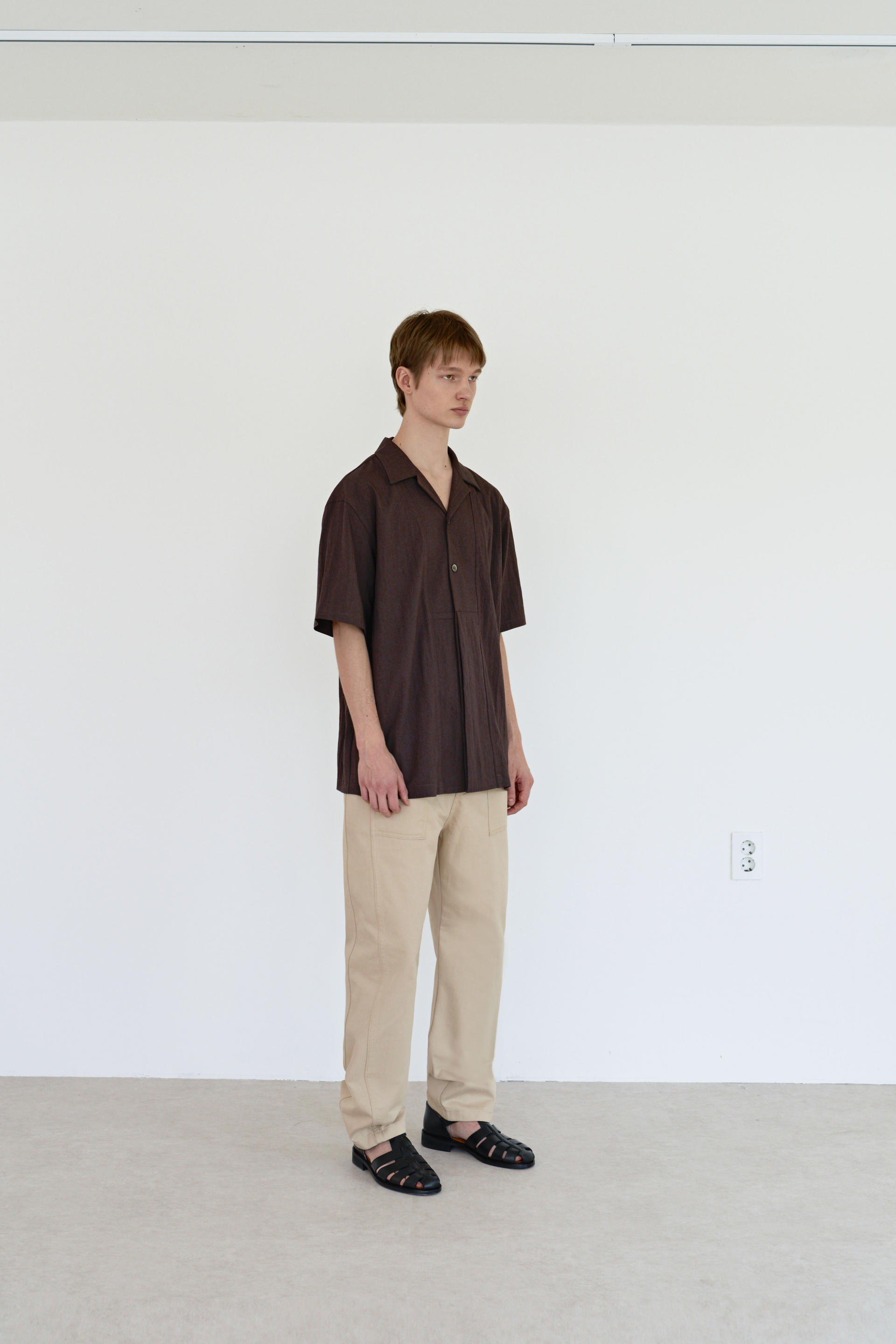 -앞 뒤 패널 사이에 옆 패널을 절개 및 봉제하였으며, 아래로 향하면서 곡선으로 떨어지는 절개라인이 특징입니다.