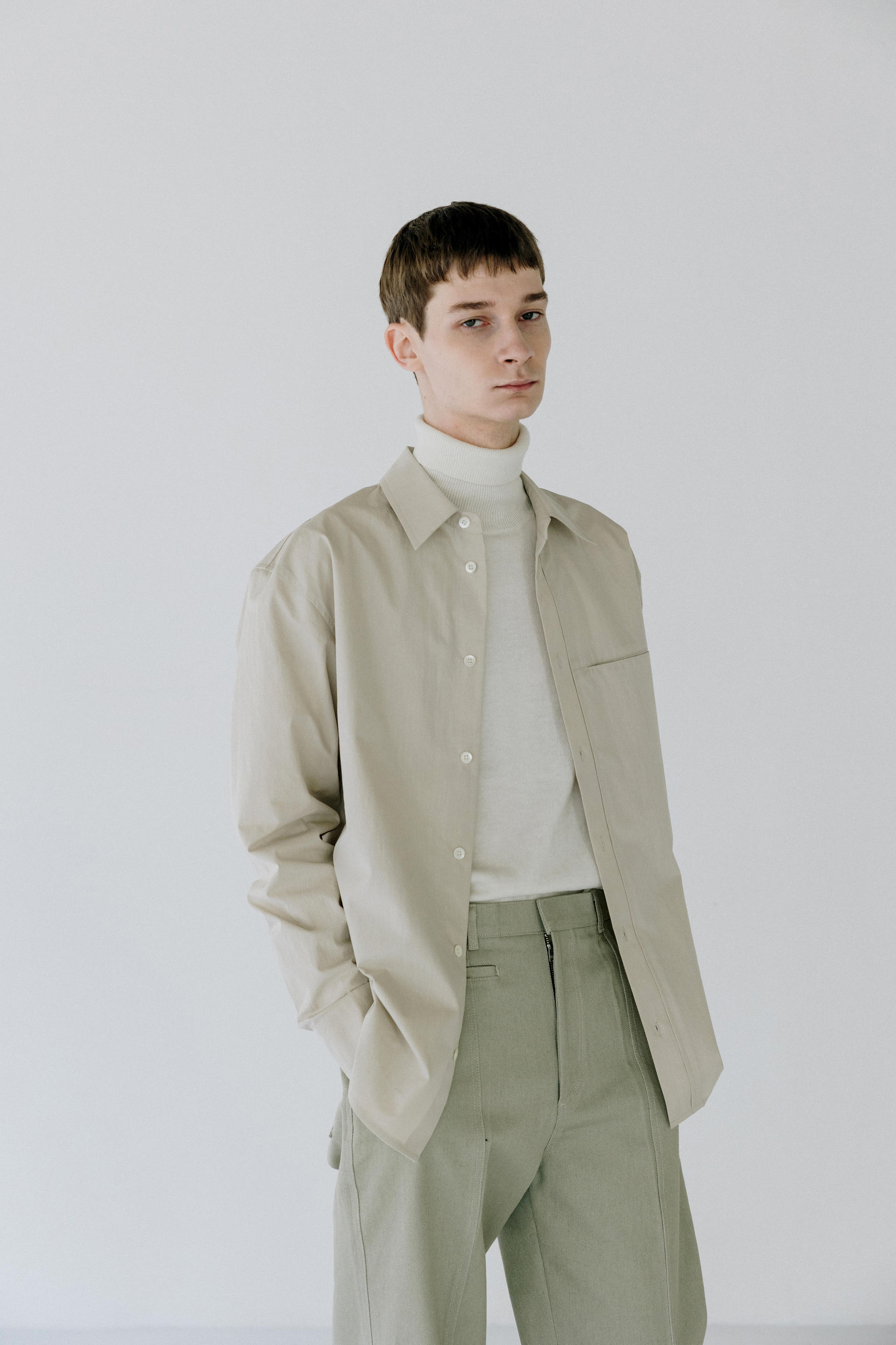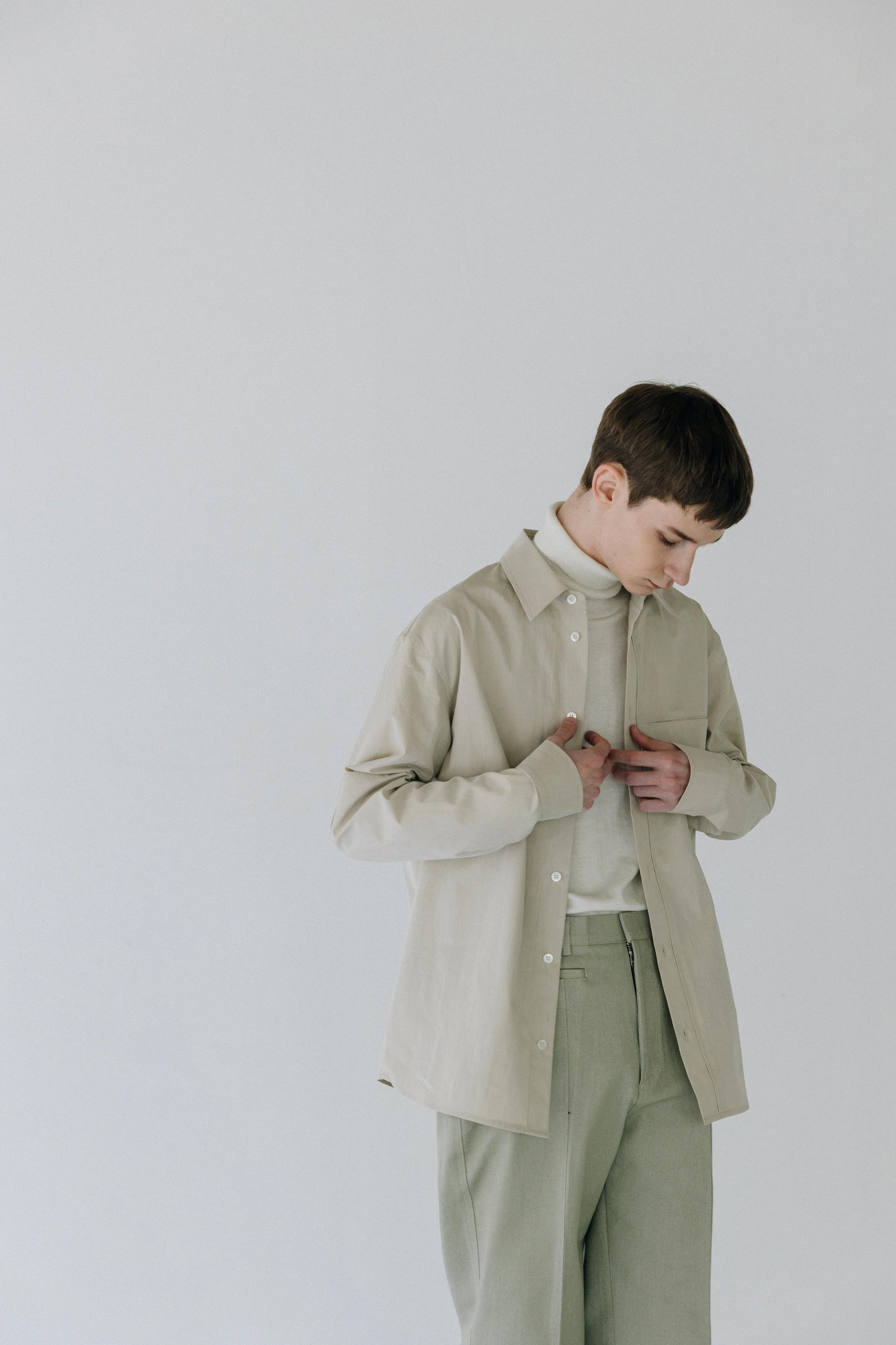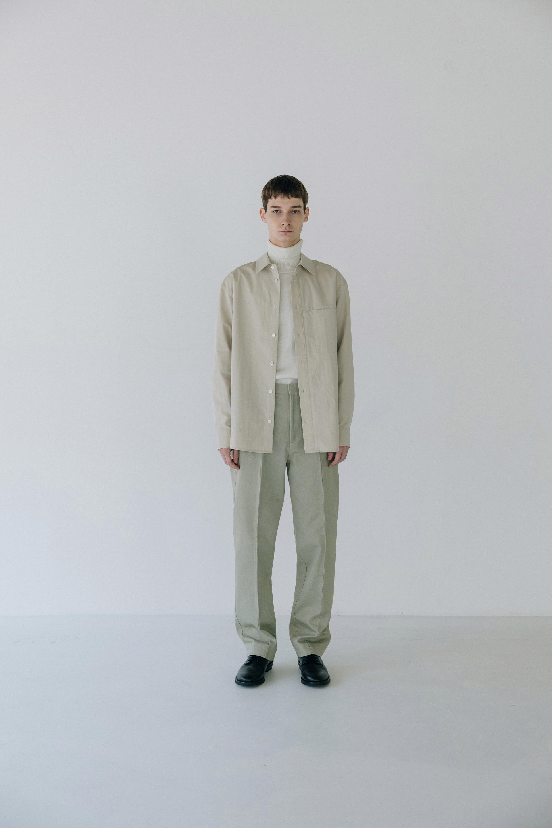 Under placket stitch shirts ( solid beige )TIME SALE