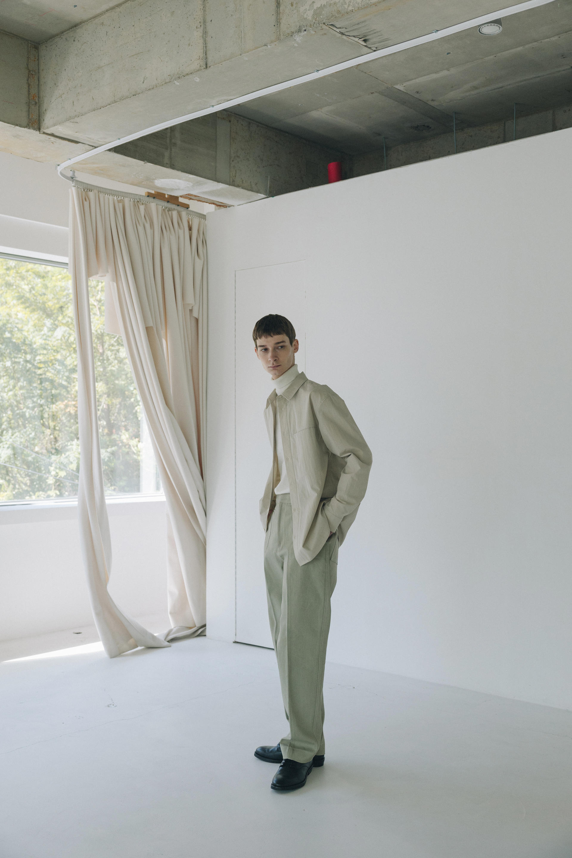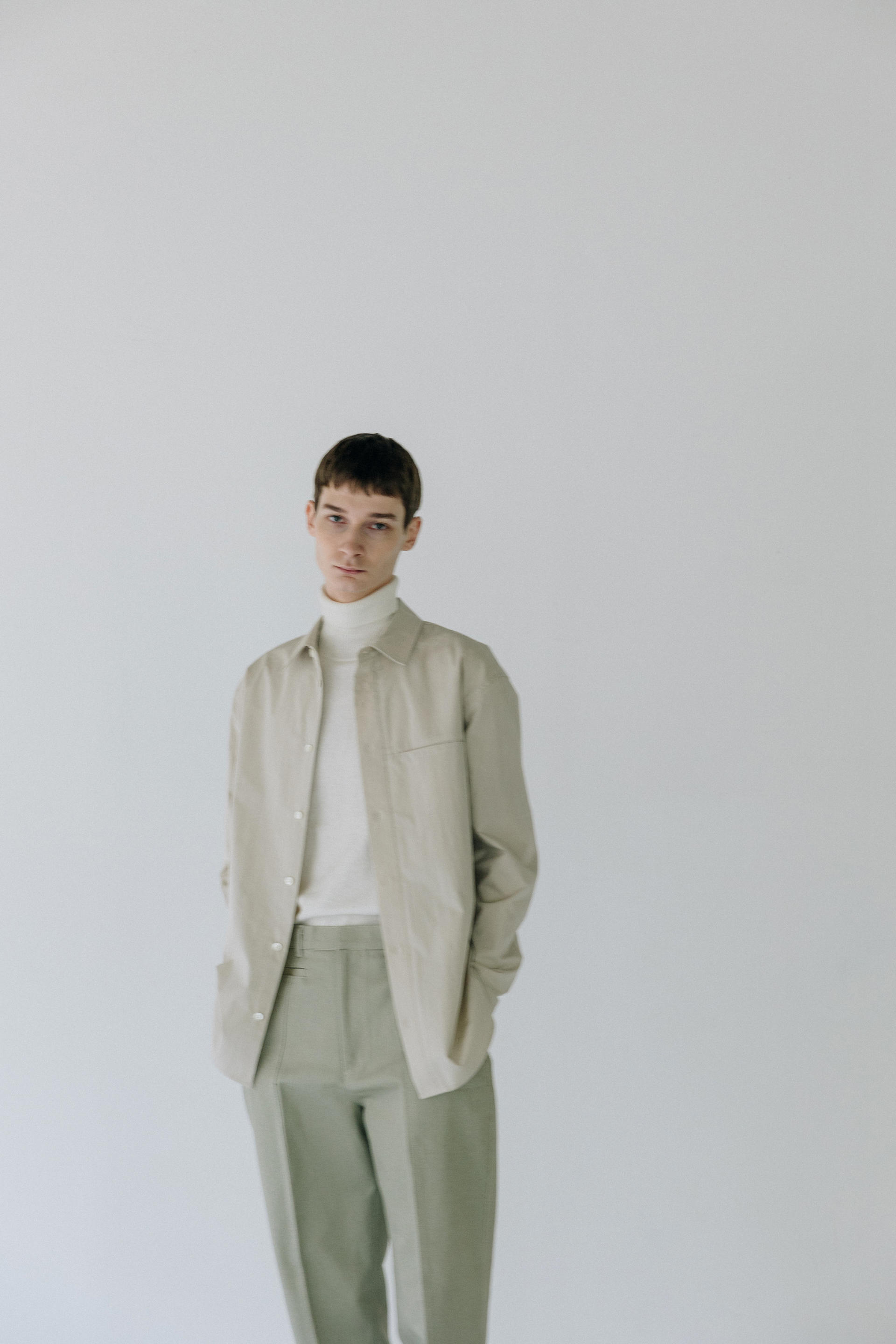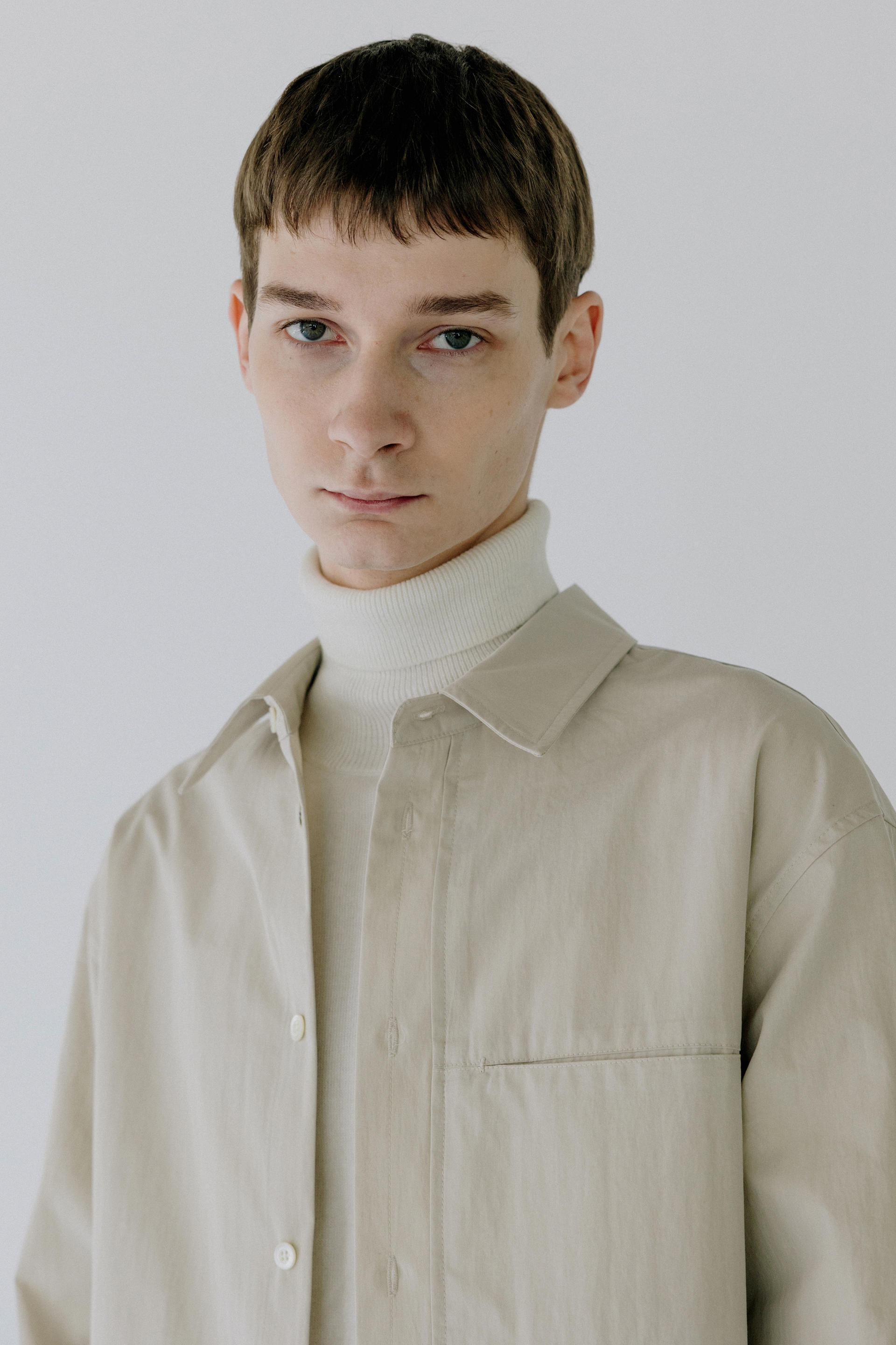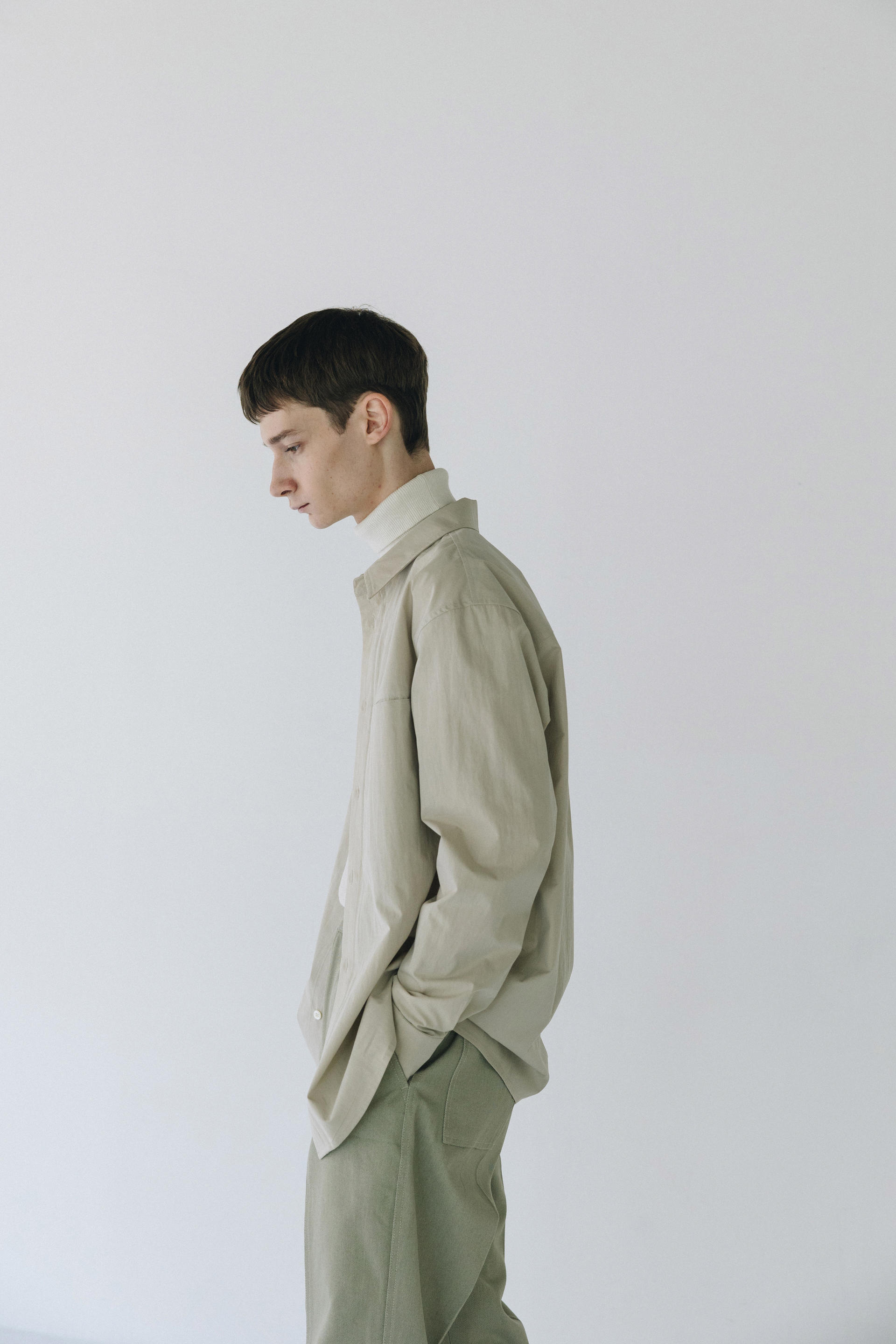 Under placket stitch shirts ( solid beige )TIME SALE