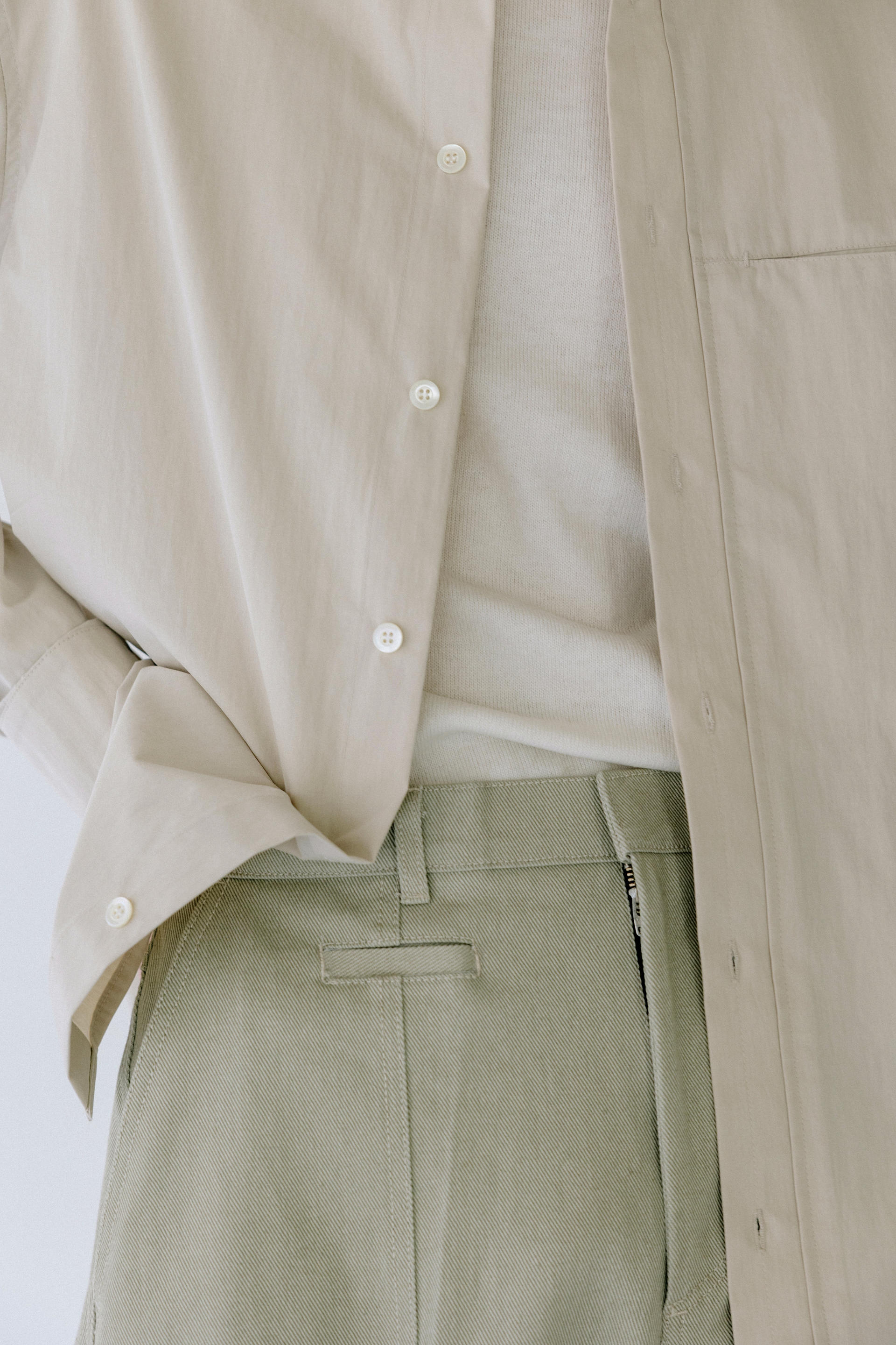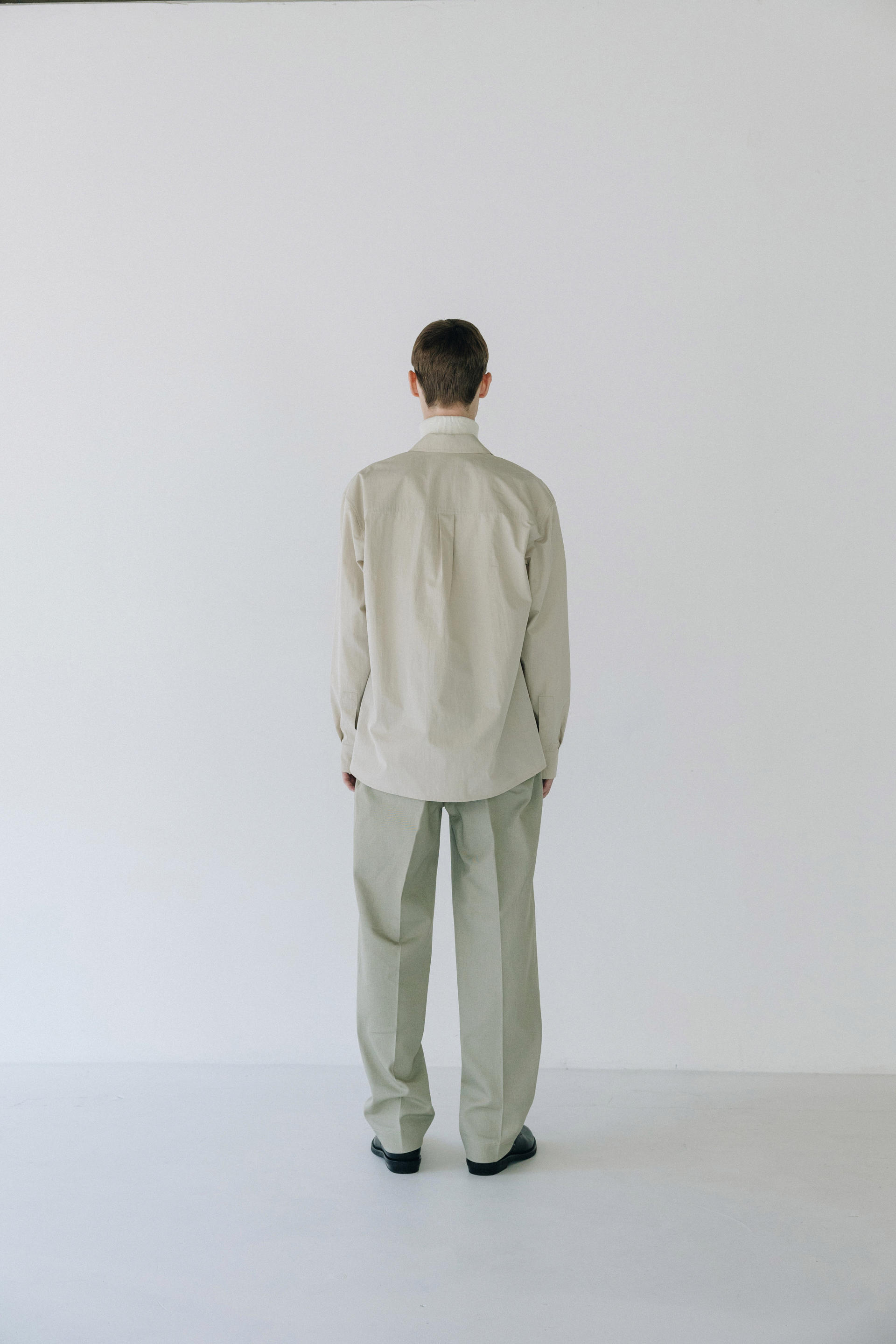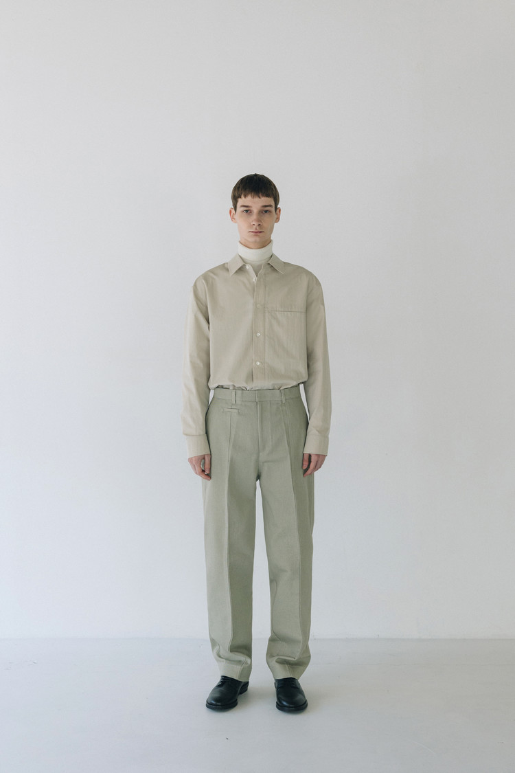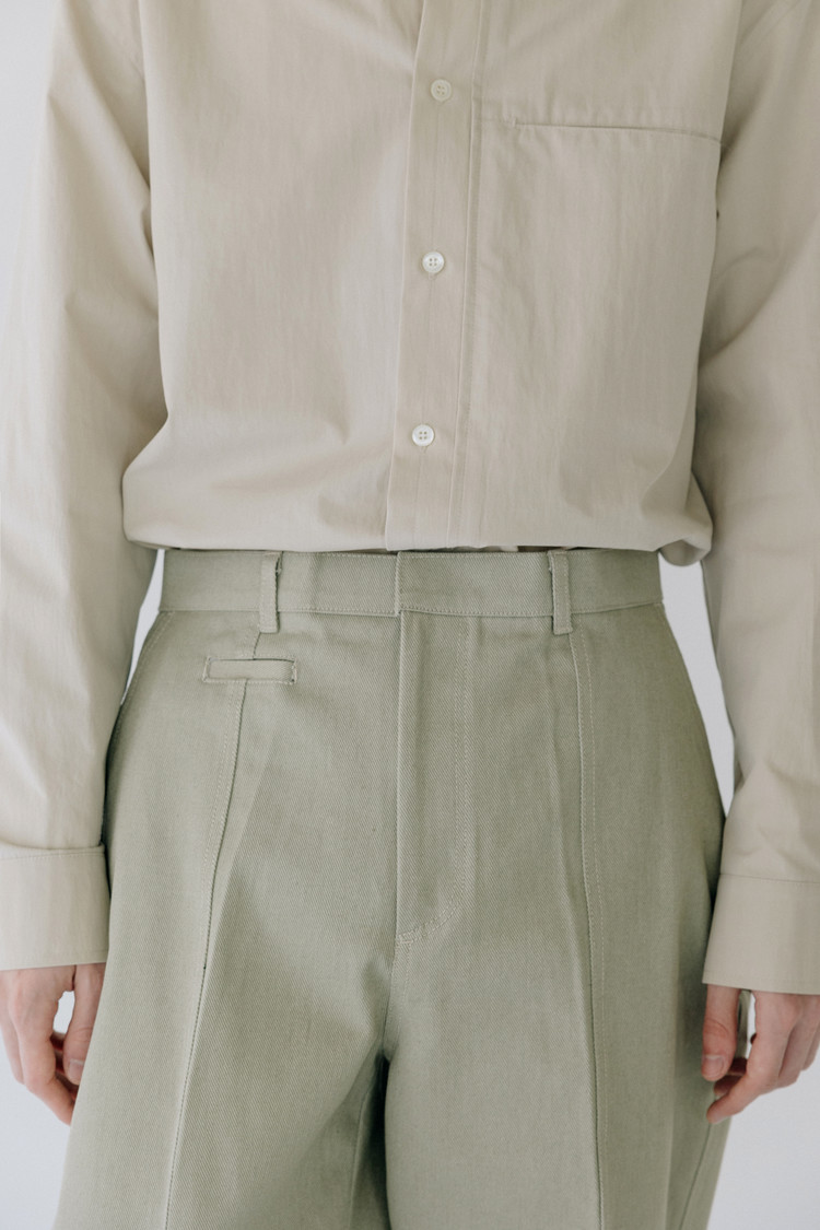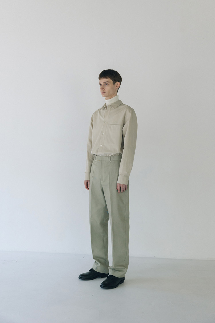 - 앞 패널은 두 개로 절개되어 쌍 스티치 봉제되었으며, 옷의 입체감을 더욱 살려줍니다.