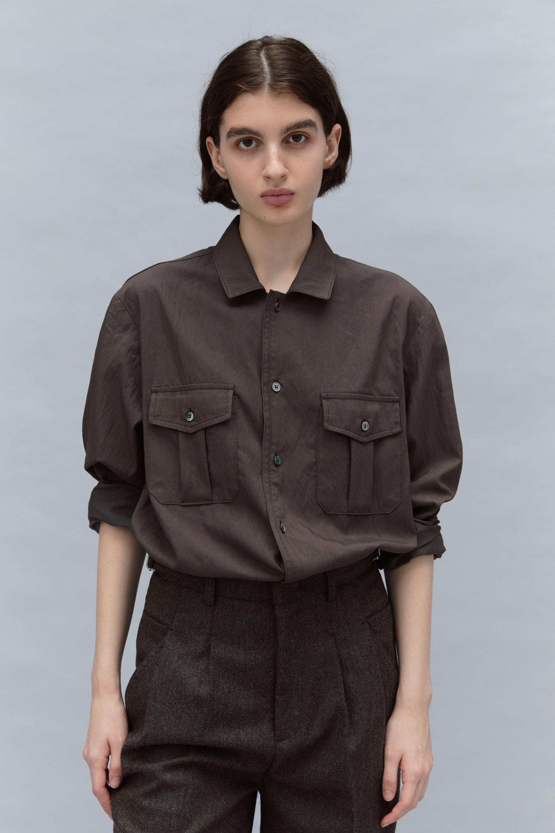 - 턱 사선으로 주머니 처리를 하였으며 아래로는 아웃포켓이 이중으로 달려 있습니다.