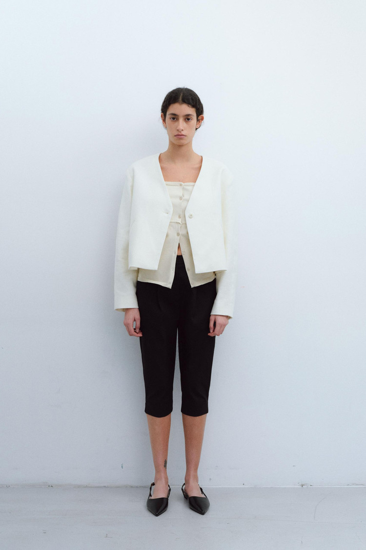 linen crop jacket (cream)TIME SALE