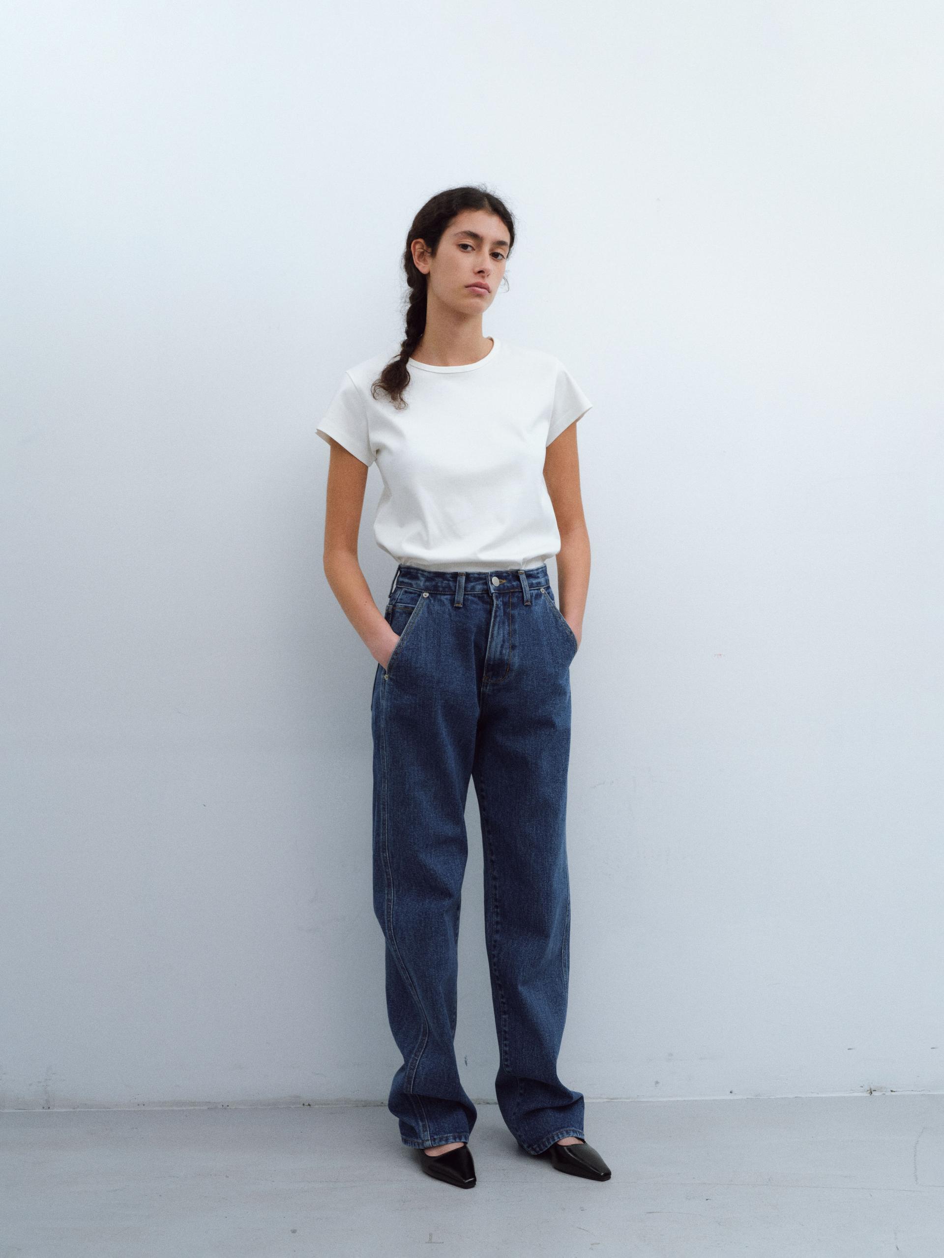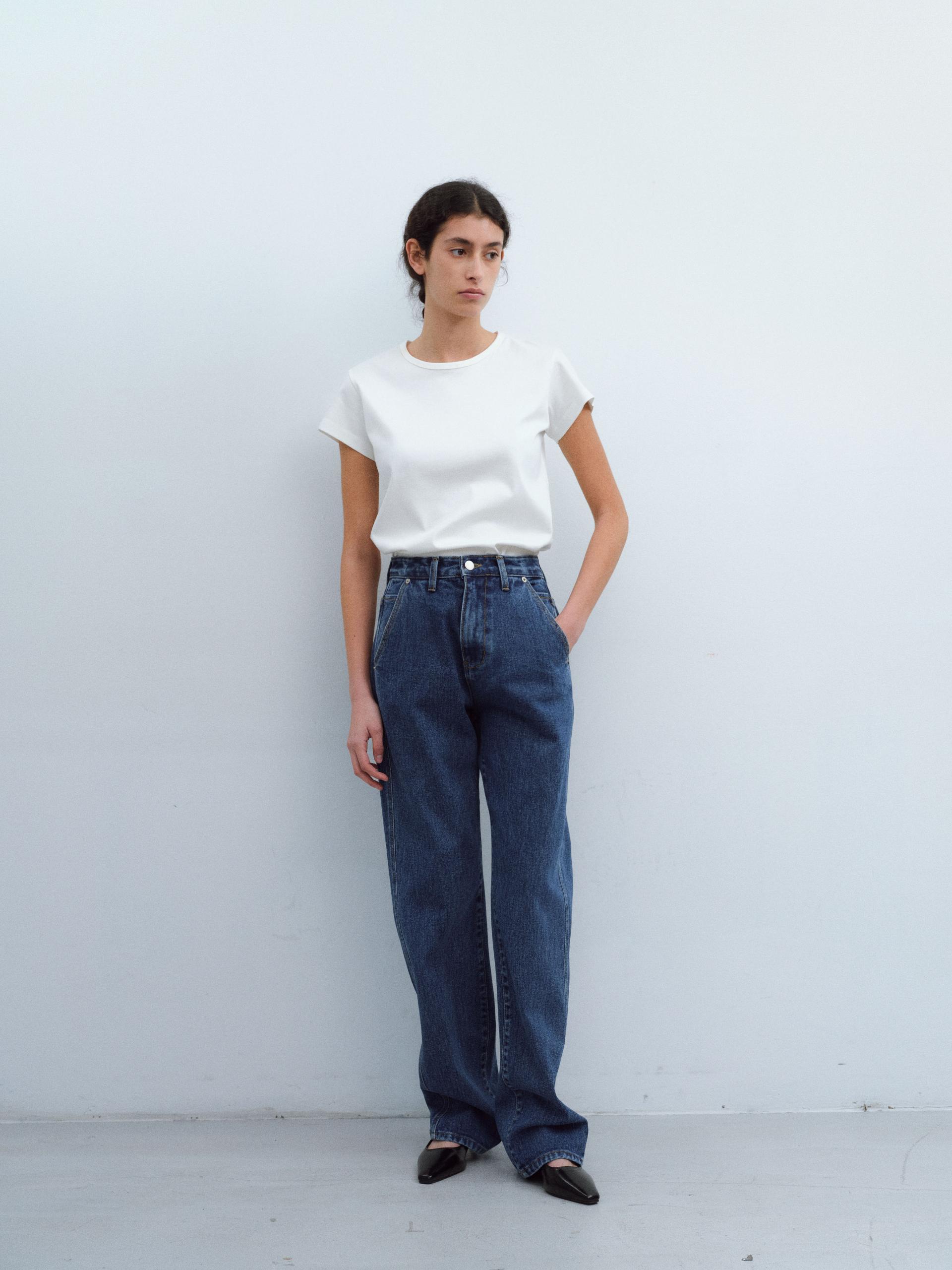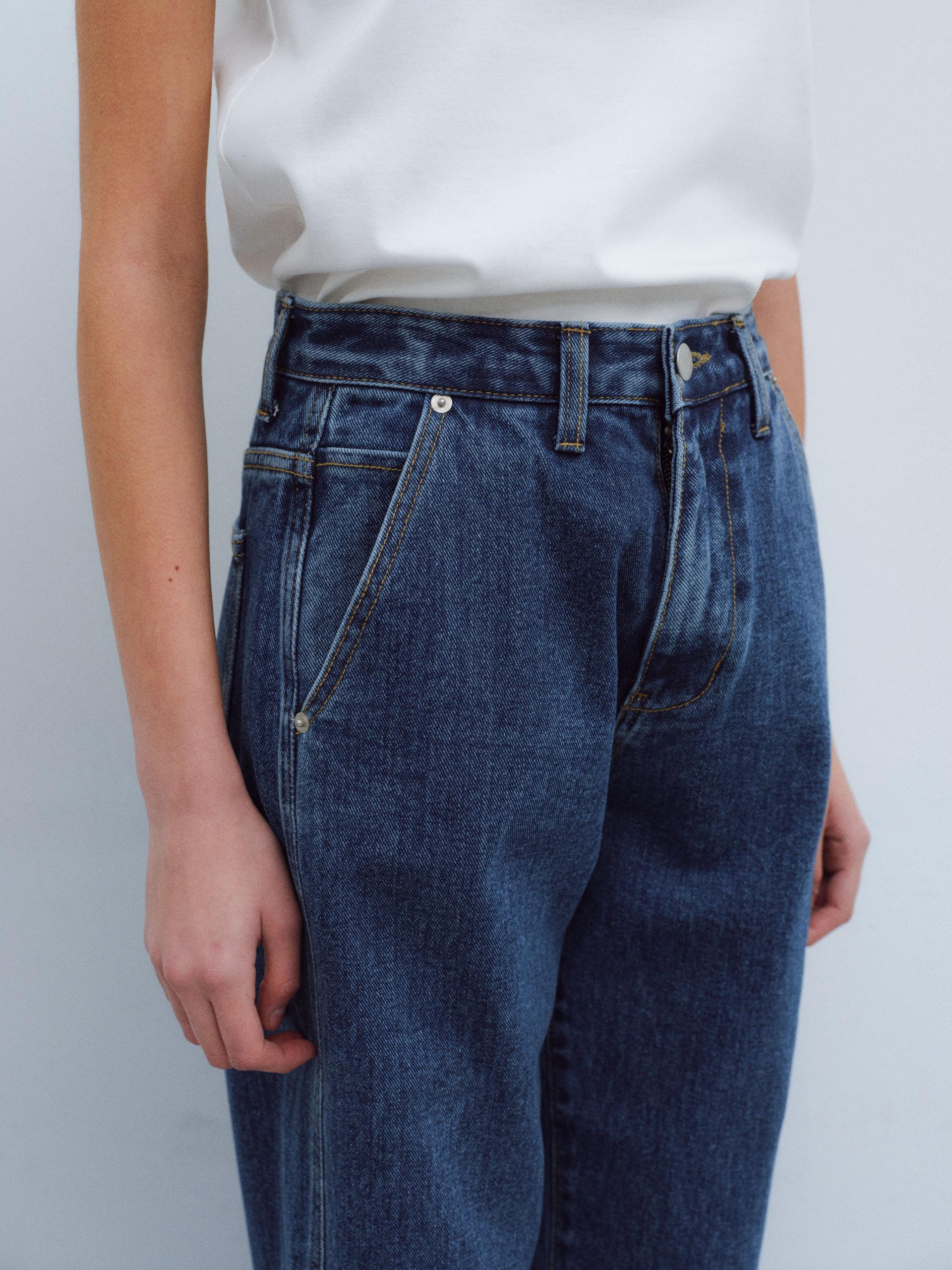 - 10수 생지 데님을 워싱한 빈티지한 색감의 중청 데님입니다.