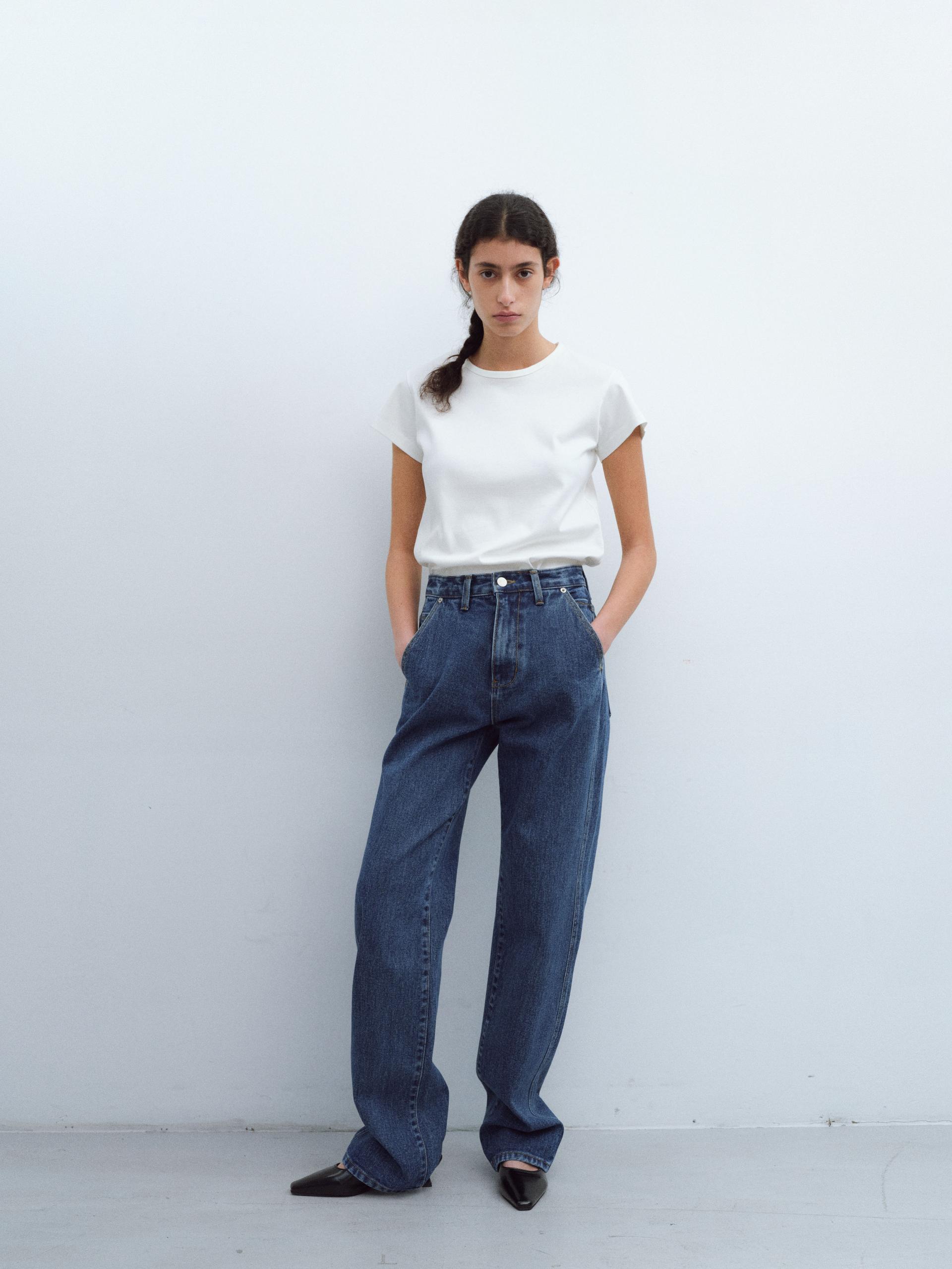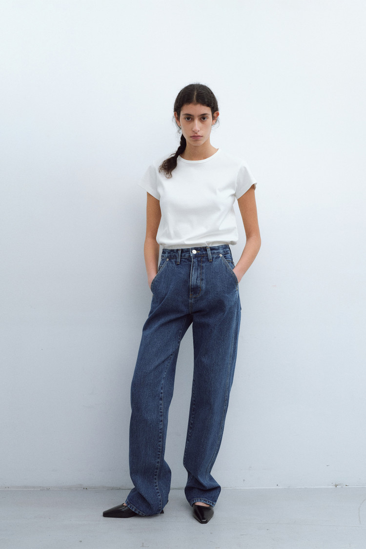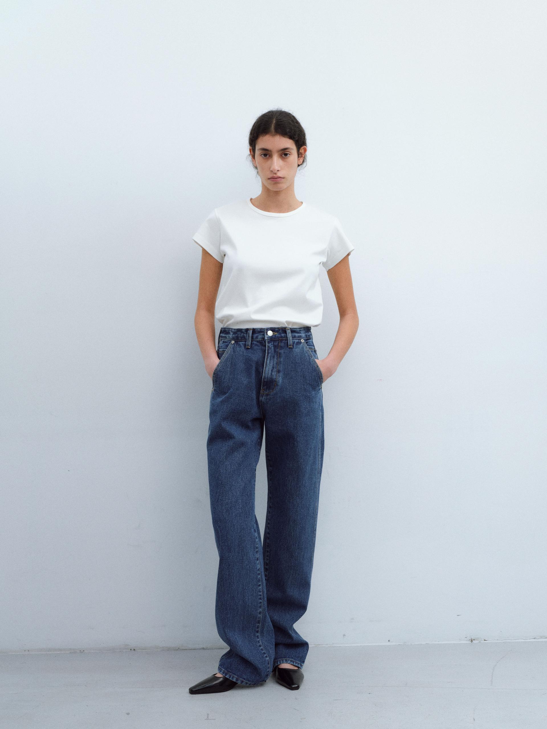 - 10수 생지 데님을 워싱한 빈티지한 색감의 중청 데님입니다.