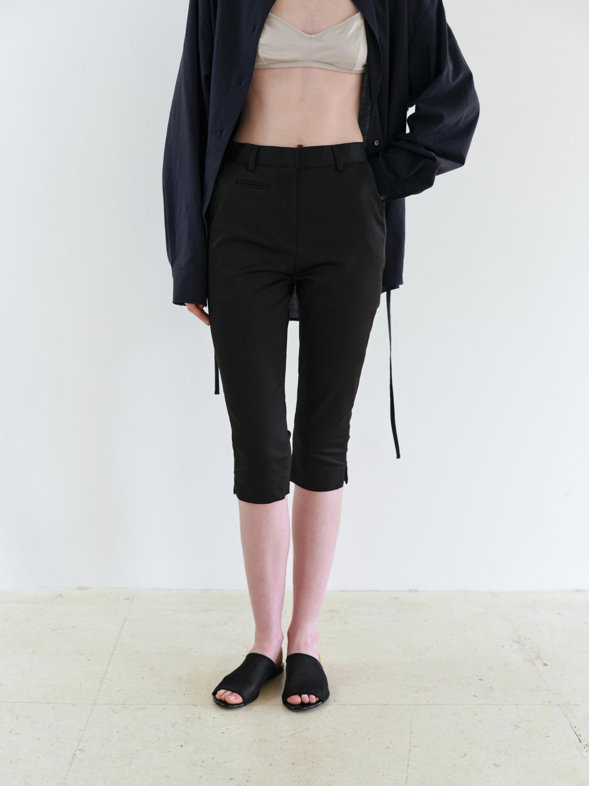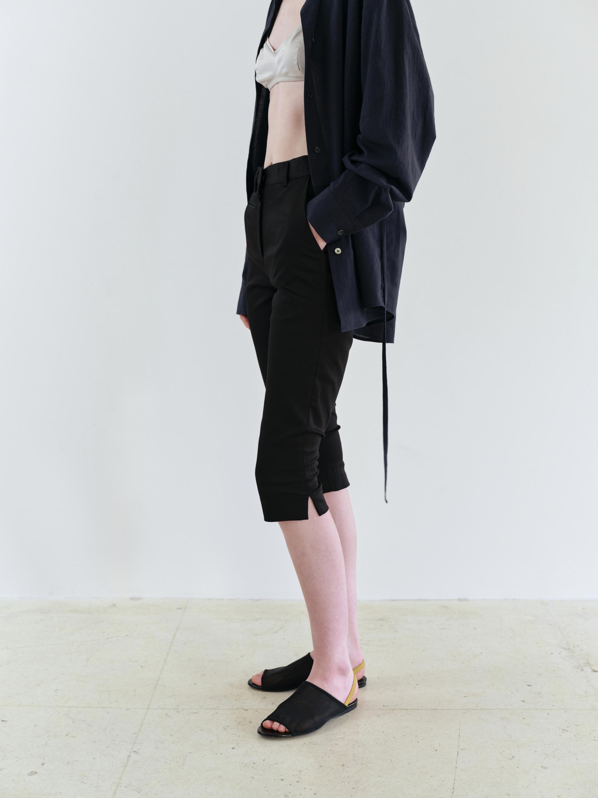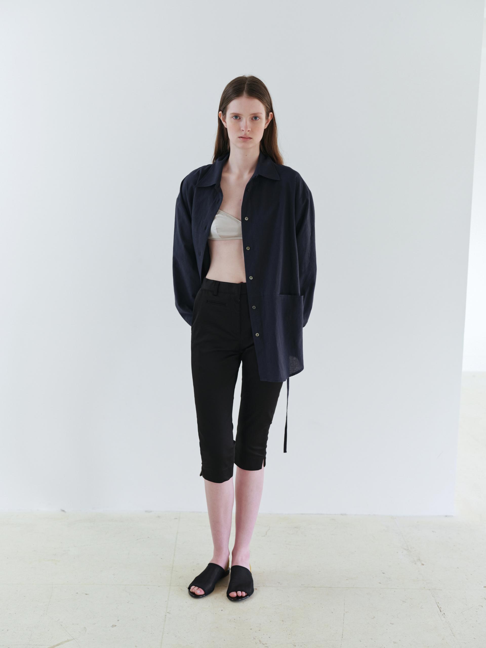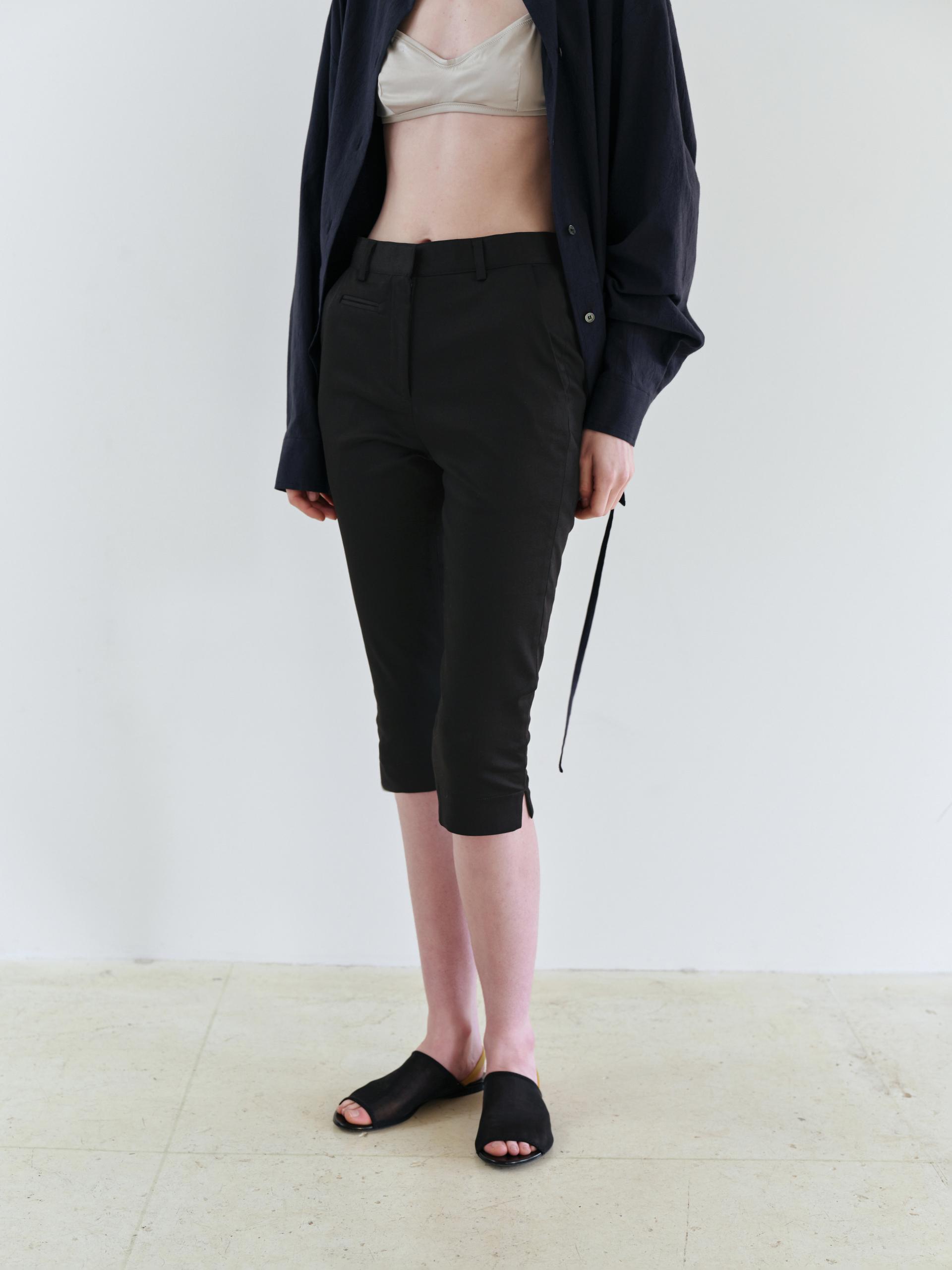 - 무릎을 덮는 6부 기장과 앞 패널 립포켓이 특징입니다.