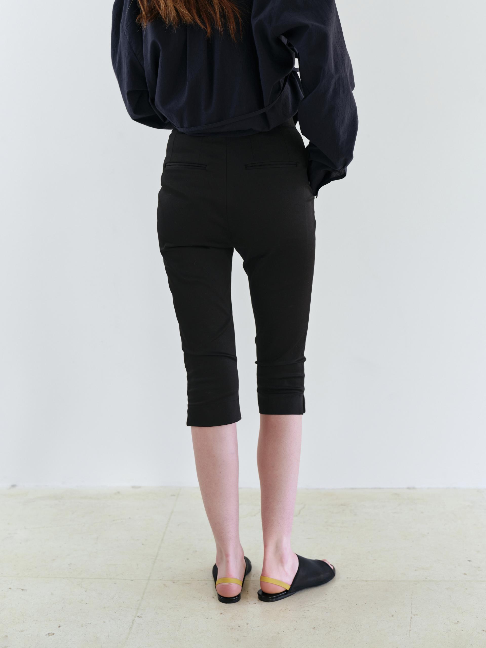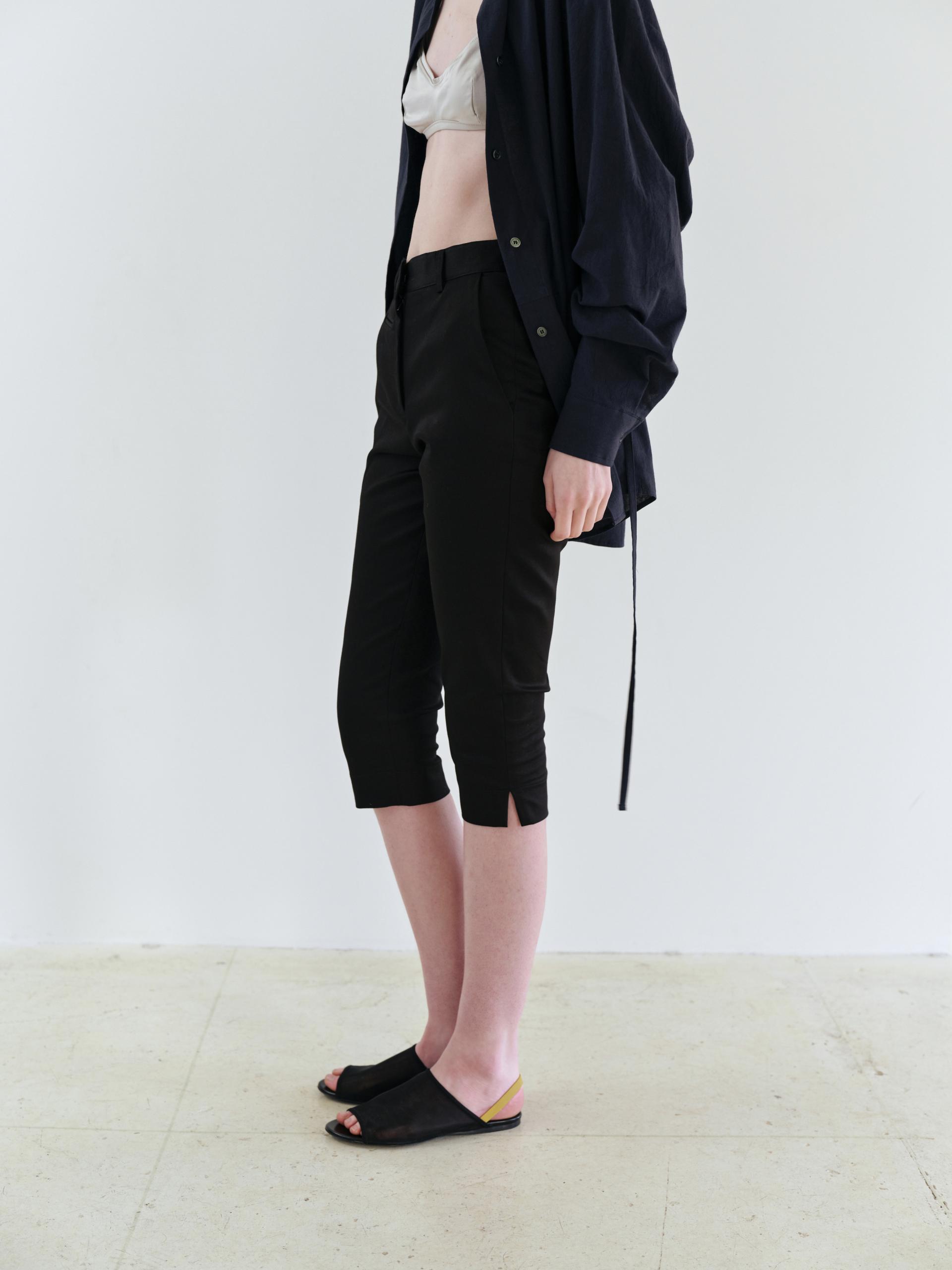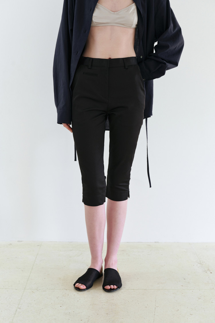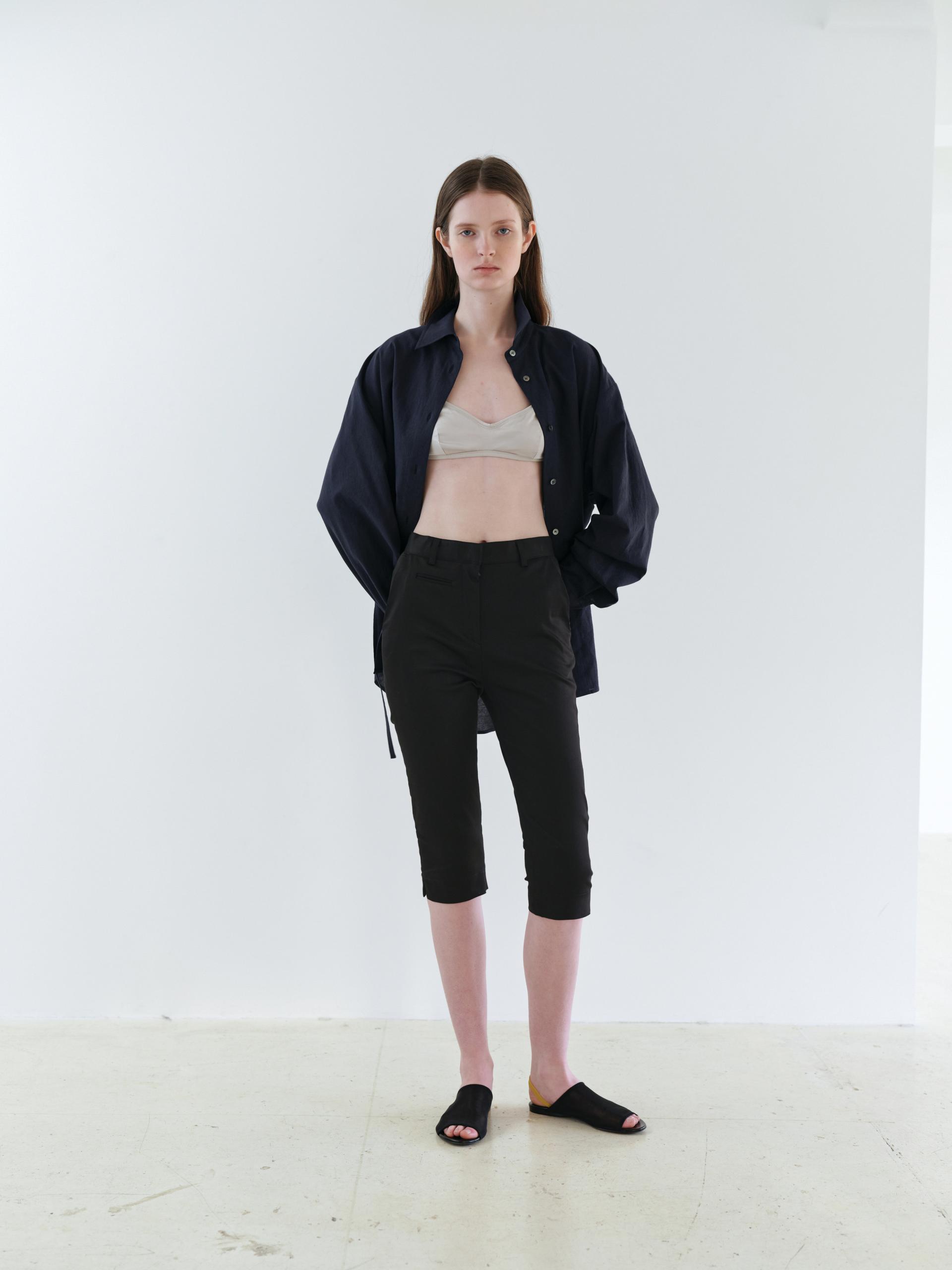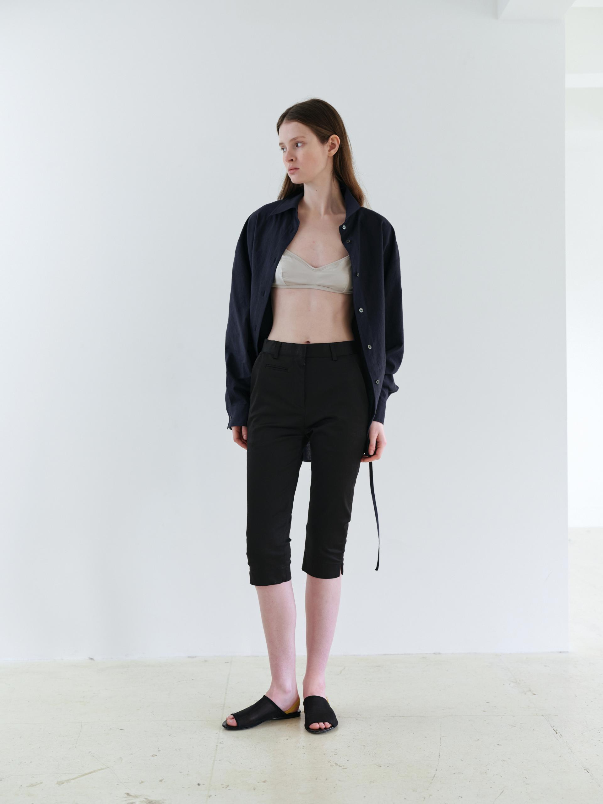 - 무릎을 덮는 6부 기장과 앞 패널 립포켓이 특징입니다.