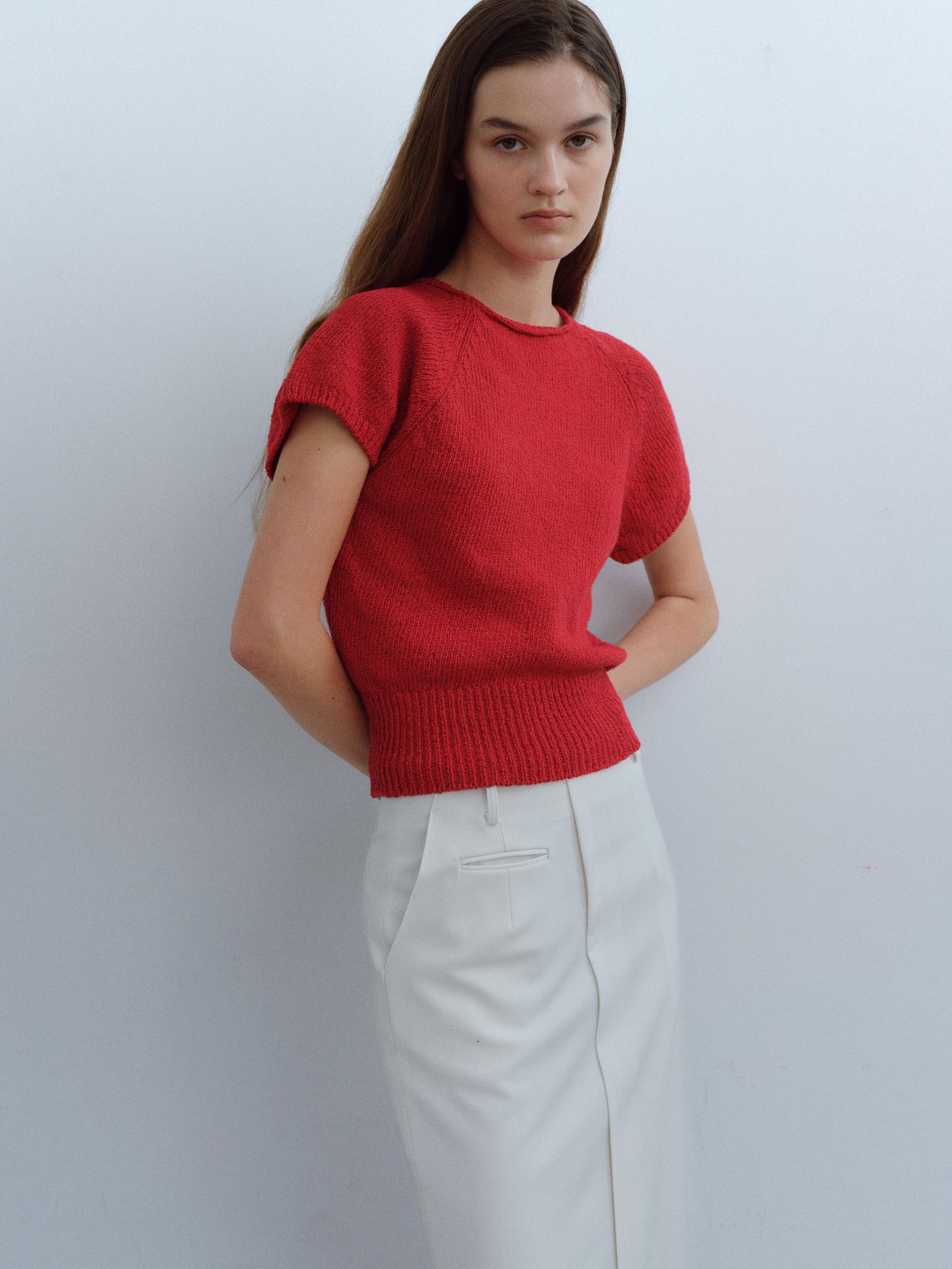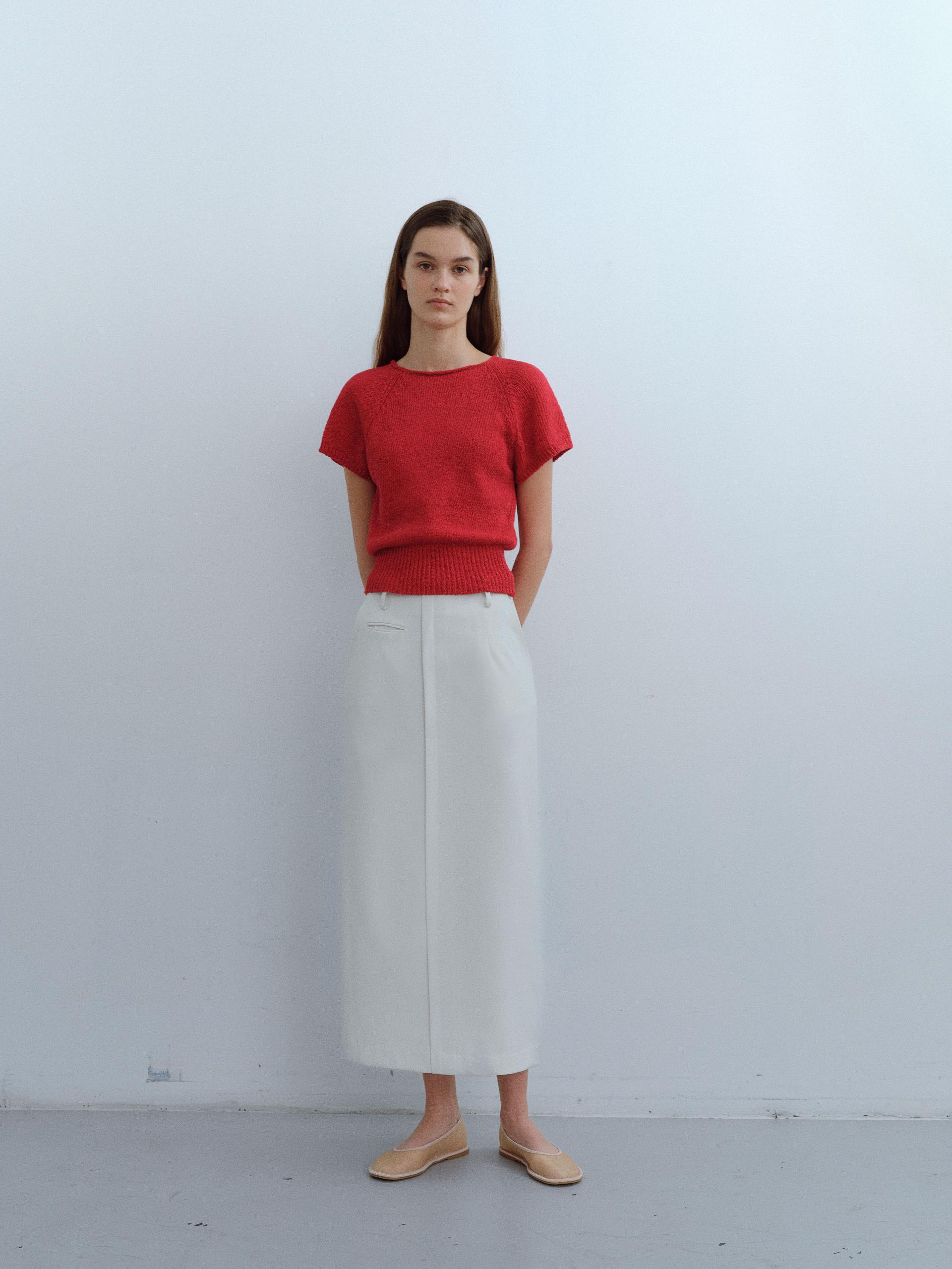 - 자연스럽게 말려있는 넥 라인과 레글런 소매 등 자연스러운 디테일이 특징입니다.