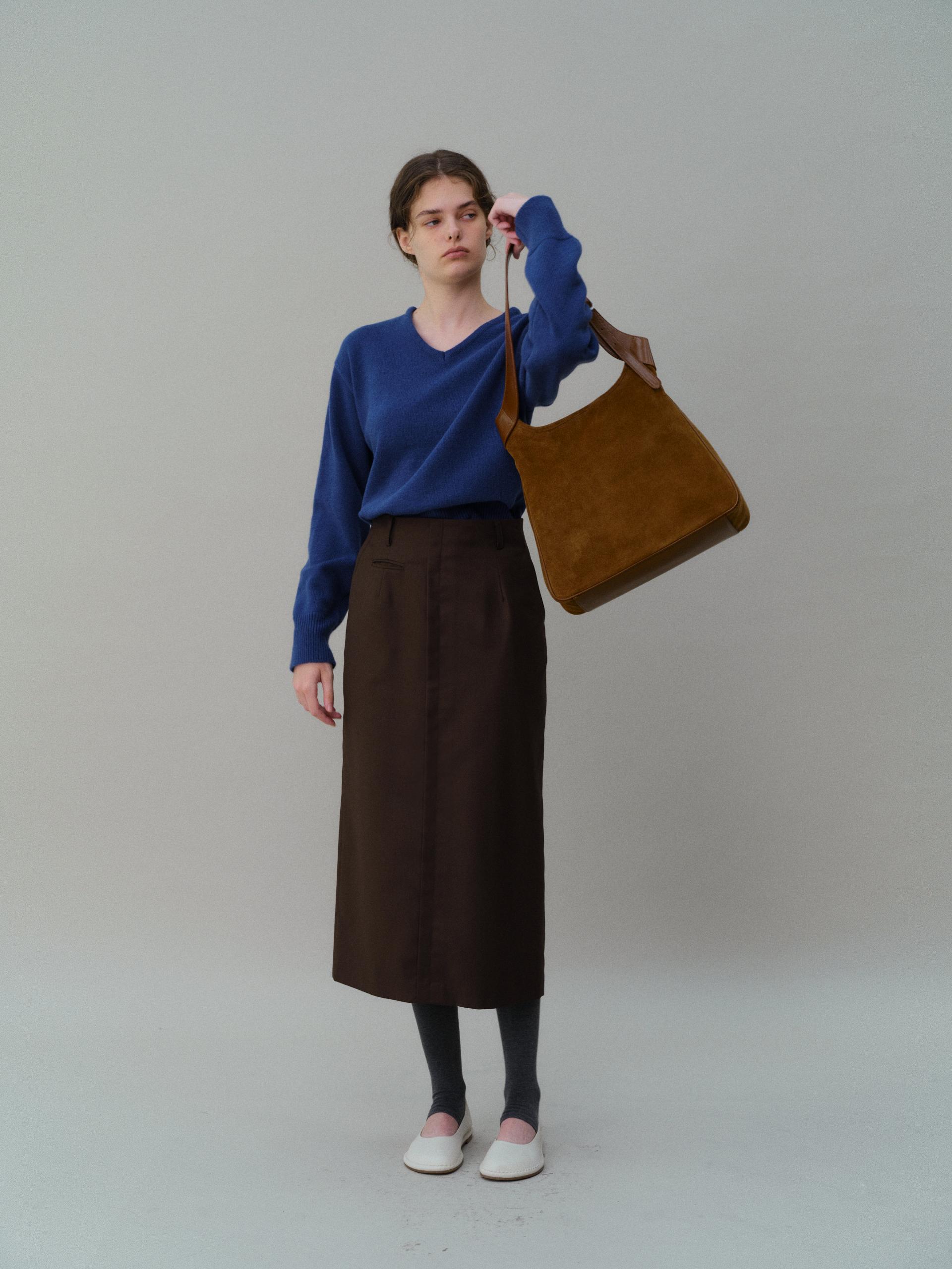 - 흔하지 않게 더블 파이핑 편직한 슬림한 넥라인은 미니멀한 무드를 드러냅니다.
