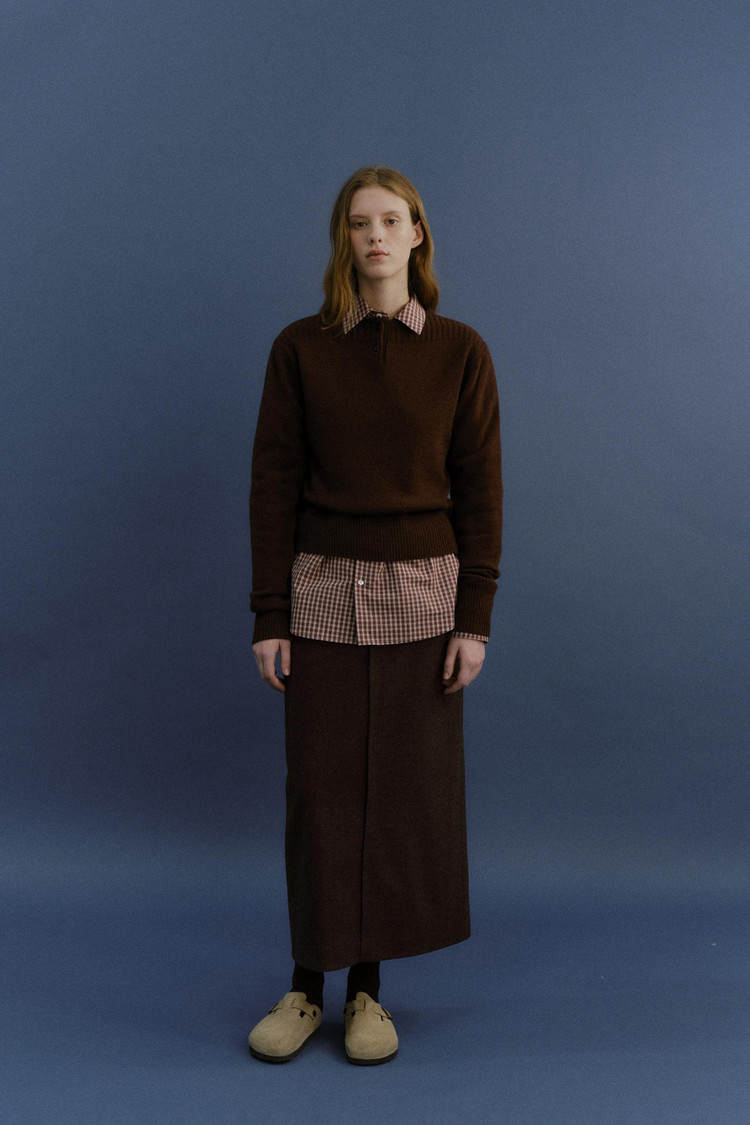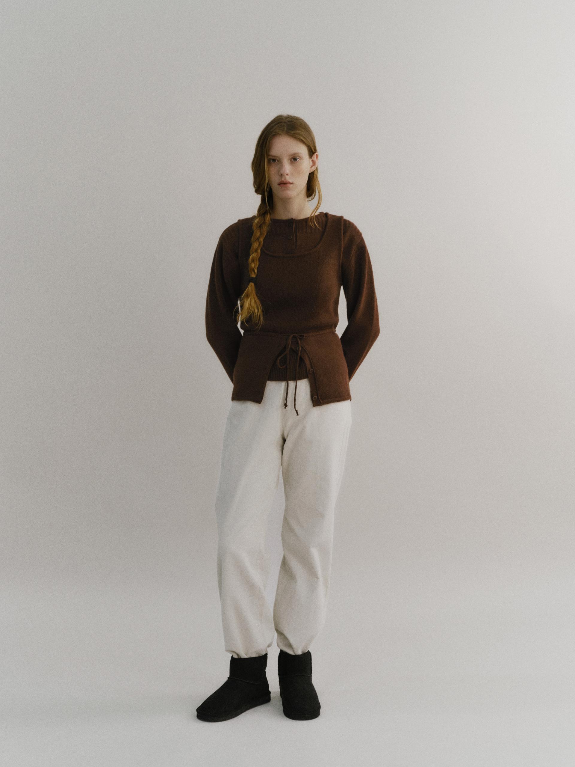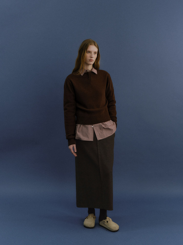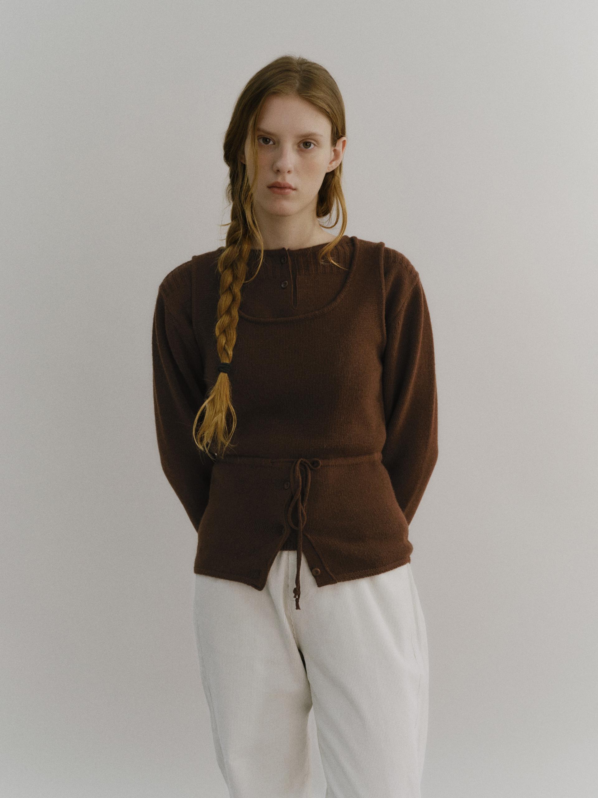 pipe henley neck knit (brown)TIME SALE