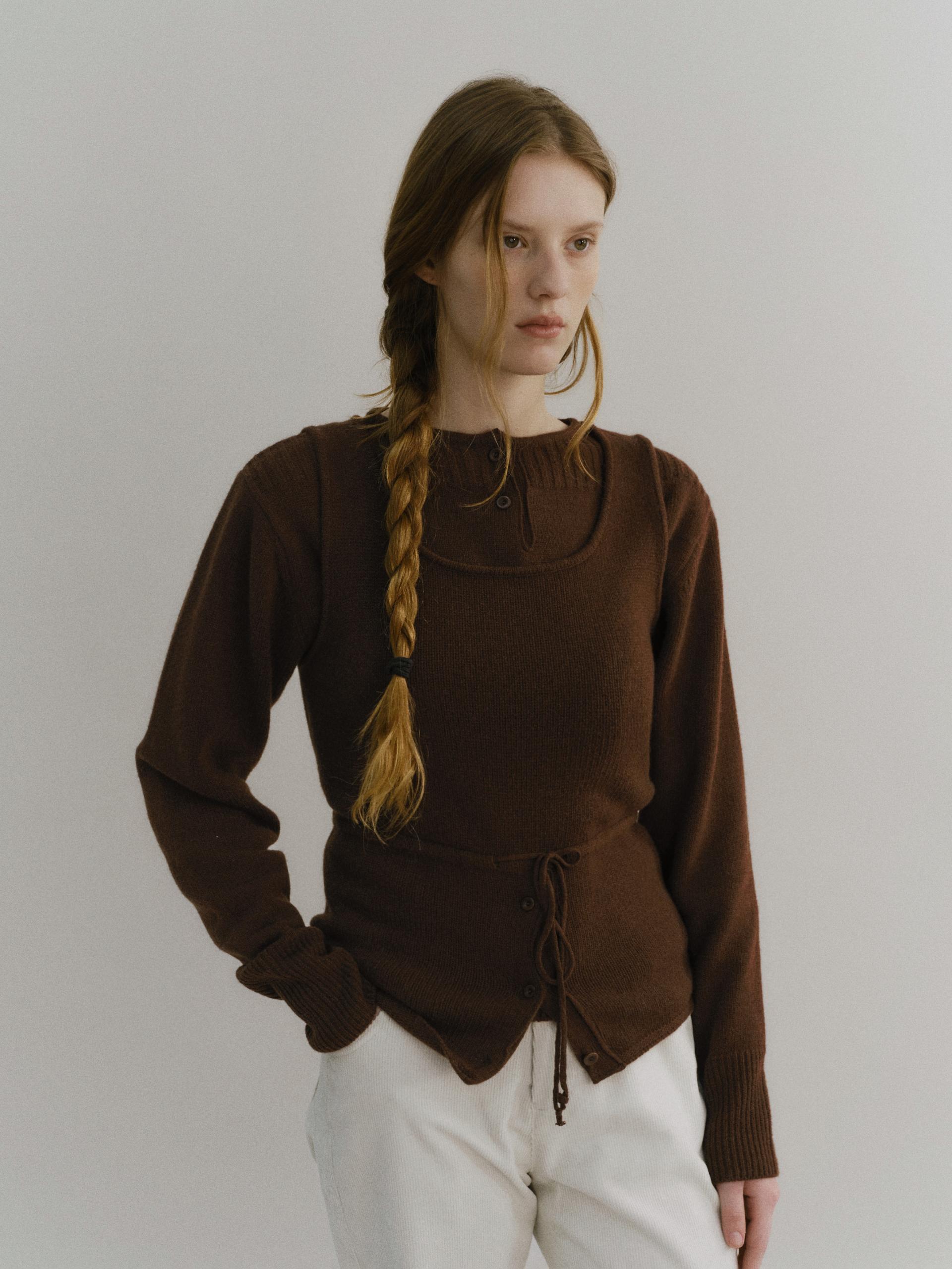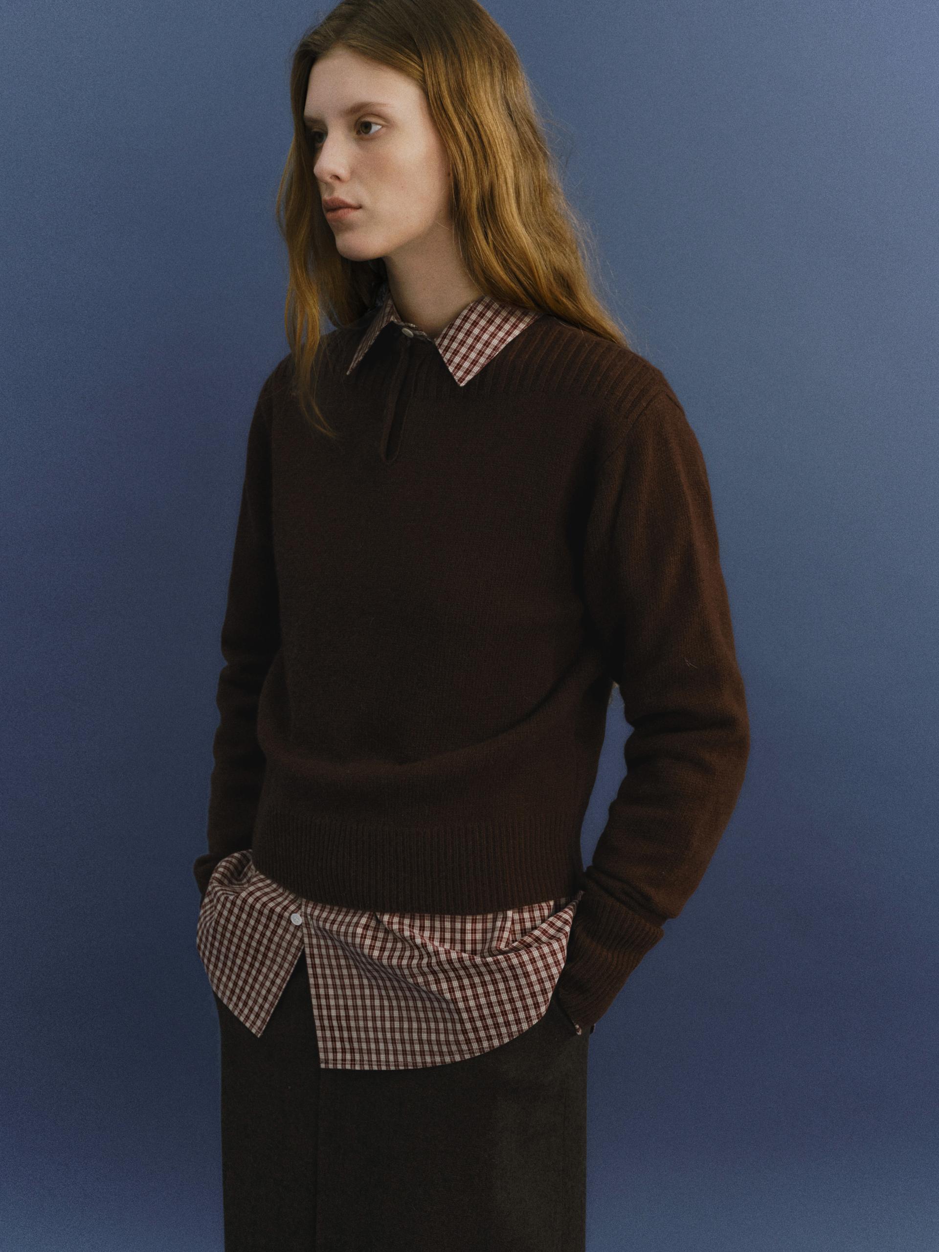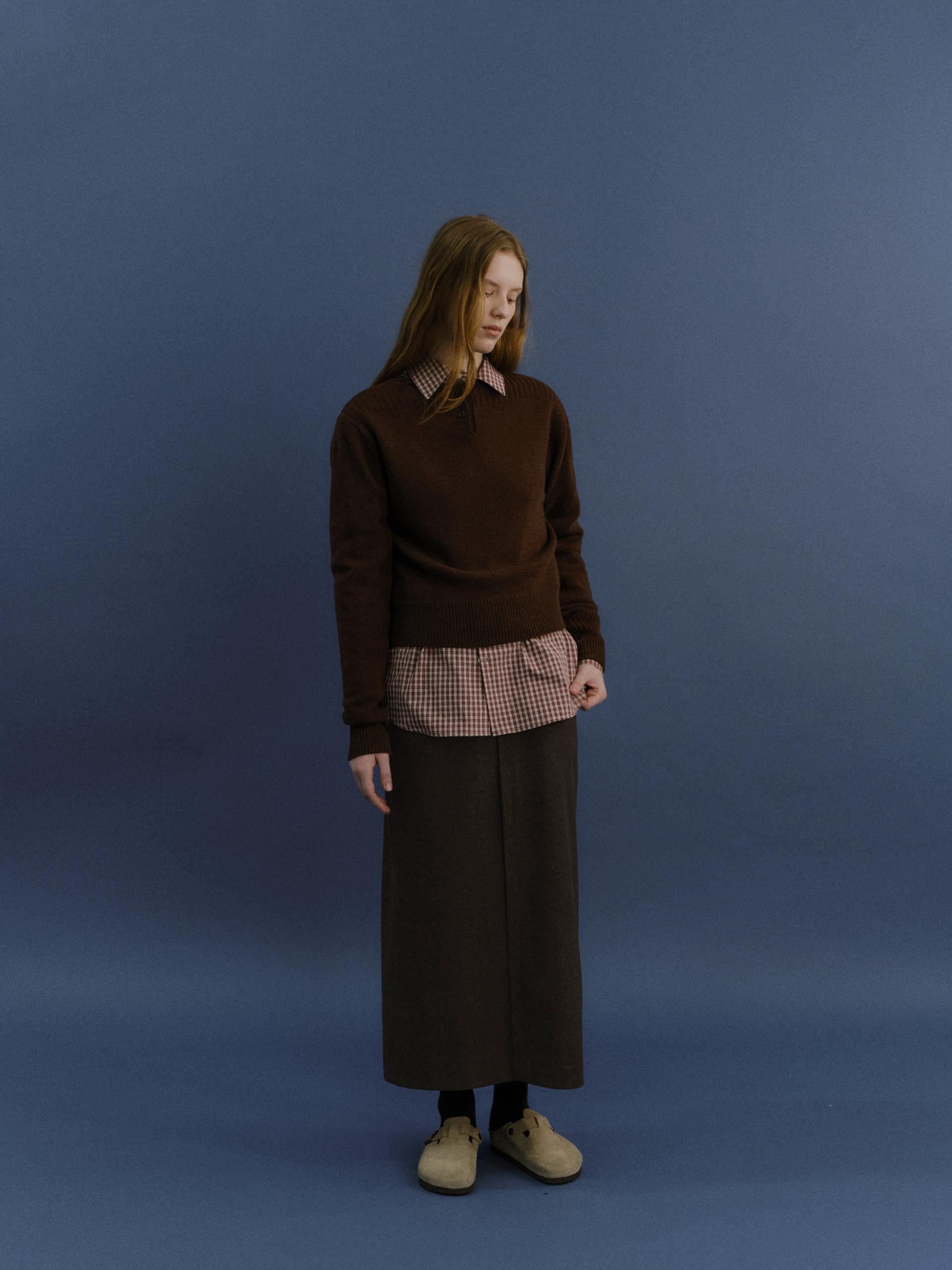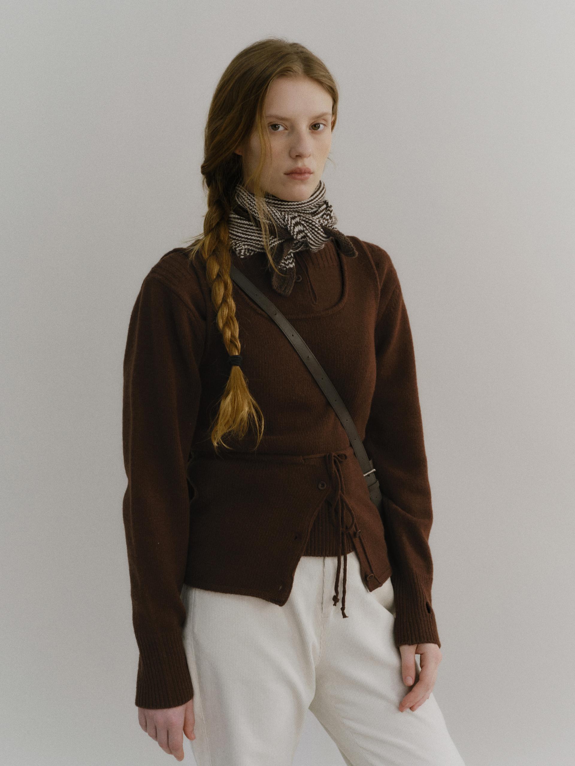 pipe henley neck knit (brown)TIME SALE