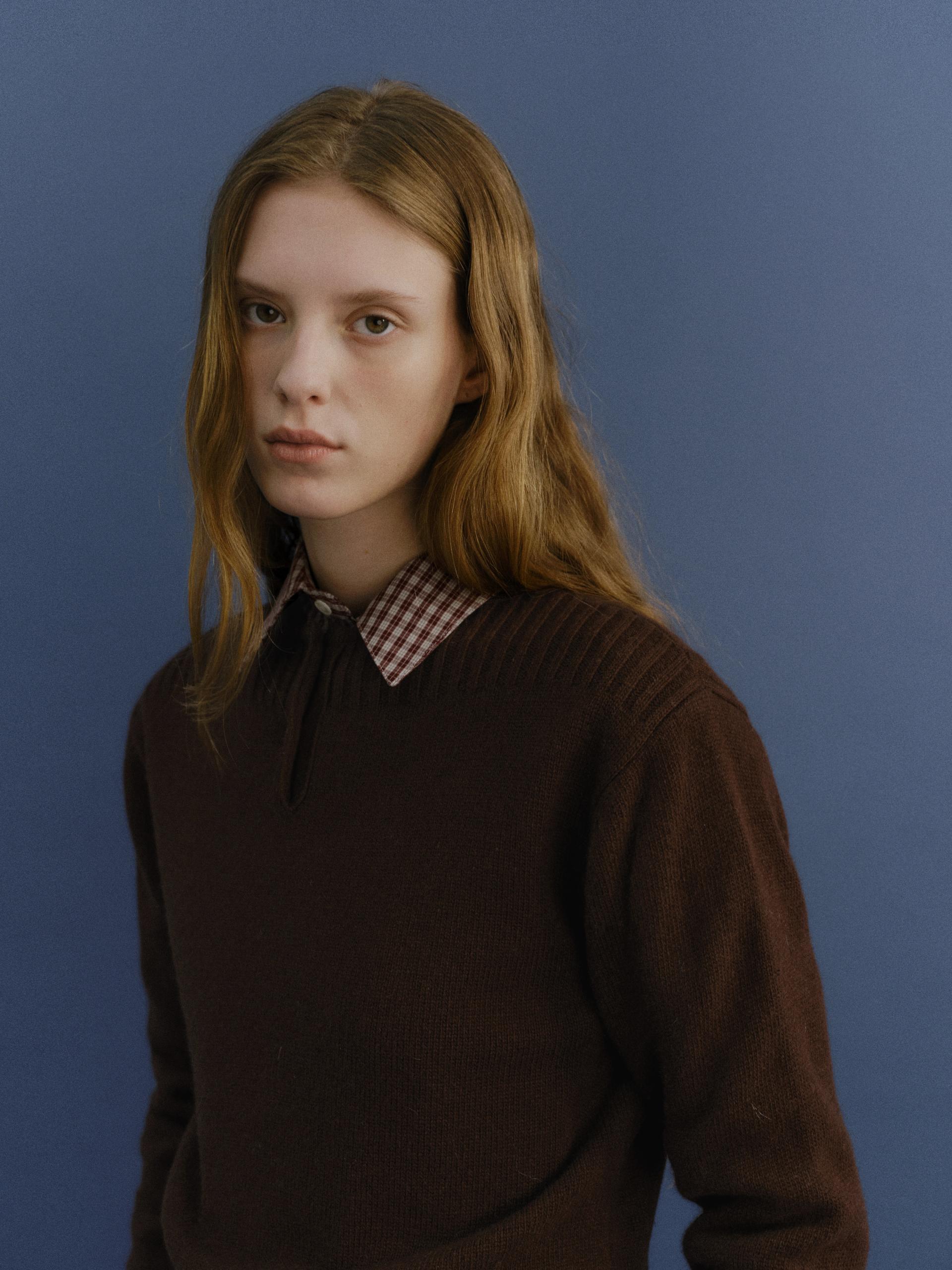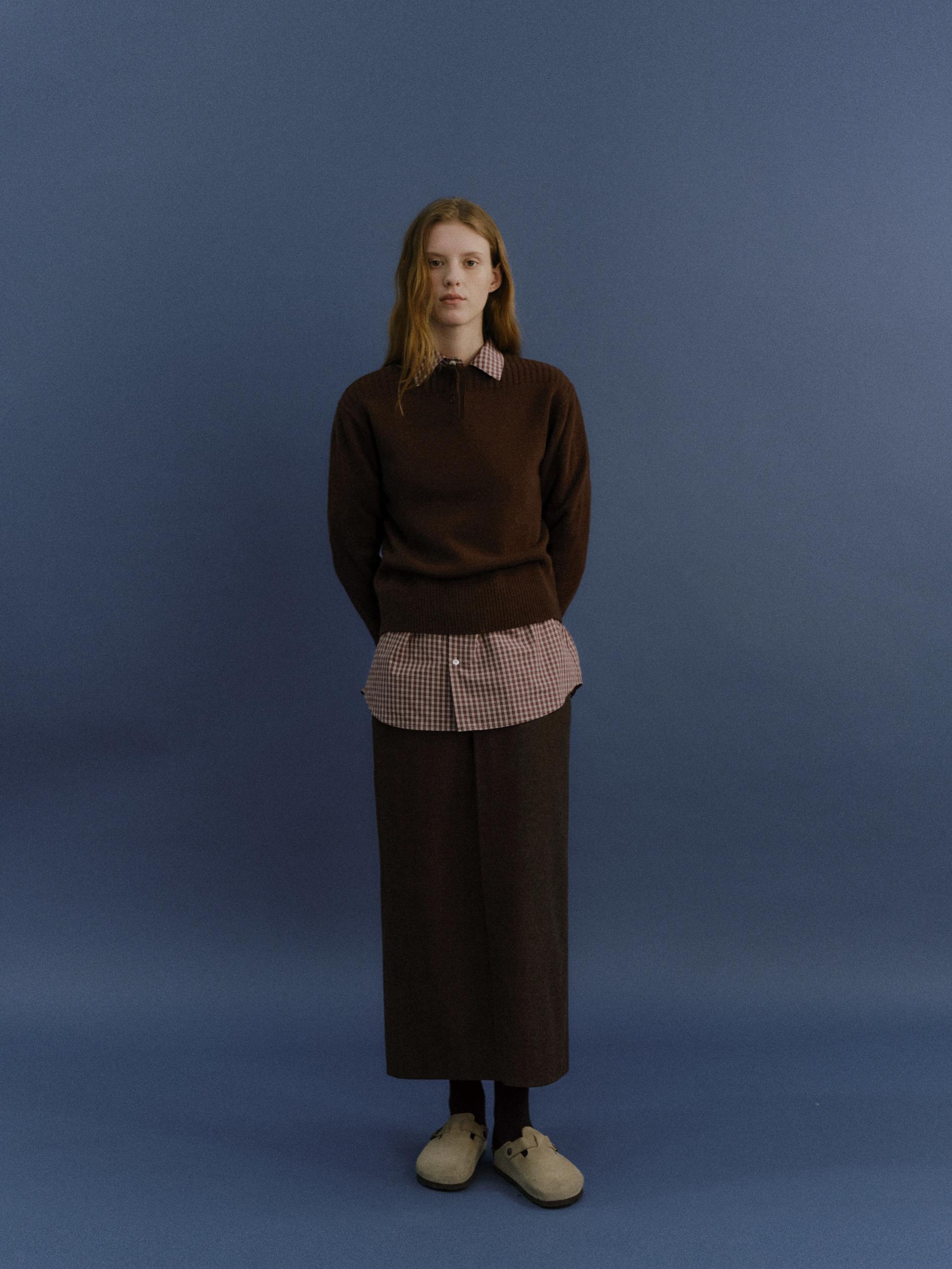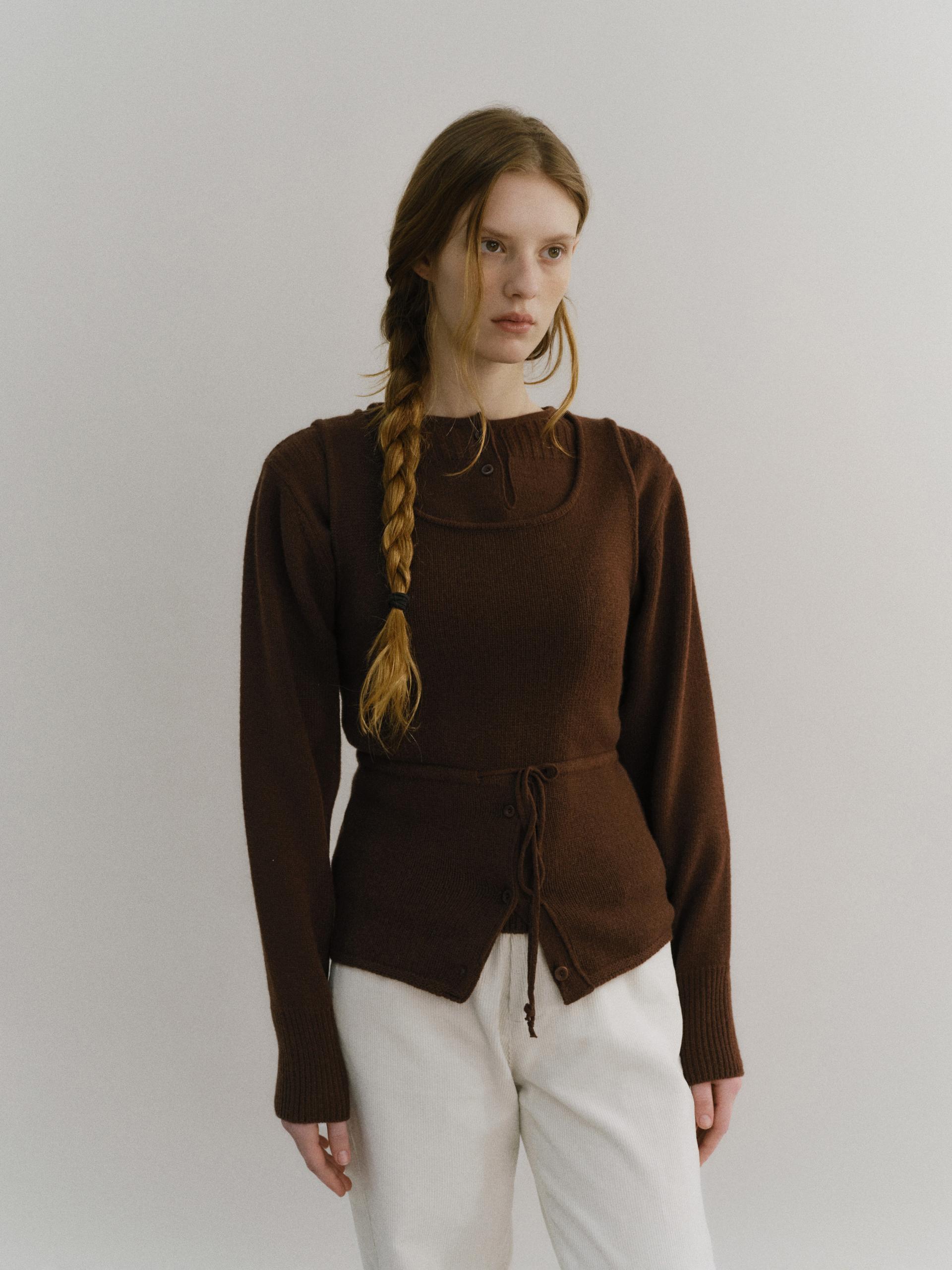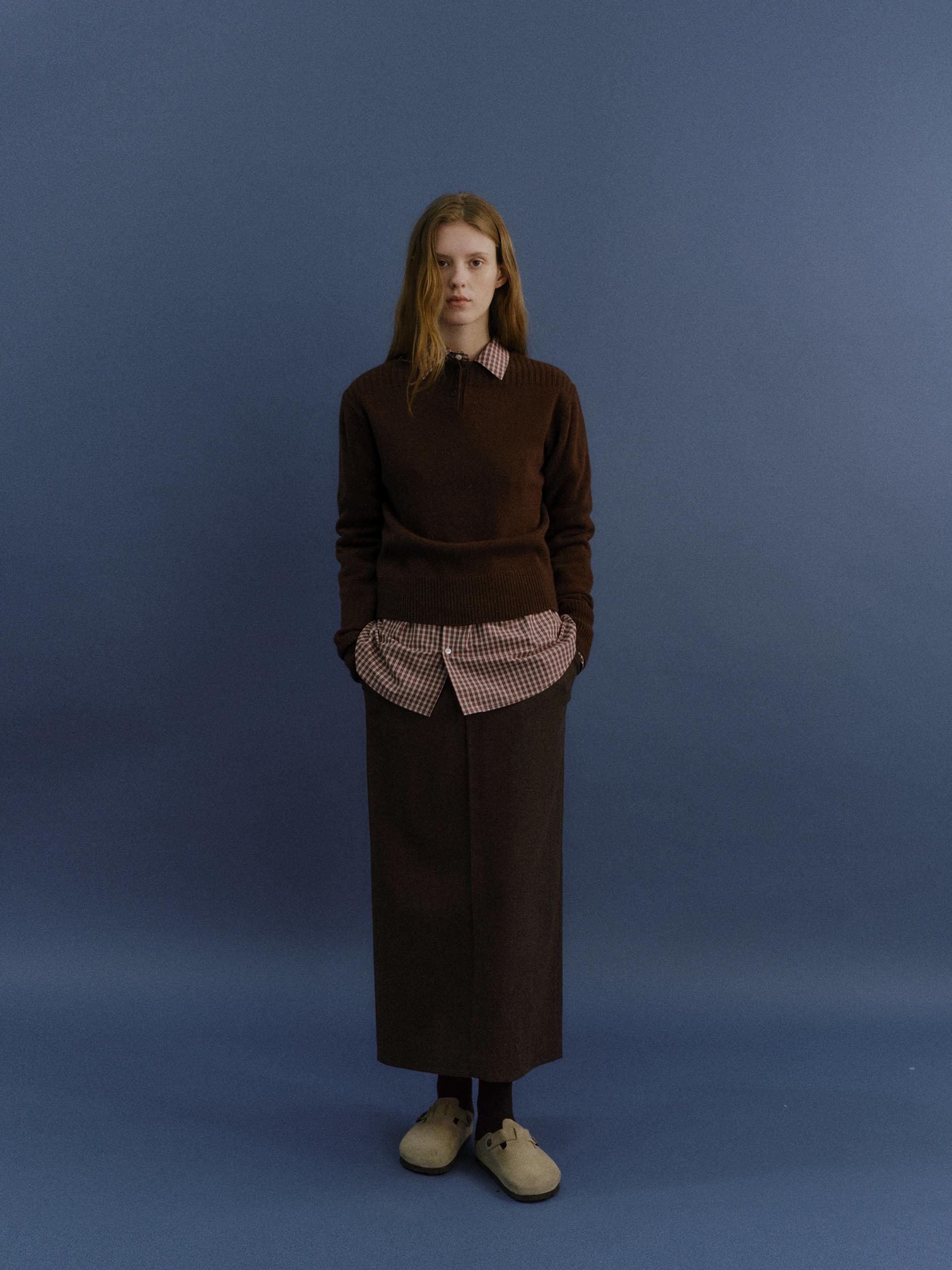pipe henley neck knit (brown)TIME SALE