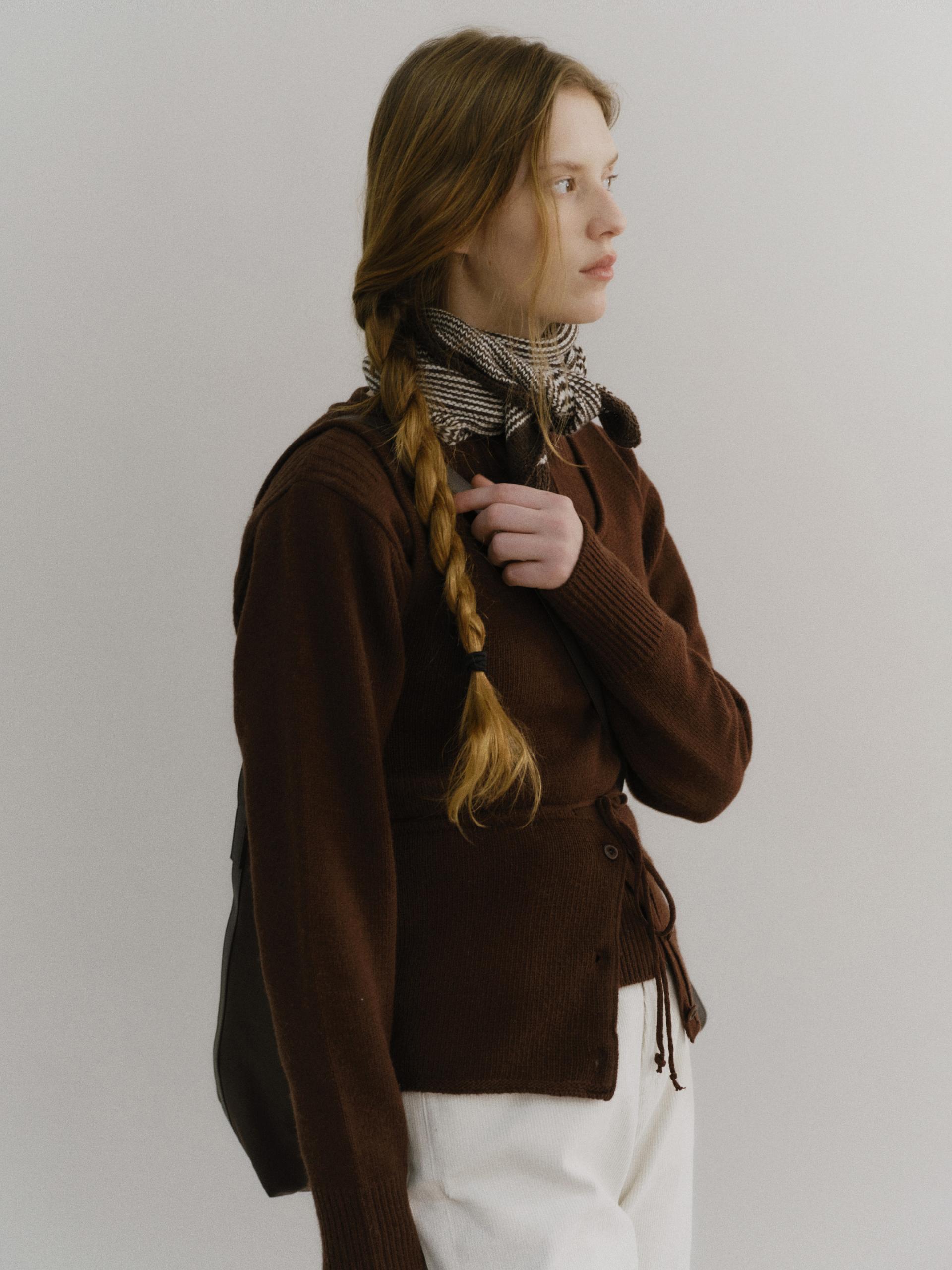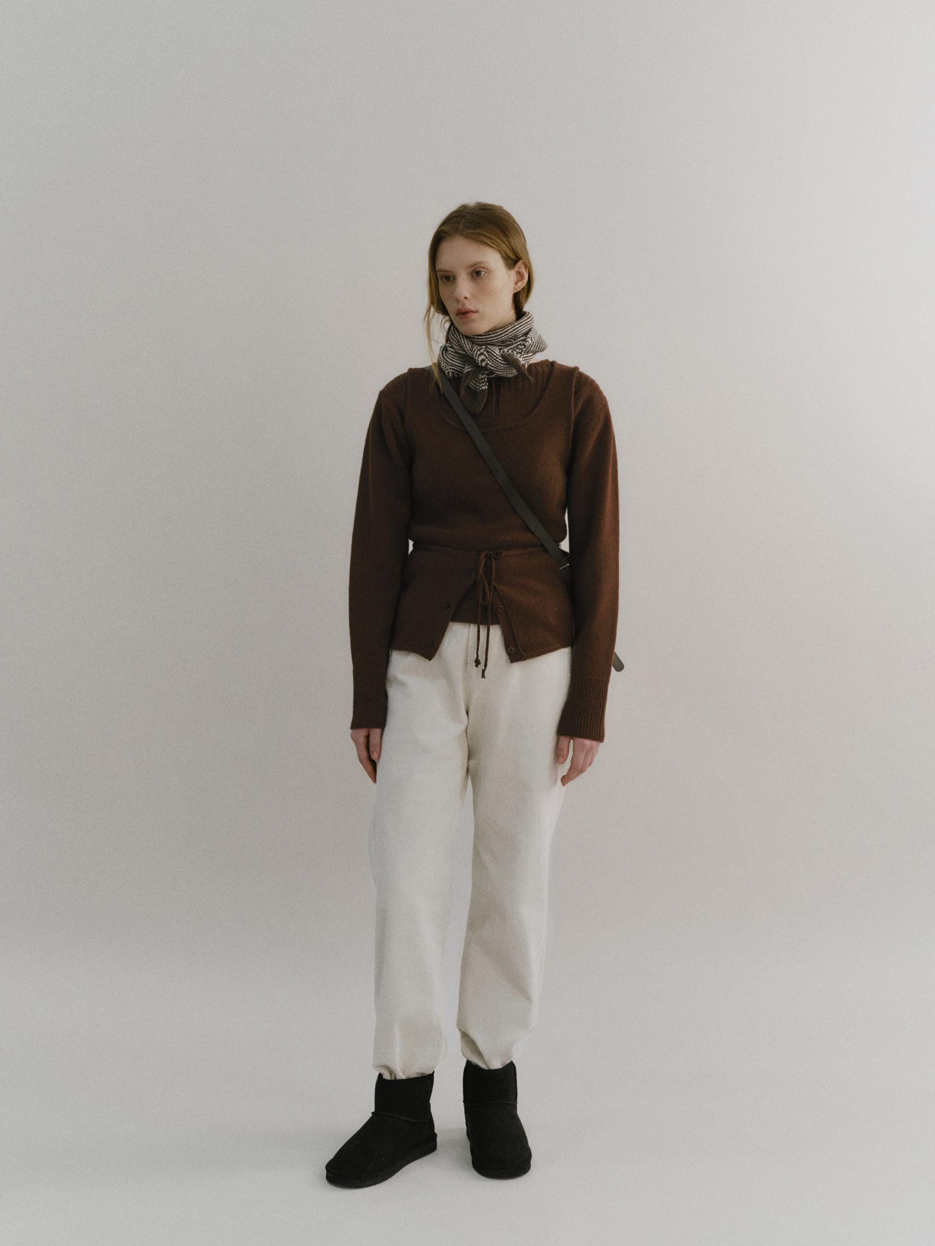 - 슬림하게 더블 파이핑 편직한 넥 라인은 미니멀한 무드를 드러내며 완성도를 높여줍니다.
