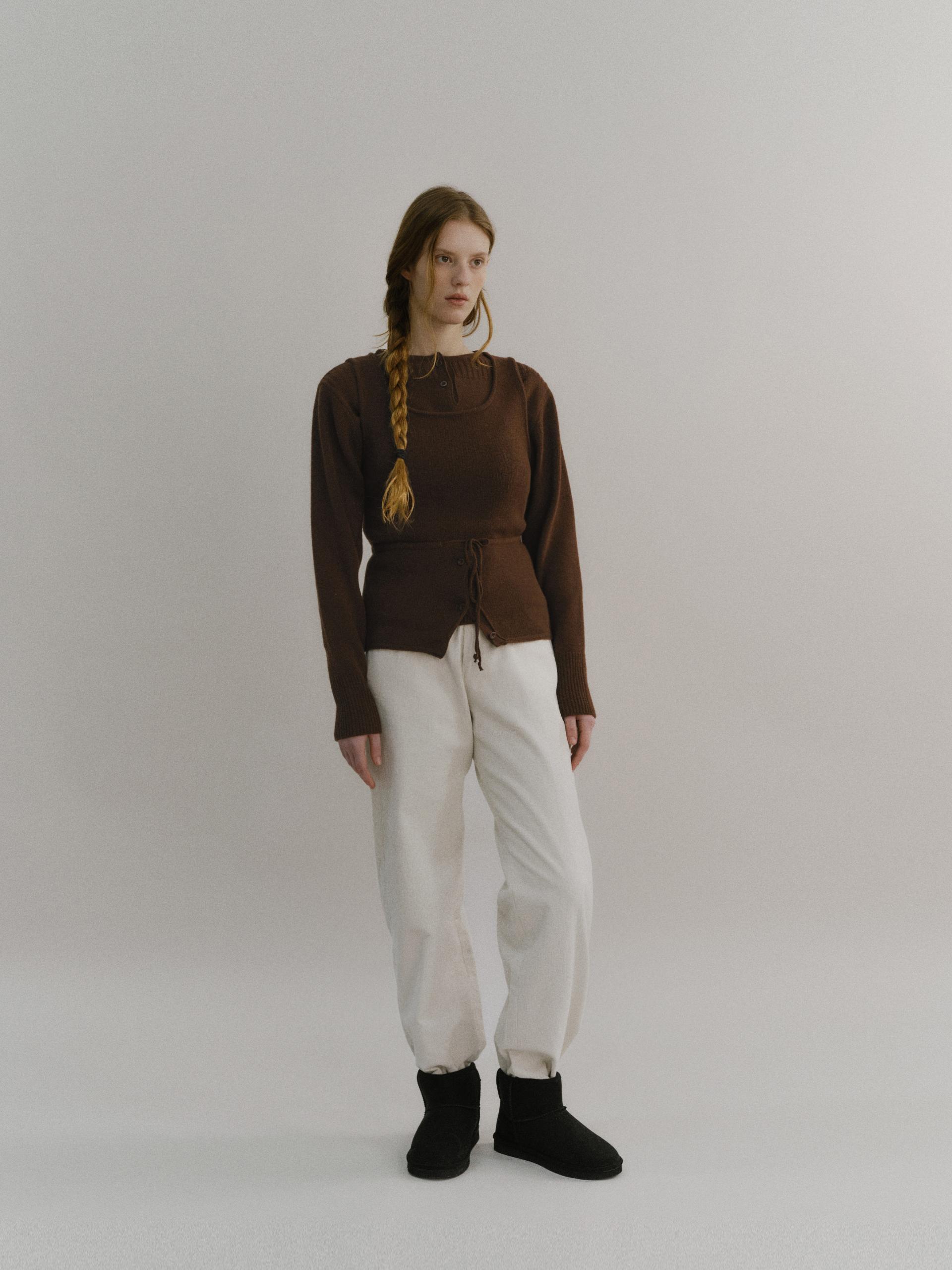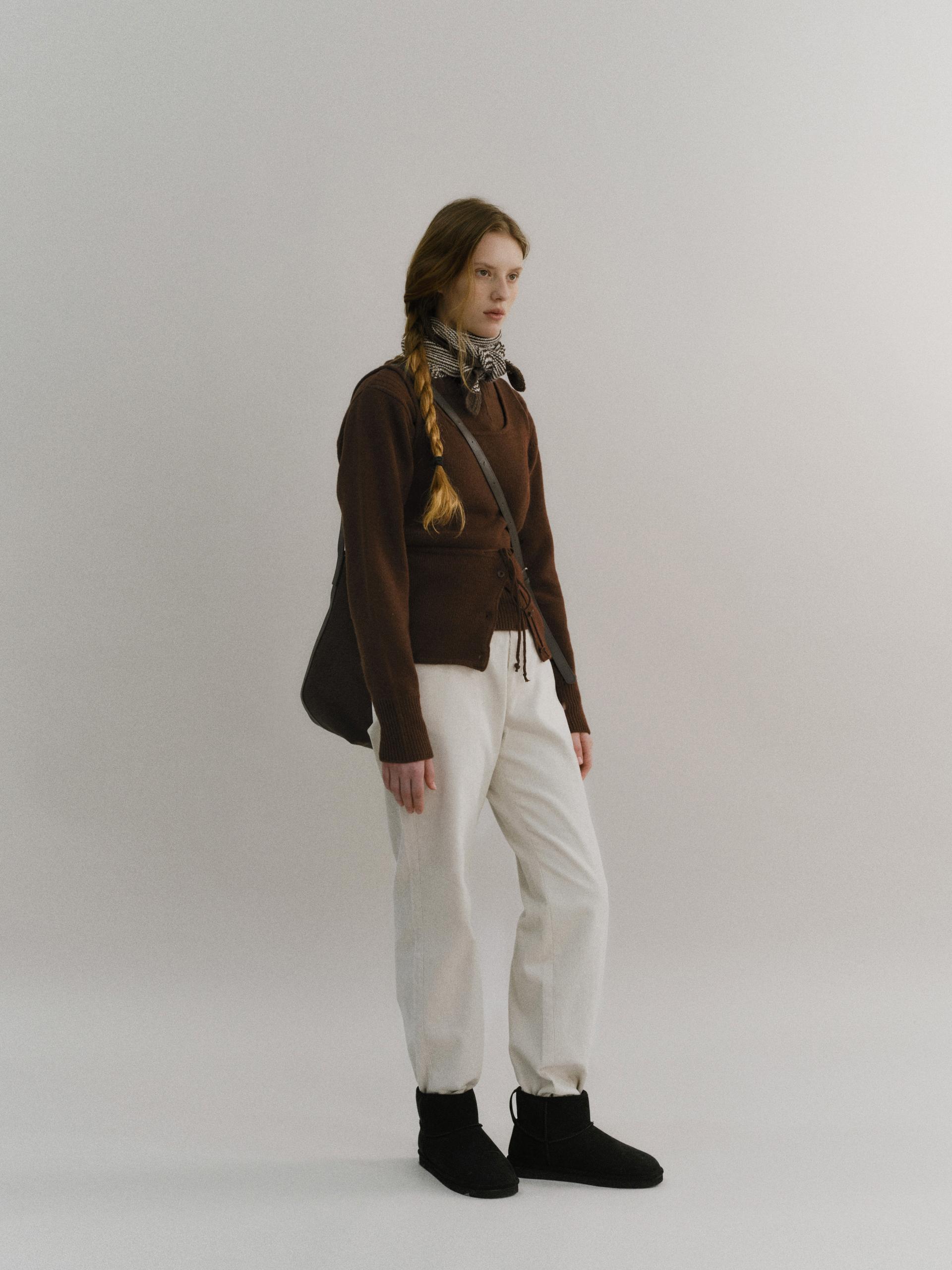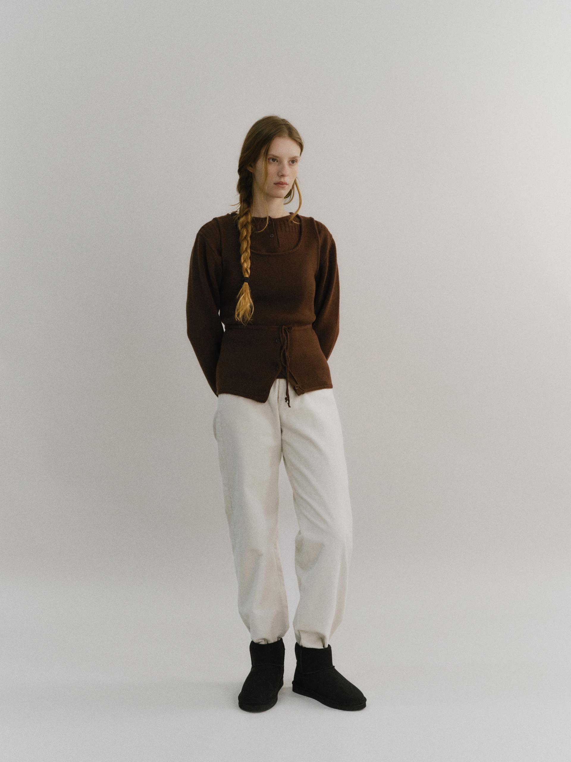 - 앞 단추는 천연 너트 단추를 사용했으며, 단품 및 레이어드 착장에서 포인트가 되는 디테일입니다.