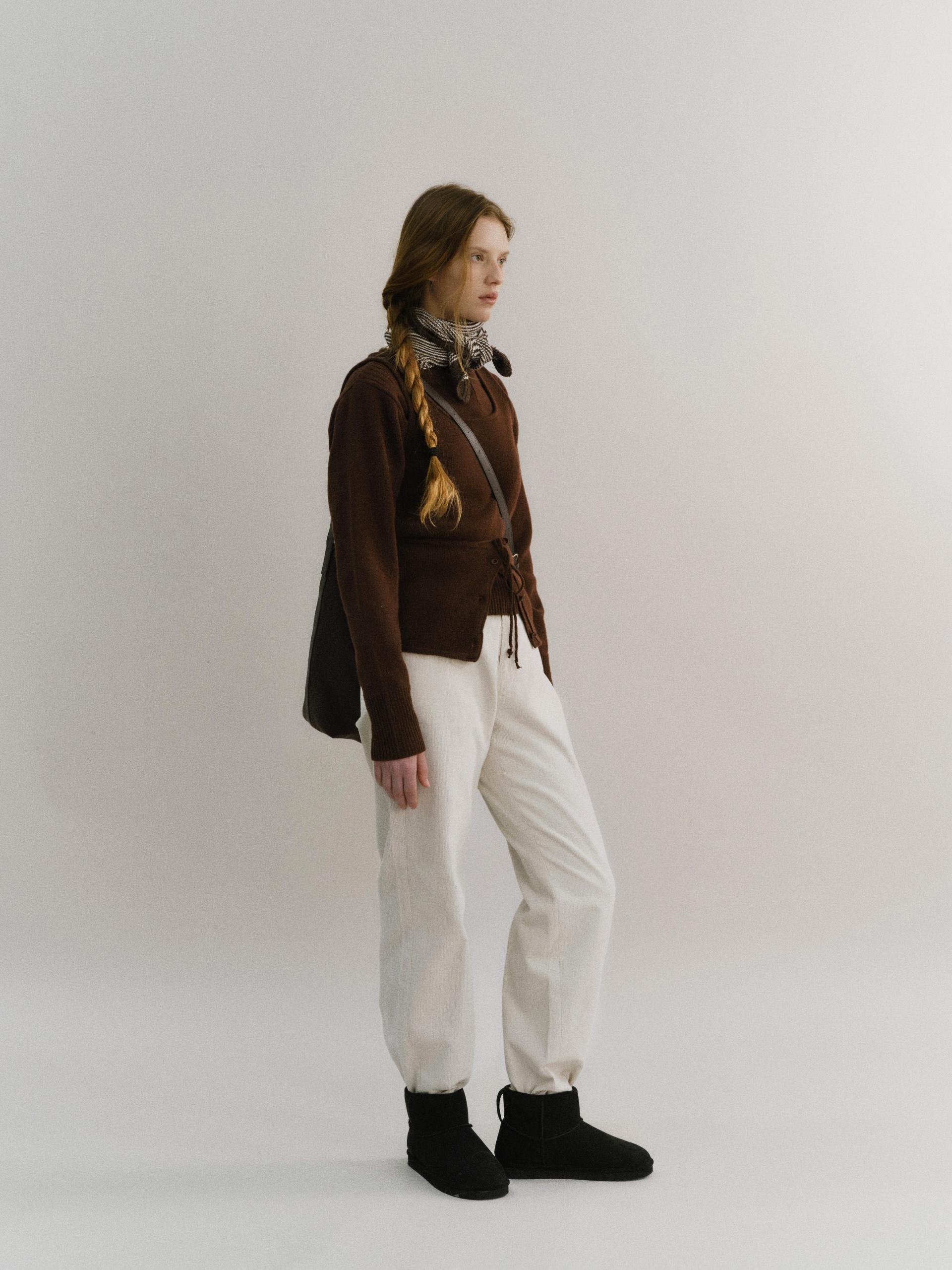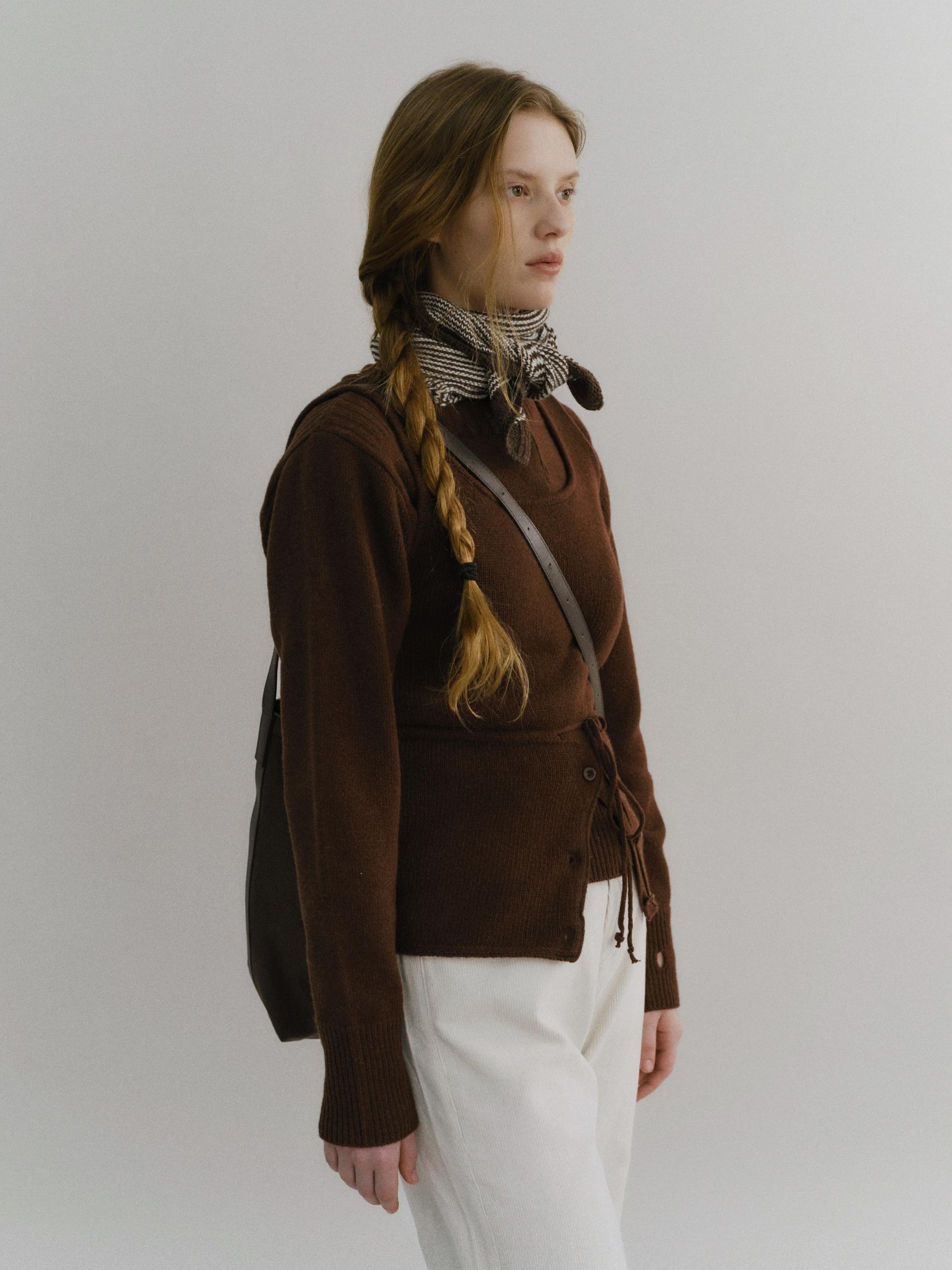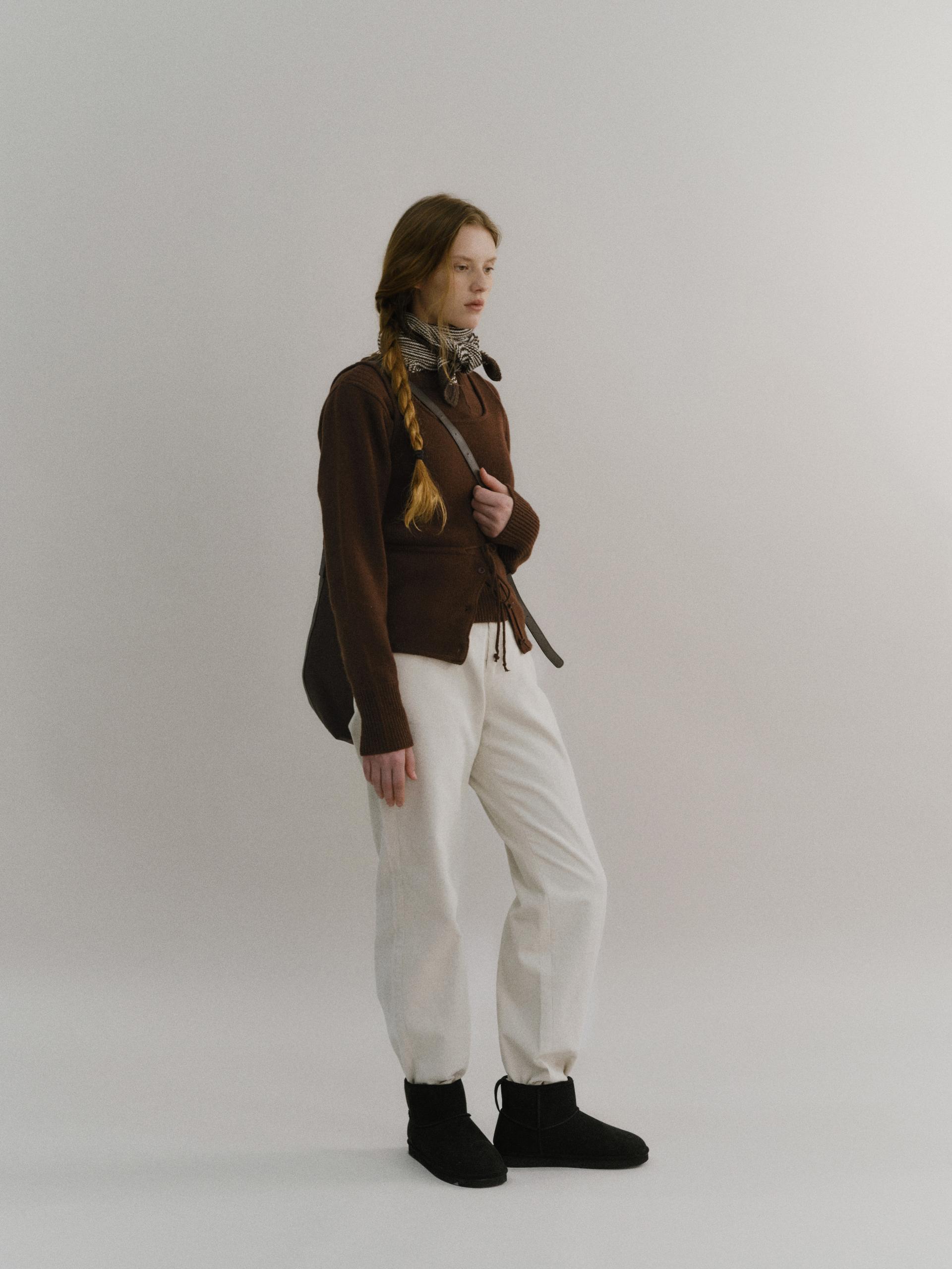 - 앞 단추는 천연 너트 단추를 사용했으며, 단품 및 레이어드 착장에서 포인트가 되는 디테일입니다.
