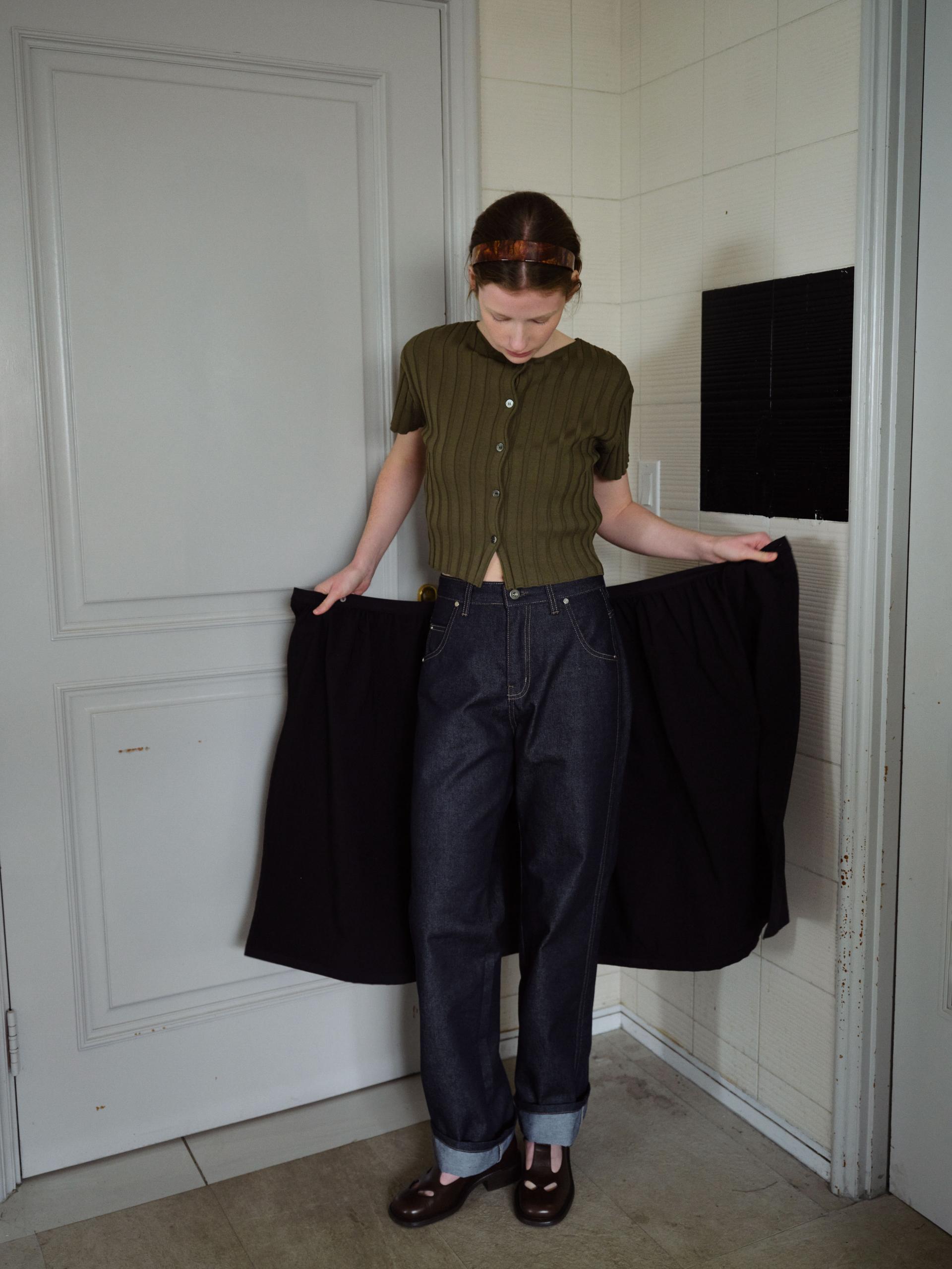 - 완벽한 실루엣과 핏감을 위해 수차례의 패터닝과 심플링을 거쳤으며 앞 패널을 상대적으로