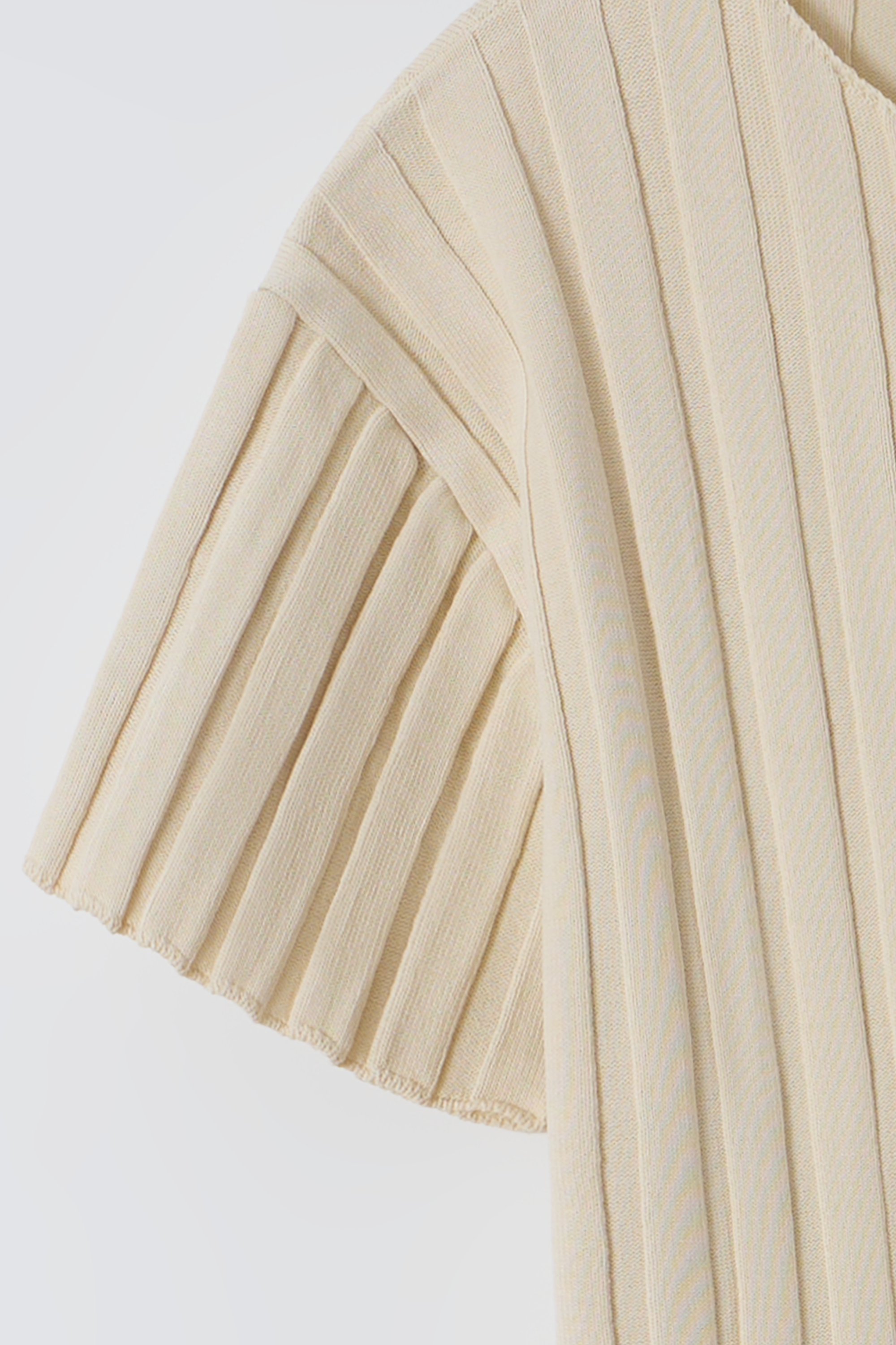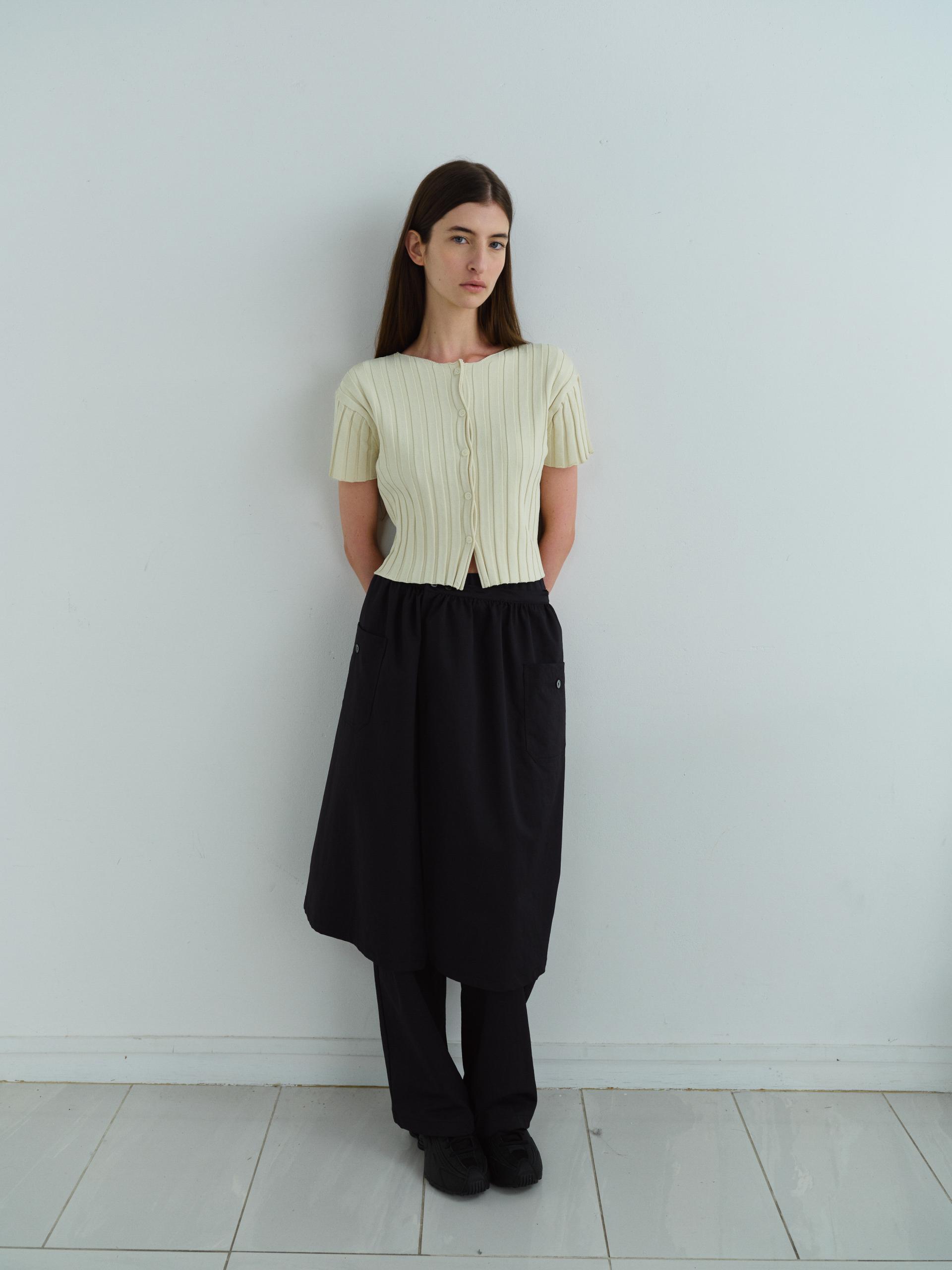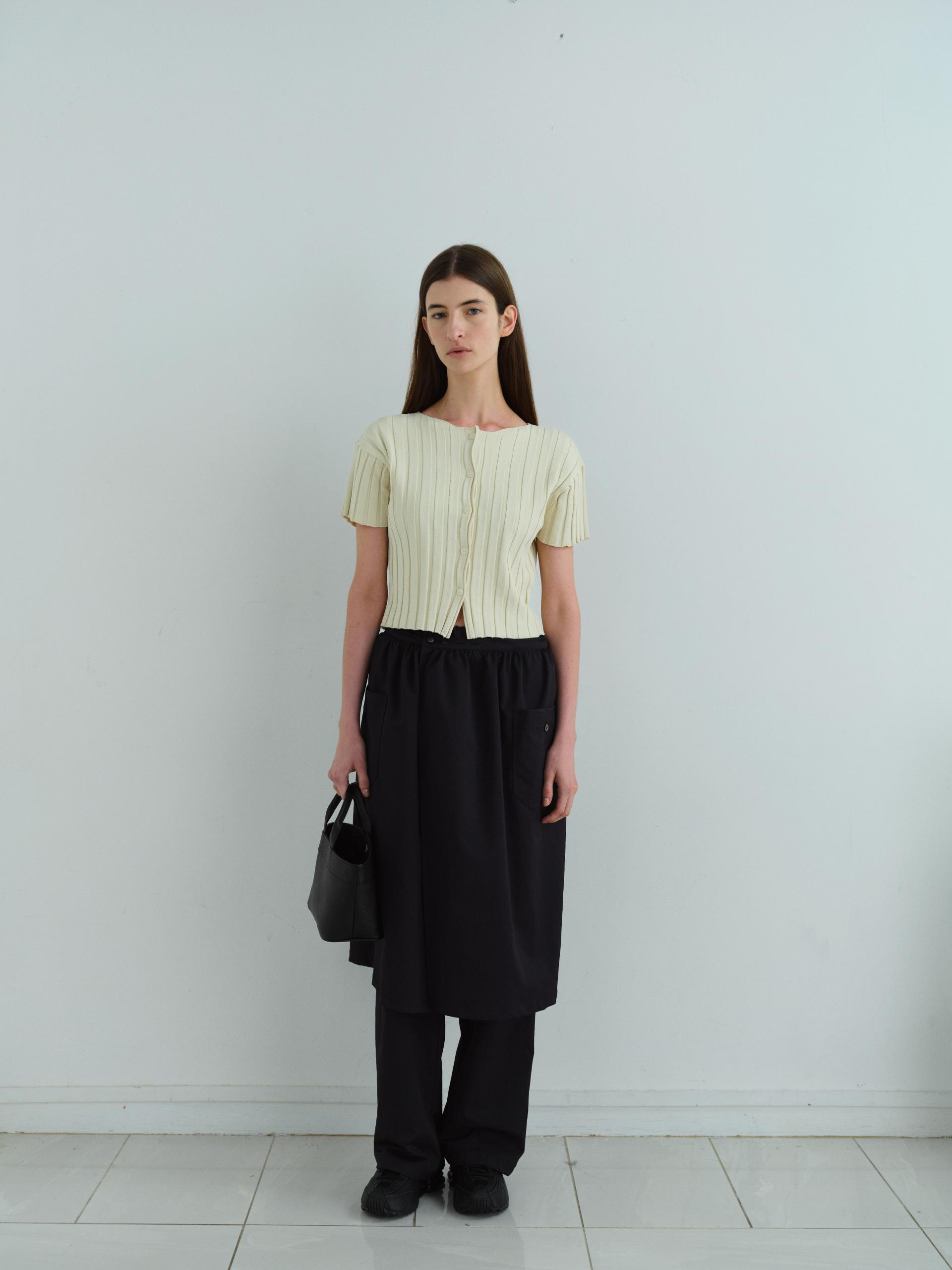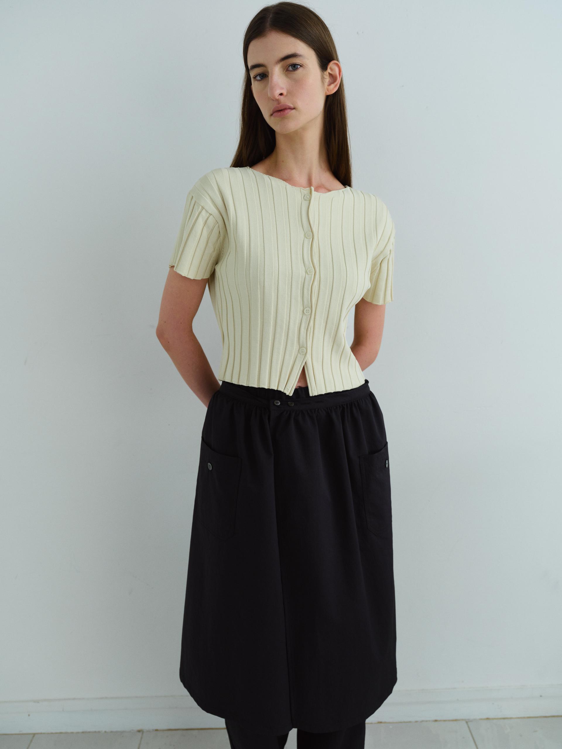 - 짧은 소매와 총장이 특징이며, 촘촘하게 편직해 입체감이 돋보입니다.