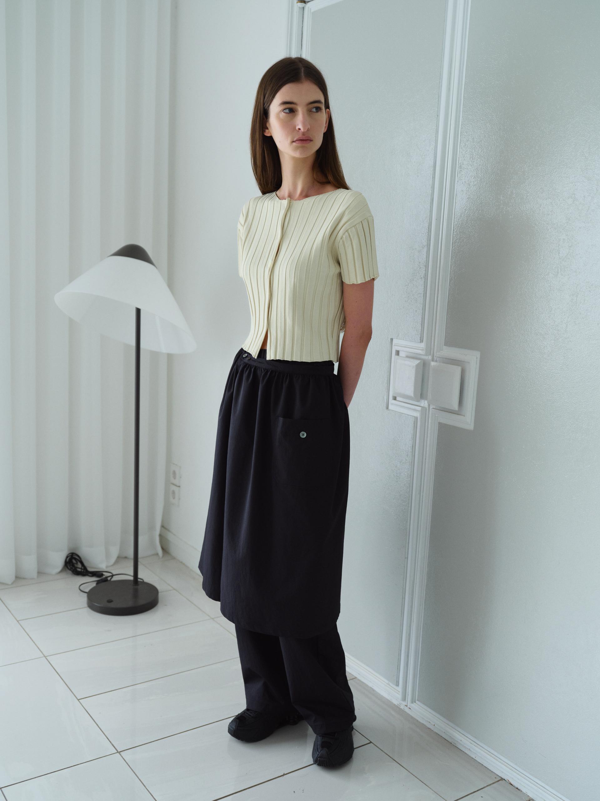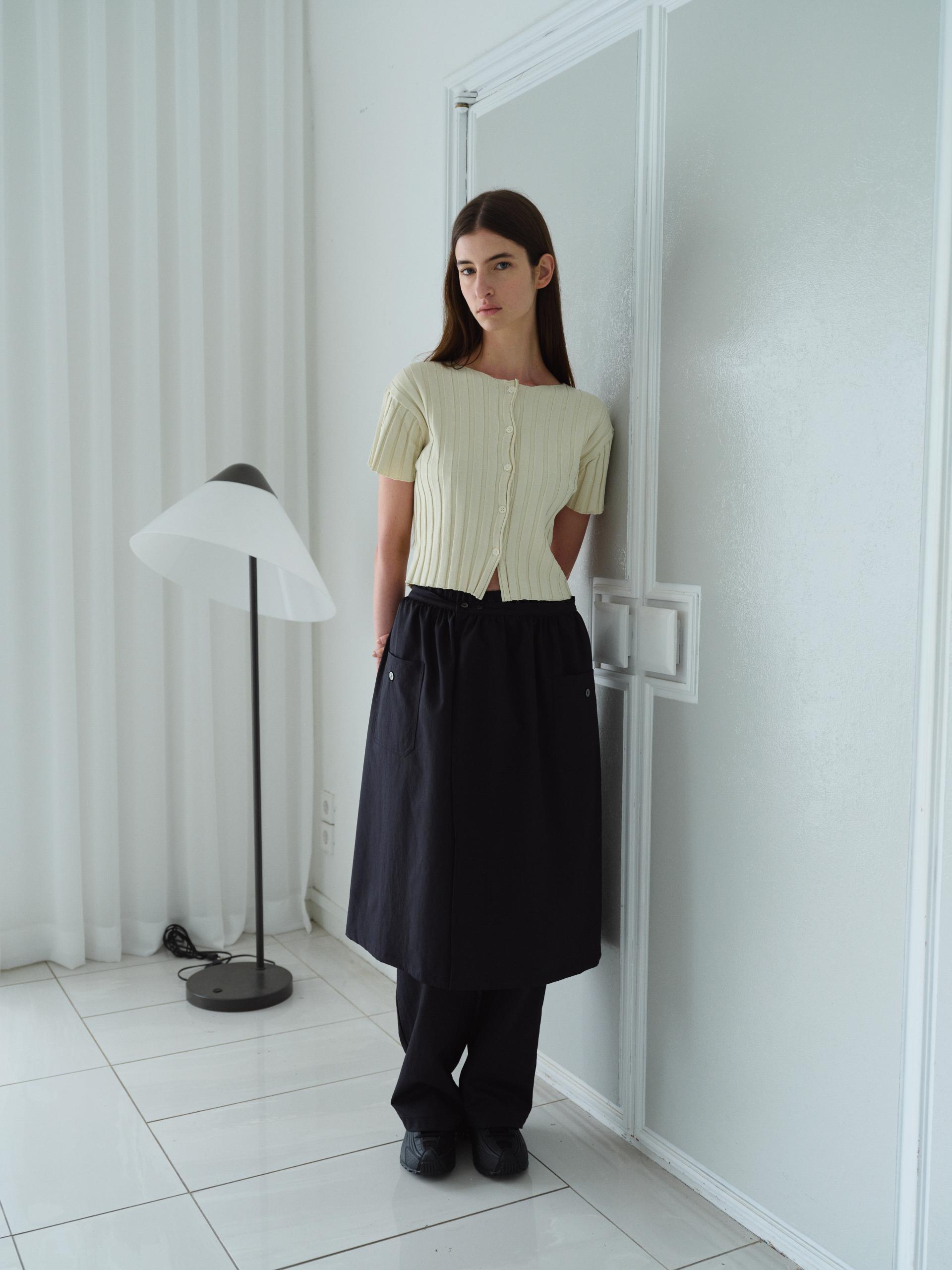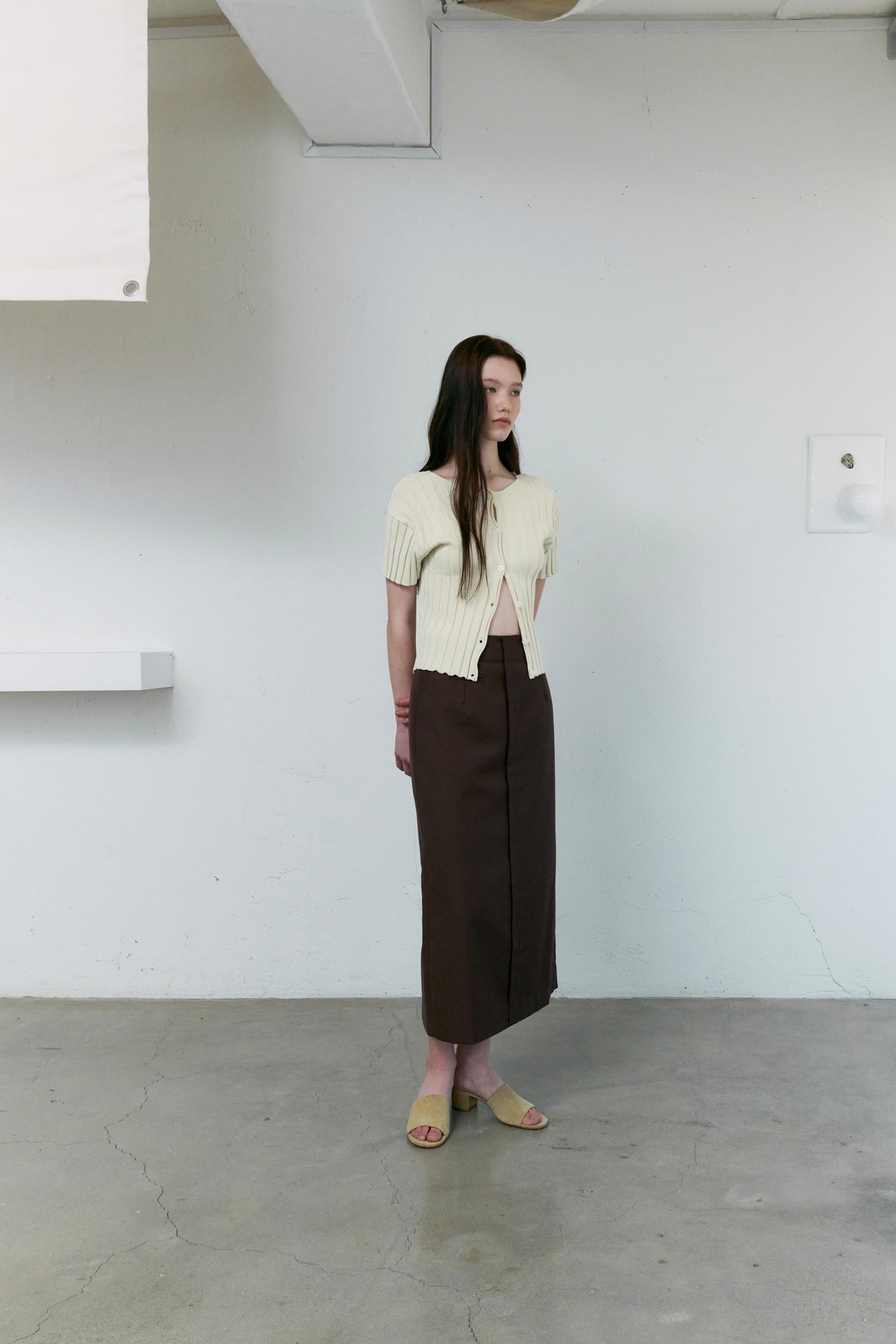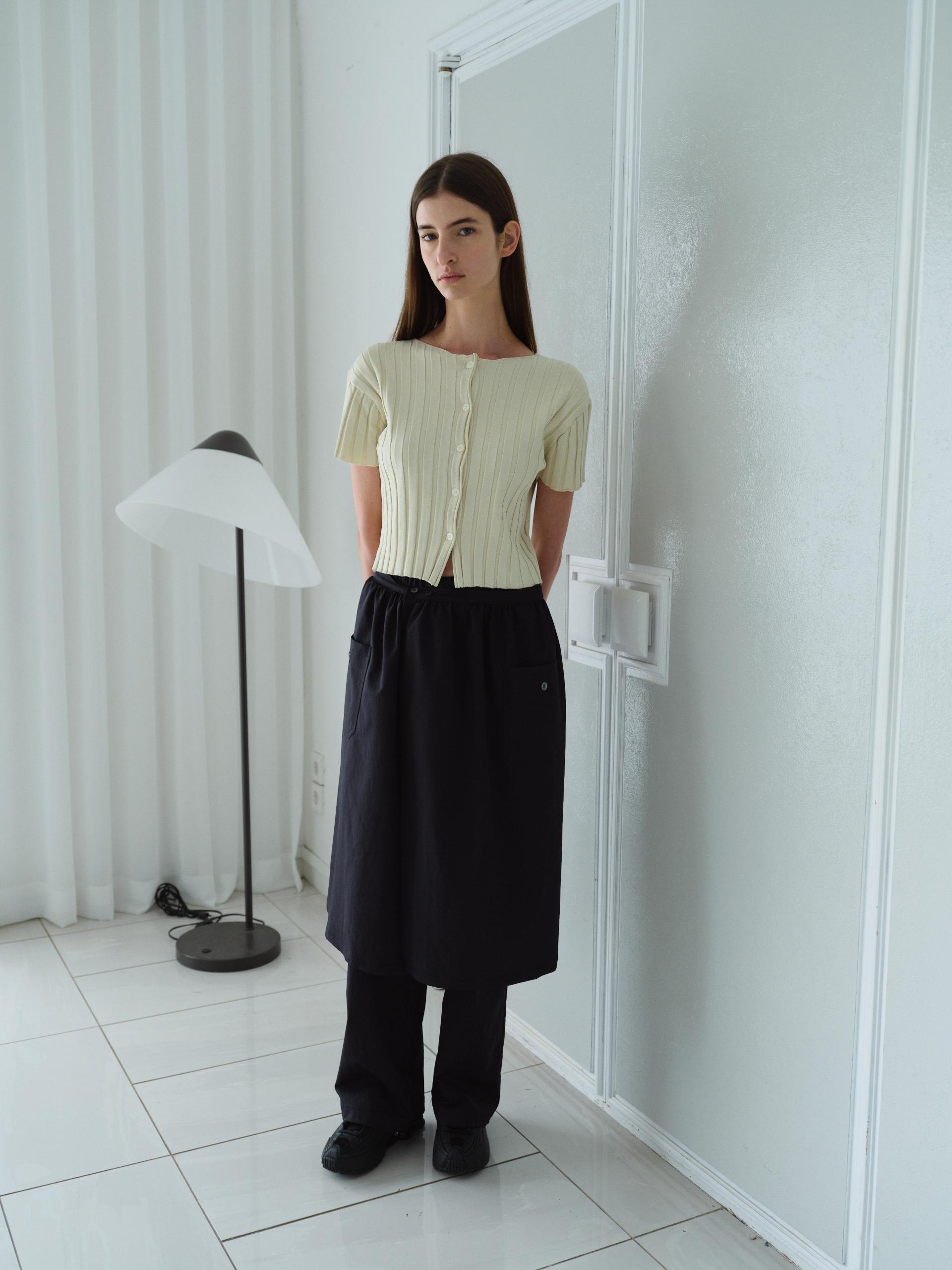 - 짧은 소매와 총장이 특징이며, 촘촘하게 편직해 입체감이 돋보입니다.
