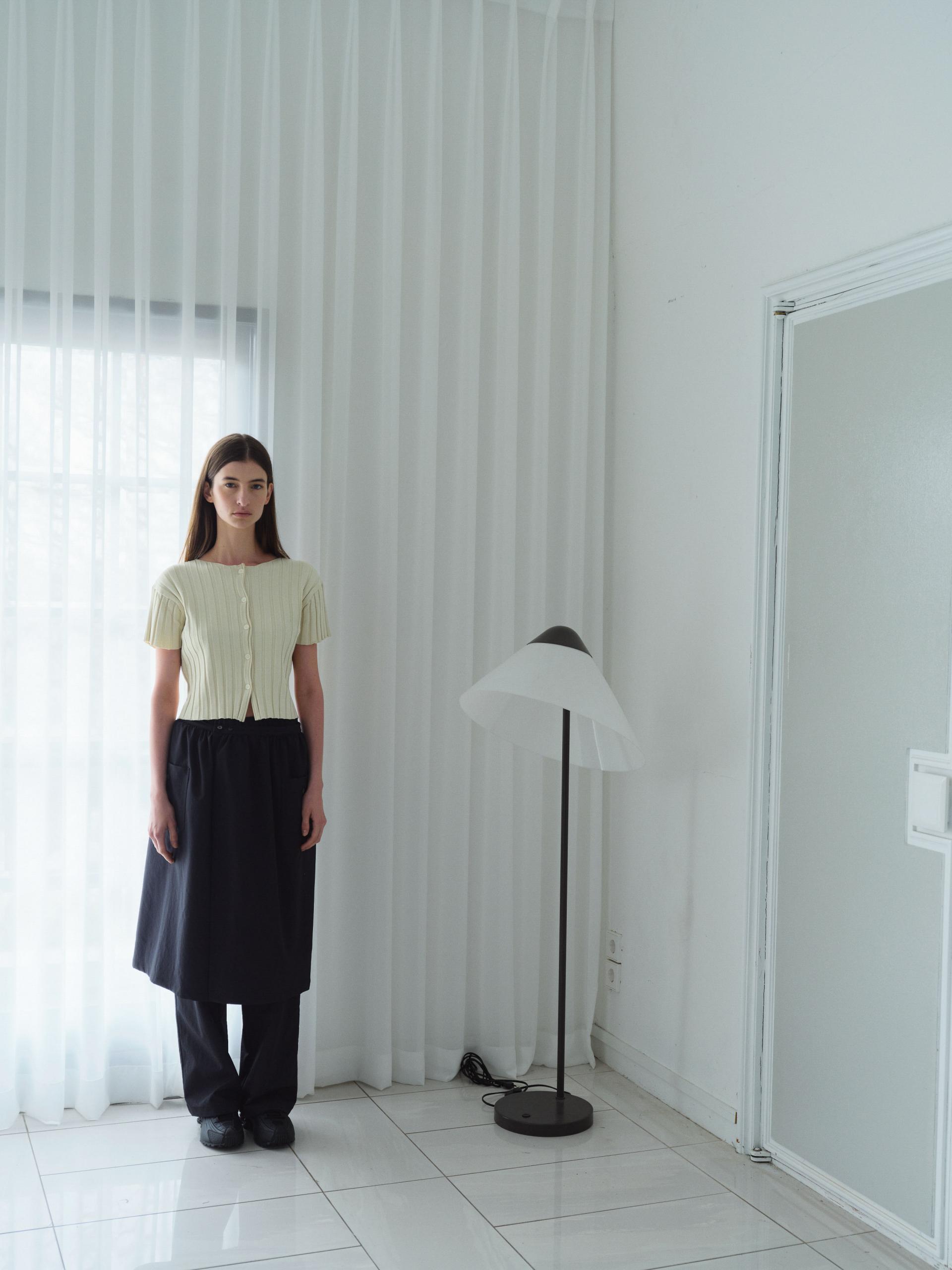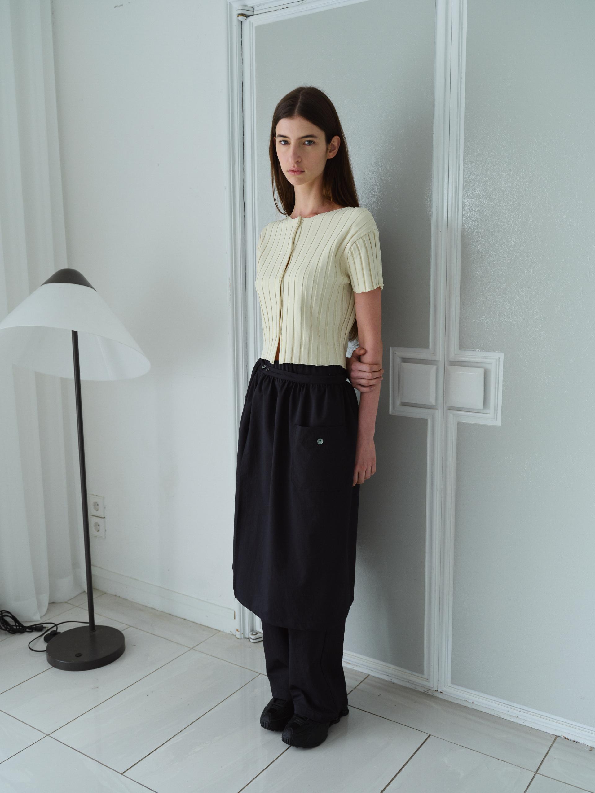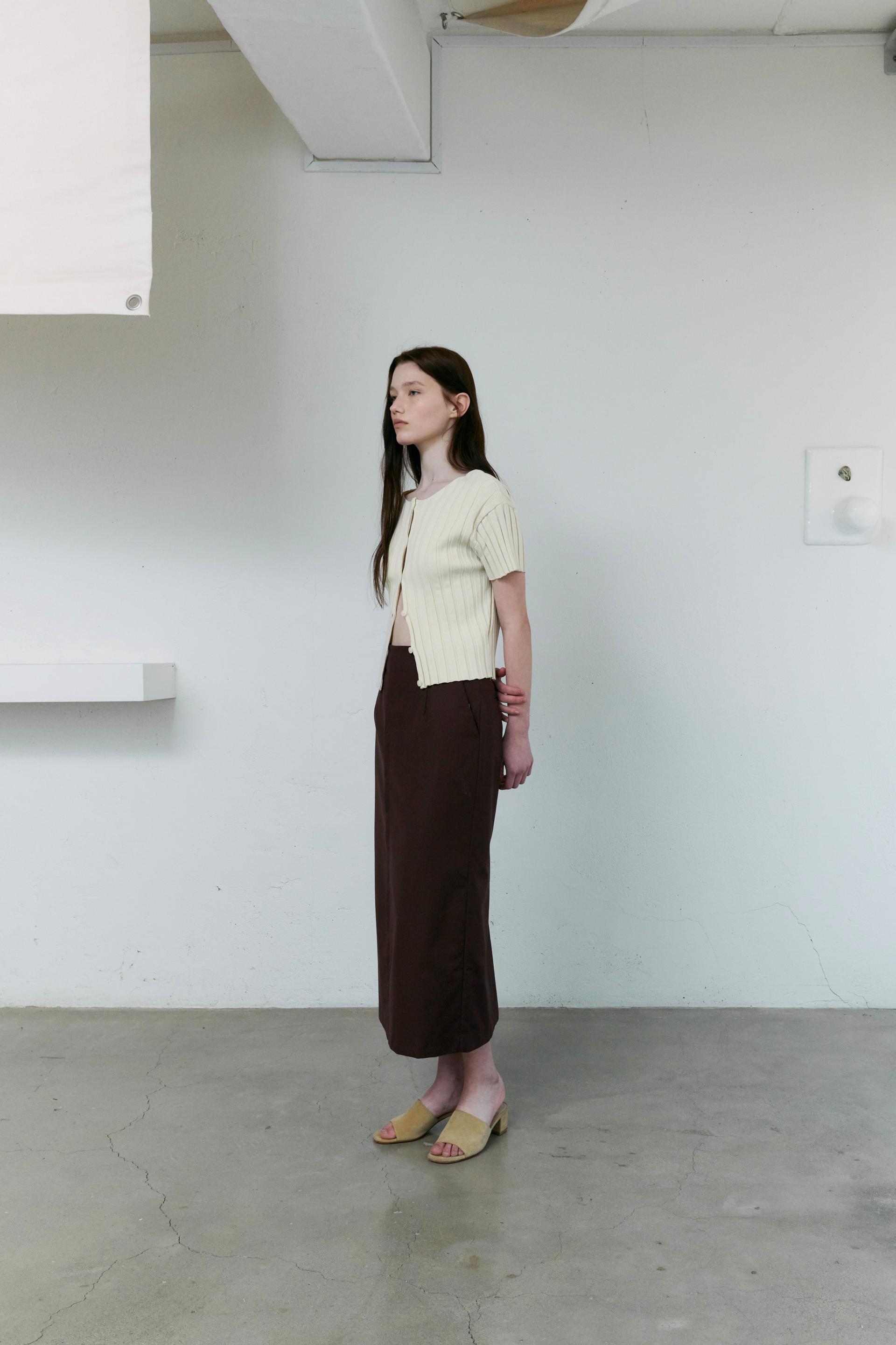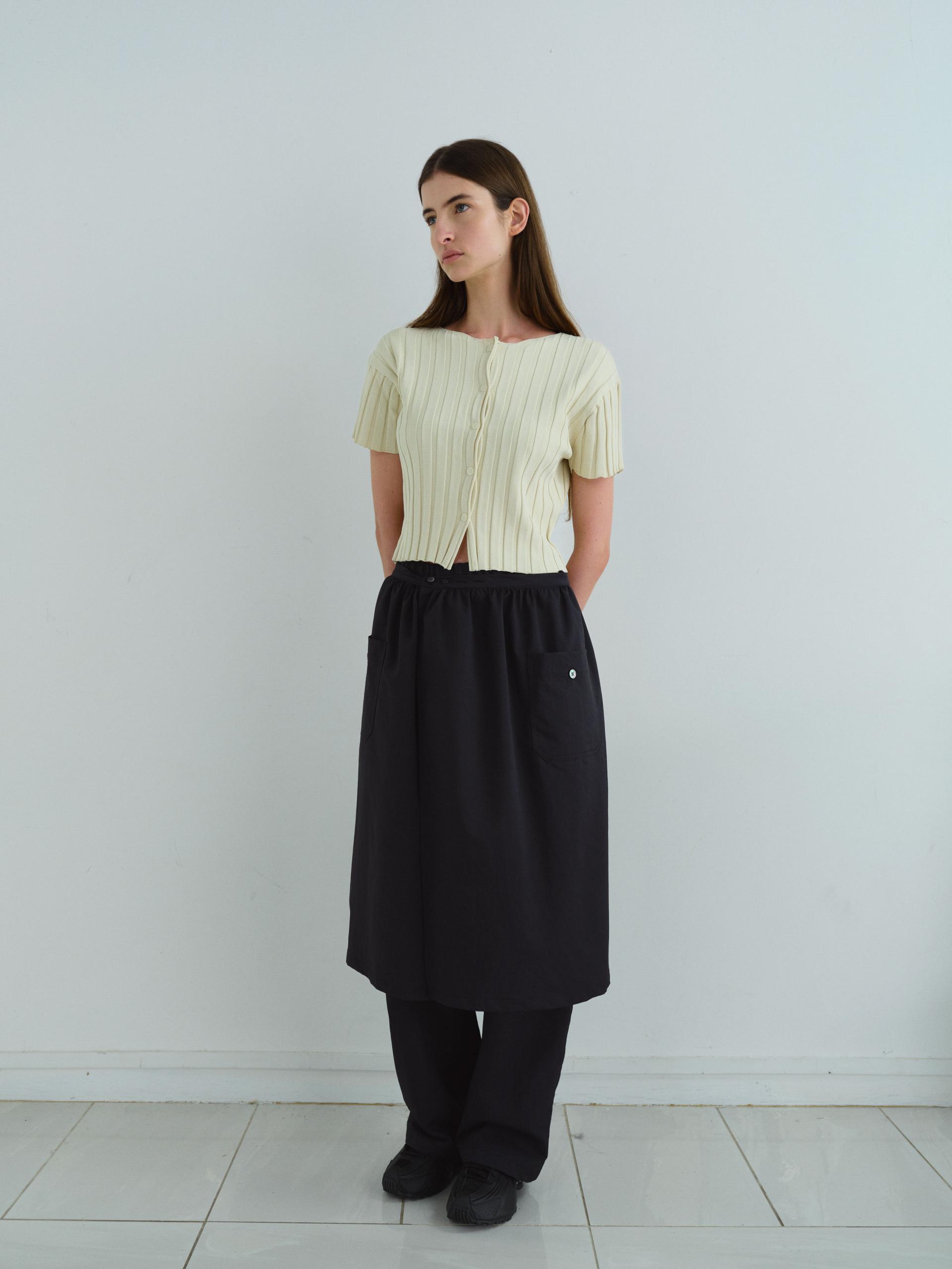 - 짧은 소매와 총장이 특징이며, 촘촘하게 편직해 입체감이 돋보입니다.