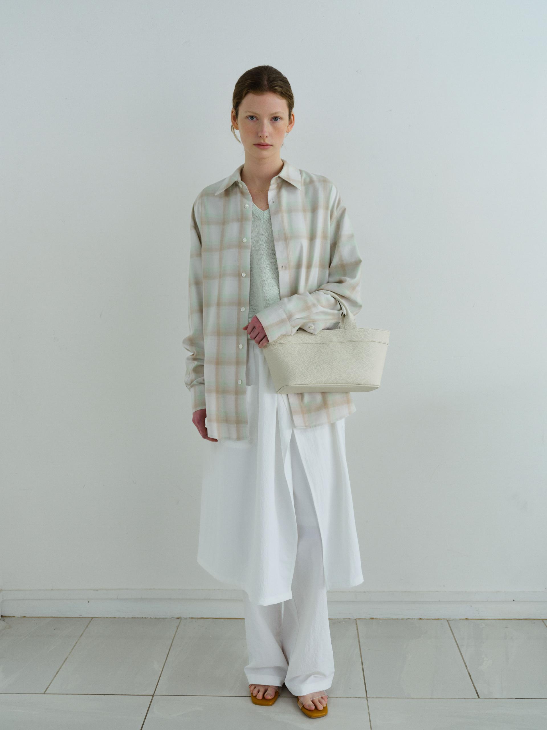 - 좁고 깊은 넥 라인이 특징으로 미니멀함을 강조했습니다.