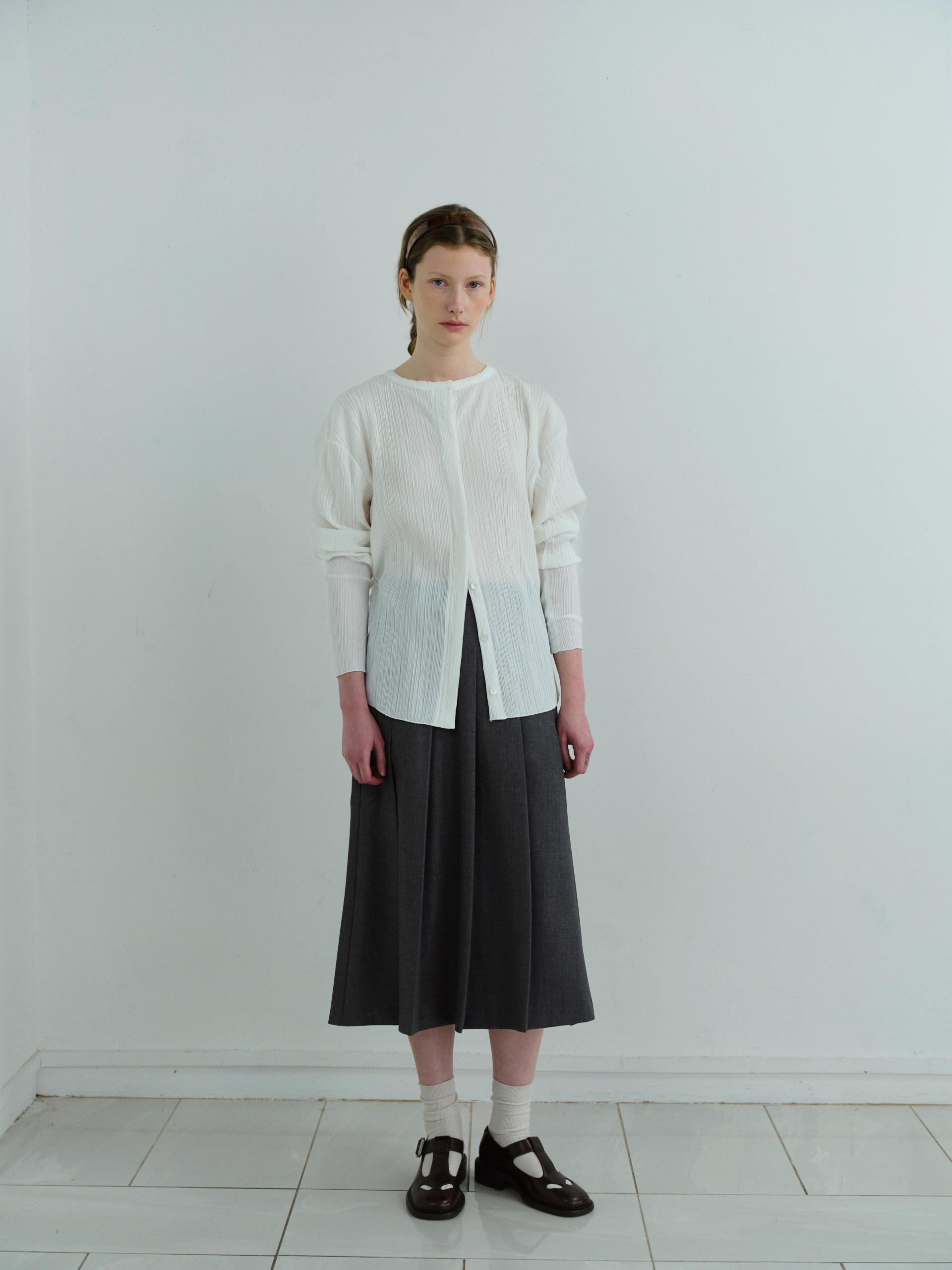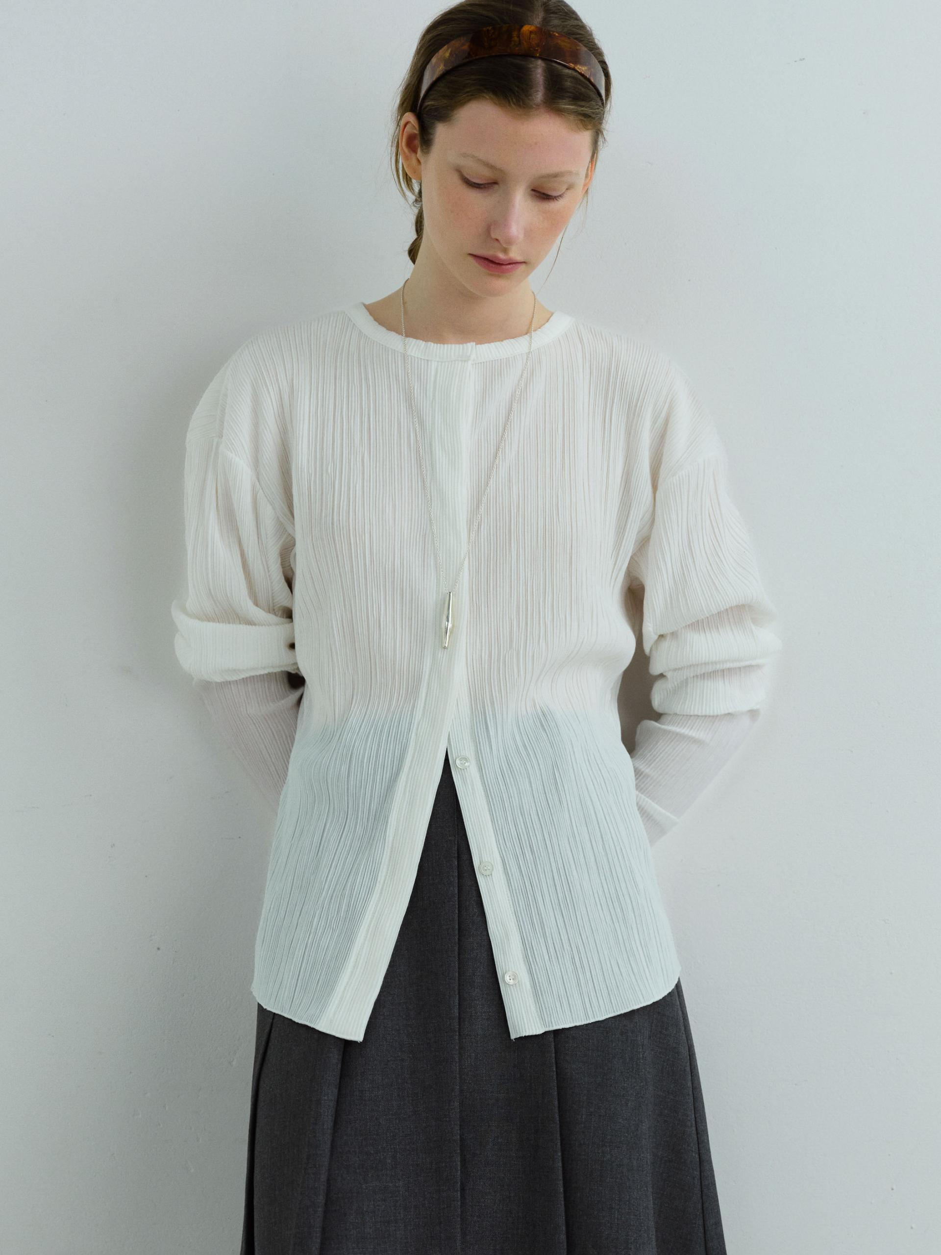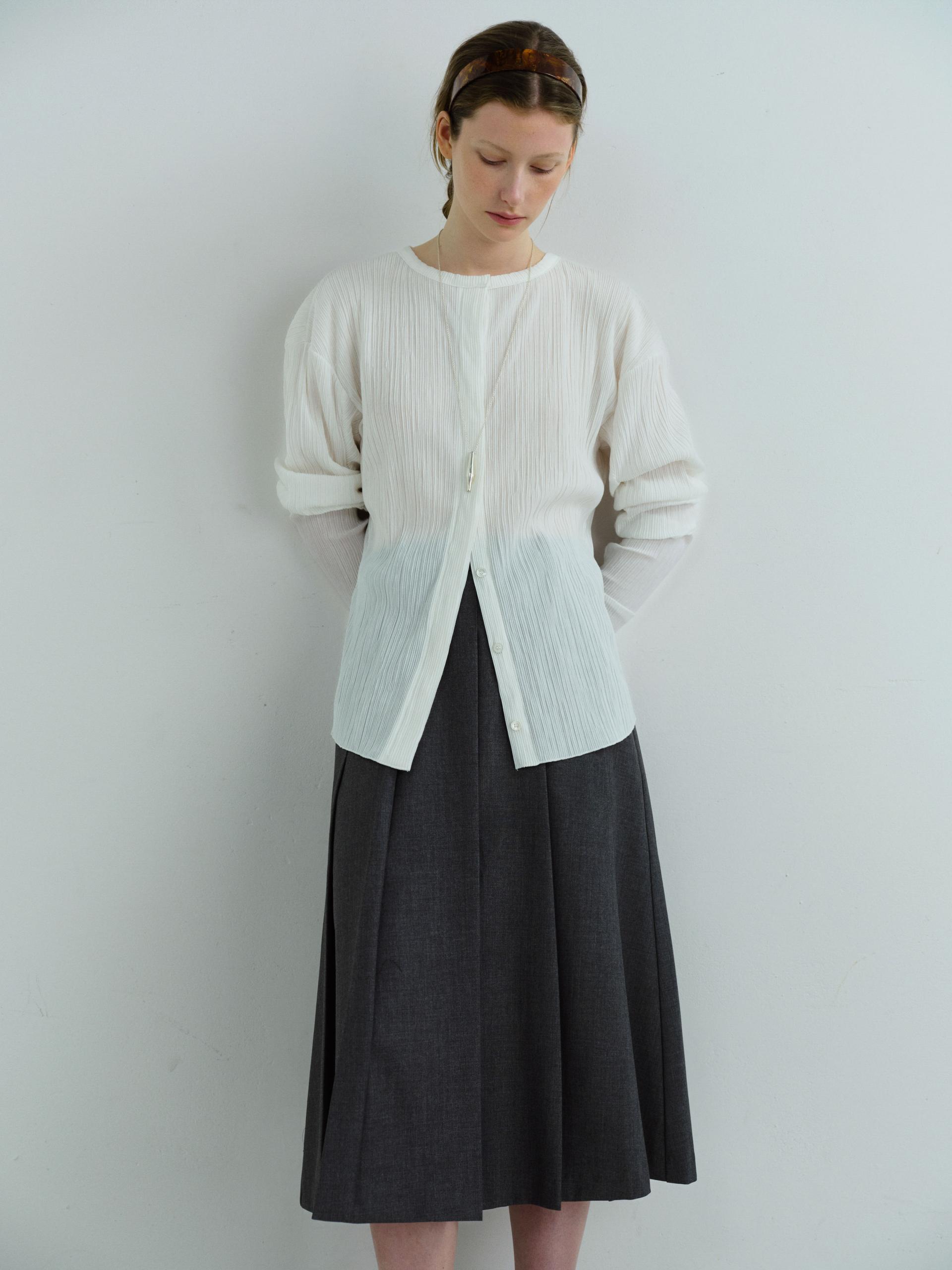 - 히든 버튼으로 미니멀하면서 유니크한 디자인의 플리츠 블라우스입니다.