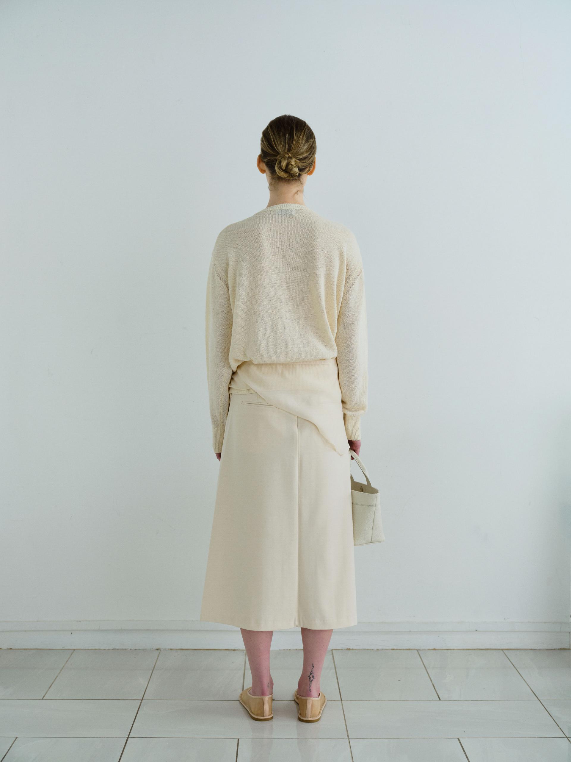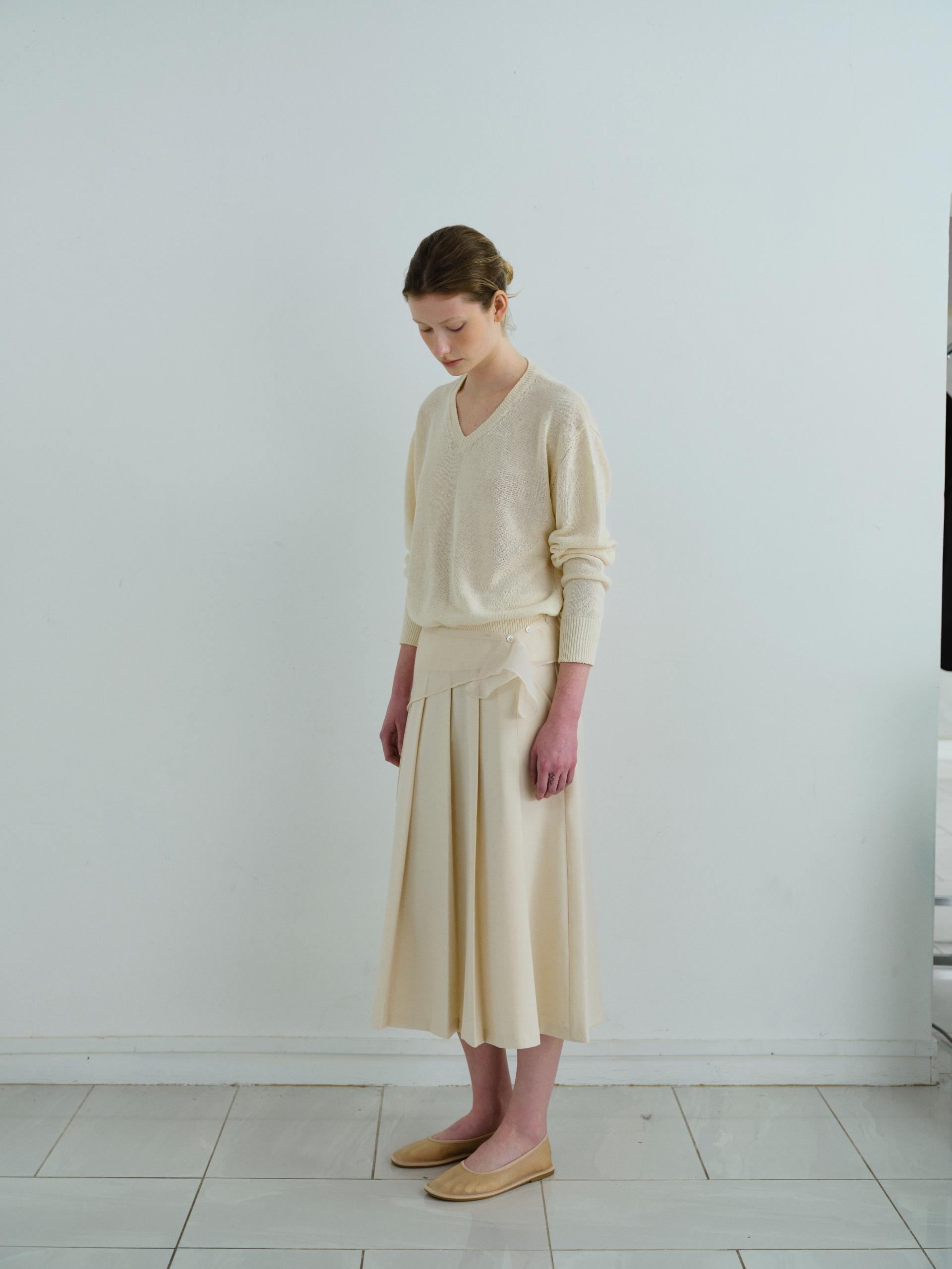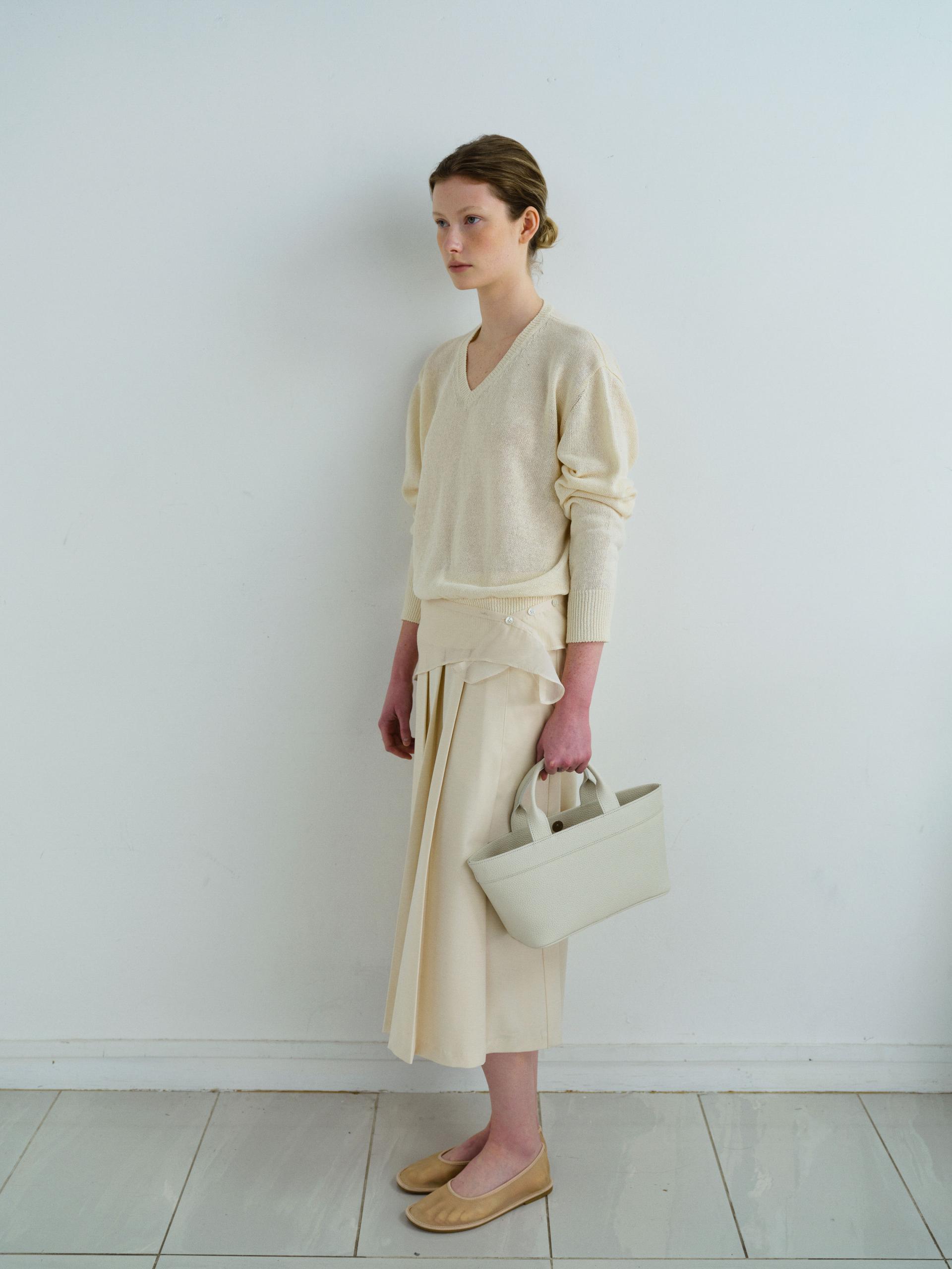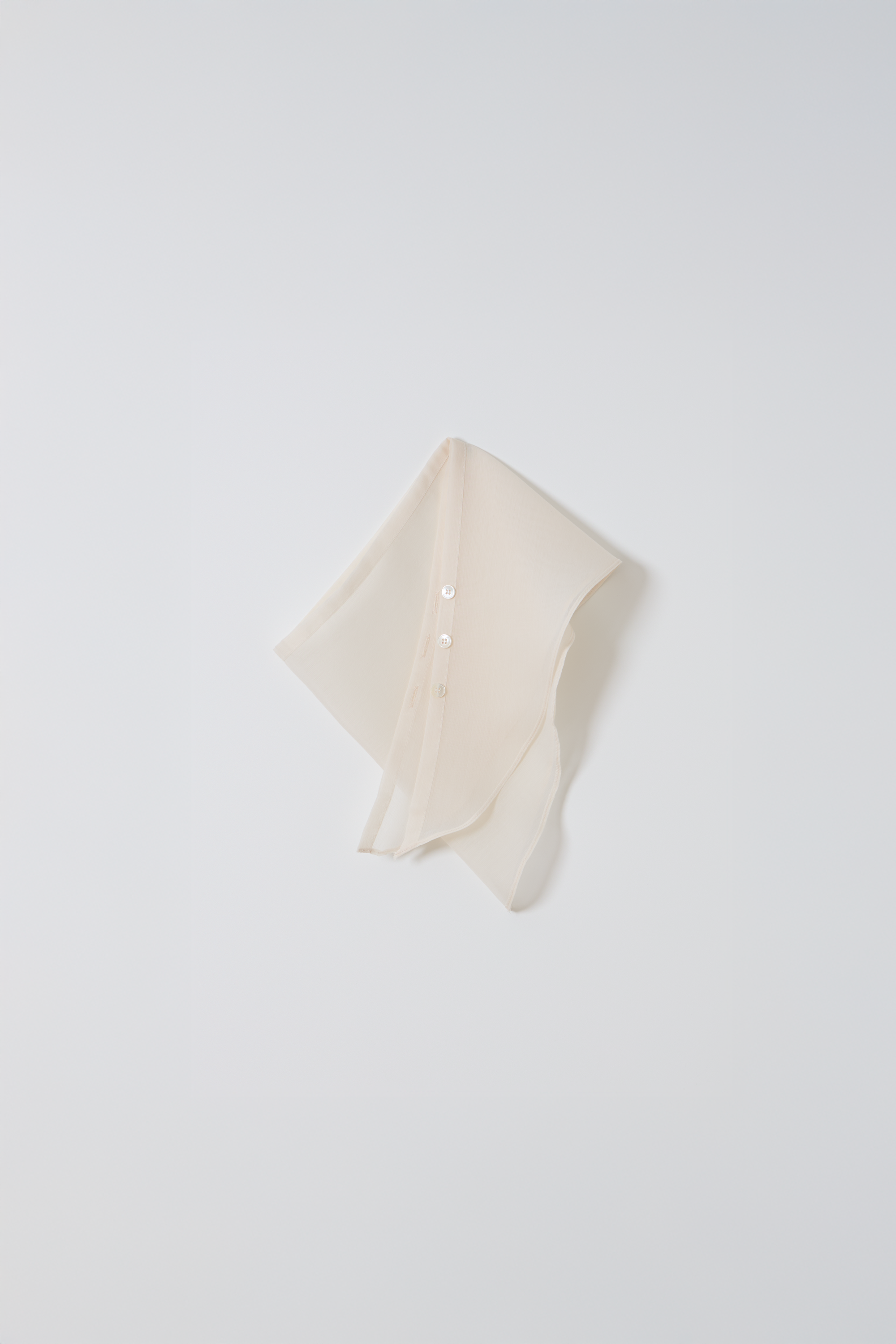 -상단에 단추가 달려 있어 유니크한 디자인이 특징이며, 단추를 활용해 허리에 두르거나 머리, 목 등에 매듭지어 연출하는 등 다양한 방식으로 활용할 수 있는 스카프입니다.