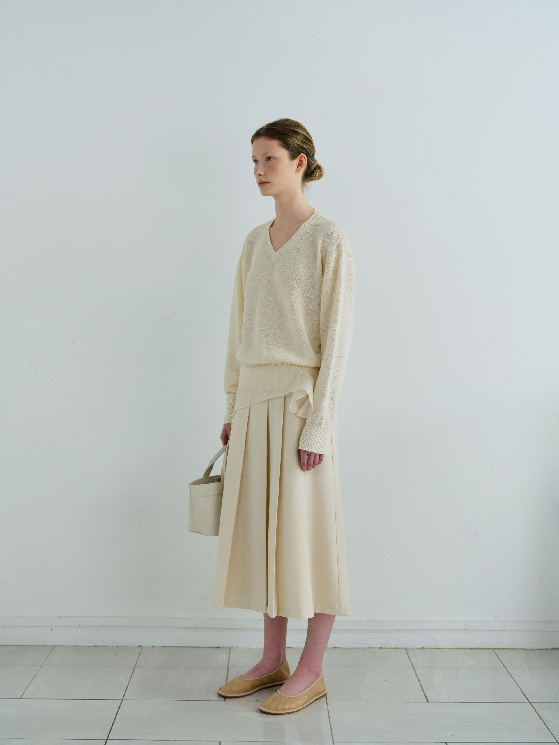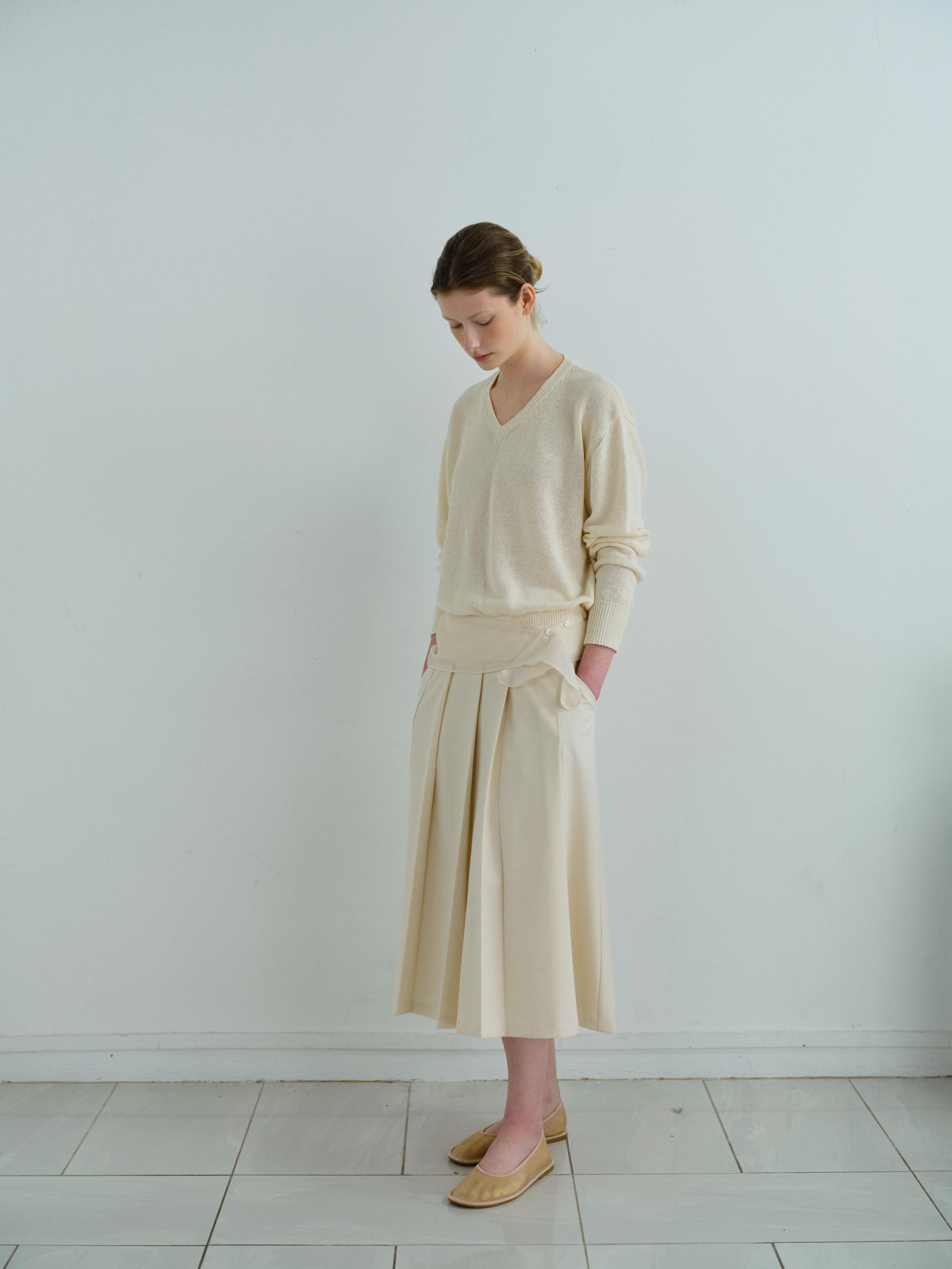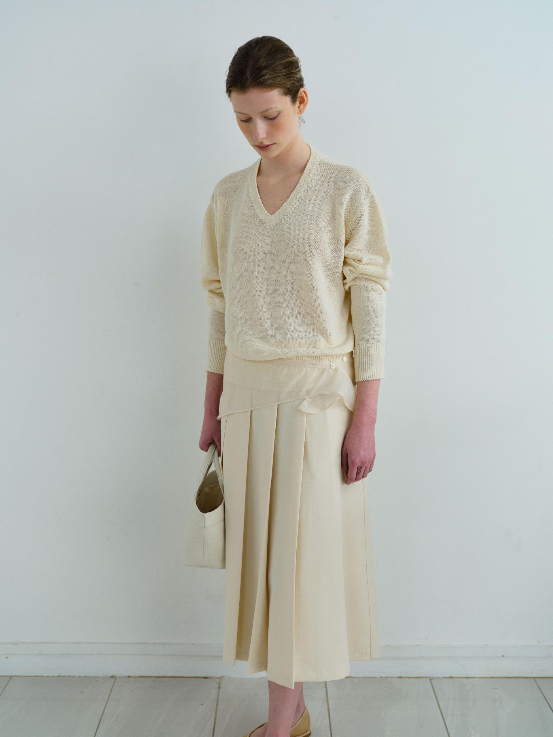 -상단에 단추가 달려 있어 유니크한 디자인이 특징이며, 단추를 활용해 허리에 두르거나 머리, 목 등에 매듭지어 연출하는 등 다양한 방식으로 활용할 수 있는 스카프입니다.