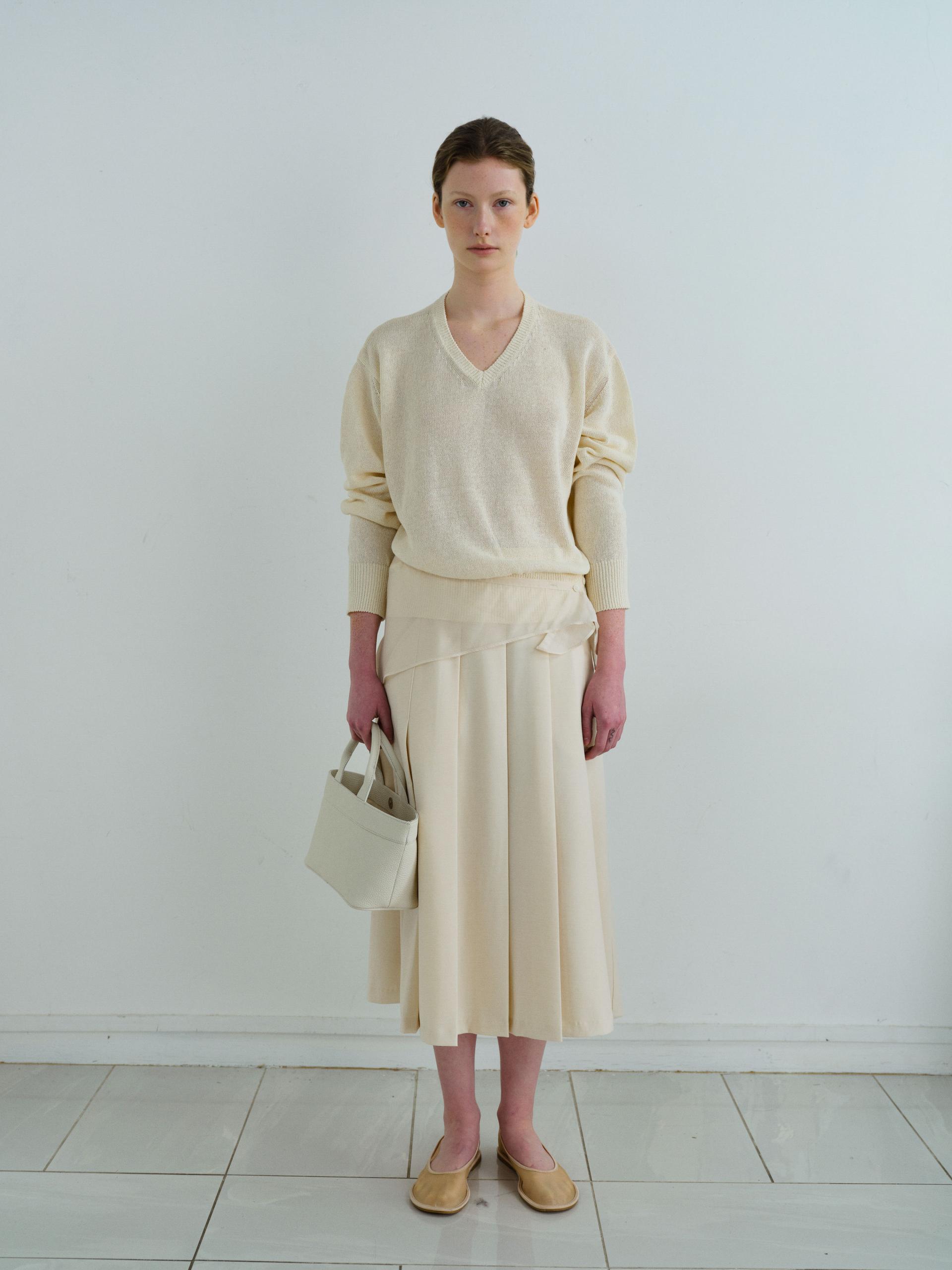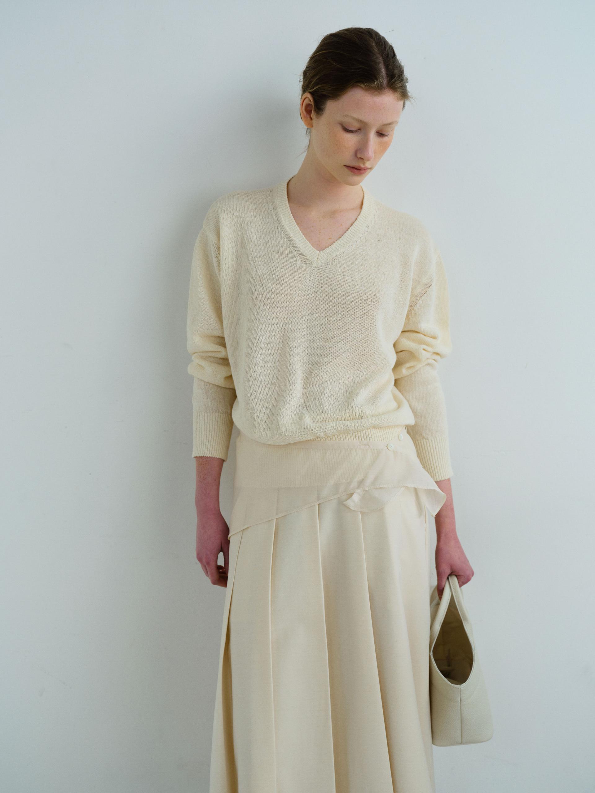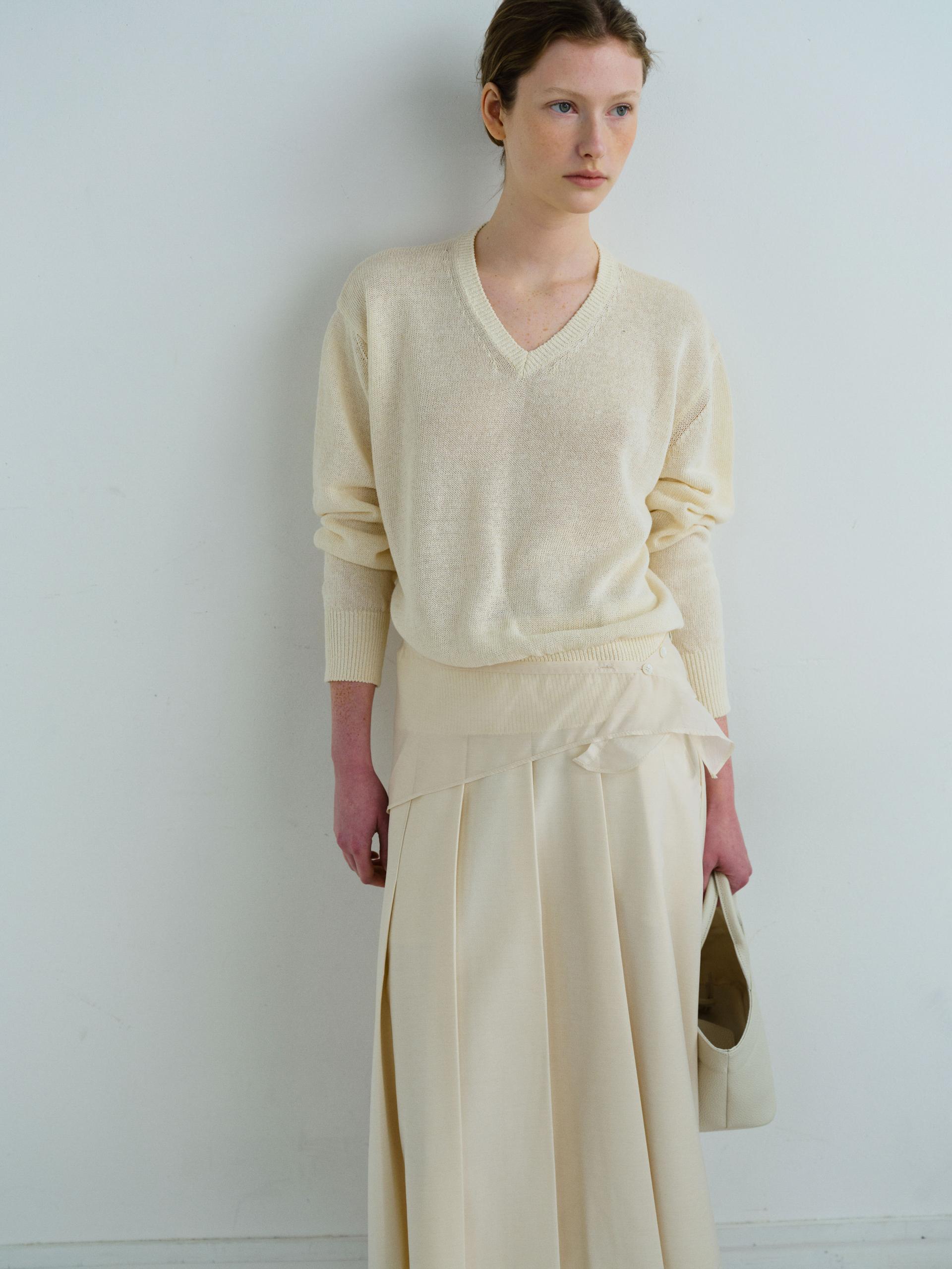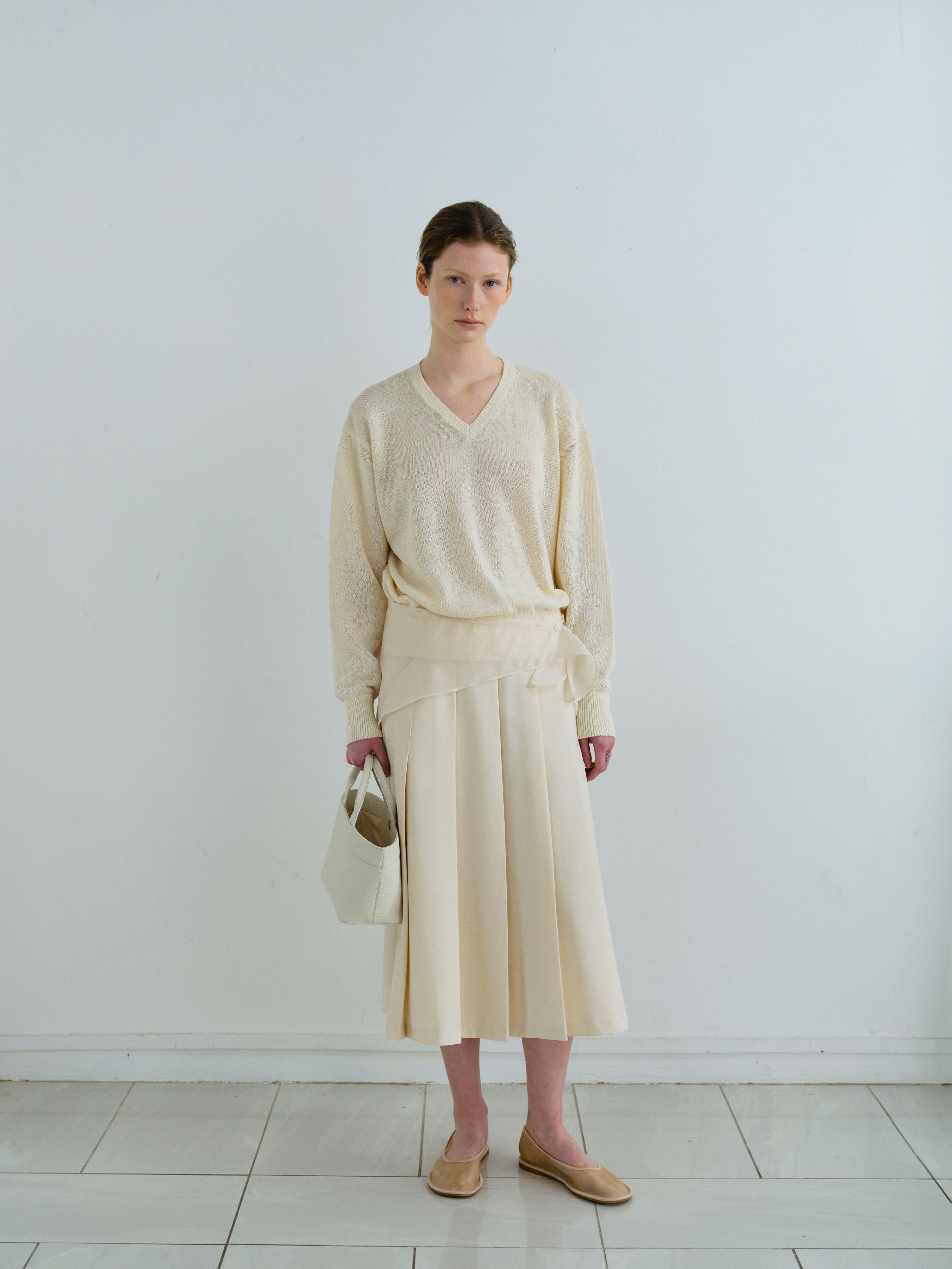 -상단에 단추가 달려 있어 유니크한 디자인이 특징이며, 단추를 활용해 허리에 두르거나 머리, 목 등에 매듭지어 연출하는 등 다양한 방식으로 활용할 수 있는 스카프입니다.