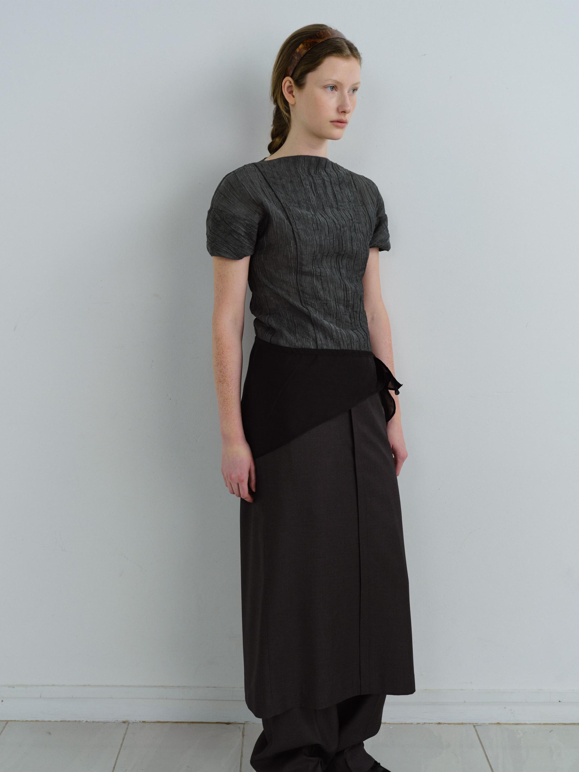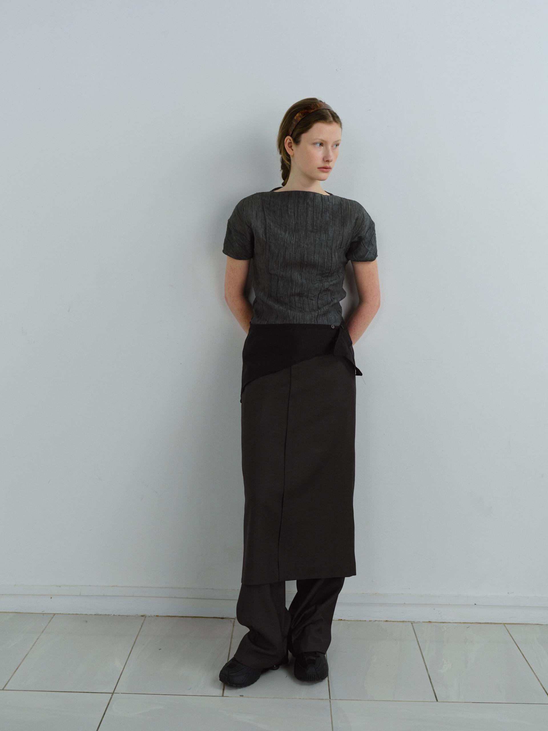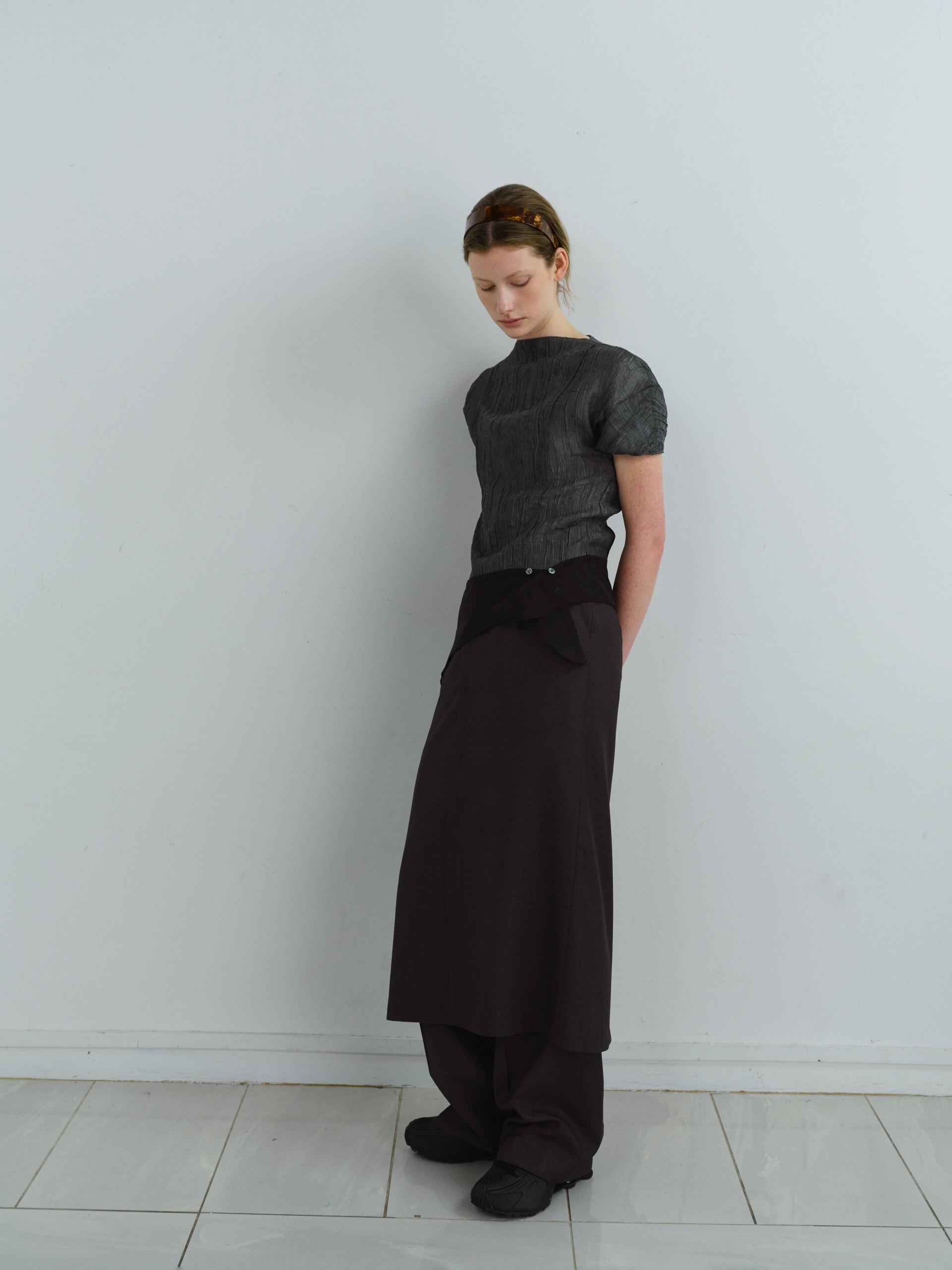 - 상단에 단추가 달려 있어 유니크한 디자인이 특징이며, 단추를 활용해 허리에 두르거나 머리, 목 등에 매듭지어 연출하는 등 다양한 방식으로 활용할 수 있는 스카프입니다.