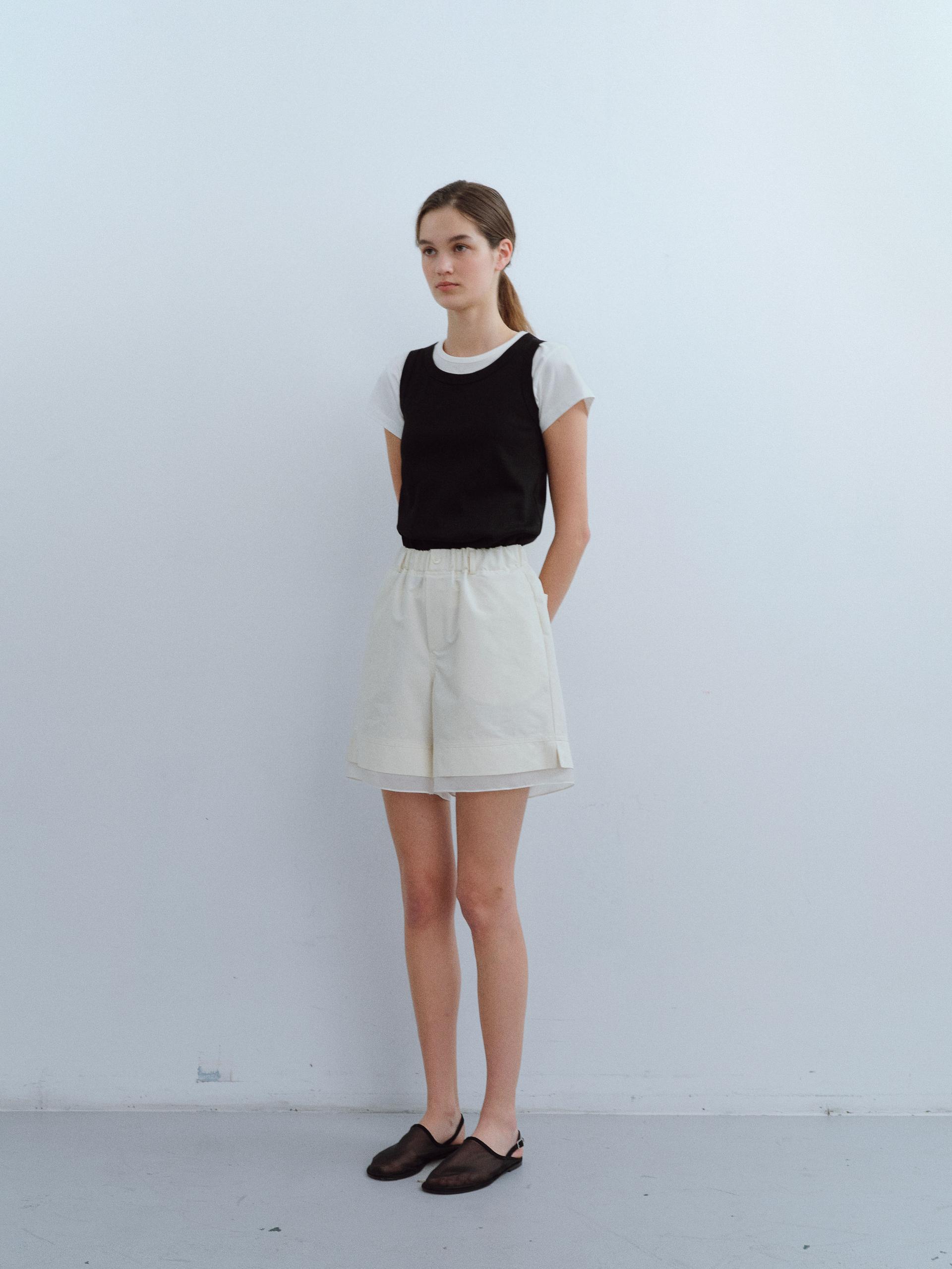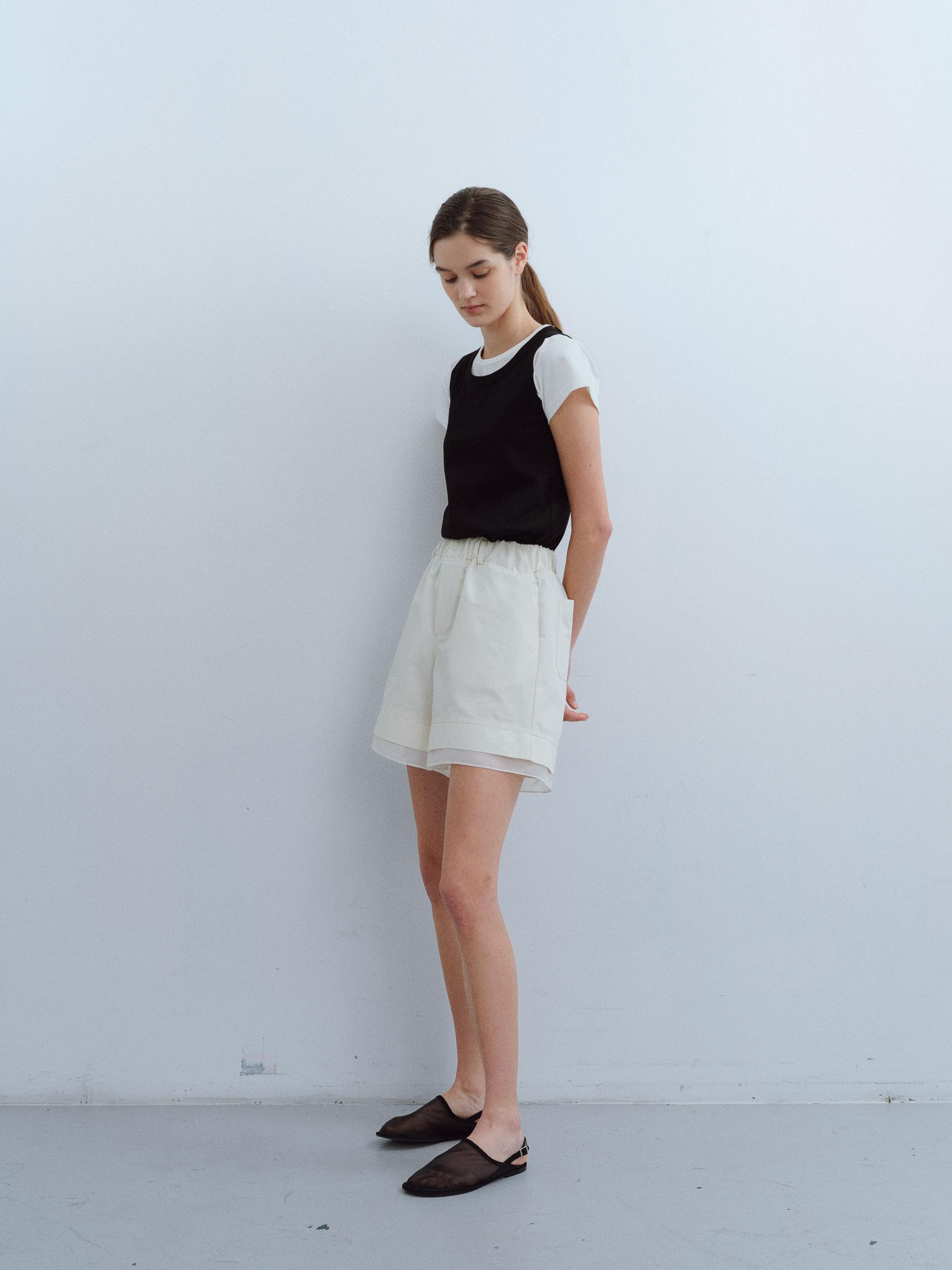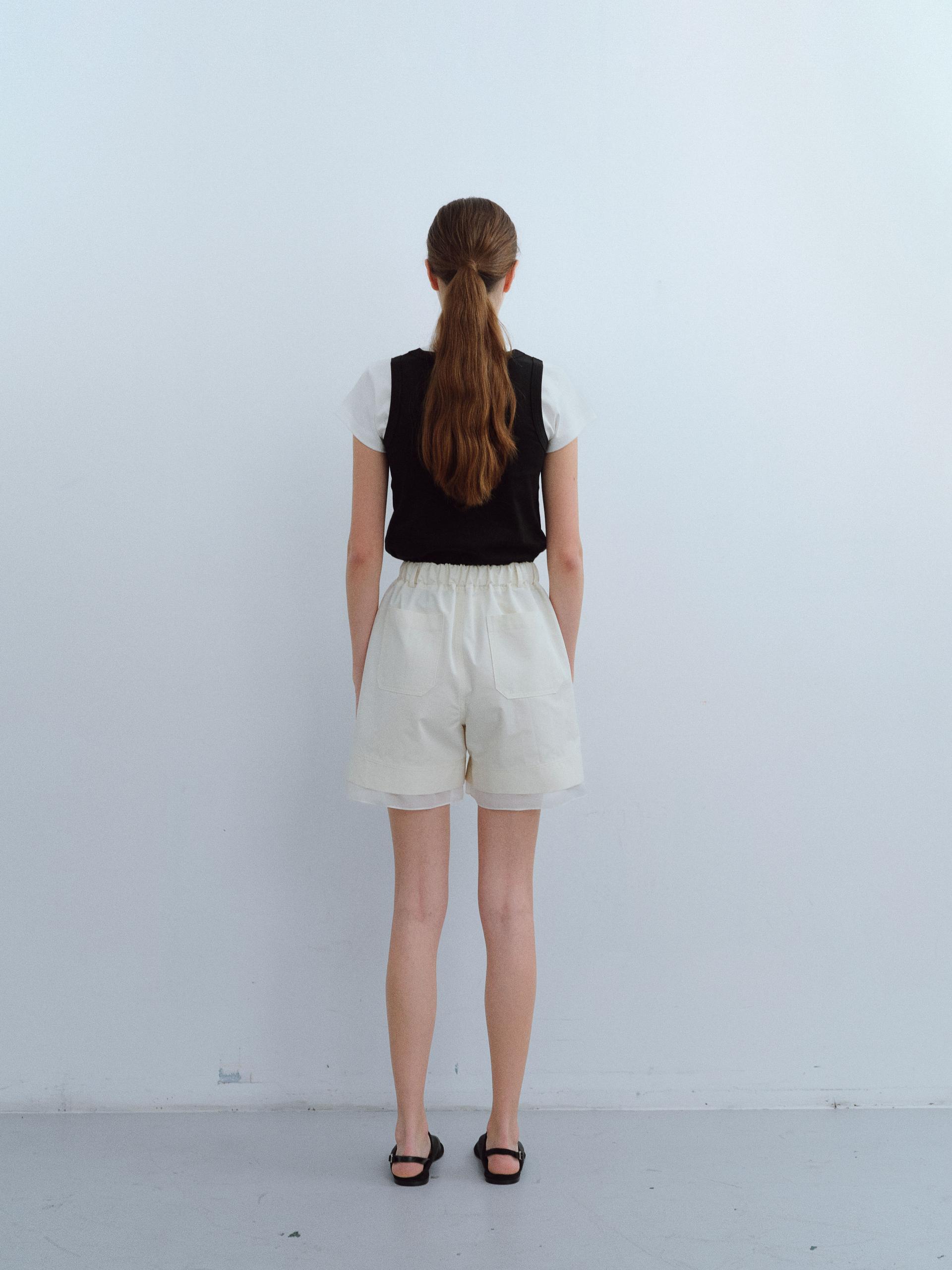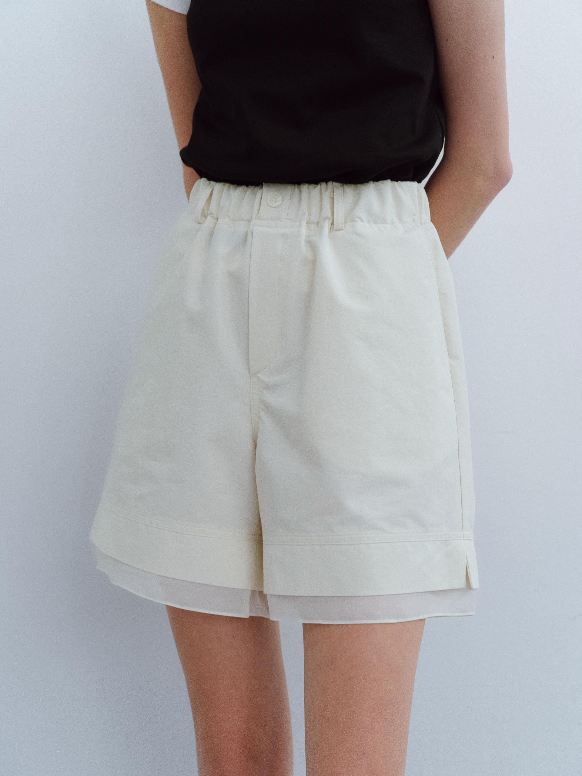 [B-grade] layered banding shorts (ivory)