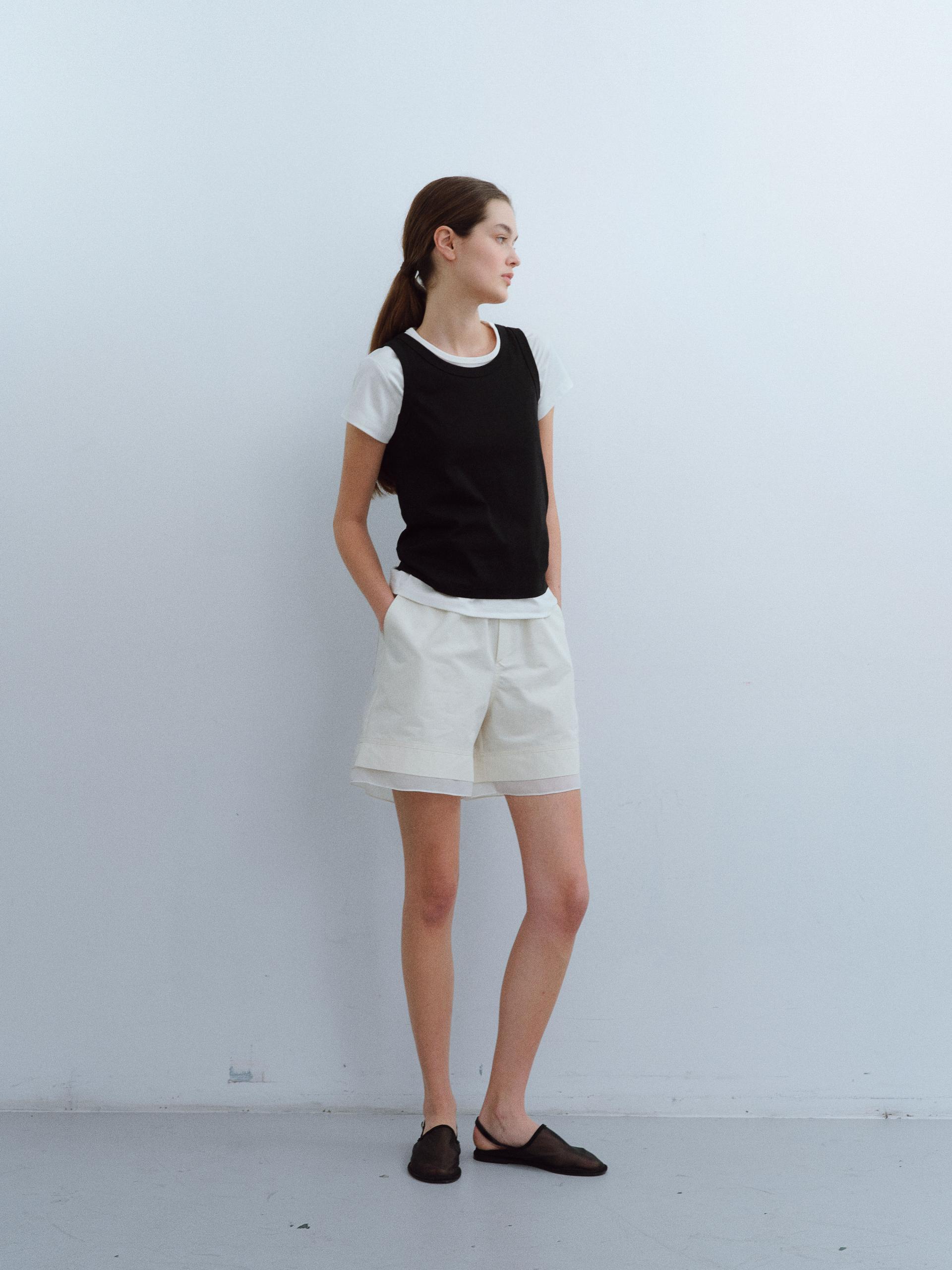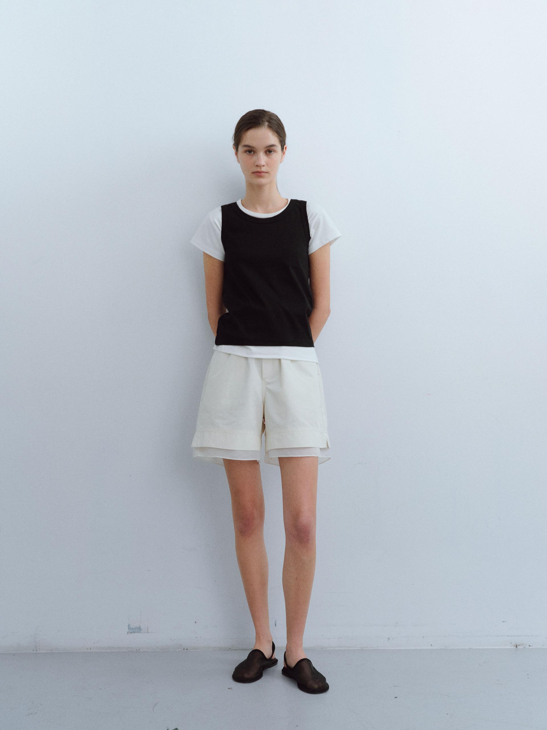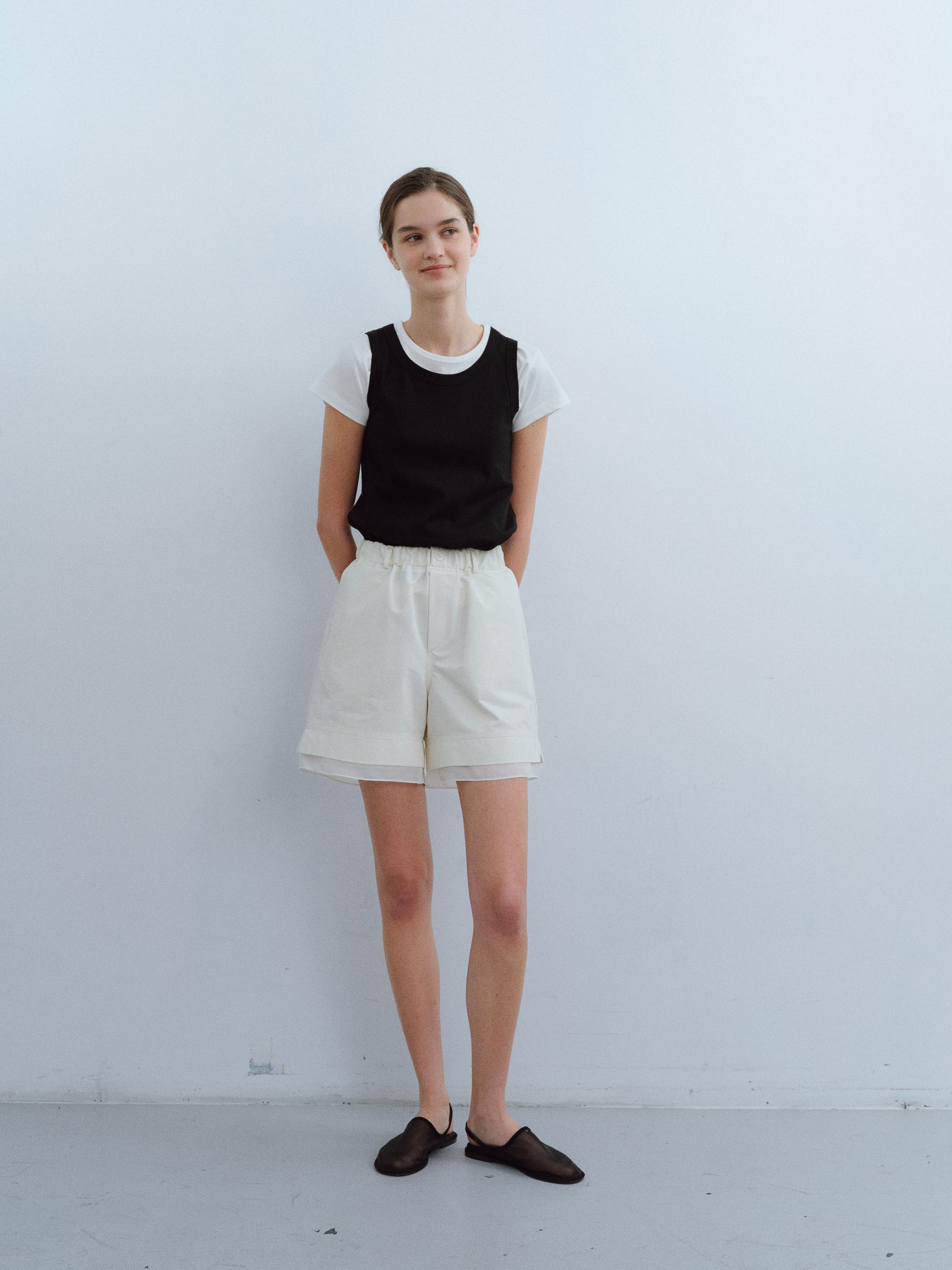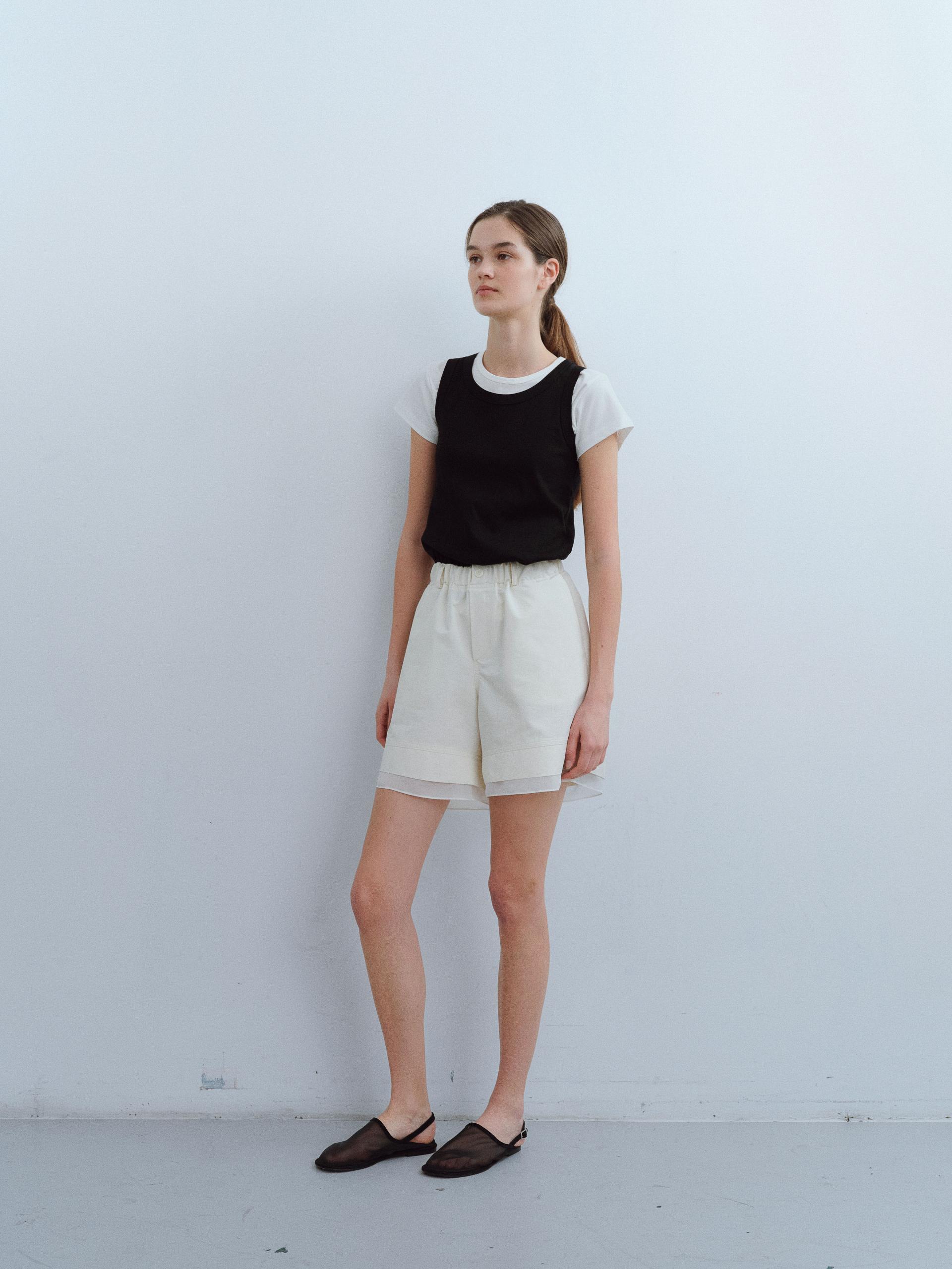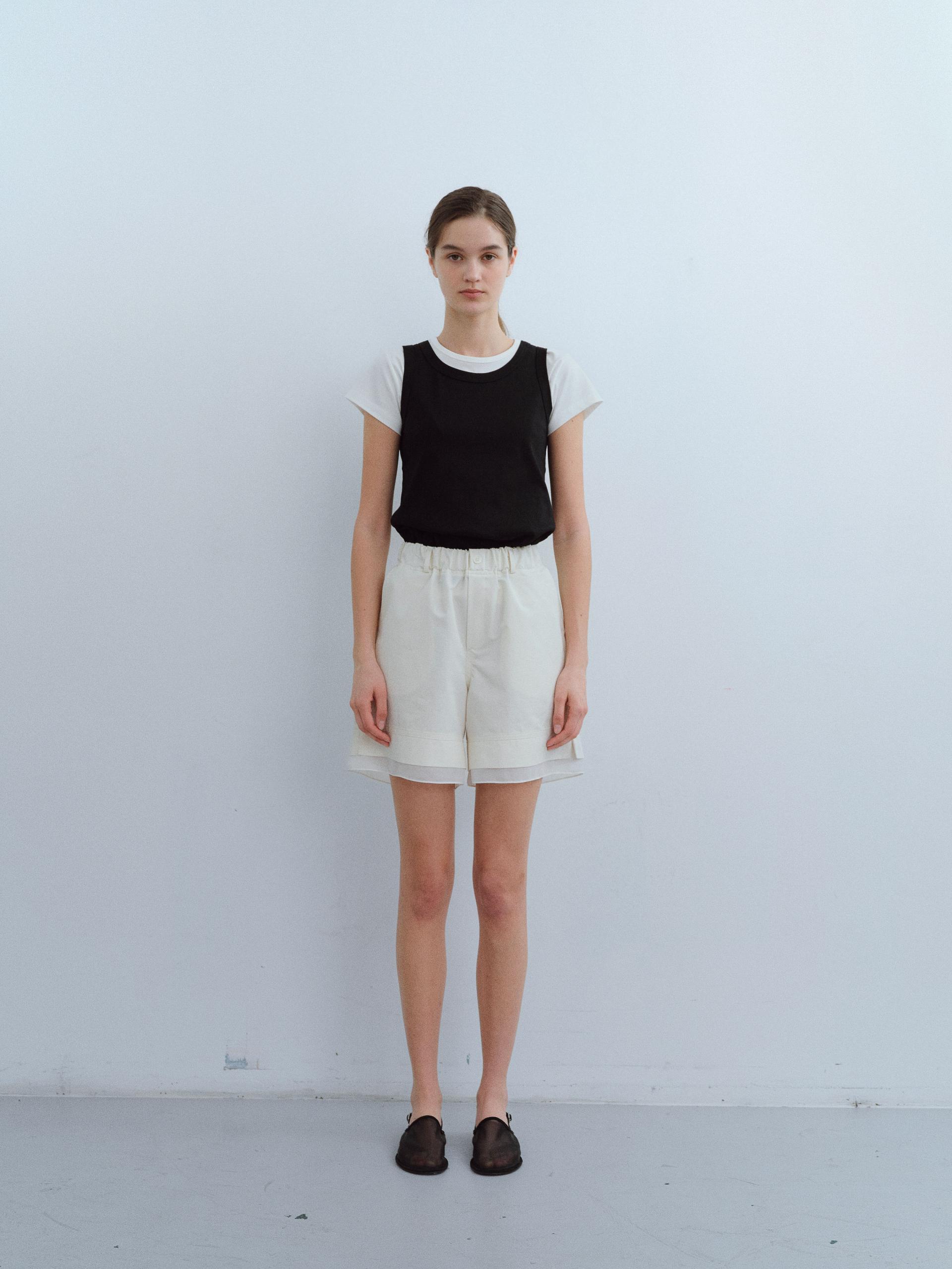 [B-grade] layered banding shorts (ivory)