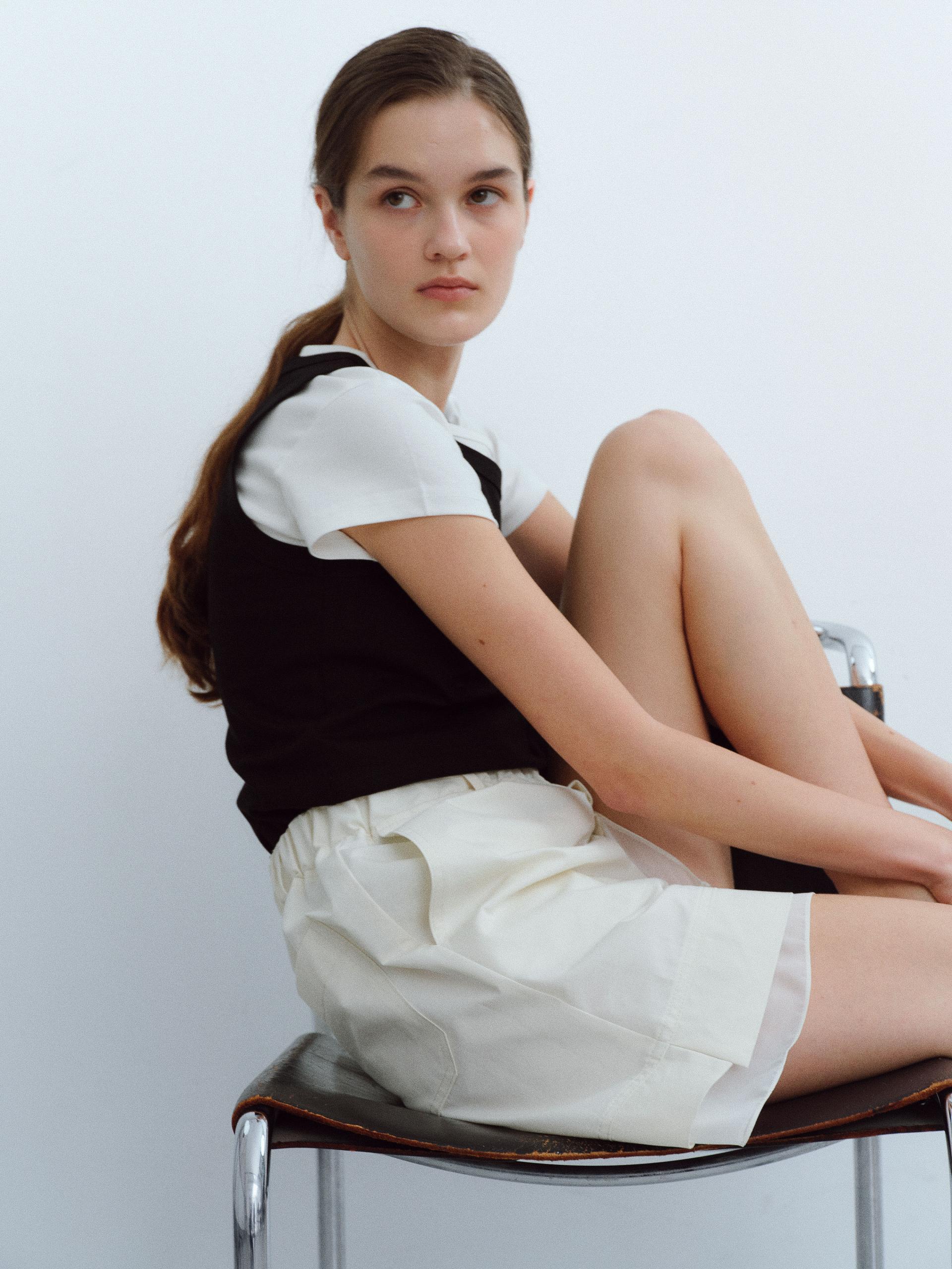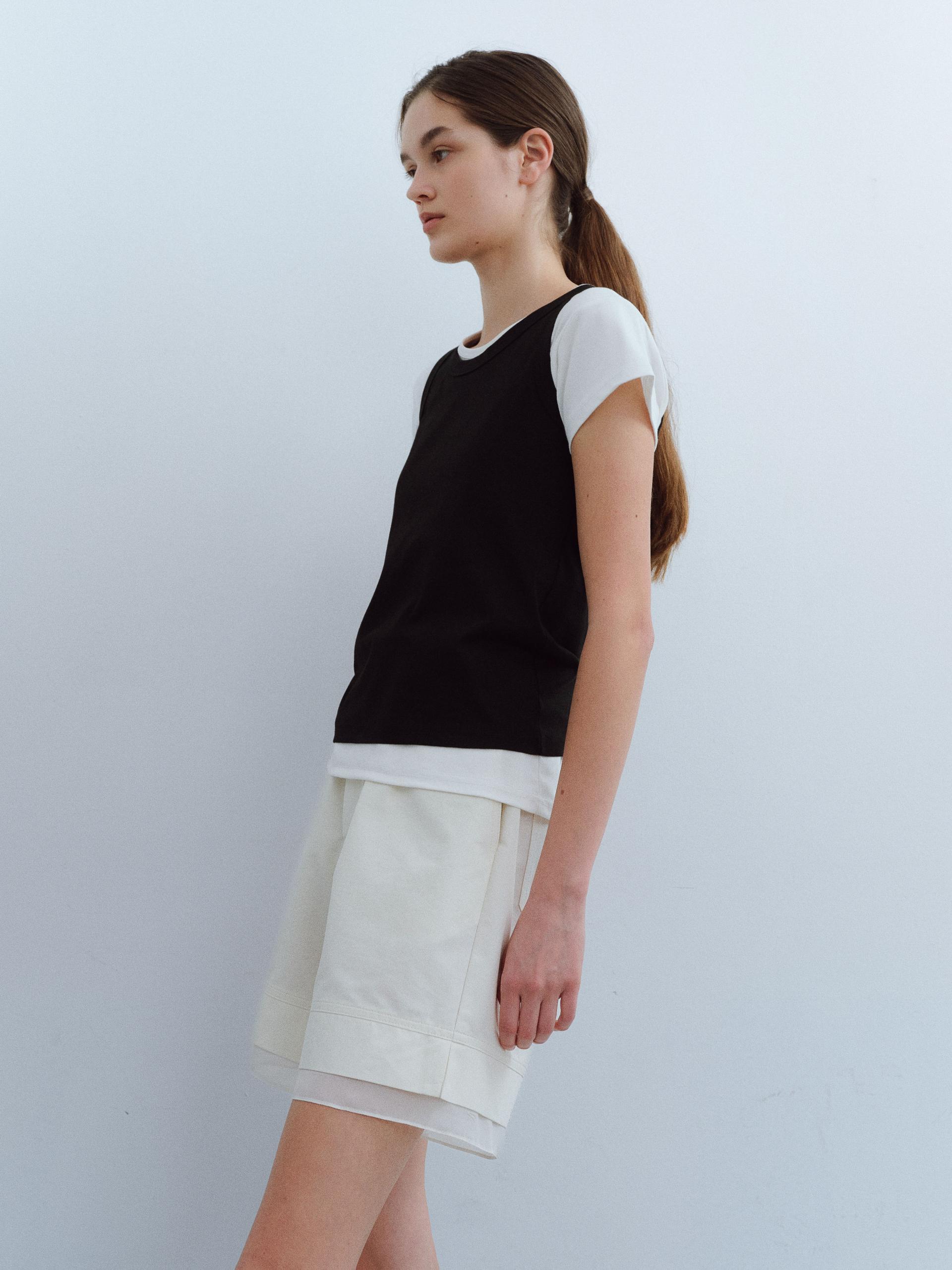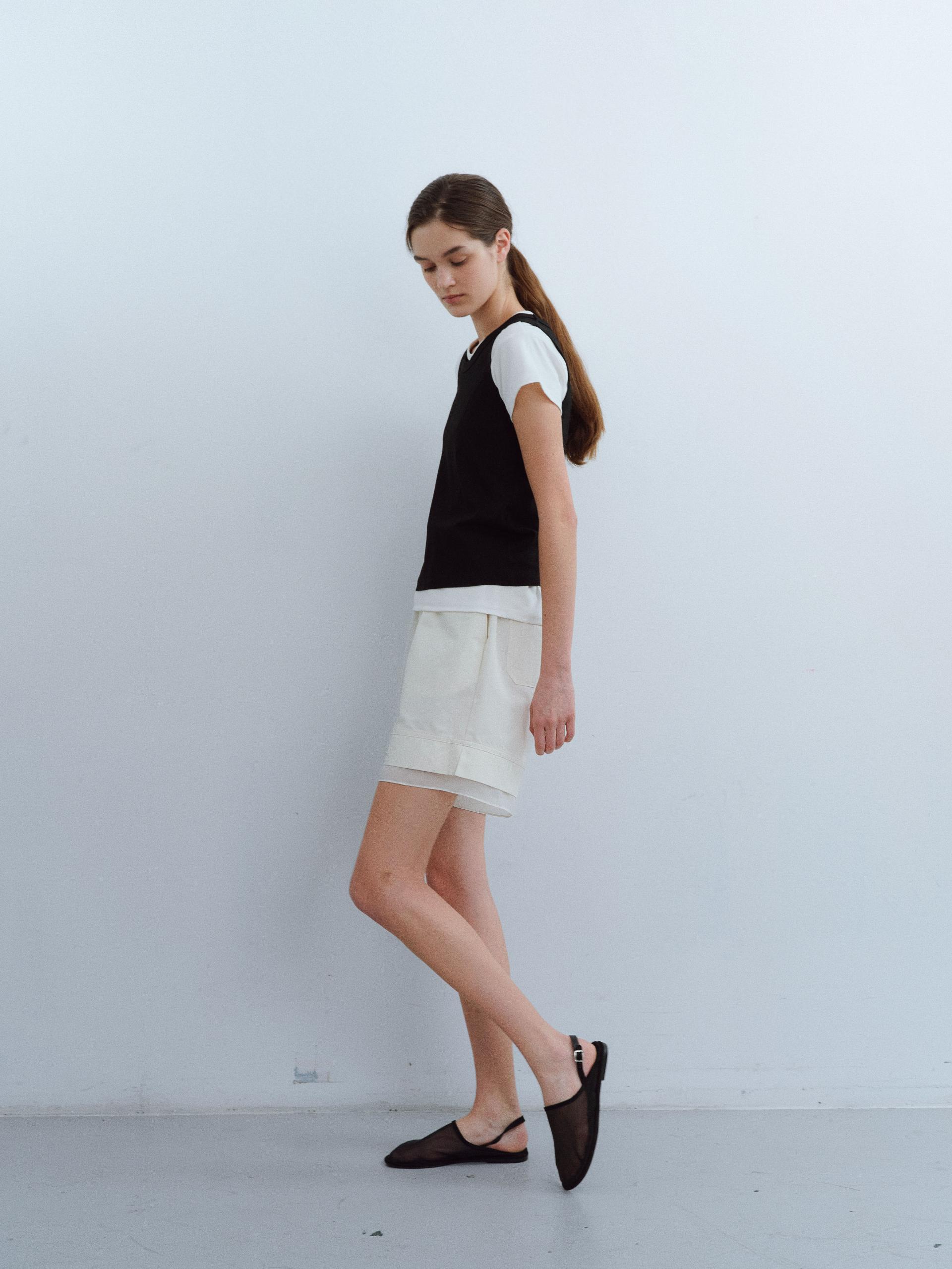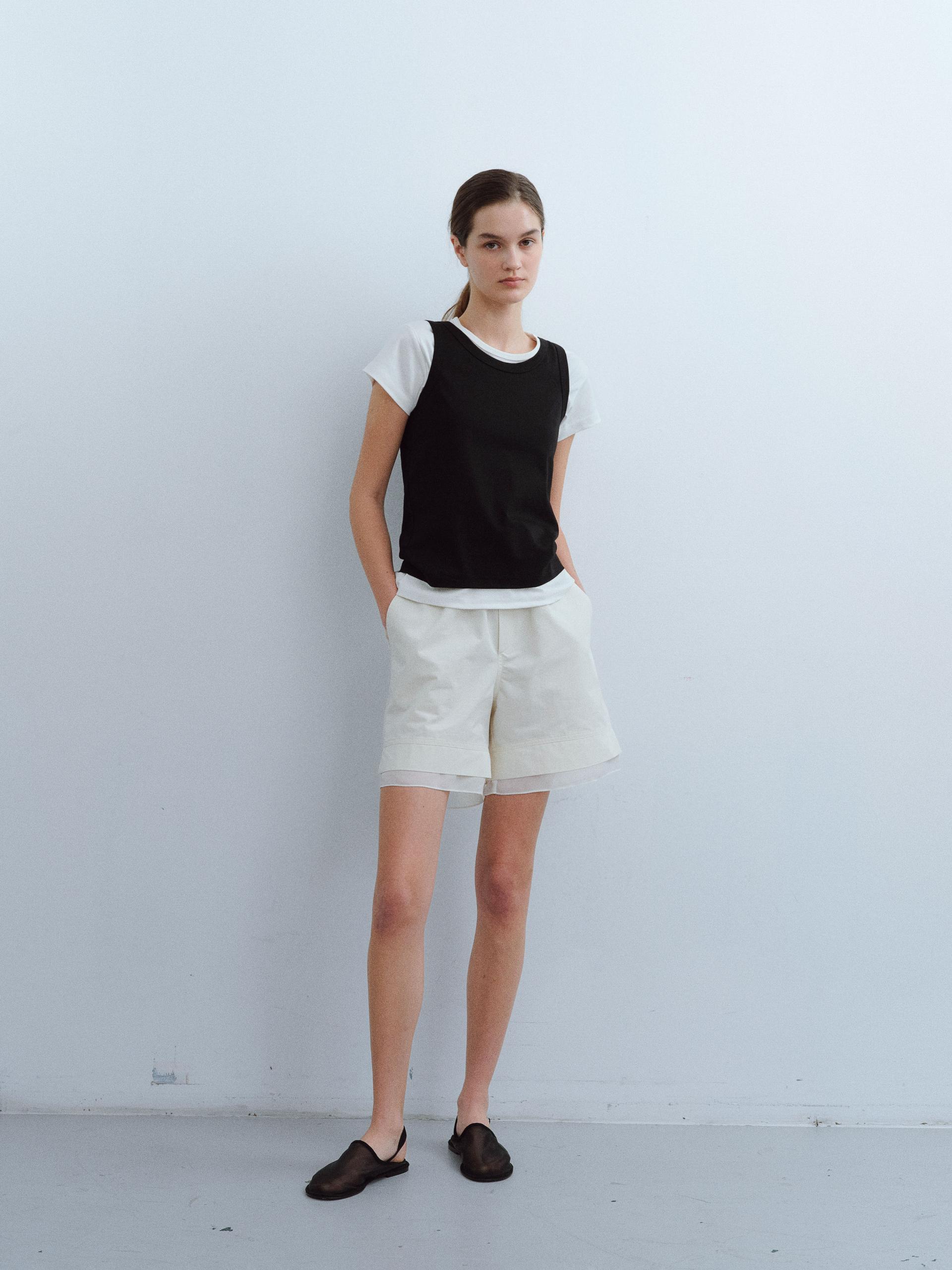 [B-grade] layered banding shorts (ivory)