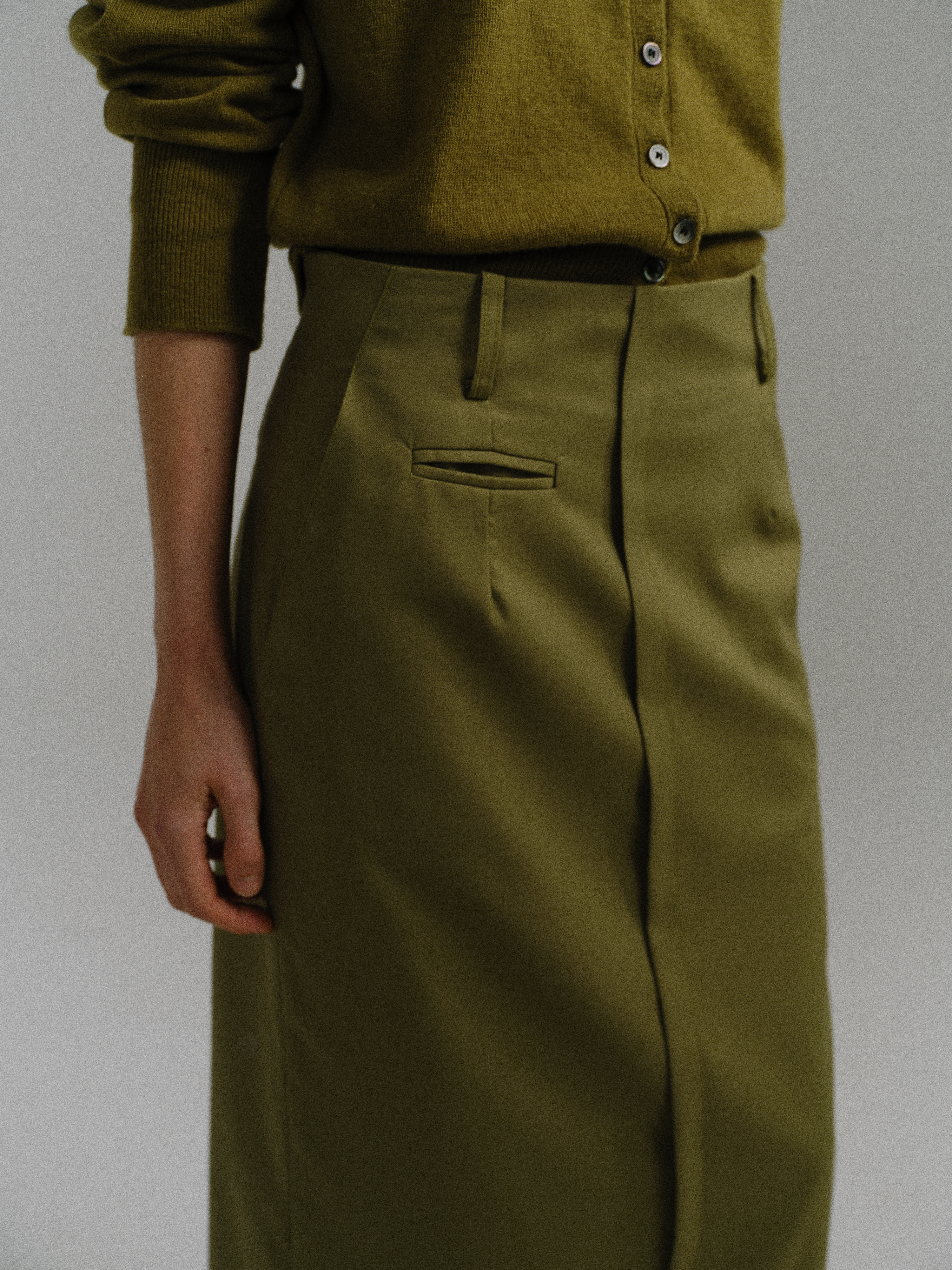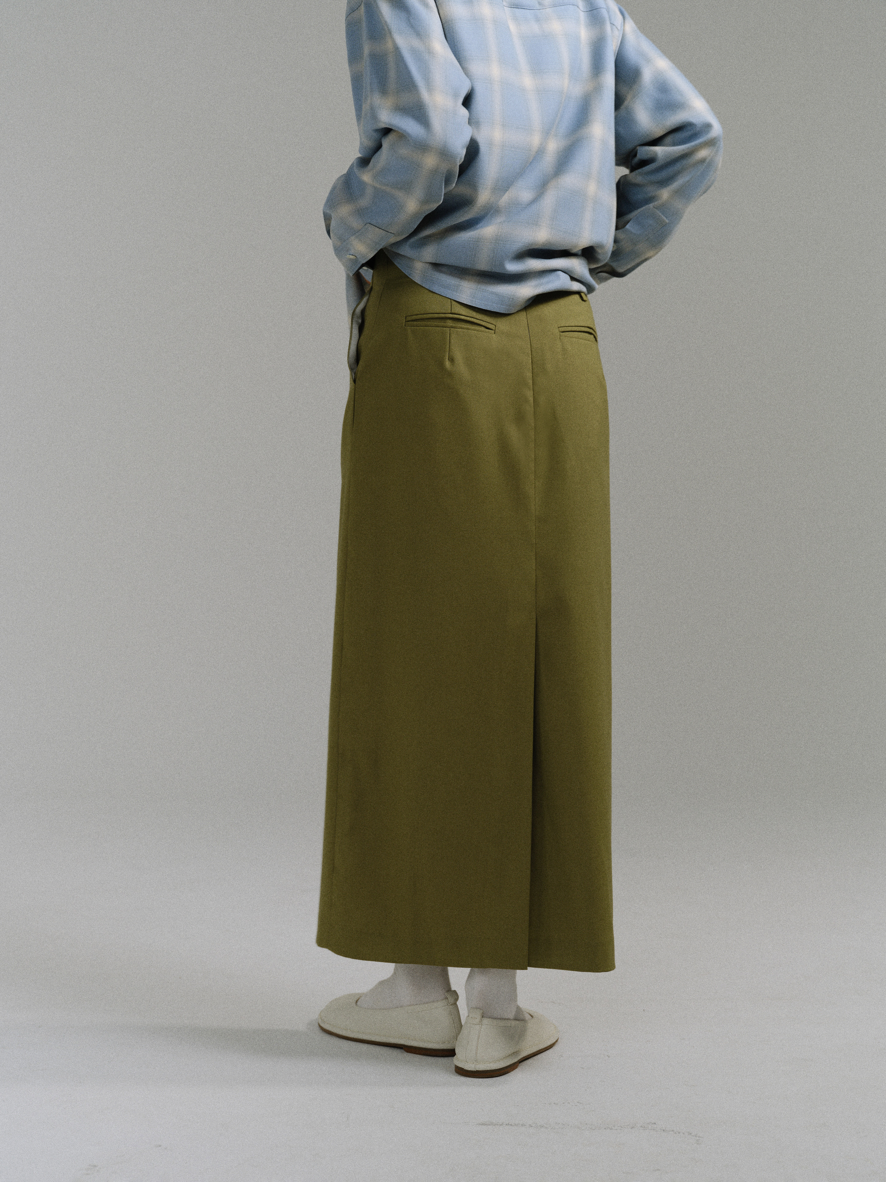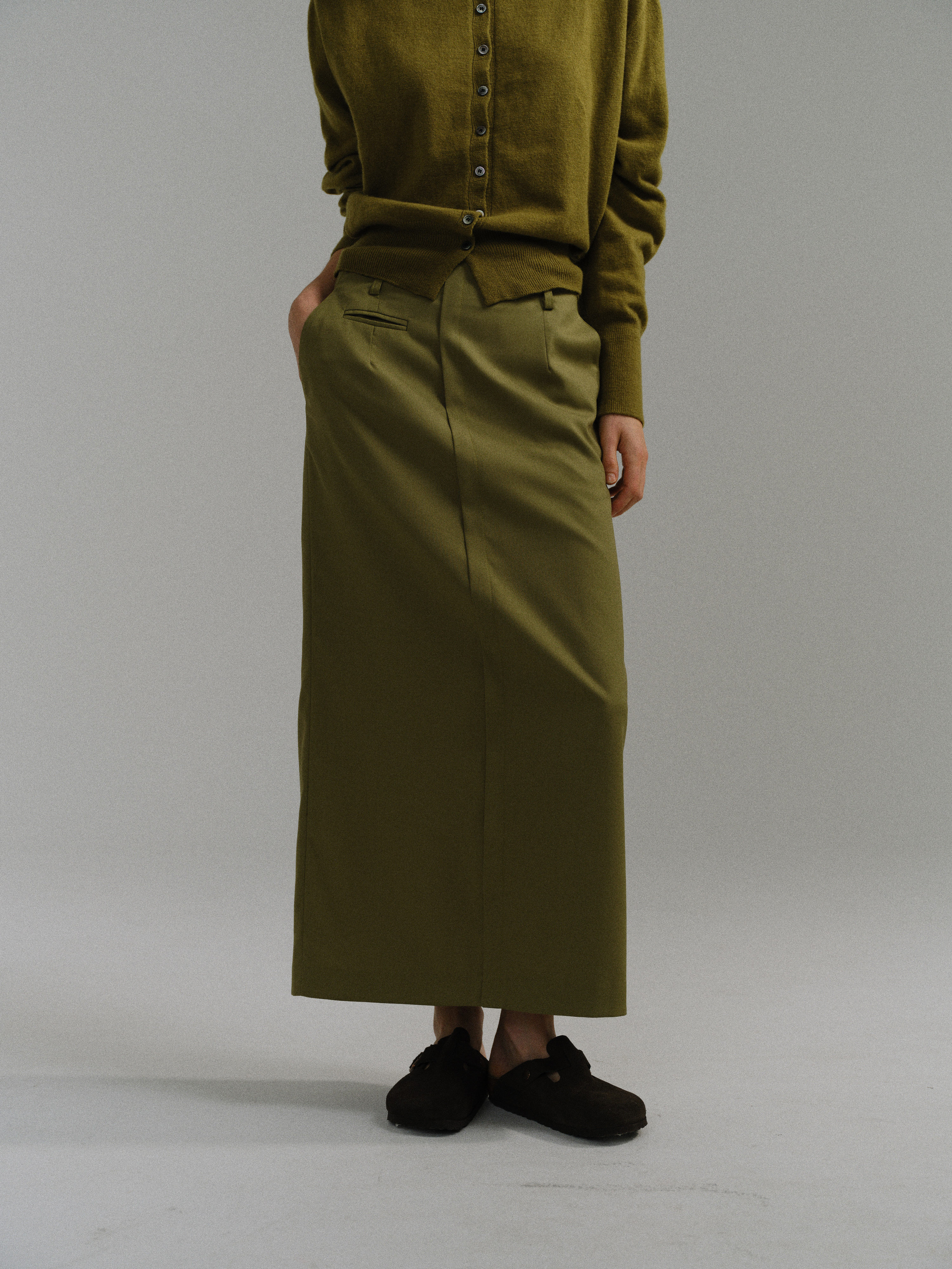 - 아우브아워의 시그니처 아이템인 lip pencil skirt의 올리브 컬러 제품입니다.