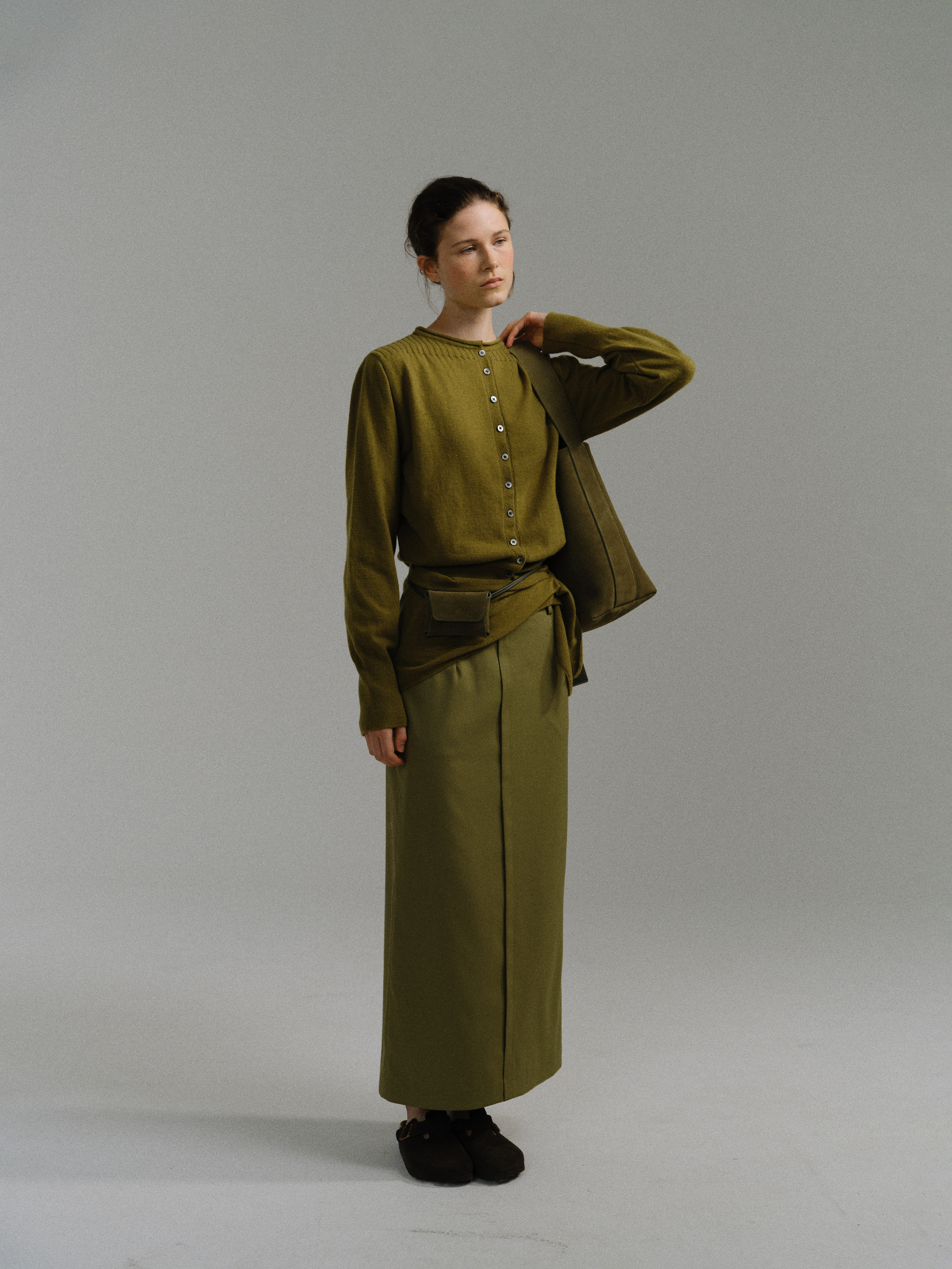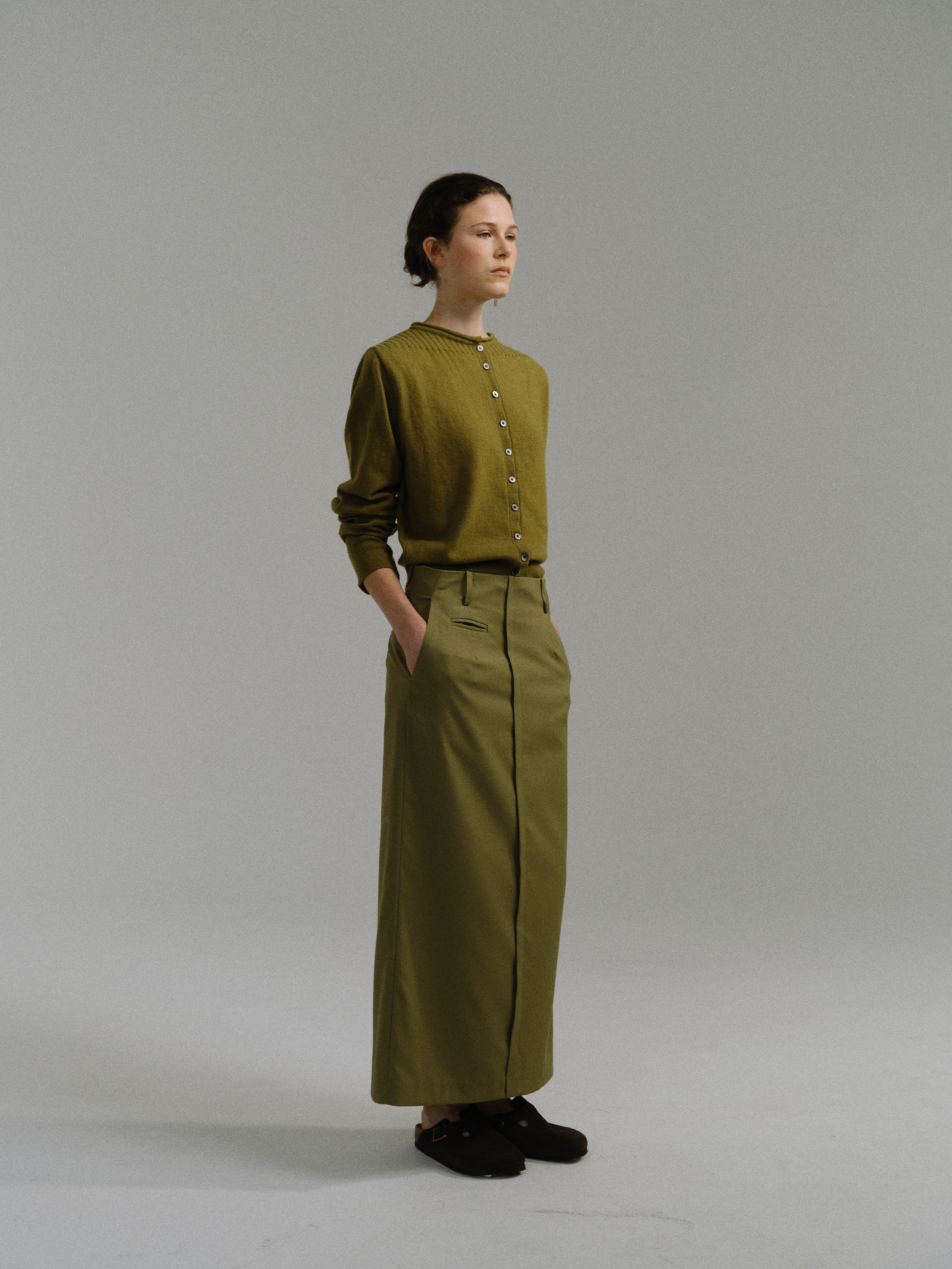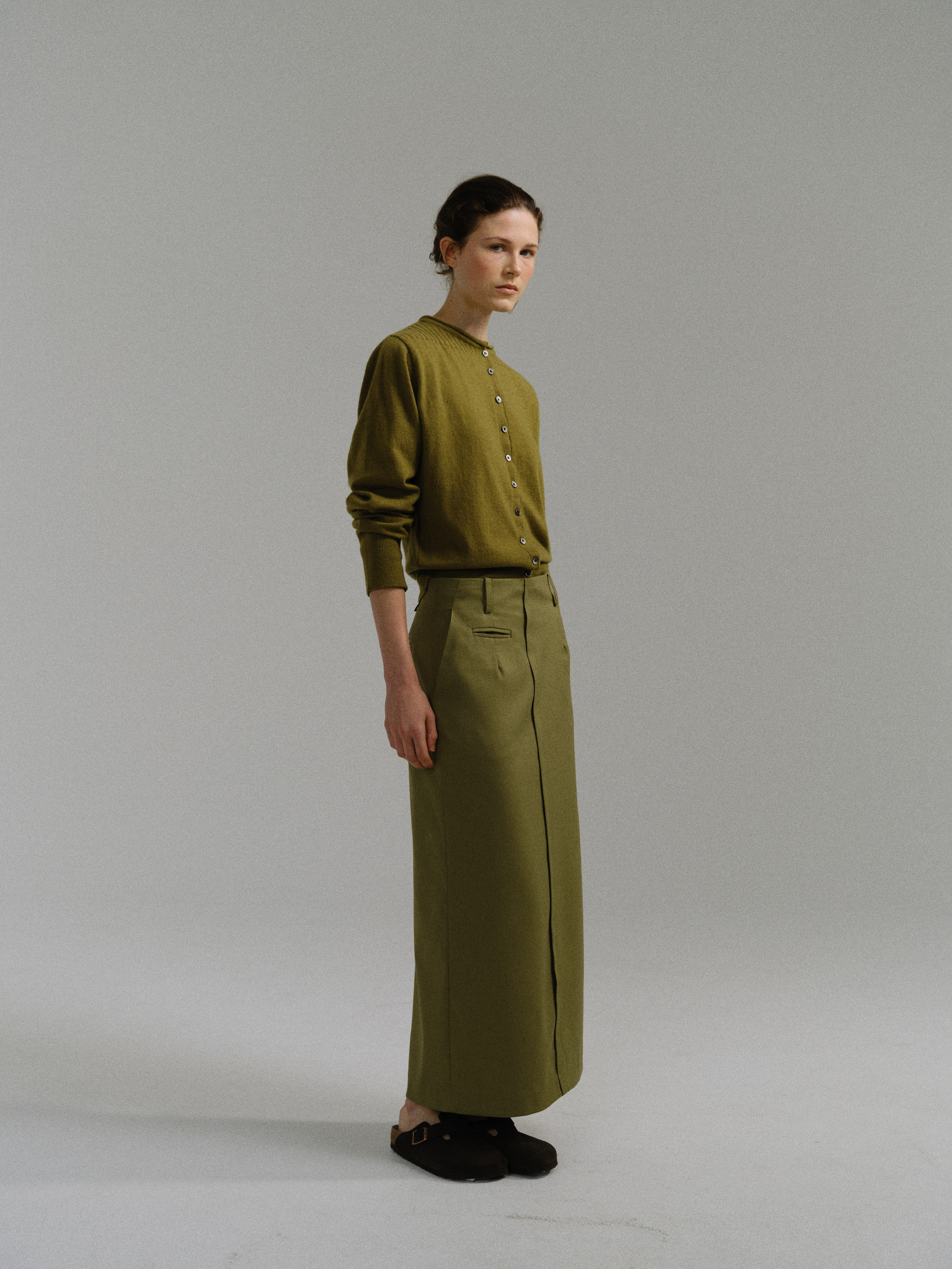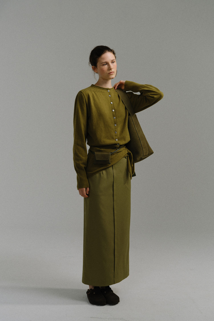 - 아우브아워의 시그니처 아이템인 lip pencil skirt의 올리브 컬러 제품입니다.