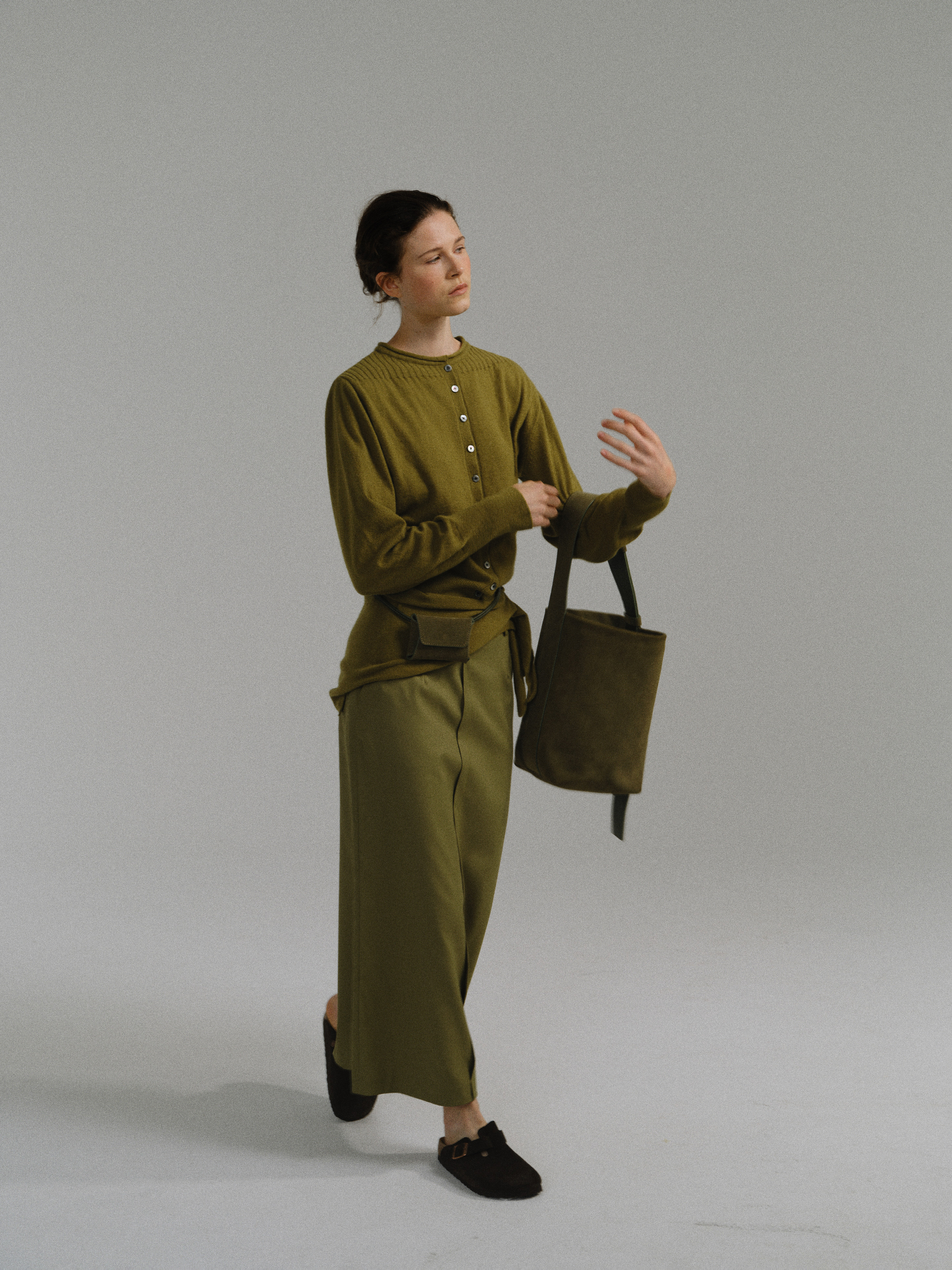 - 앞 패널은 중앙 절개선과 미니 립 포켓으로 포인트를 주었으며, 불필요한 장식을 최소화해 간결한 무드를 강조했습니다.