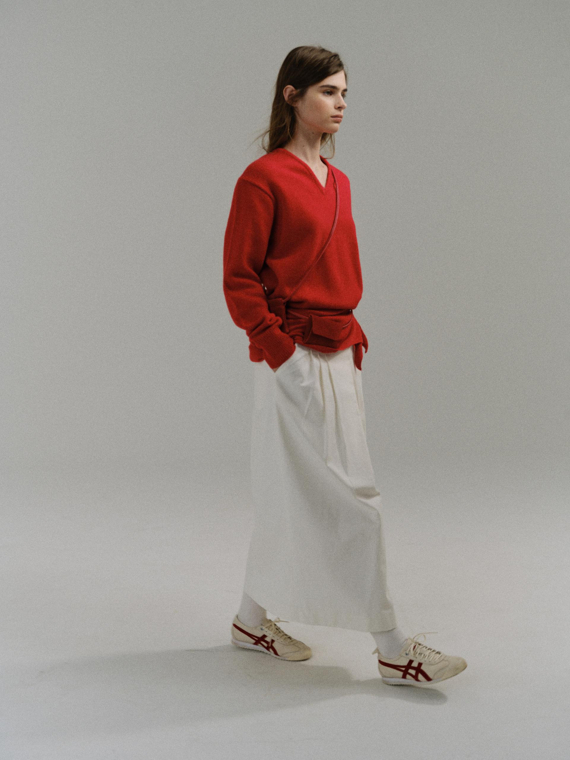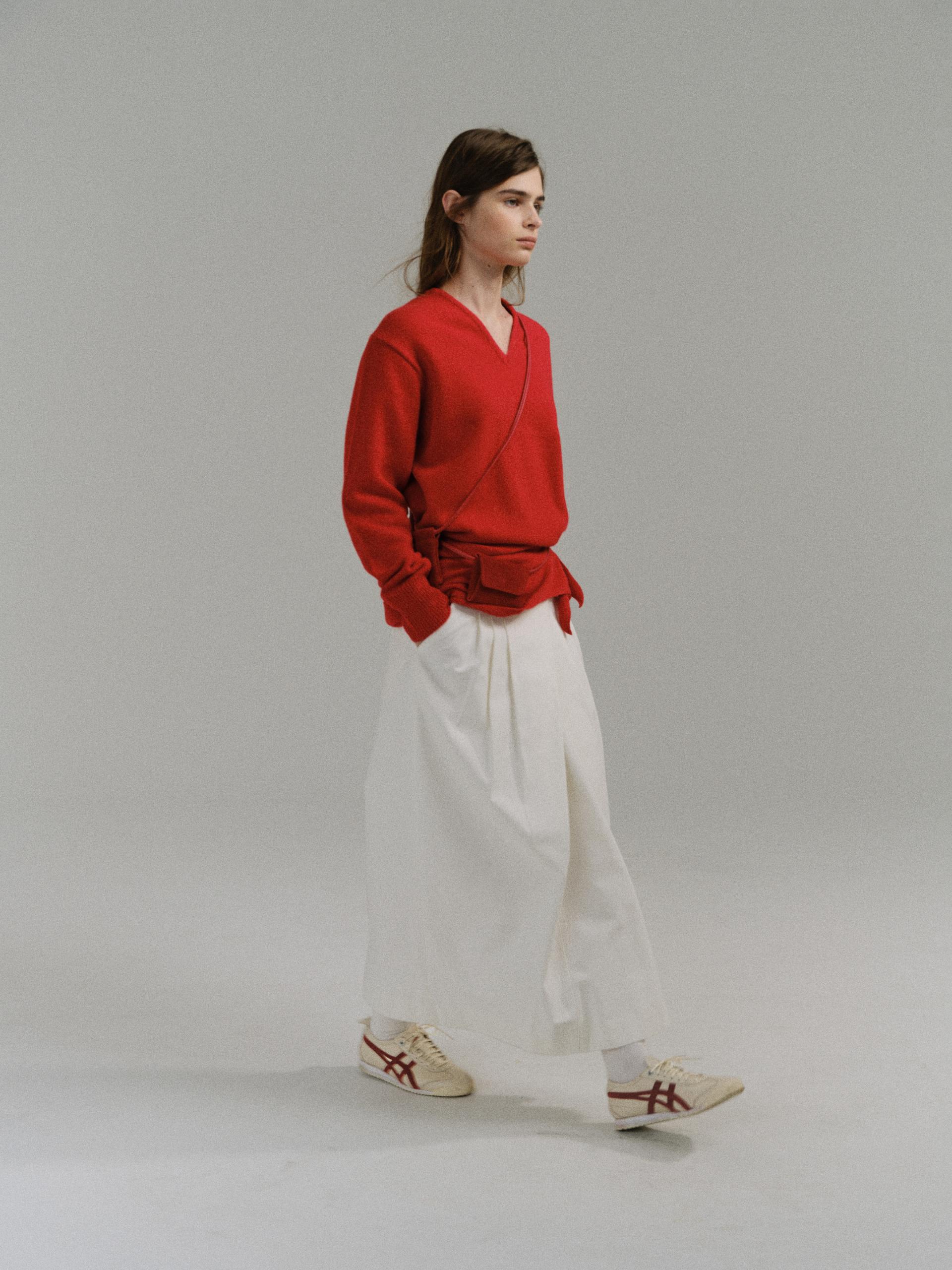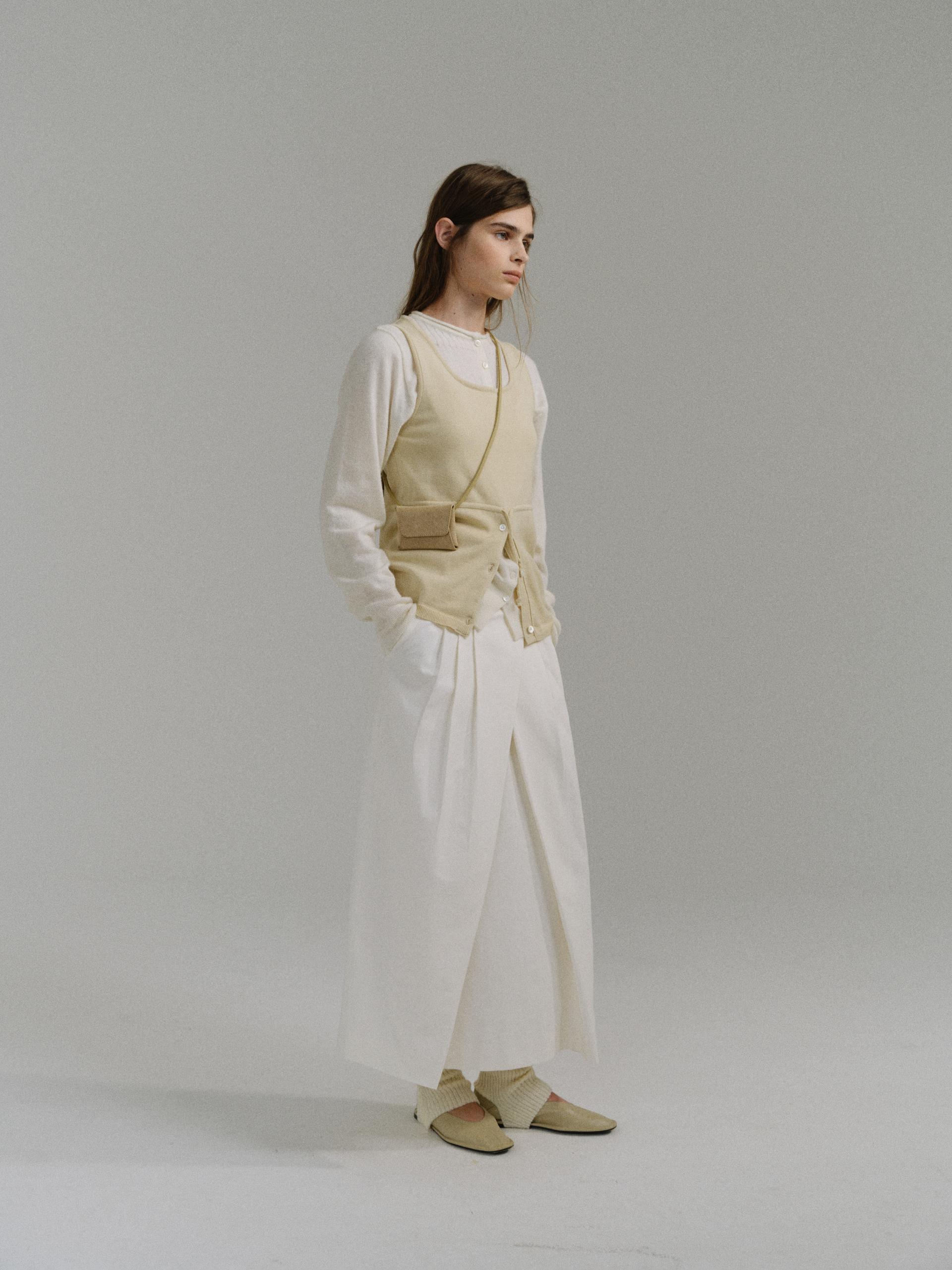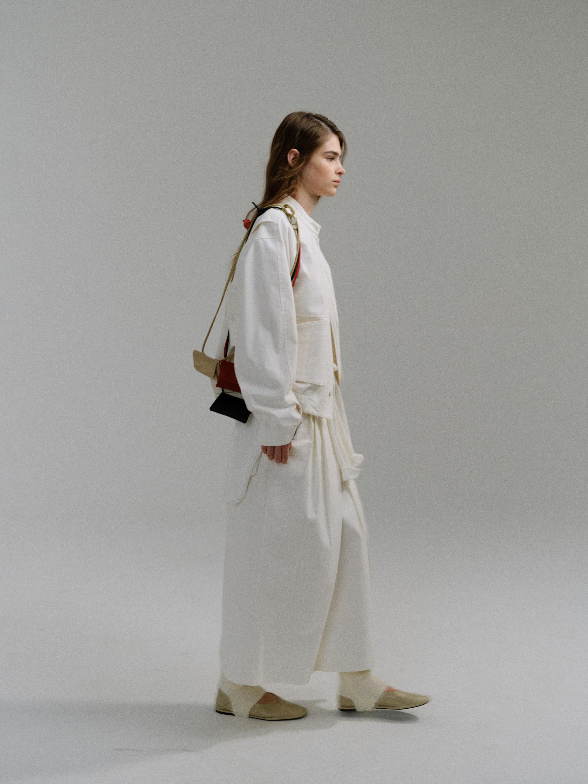 - 사선으로 겹쳐지는 앞판 라인은 조형적인 특징을 강조하며, 움직임에 따라 실루엣이 유연하게 흐릅니다.