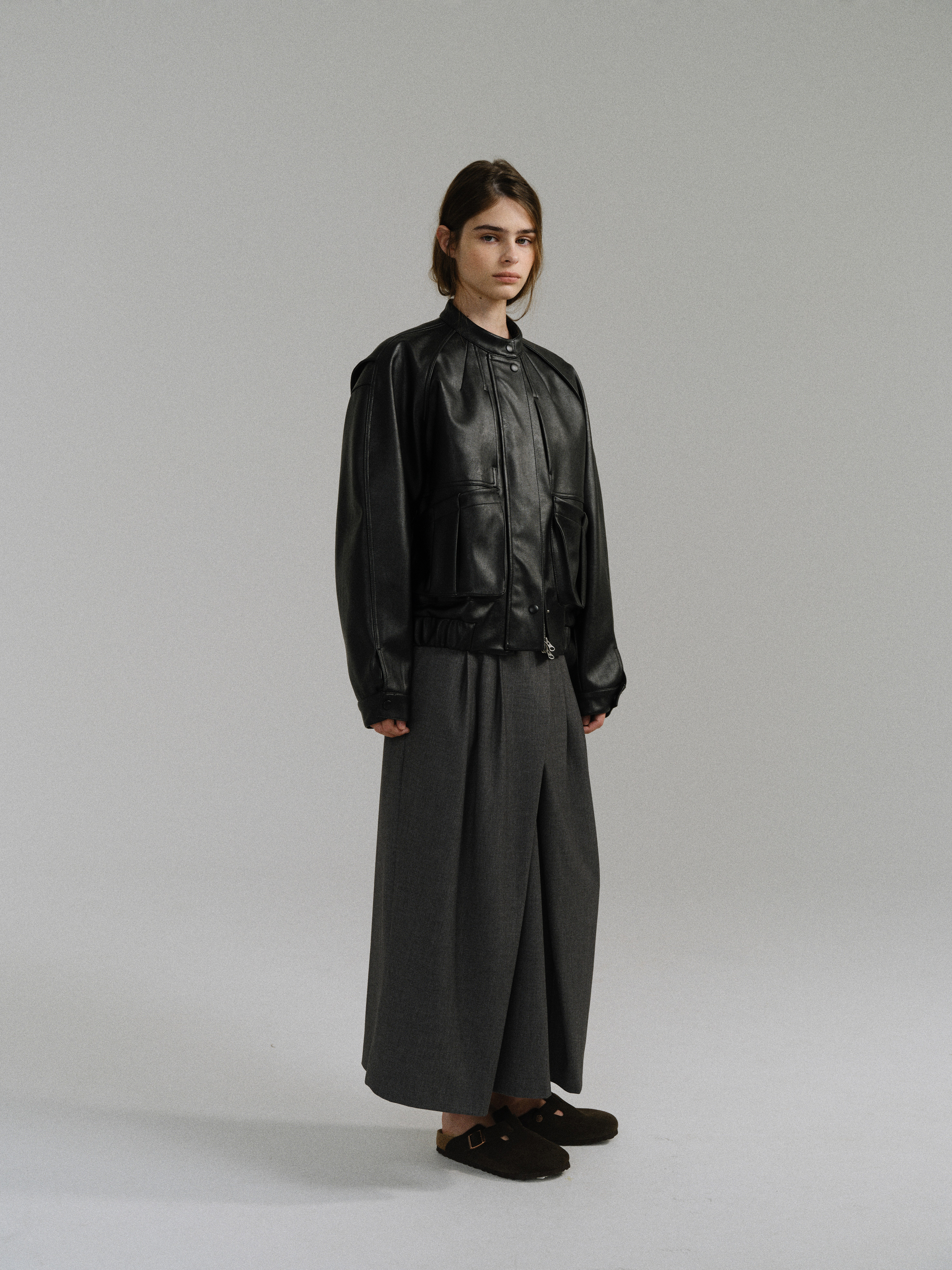 - 양쪽의 세 개 턱과 한쪽의 플랩 디테일이 어우러져 구조적인 볼륨을 완성했습니다.