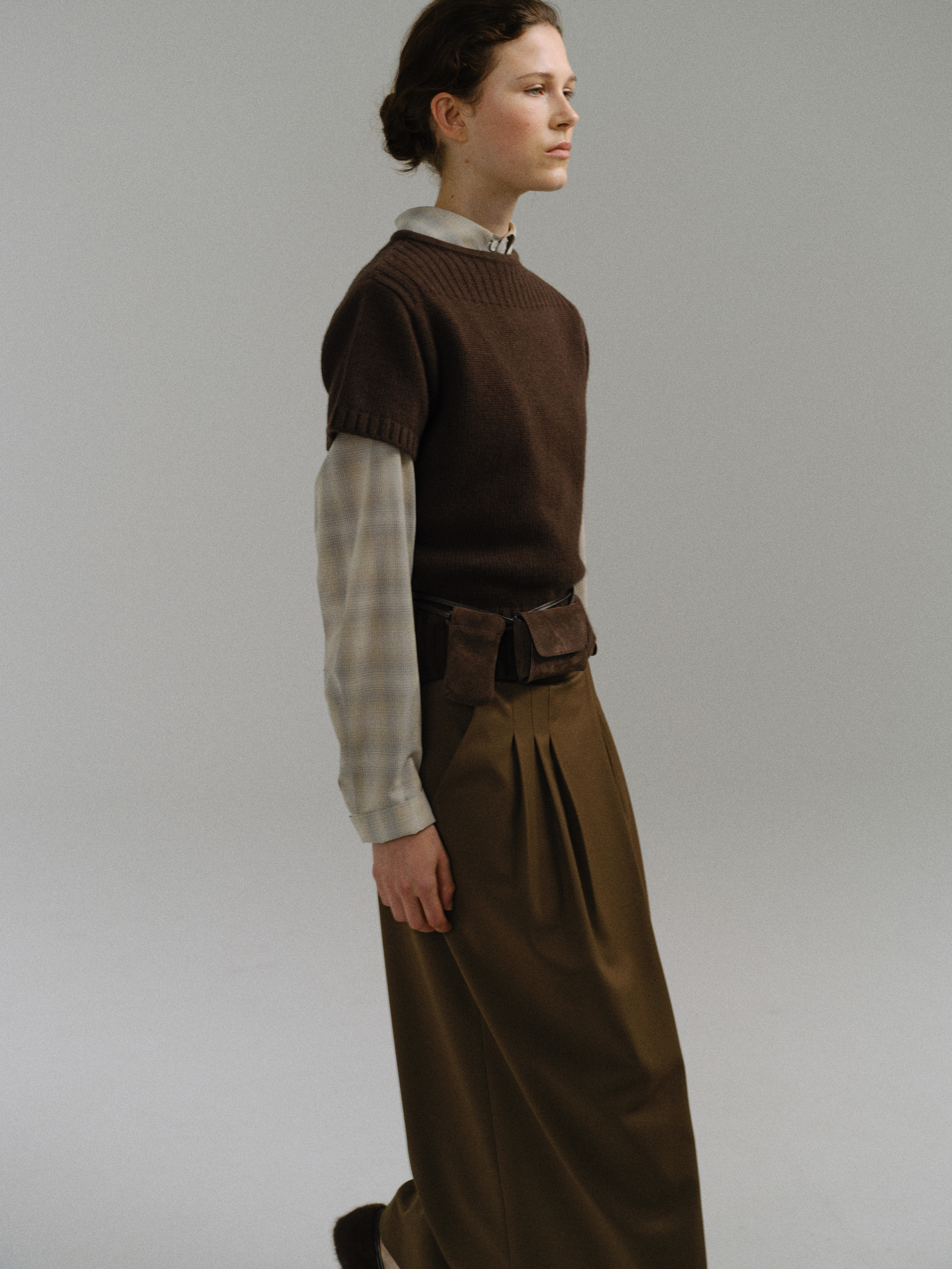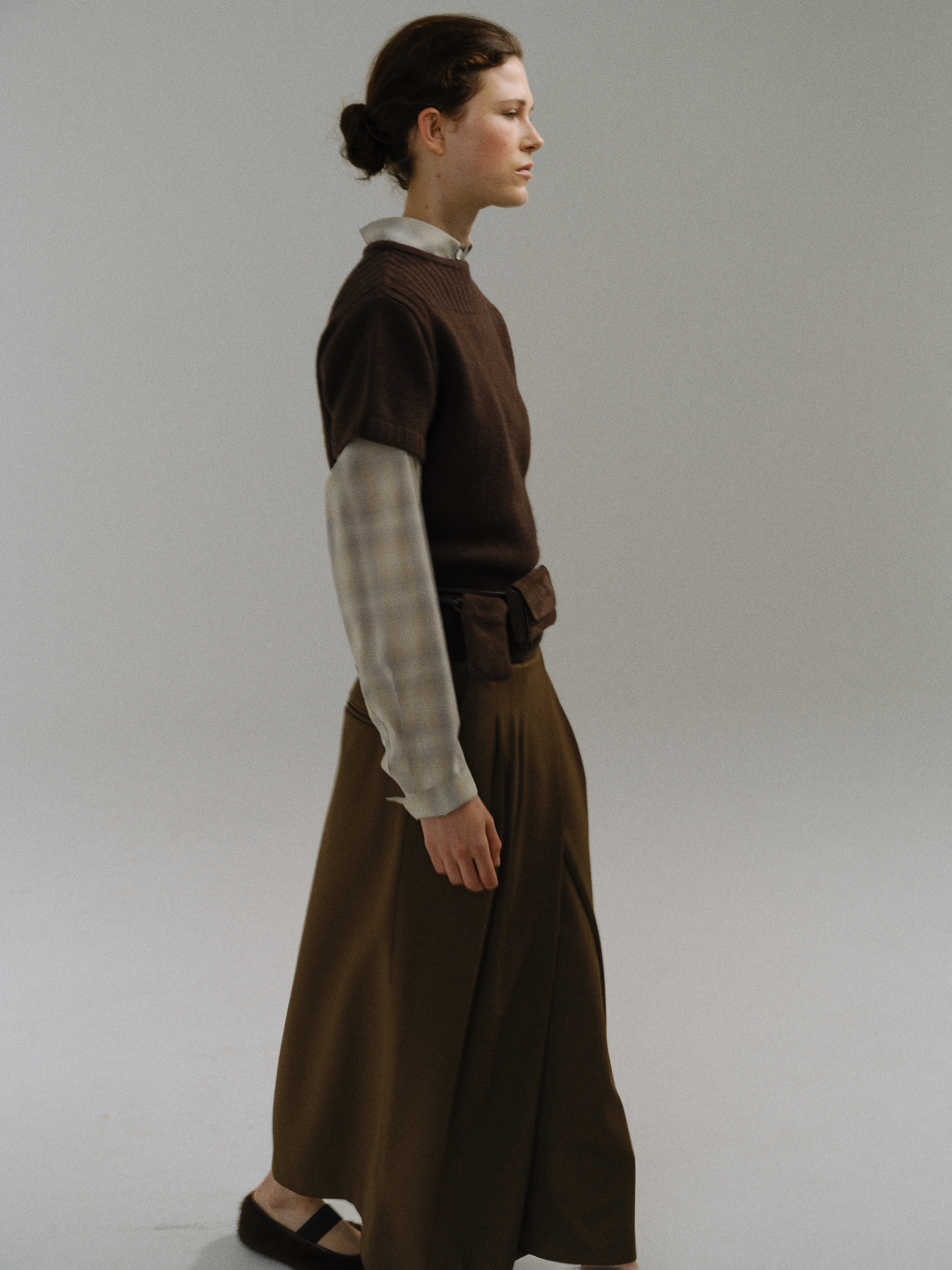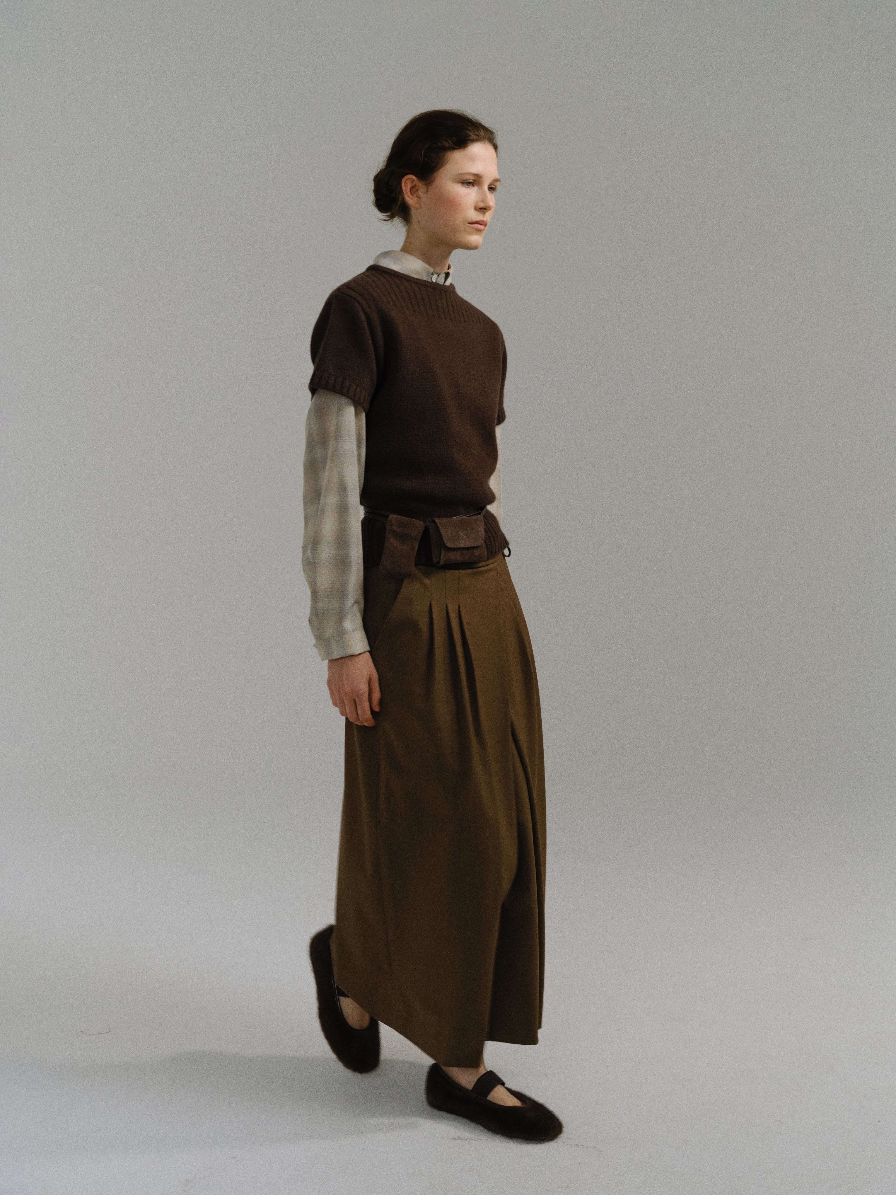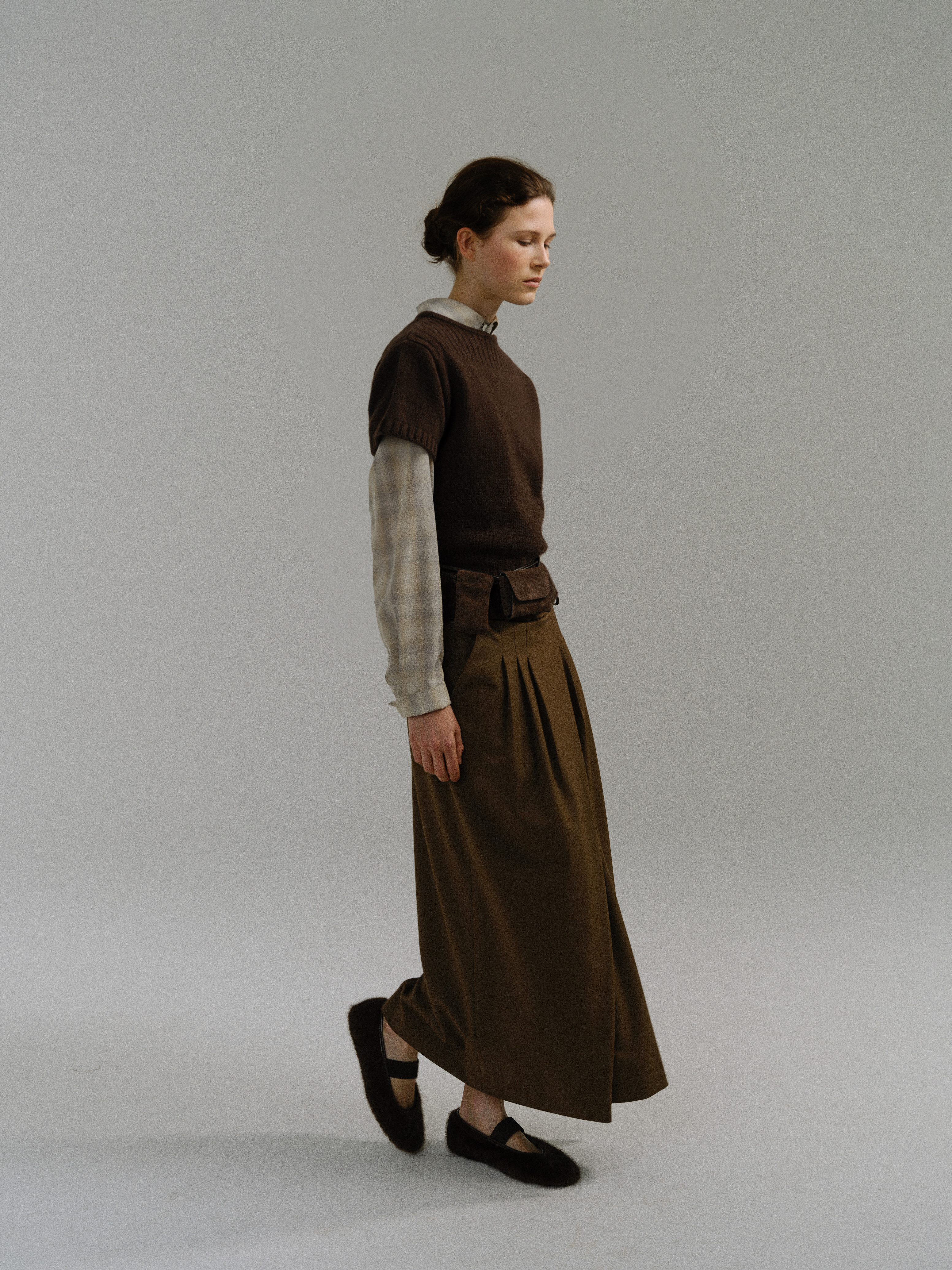 - 사선으로 겹쳐지는 앞판 라인은 조형적인 특징을 강조하며, 움직임에 따라 실루엣이 유연하게 흐릅니다.