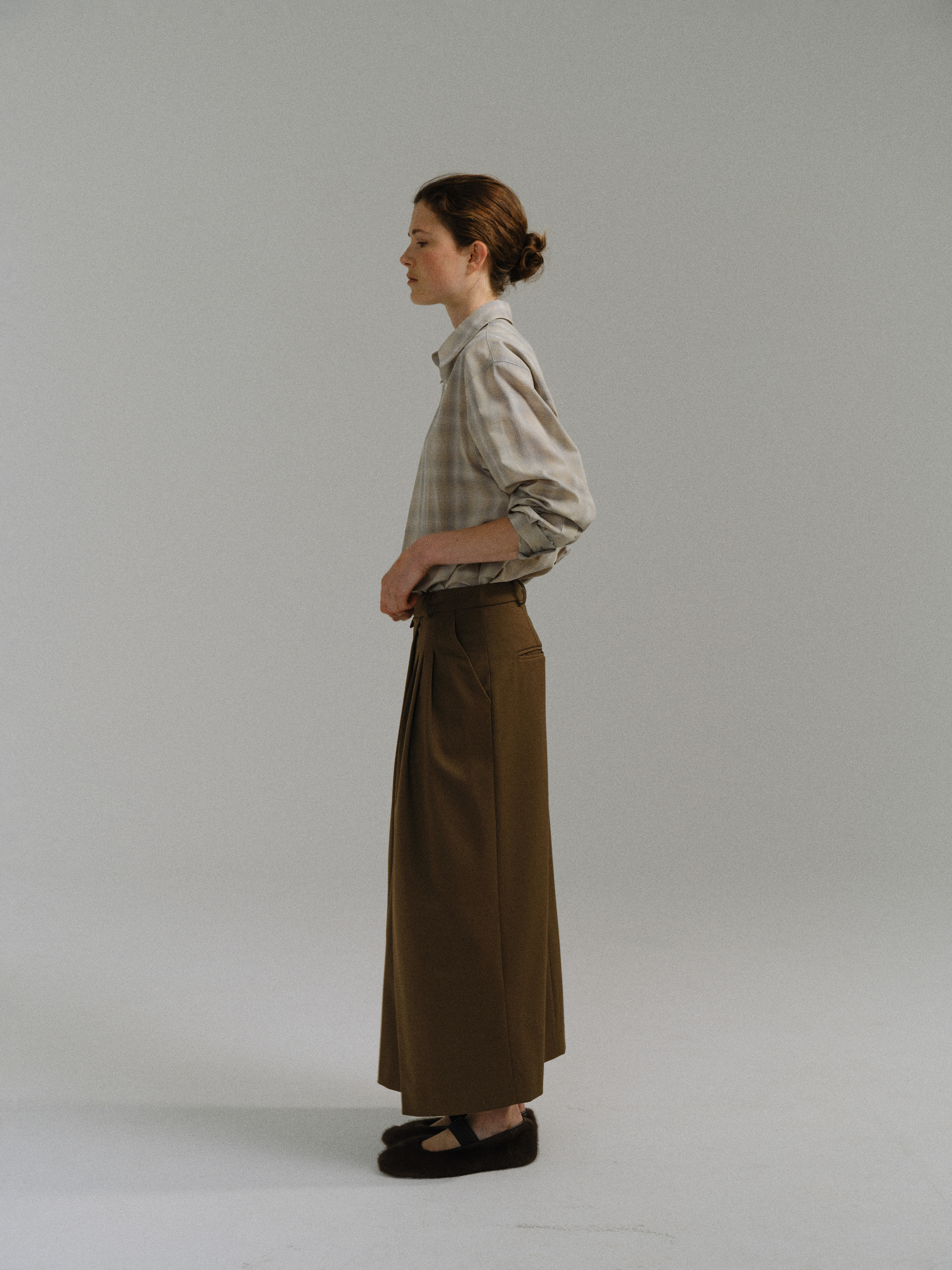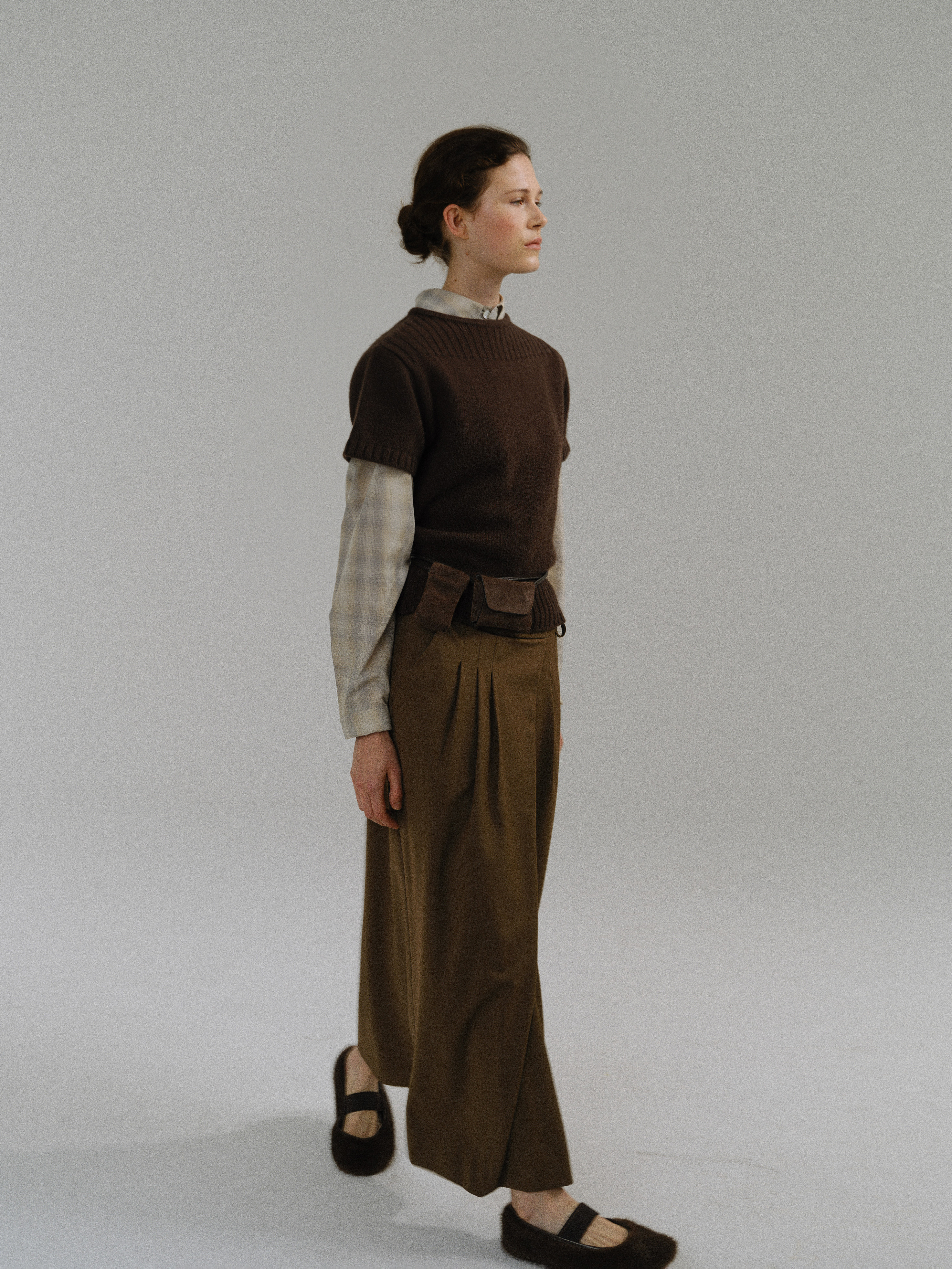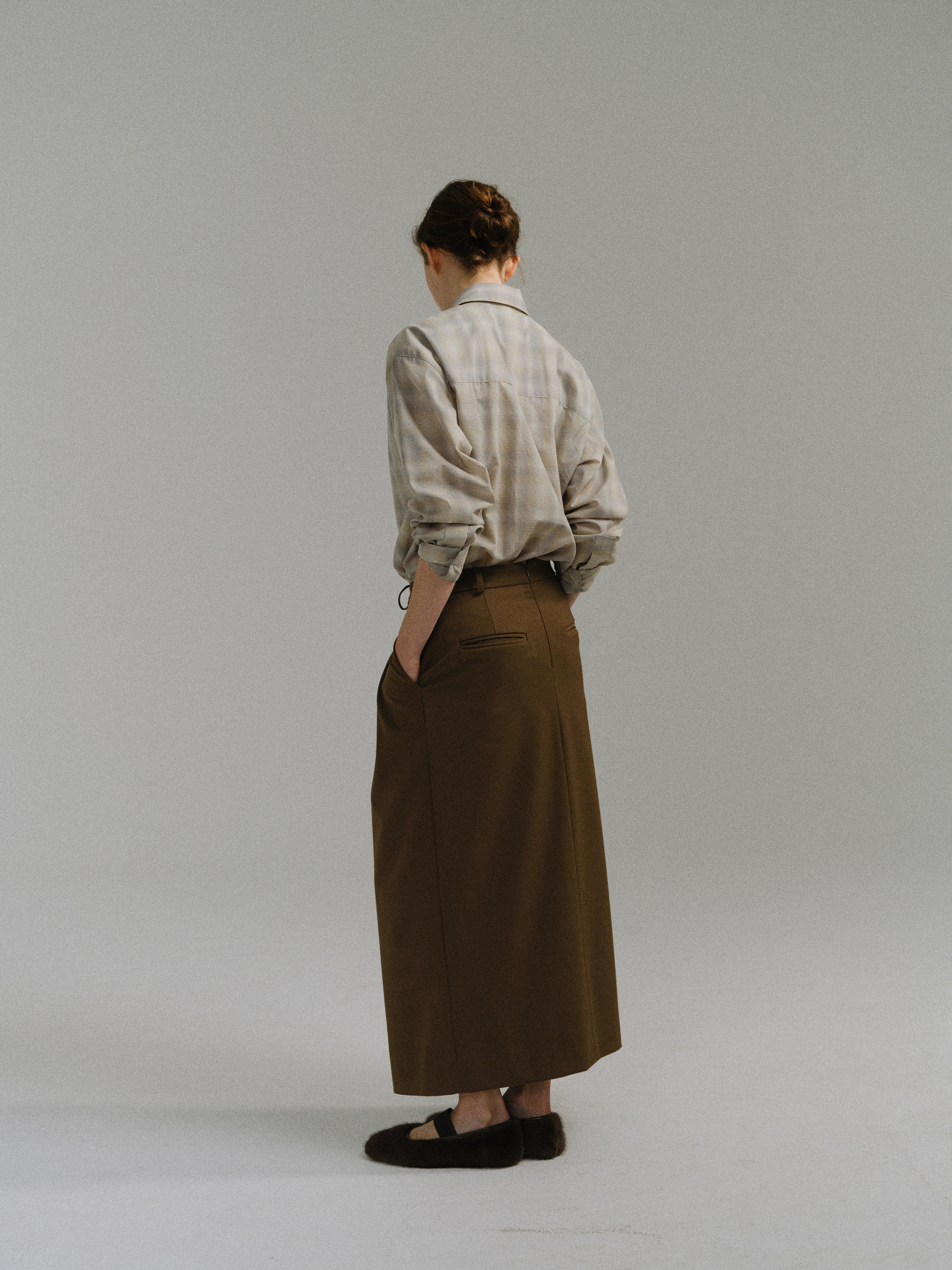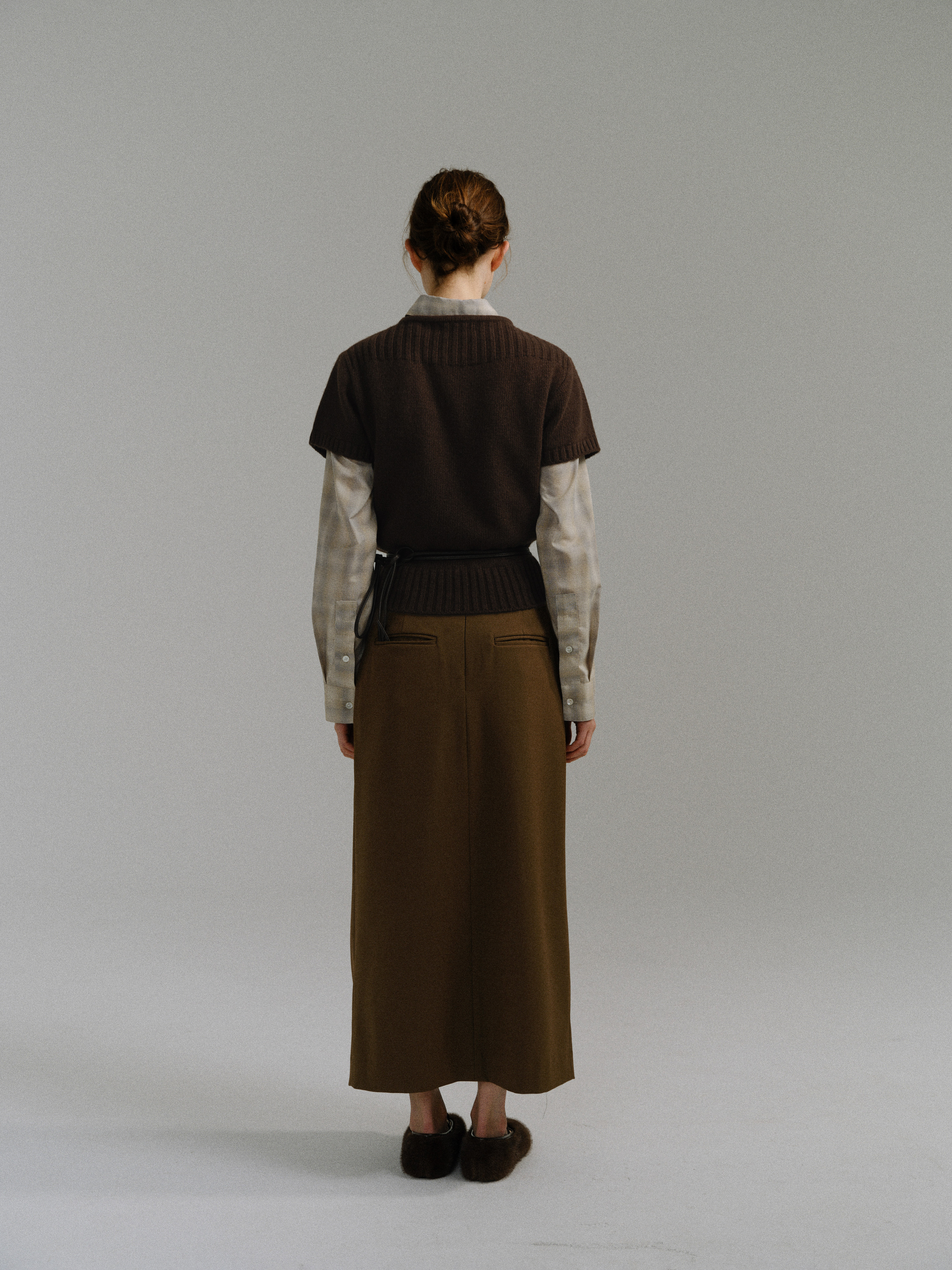 - 울 혼방 원단으로 제작되어 부드러운 터치감과 안정적인 착용감을 제공합니다.