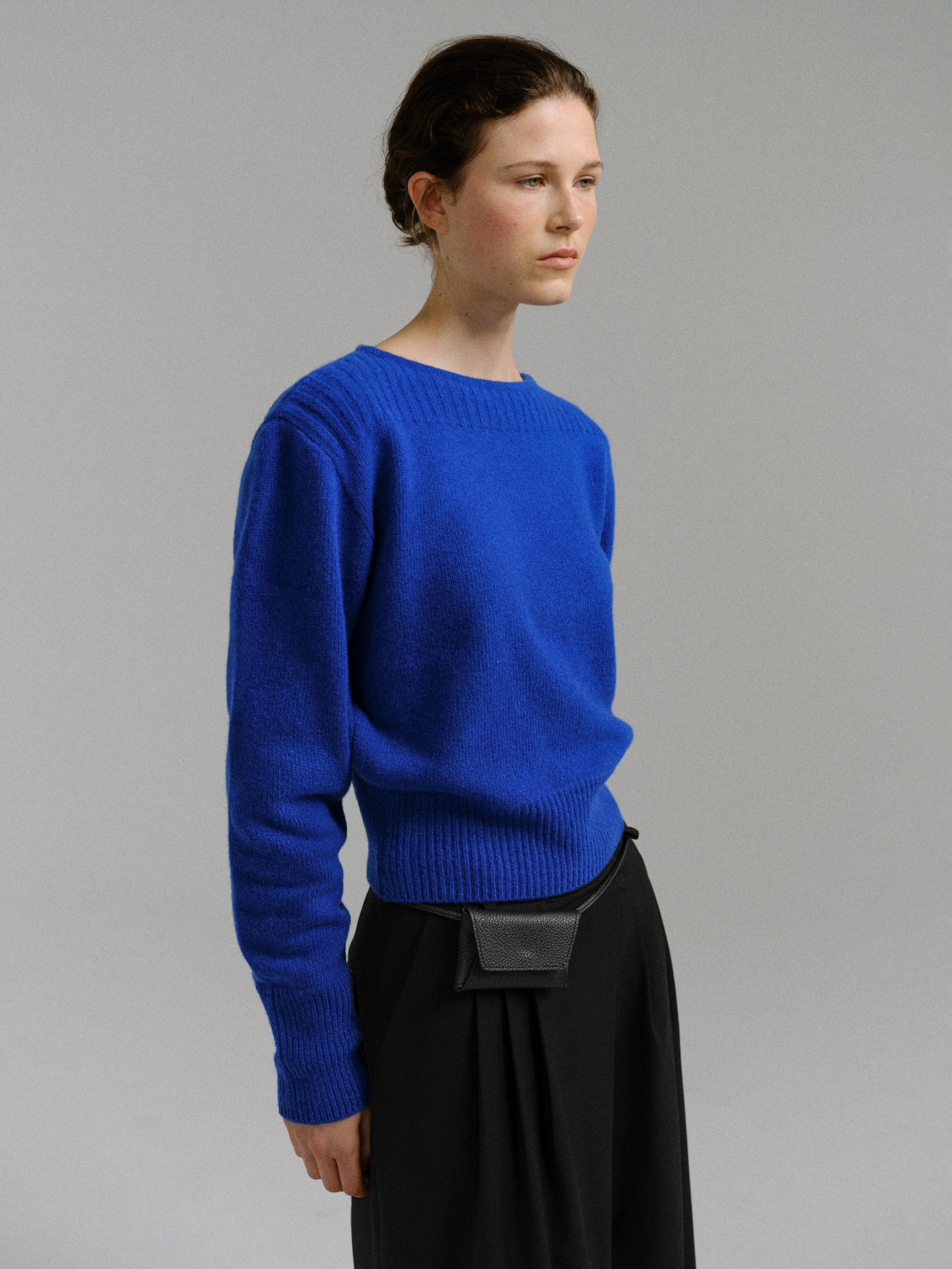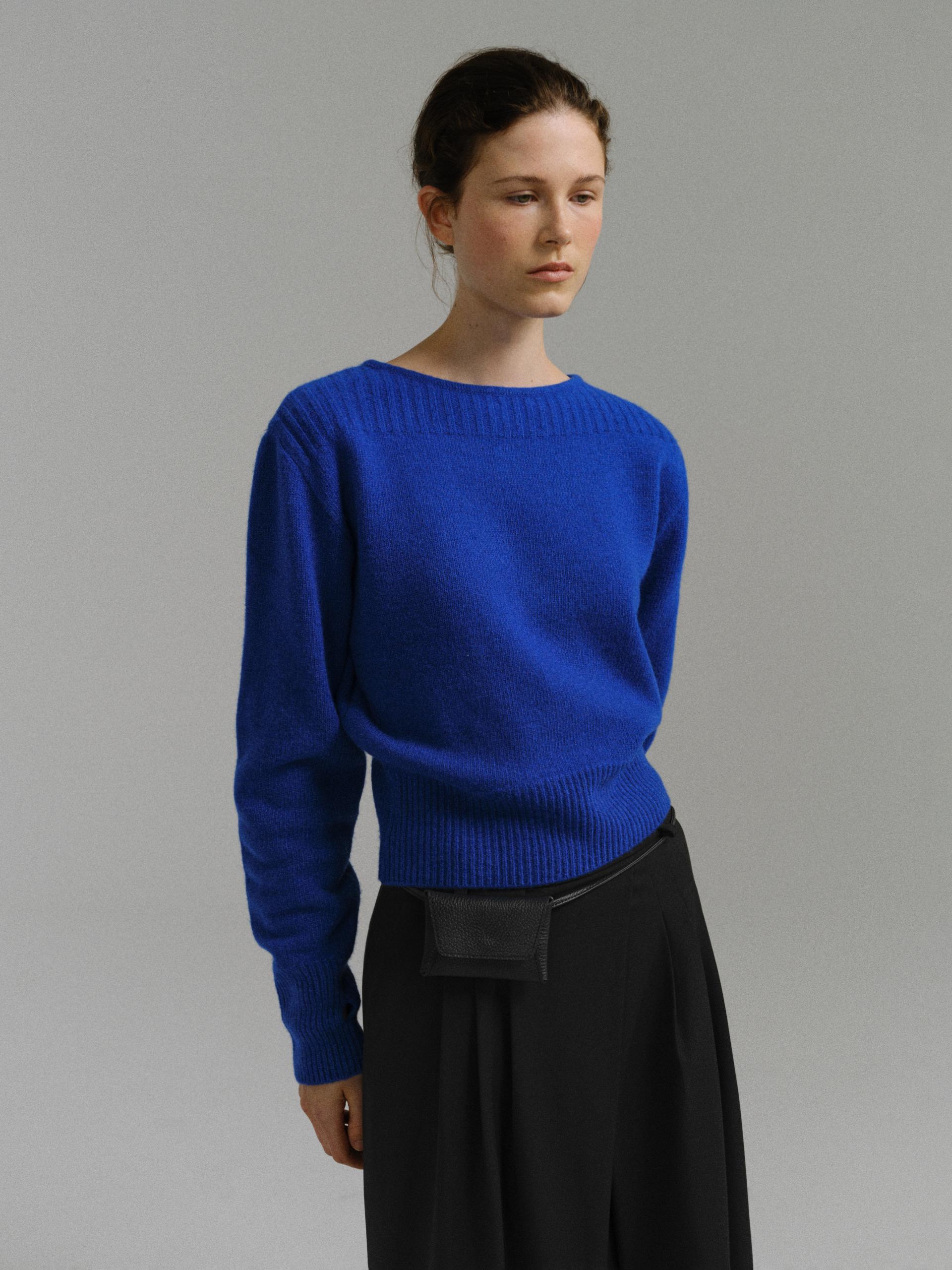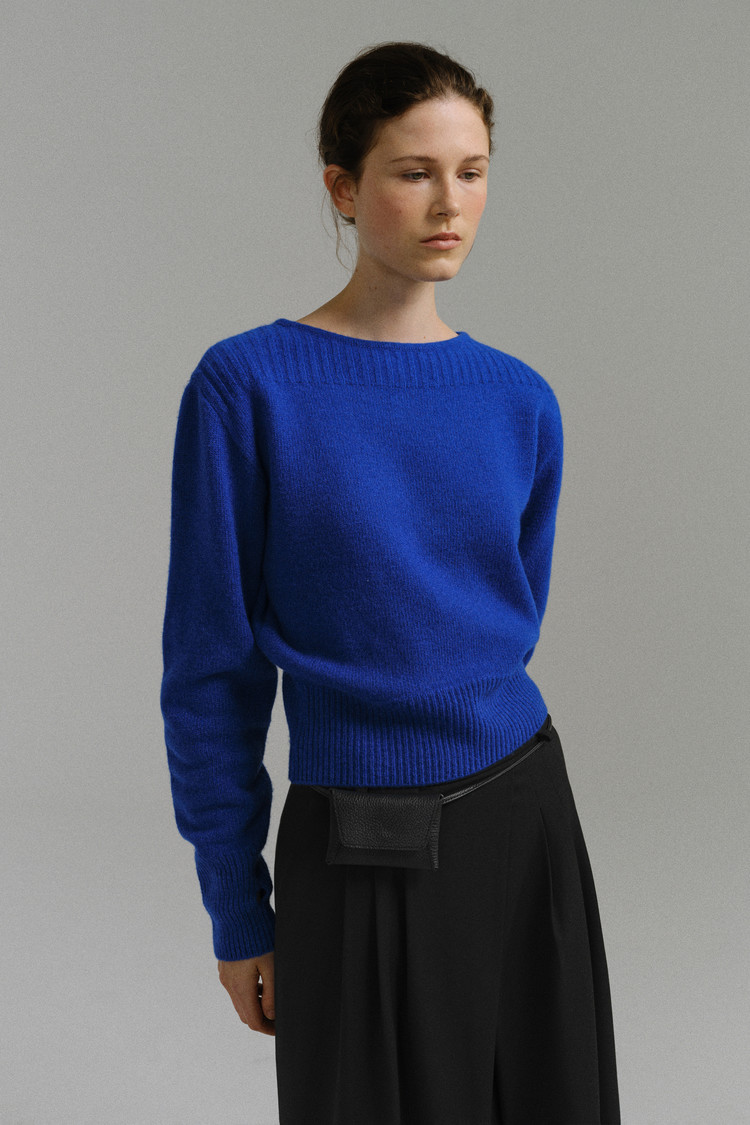 pipe boat-neck puff round knit (blue)TIME SALE