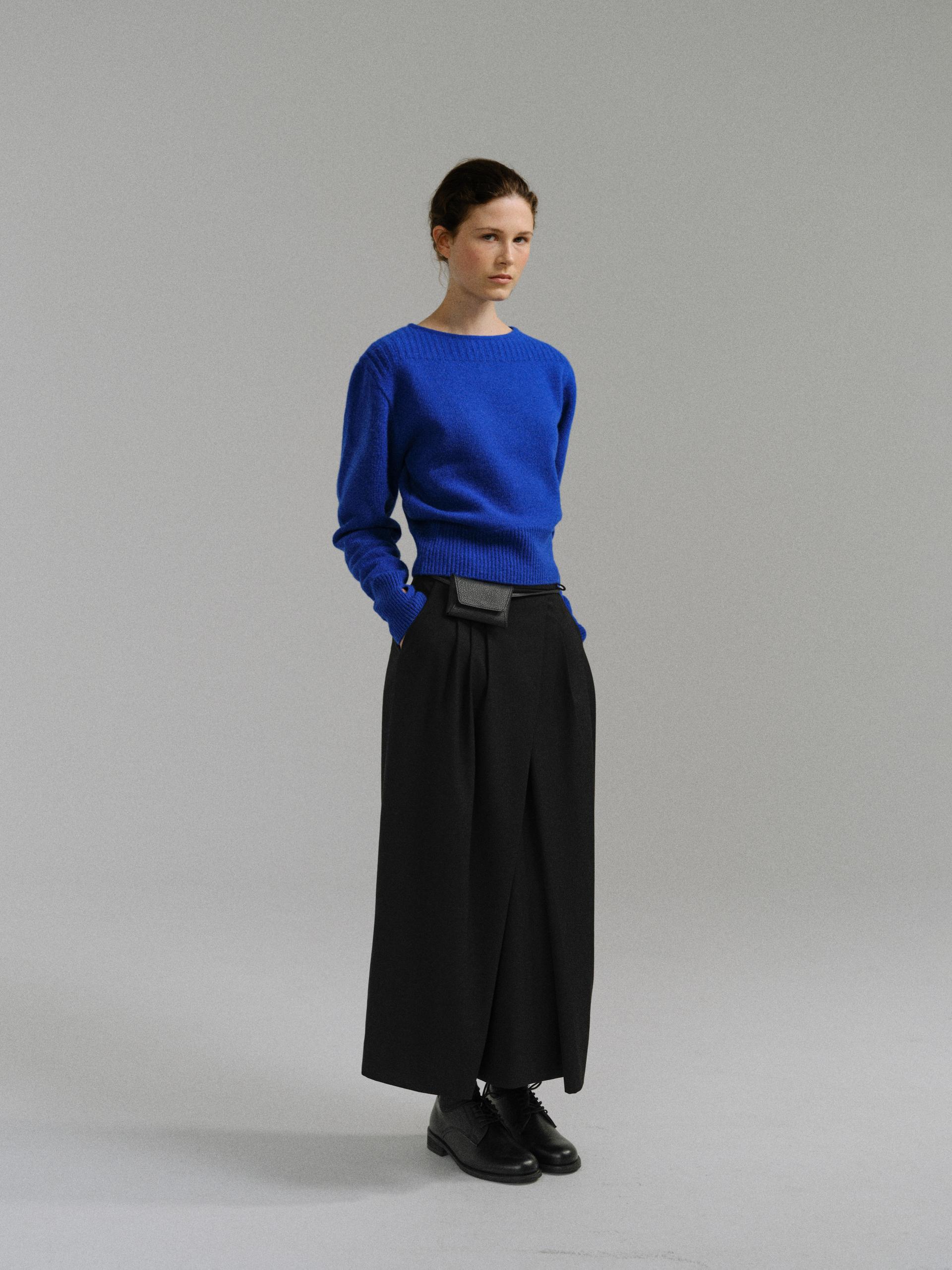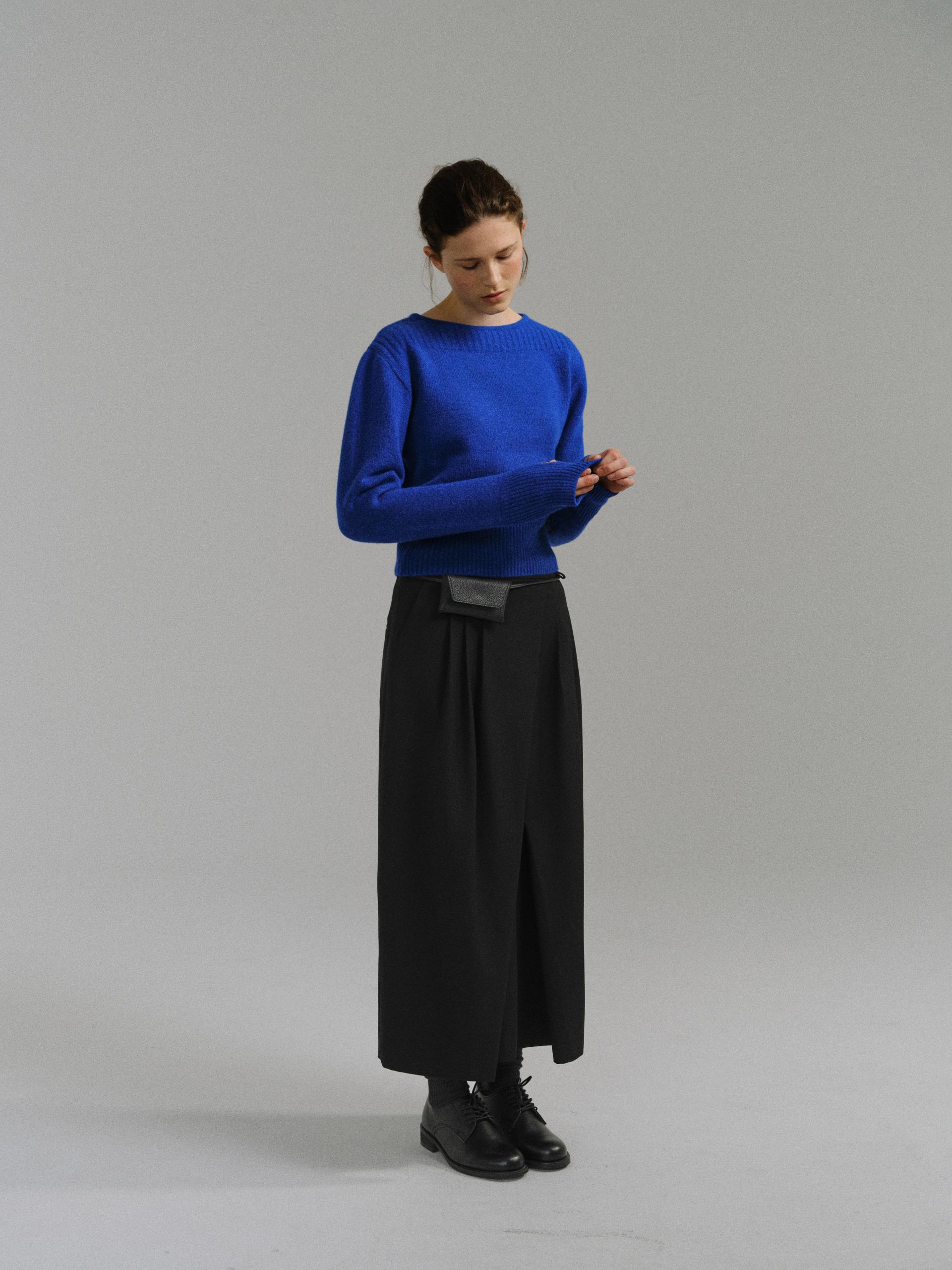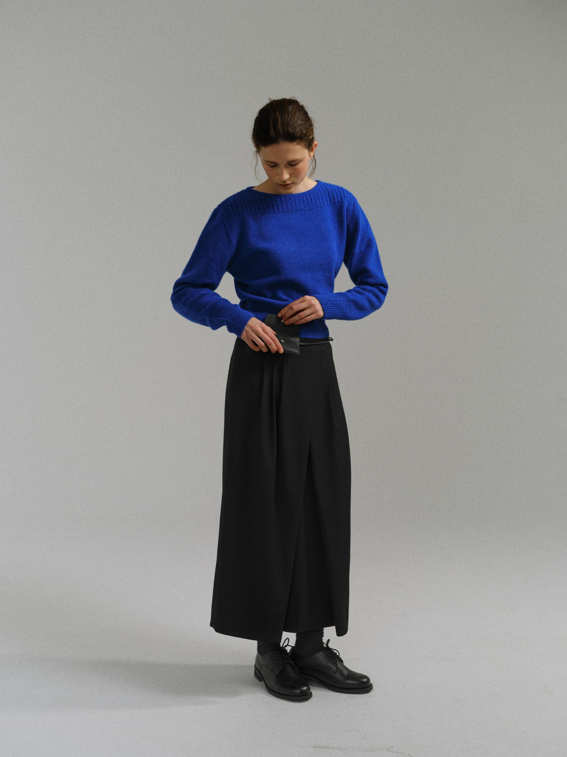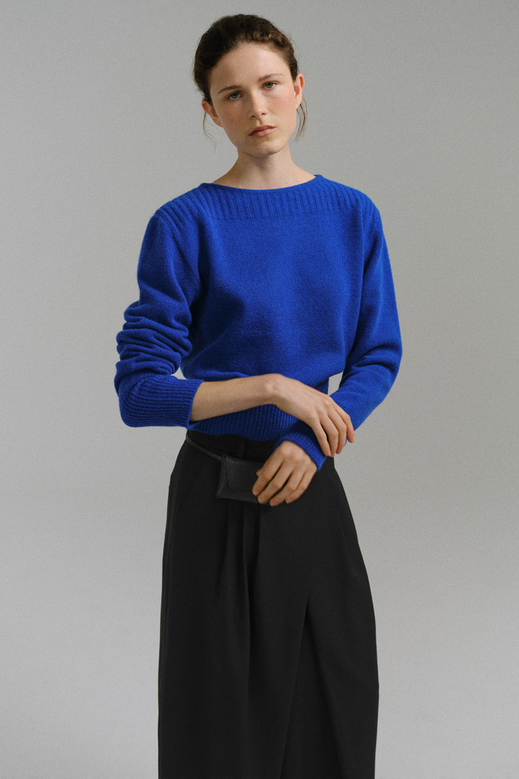 - 더블 파이핑 편직한 보트넥라인은 미니멀한 무드를 드러내며 제품의 완성도를 높여줍니다.