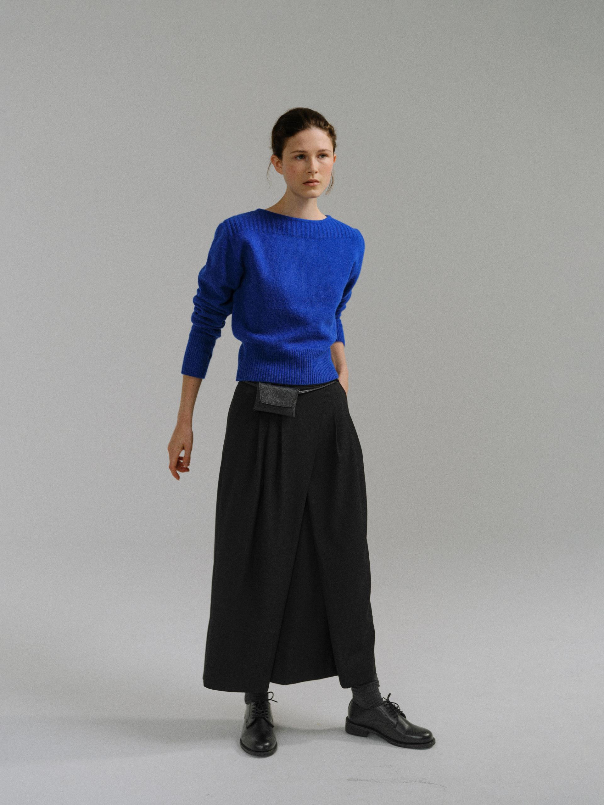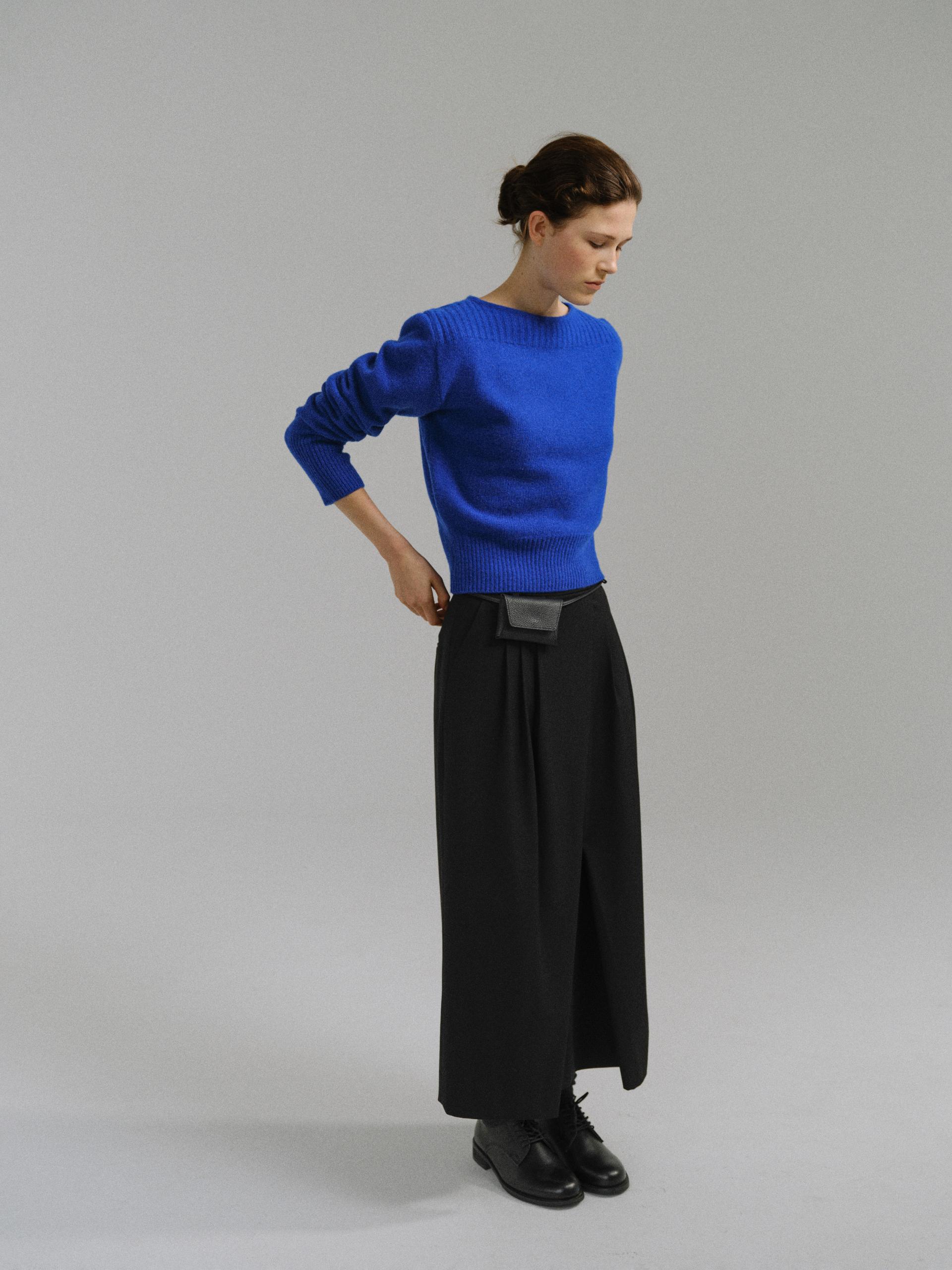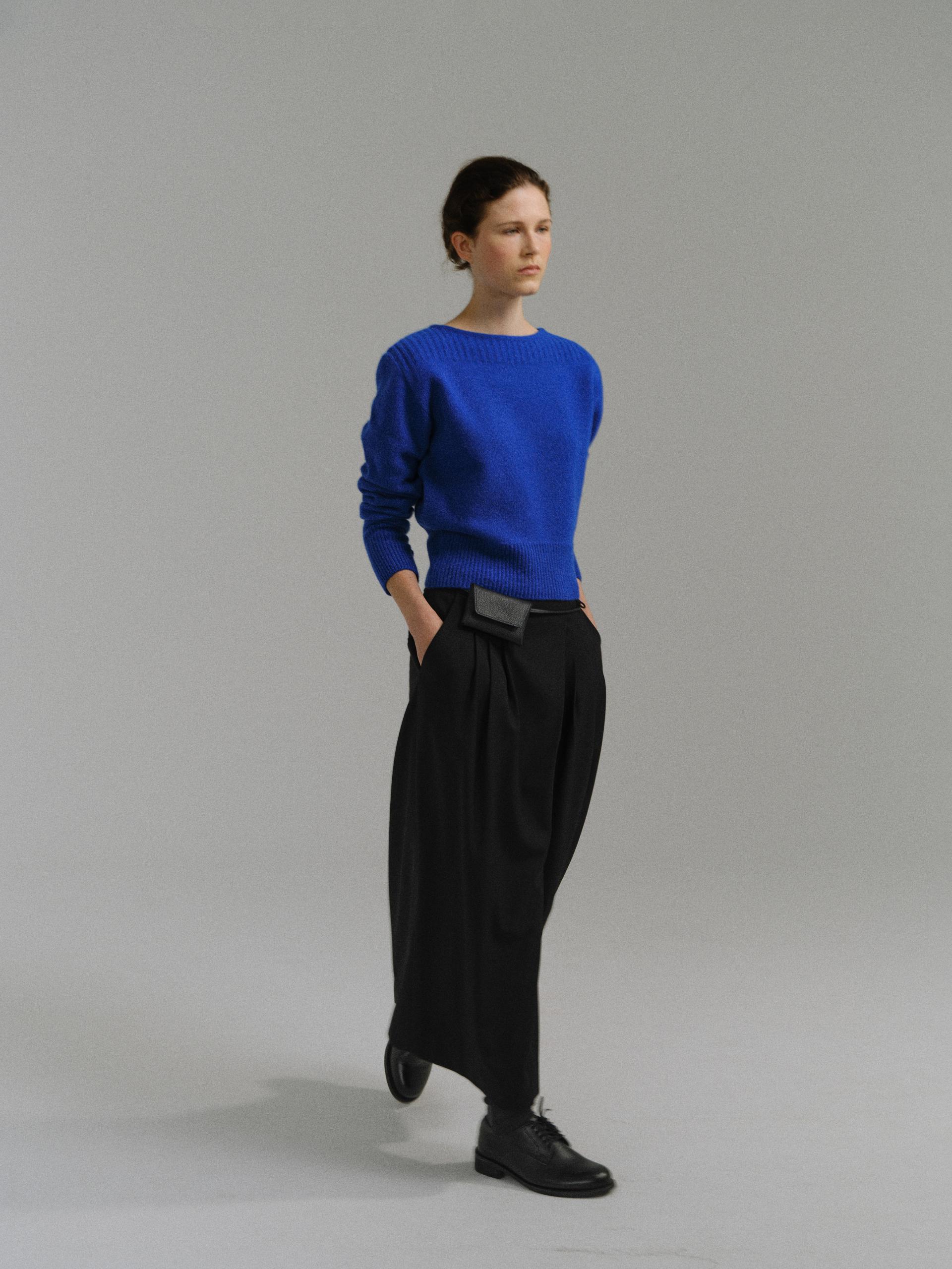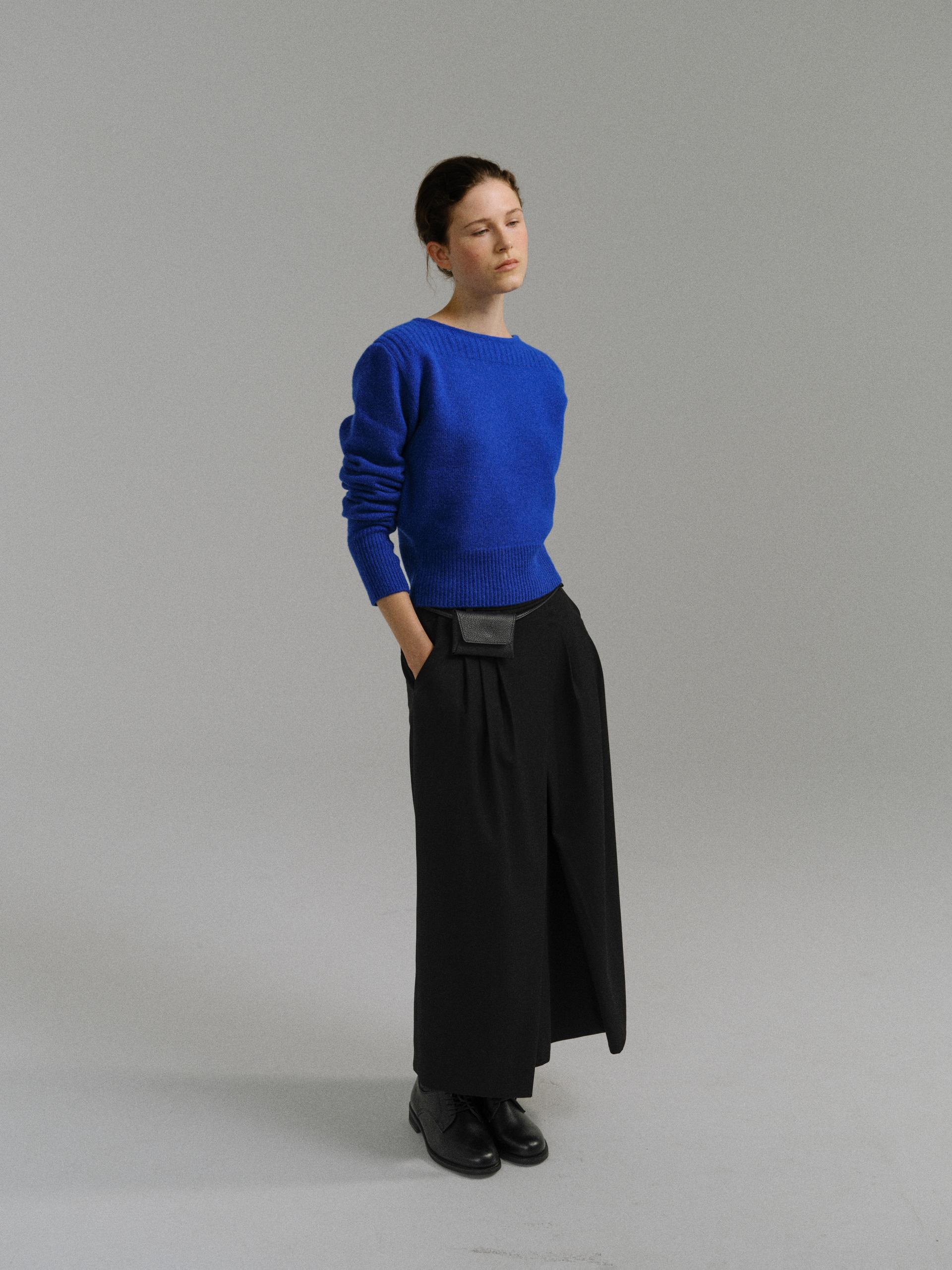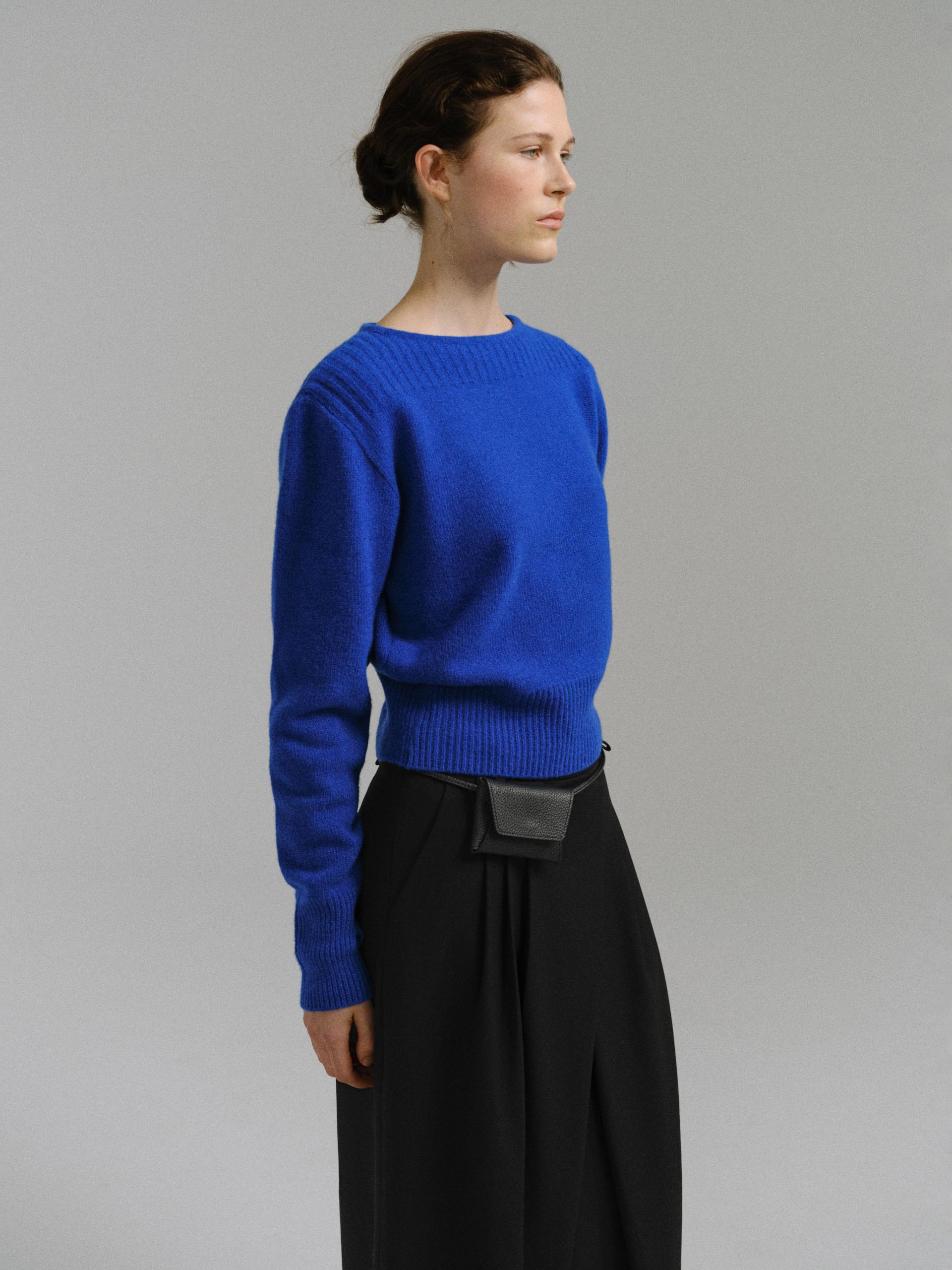 - 더블 파이핑 편직한 보트넥라인은 미니멀한 무드를 드러내며 제품의 완성도를 높여줍니다.