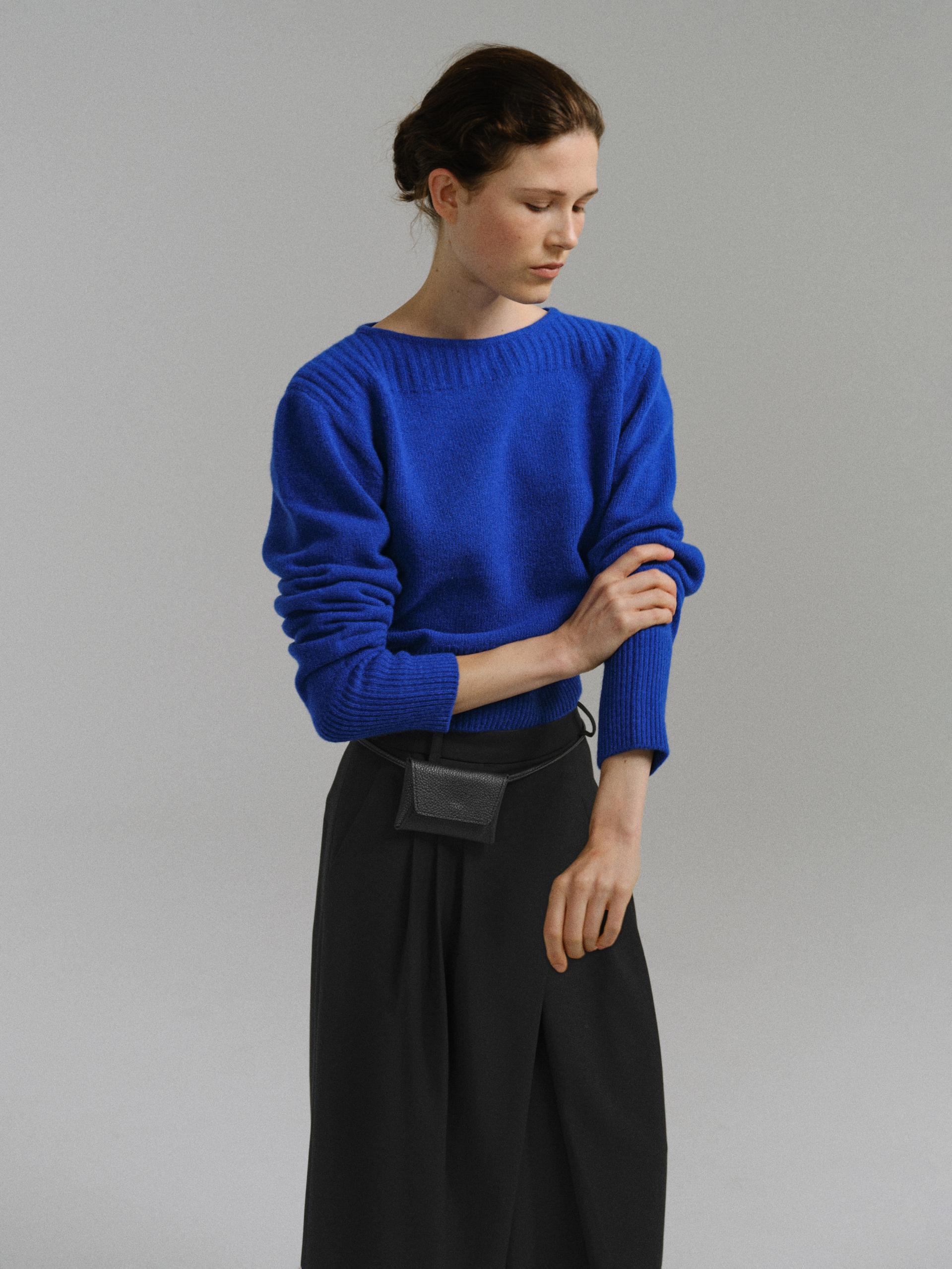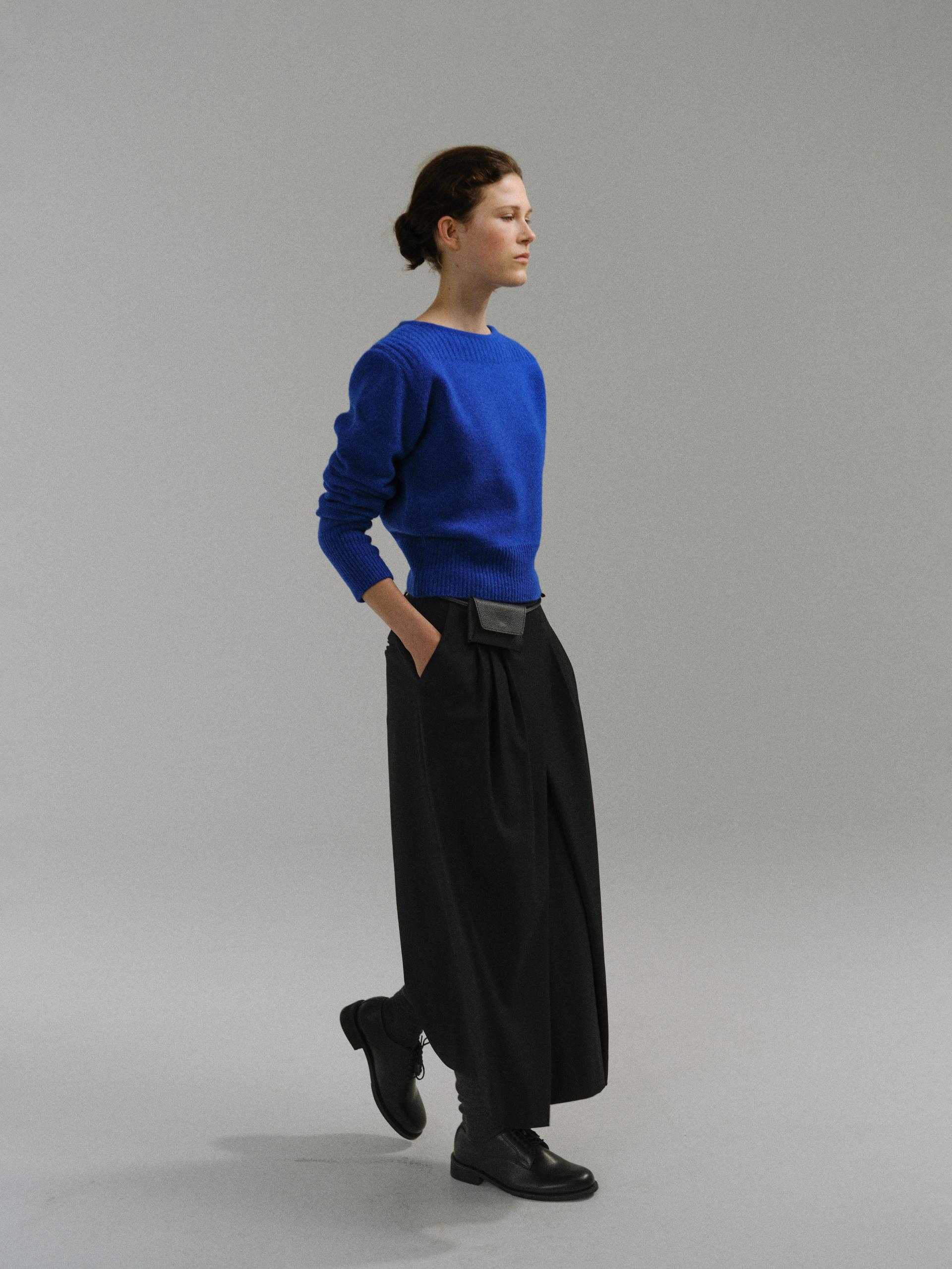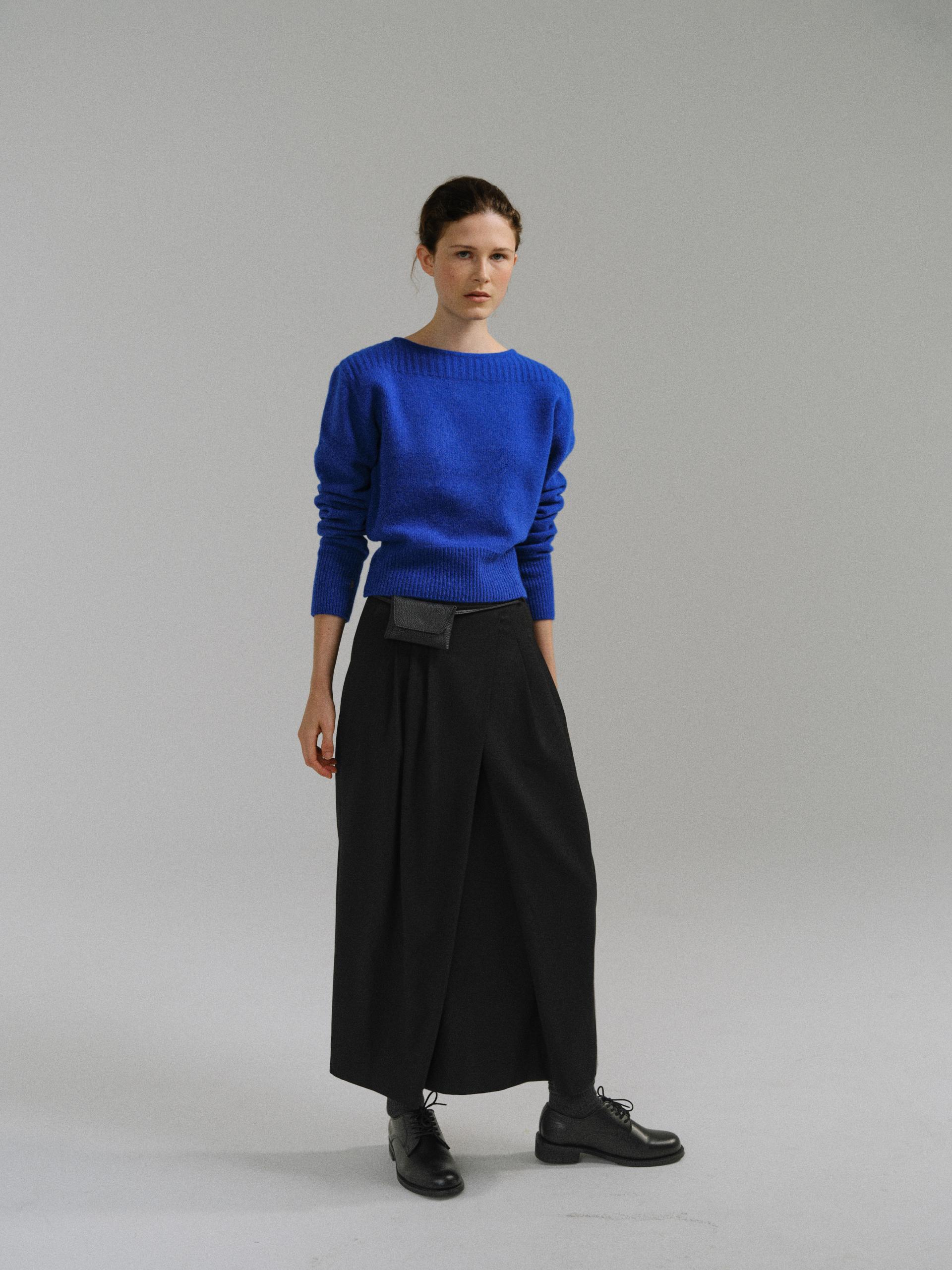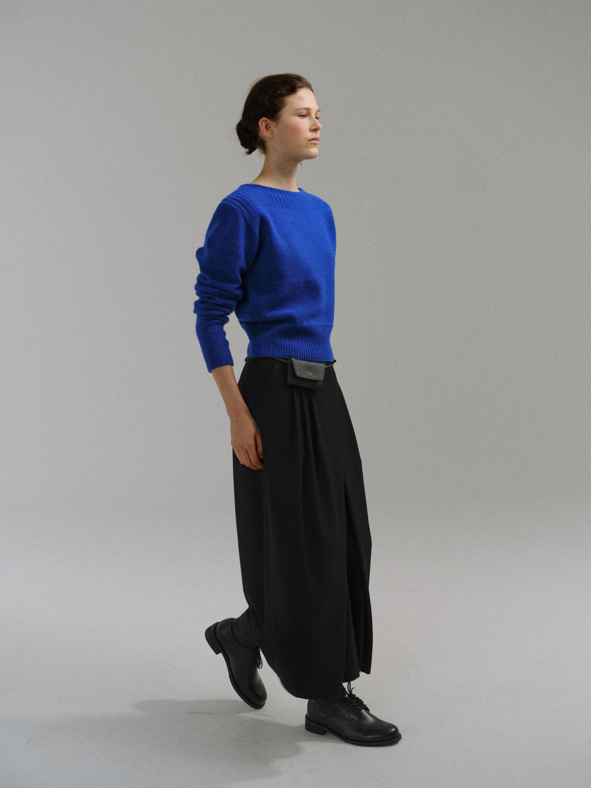 - 더블 파이핑 편직한 보트넥라인은 미니멀한 무드를 드러내며 제품의 완성도를 높여줍니다.